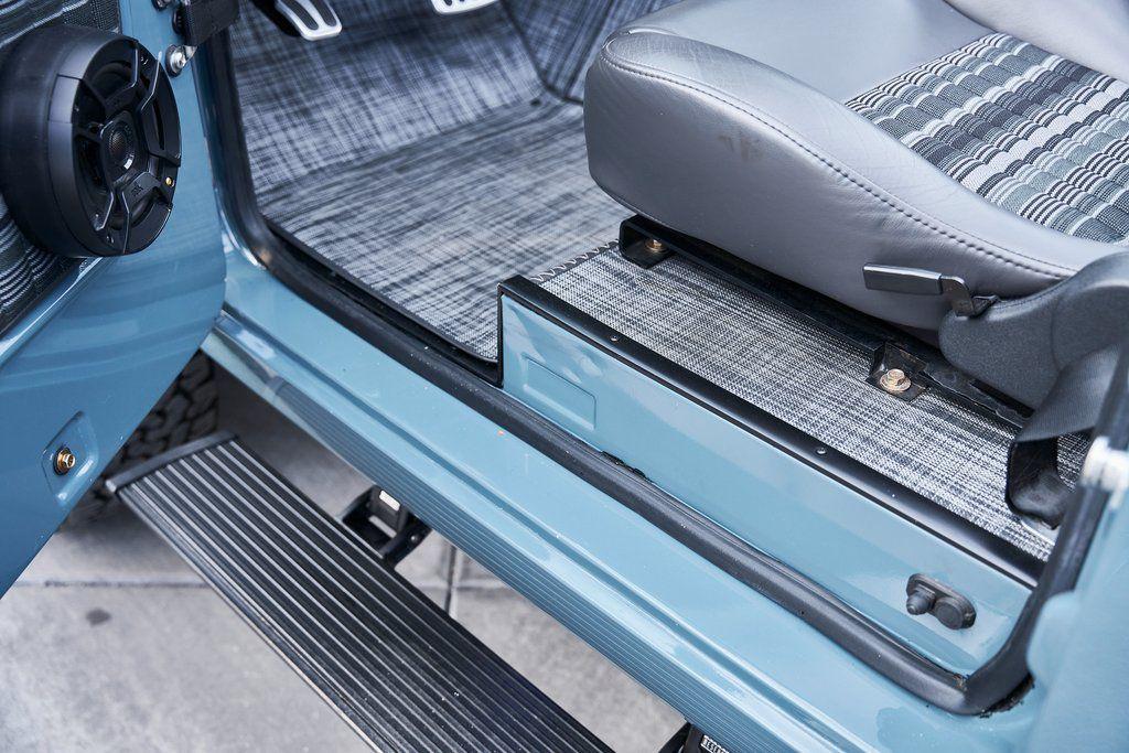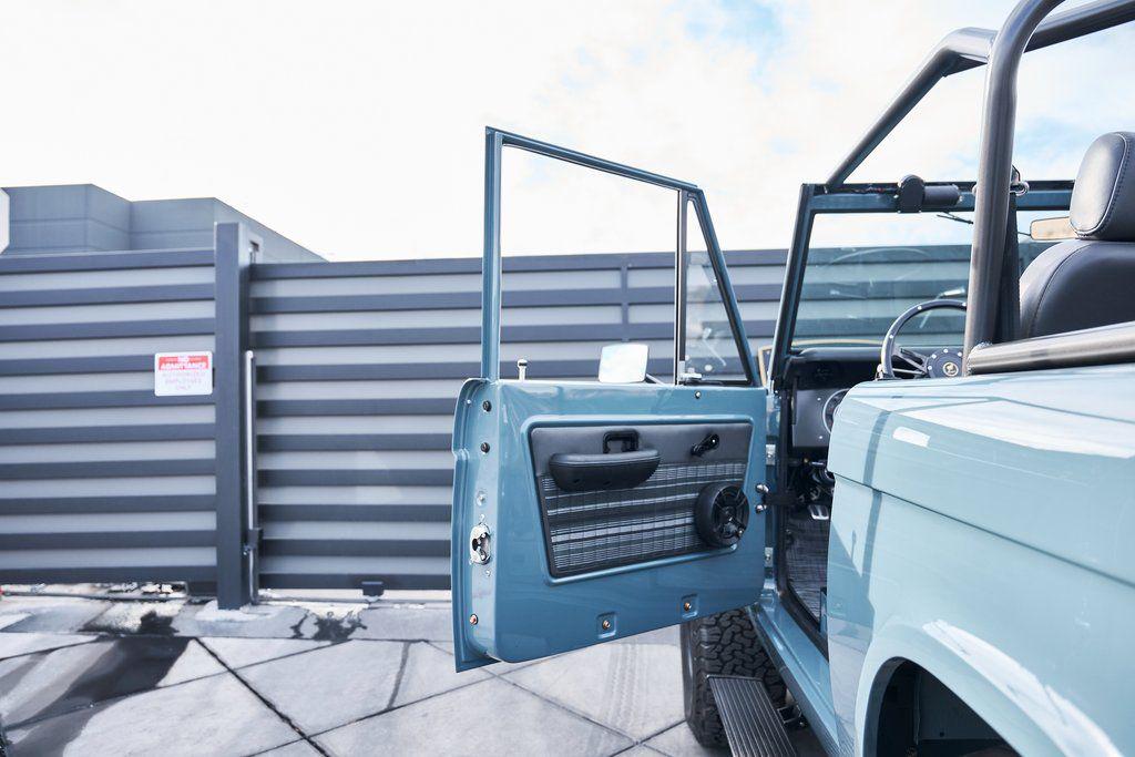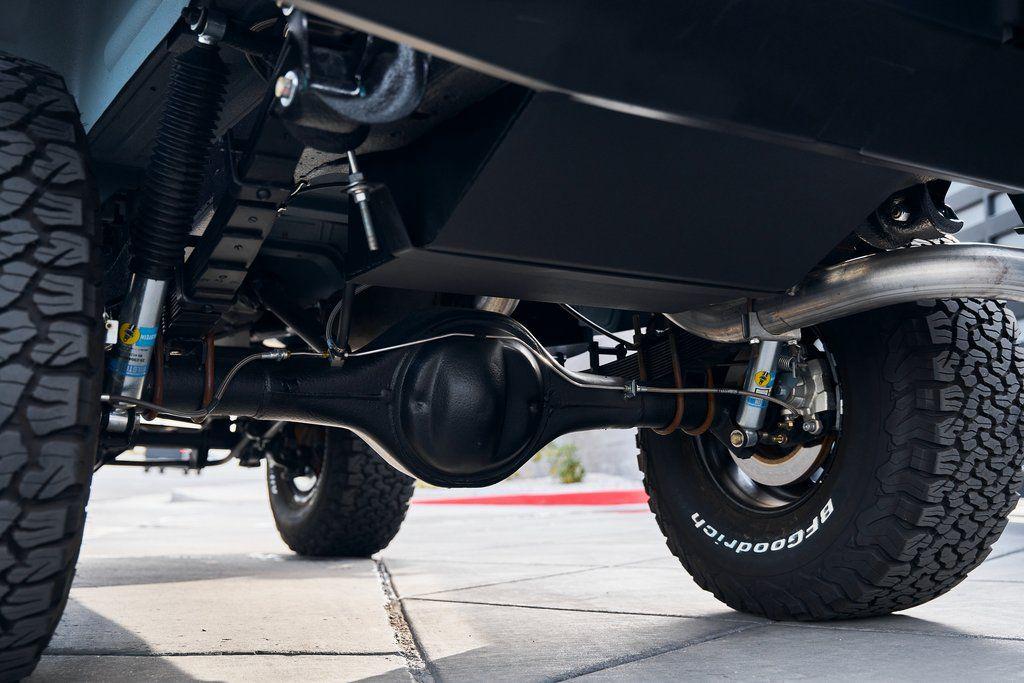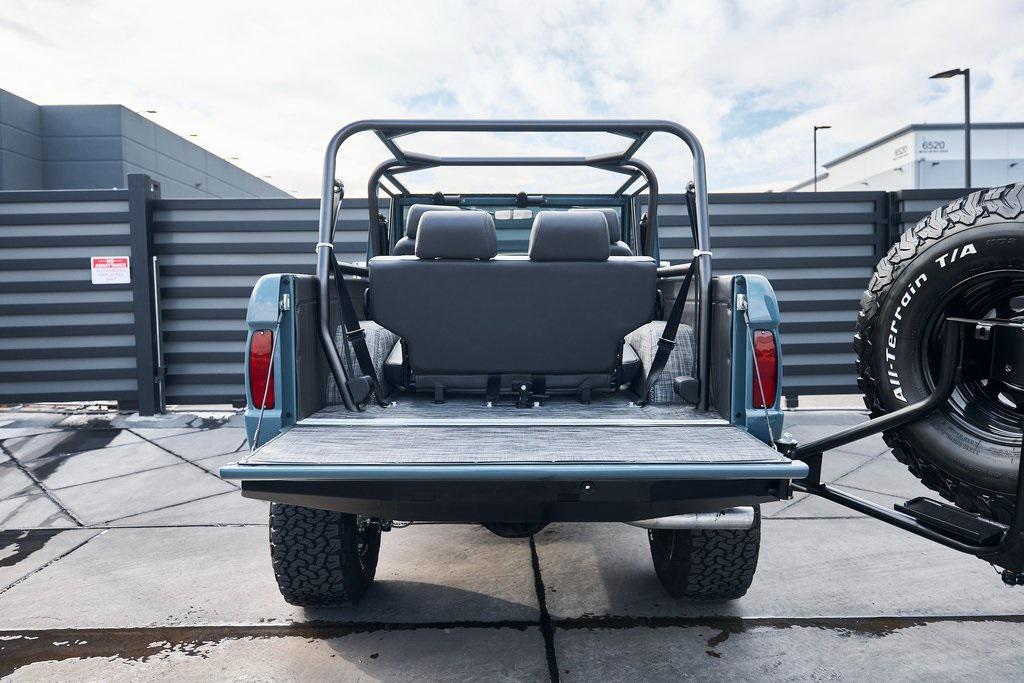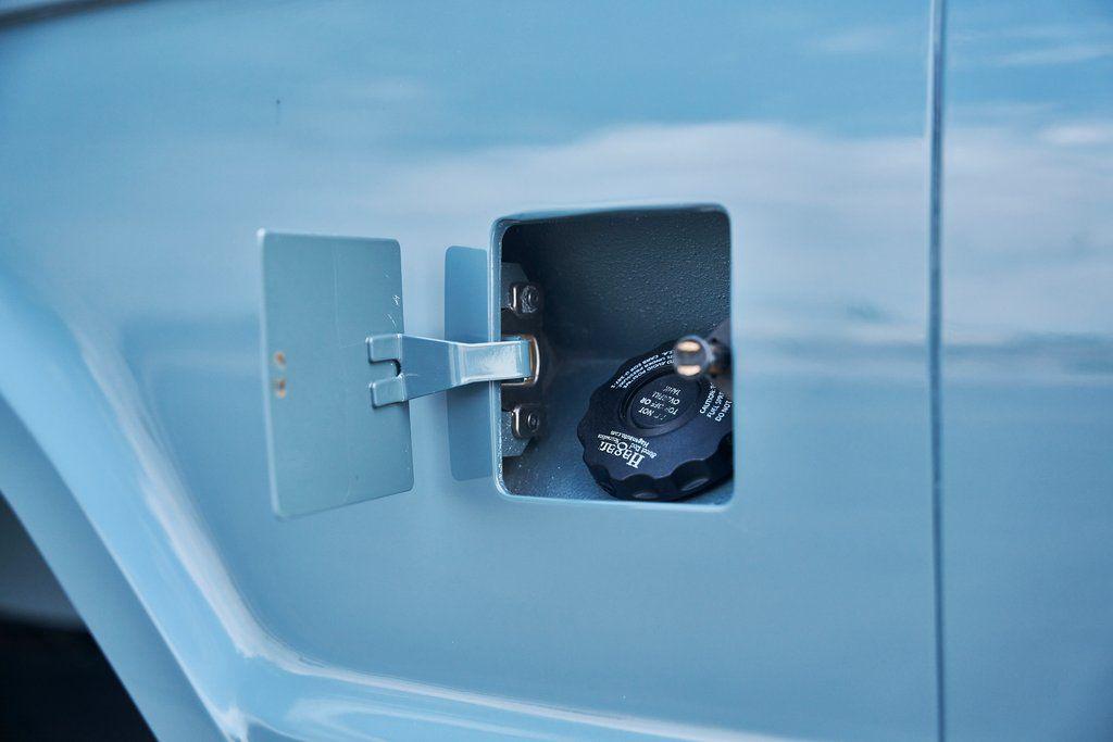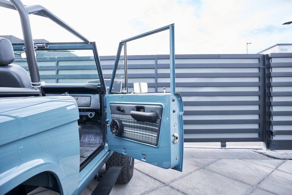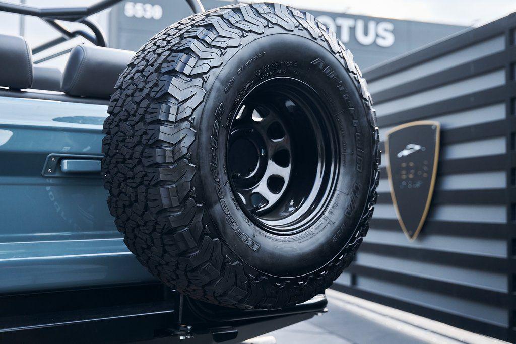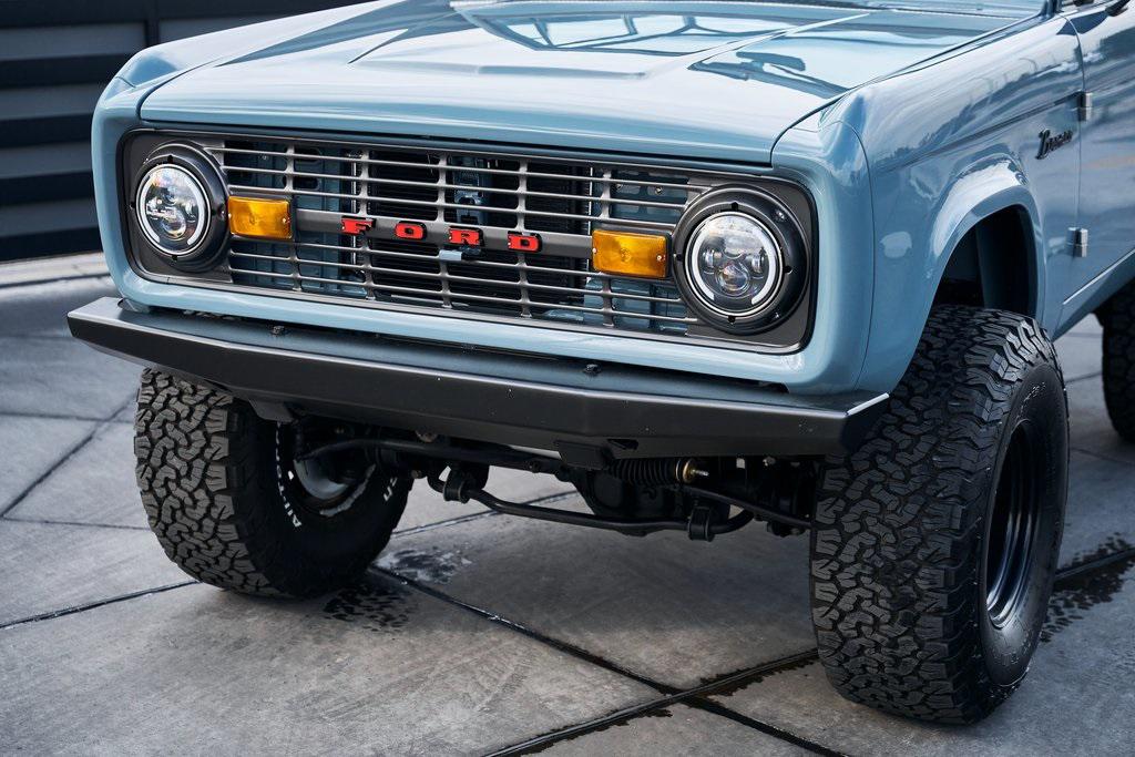 This 1977 Ford Bronco was refurbished and modified. Work consisted of repainting the truck in Ford (Area 51) Paint, applying rhino liner coating to the underbody, reupholstering the interior in charcoal gray leather with patterned cloth, and installing a 5.0-liter Coyote V8 linked with a six-speed 6R80 automatic transmission and a twin-stick dual-range transfer case. The interior is equipped with automatic climate control, an Icon center console, a Pioneer touchscreen infotainment system, a custom audio system, Dakota Digital instrumentation, and patterned floor coverings. Additional equipment includes LED headlights, charcoal gray-finished exterior trim and bumpers, a suspension lift kit, Bilstein shock absorbers, a hydroboost brake system, four-wheel disc brakes, manually locking front hubs, and black 15 steel wheels. The truck was repainted in its current shade of Area 51 during the refurbishment and details include a roll cage, LED headlights, tinted windows, stainless-steel door hinges, a receiver hitch, and a charcoal gray-finished grille, bumpers, exterior trim, and mirrors.Black 15 steel wheels are mounted with 33×12.50 BFGoodrich K02 All-Terrain tires. A suspension lift has been fitted along with power-assisted steering, a steering stabilizer, Bilstein shock absorbers, and manually locking front hubs. Braking is handled by four-wheel discs with a hydroboost system and aluminum master cylinder.The cabin houses bolstered front bucket seats and a rear bench trimmed in charcoal gray leather with patterned cloth inserts that extend to the dashboard pad, door panels, and rear trim. An automatic climate control system has been fitted, and a twin-stick transfer-case shifter, an Icon center console, a Pioneer touchscreen infotainment system, a custom audio system, aluminum pedals, and patterned floor coverings are also equipped.The three-spoke steering wheel frames a Dakota Digital RTX combination gauge with a 120-mph speedometer, a tachometer, and auxiliary readouts. Total mileage is unknown.A 5.0-liter, third generation, Coyote V8 with a custom exhaust system was fitted during the build at which time the wiring harness, battery, radiator, fans, belts, hoses, and fuel lines were replaced.Power is sent to the rear or all four wheels through a 6R80 six-speed automatic transmission and a dual-range transfer case as well as a Dana 44 front axle and a 9 rear end. A transmission cooler was also installed.This is an immaculate build and won't last long!