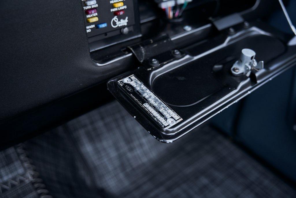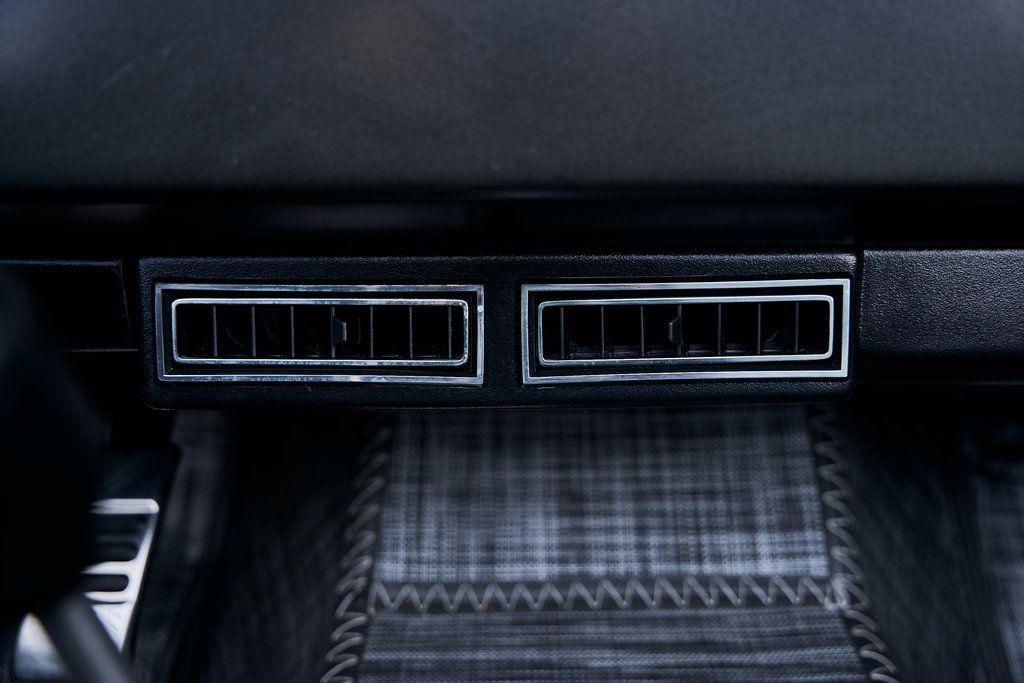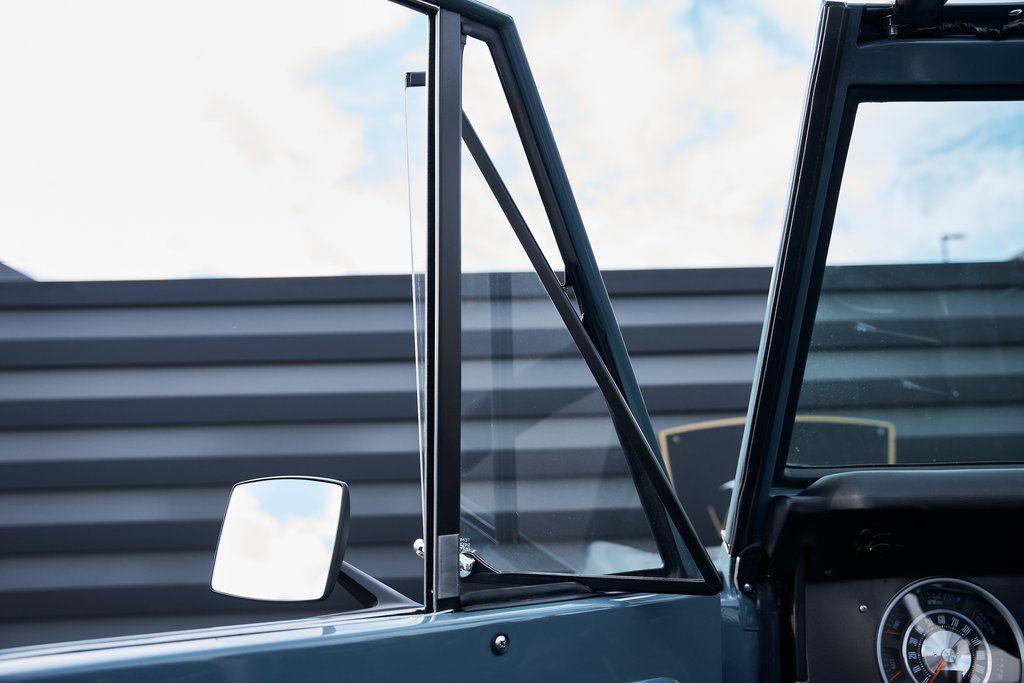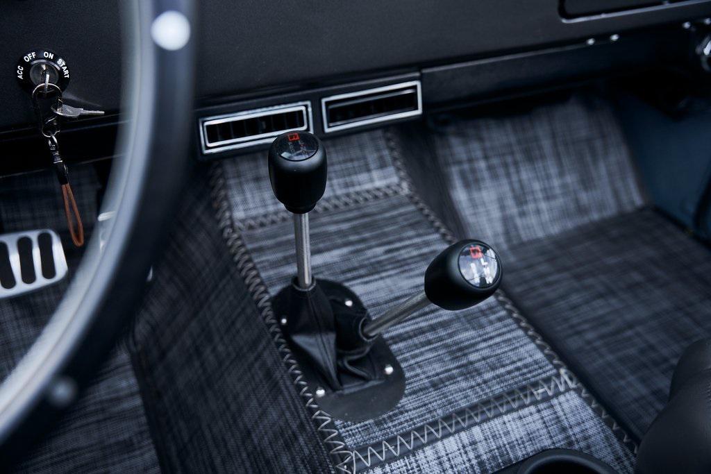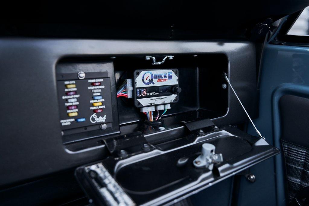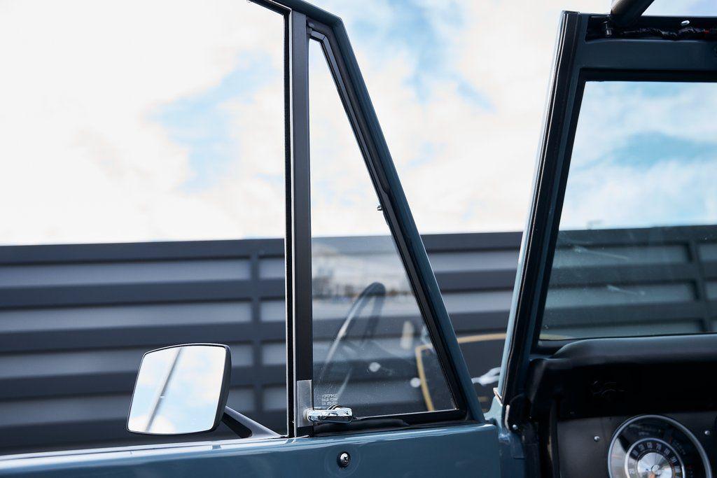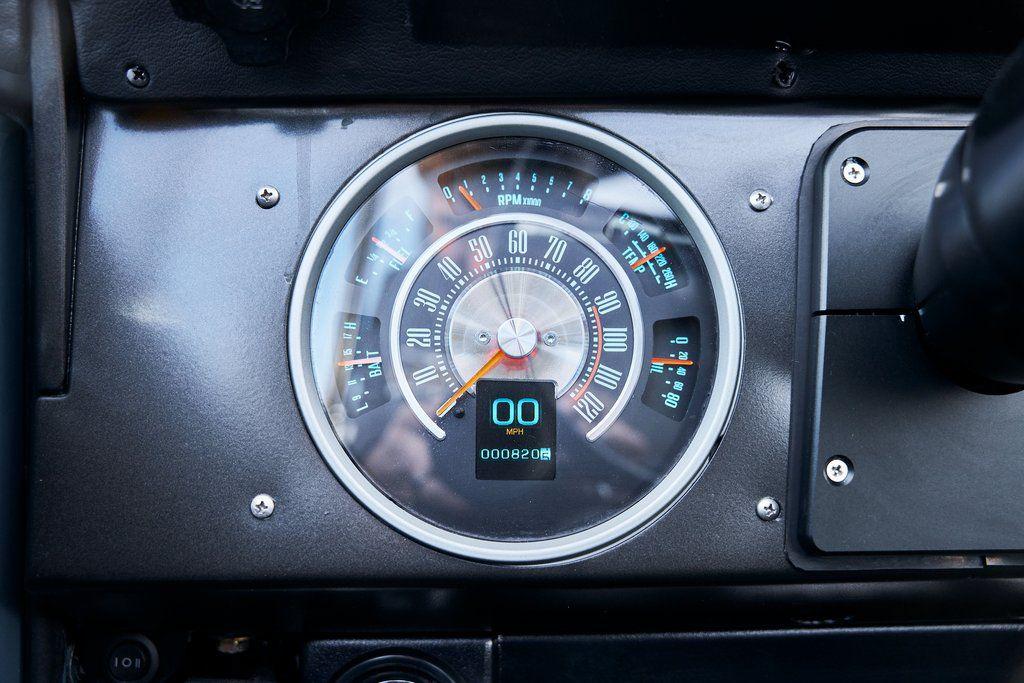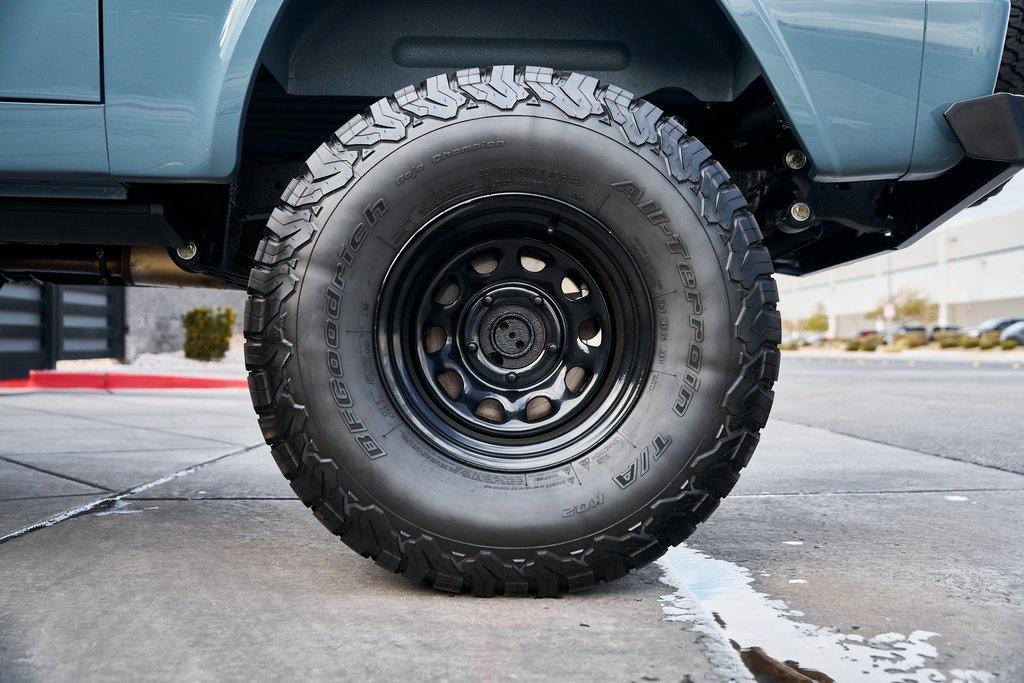 This 1977 Ford Bronco was refurbished and modified. Work consisted of repainting the truck in Ford (Area 51) Paint, applying rhino liner coating to the underbody, reupholstering the interior in charcoal gray leather with patterned cloth, and installing a 5.0-liter Coyote V8 linked with a six-speed 6R80 automatic transmission and a twin-stick dual-range transfer case. The interior is equipped with automatic climate control, an Icon center console, a Pioneer touchscreen infotainment system, a custom audio system, Dakota Digital instrumentation, and patterned floor coverings. Additional equipment includes LED headlights, charcoal gray-finished exterior trim and bumpers, a suspension lift kit, Bilstein shock absorbers, a hydroboost brake system, four-wheel disc brakes, manually locking front hubs, and black 15 steel wheels. The truck was repainted in its current shade of Area 51 during the refurbishment and details include a roll cage, LED headlights, tinted windows, stainless-steel door hinges, a receiver hitch, and a charcoal gray-finished grille, bumpers, exterior trim, and mirrors.Black 15 steel wheels are mounted with 33×12.50 BFGoodrich K02 All-Terrain tires. A suspension lift has been fitted along with power-assisted steering, a steering stabilizer, Bilstein shock absorbers, and manually locking front hubs. Braking is handled by four-wheel discs with a hydroboost system and aluminum master cylinder.The cabin houses bolstered front bucket seats and a rear bench trimmed in charcoal gray leather with patterned cloth inserts that extend to the dashboard pad, door panels, and rear trim. An automatic climate control system has been fitted, and a twin-stick transfer-case shifter, an Icon center console, a Pioneer touchscreen infotainment system, a custom audio system, aluminum pedals, and patterned floor coverings are also equipped.The three-spoke steering wheel frames a Dakota Digital RTX combination gauge with a 120-mph speedometer, a tachometer, and auxiliary readouts. Total mileage is unknown.A 5.0-liter, third generation, Coyote V8 with a custom exhaust system was fitted during the build at which time the wiring harness, battery, radiator, fans, belts, hoses, and fuel lines were replaced.Power is sent to the rear or all four wheels through a 6R80 six-speed automatic transmission and a dual-range transfer case as well as a Dana 44 front axle and a 9 rear end. A transmission cooler was also installed.This is an immaculate build and won't last long!