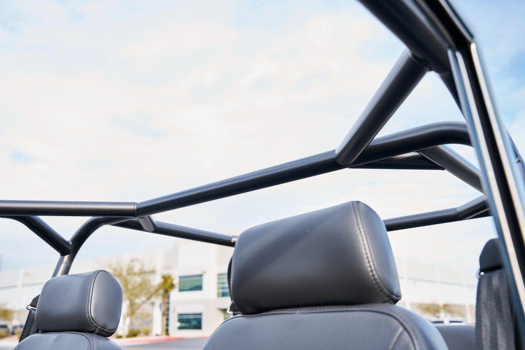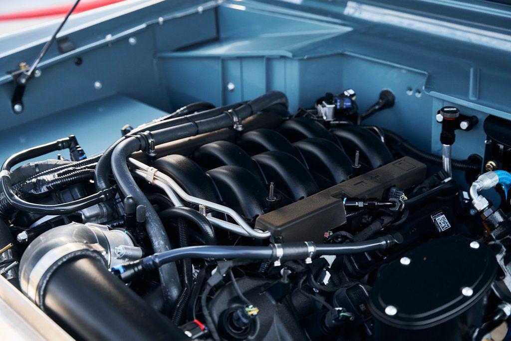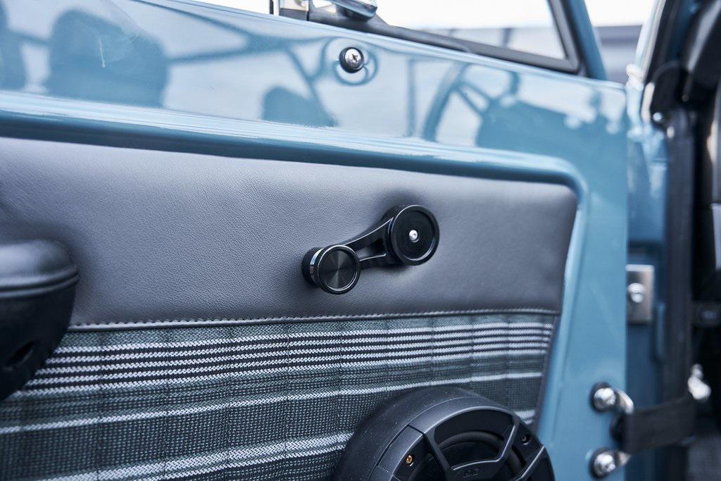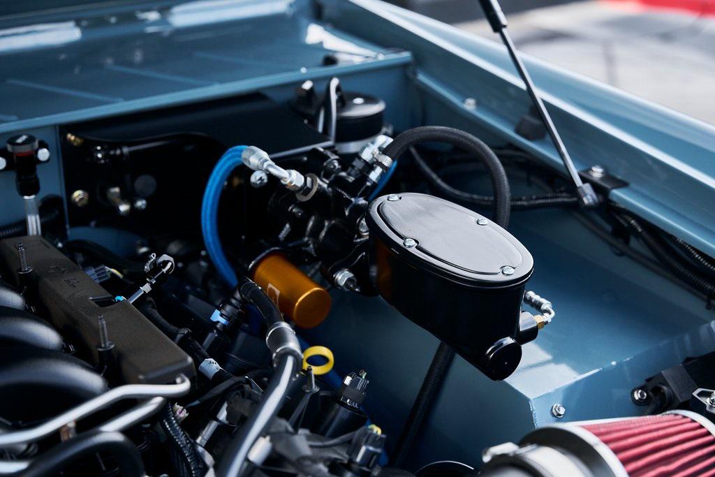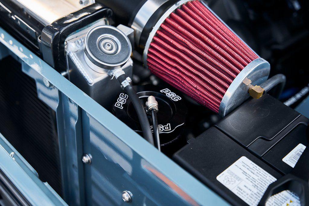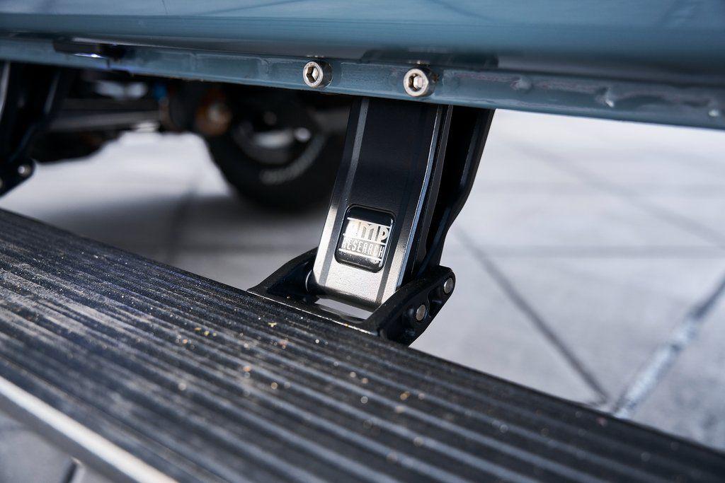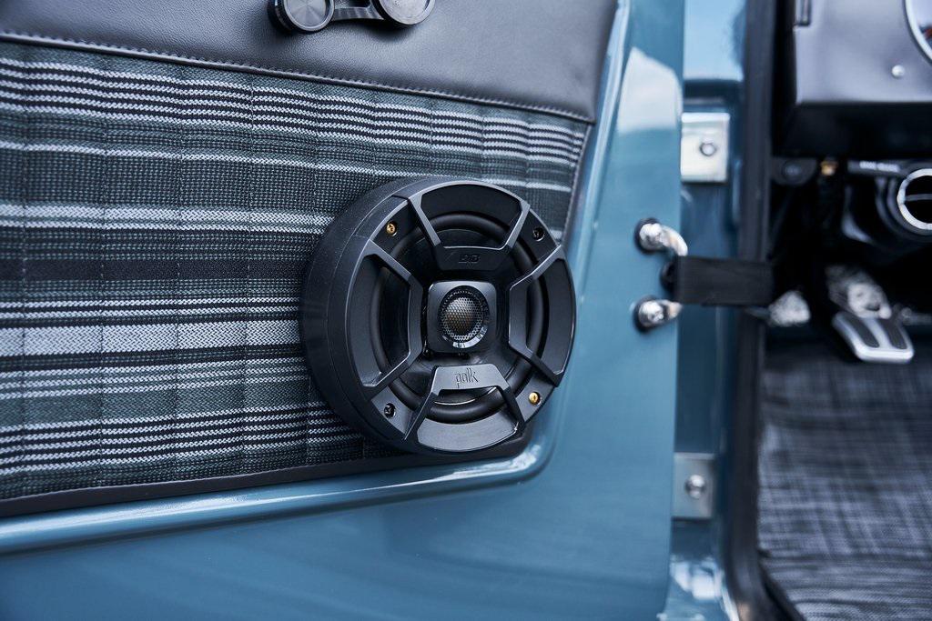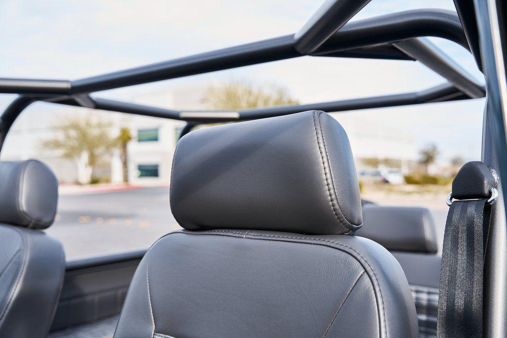 This 1977 Ford Bronco was refurbished and modified. Work consisted of repainting the truck in Ford (Area 51) Paint, applying rhino liner coating to the underbody, reupholstering the interior in charcoal gray leather with patterned cloth, and installing a 5.0-liter Coyote V8 linked with a six-speed 6R80 automatic transmission and a twin-stick dual-range transfer case. The interior is equipped with automatic climate control, an Icon center console, a Pioneer touchscreen infotainment system, a custom audio system, Dakota Digital instrumentation, and patterned floor coverings. Additional equipment includes LED headlights, charcoal gray-finished exterior trim and bumpers, a suspension lift kit, Bilstein shock absorbers, a hydroboost brake system, four-wheel disc brakes, manually locking front hubs, and black 15 steel wheels. The truck was repainted in its current shade of Area 51 during the refurbishment and details include a roll cage, LED headlights, tinted windows, stainless-steel door hinges, a receiver hitch, and a charcoal gray-finished grille, bumpers, exterior trim, and mirrors.Black 15 steel wheels are mounted with 33×12.50 BFGoodrich K02 All-Terrain tires. A suspension lift has been fitted along with power-assisted steering, a steering stabilizer, Bilstein shock absorbers, and manually locking front hubs. Braking is handled by four-wheel discs with a hydroboost system and aluminum master cylinder.The cabin houses bolstered front bucket seats and a rear bench trimmed in charcoal gray leather with patterned cloth inserts that extend to the dashboard pad, door panels, and rear trim. An automatic climate control system has been fitted, and a twin-stick transfer-case shifter, an Icon center console, a Pioneer touchscreen infotainment system, a custom audio system, aluminum pedals, and patterned floor coverings are also equipped.The three-spoke steering wheel frames a Dakota Digital RTX combination gauge with a 120-mph speedometer, a tachometer, and auxiliary readouts. Total mileage is unknown.A 5.0-liter, third generation, Coyote V8 with a custom exhaust system was fitted during the build at which time the wiring harness, battery, radiator, fans, belts, hoses, and fuel lines were replaced.Power is sent to the rear or all four wheels through a 6R80 six-speed automatic transmission and a dual-range transfer case as well as a Dana 44 front axle and a 9 rear end. A transmission cooler was also installed.This is an immaculate build and won't last long!