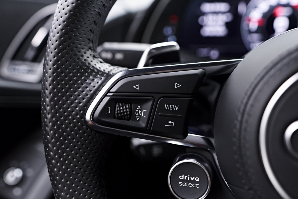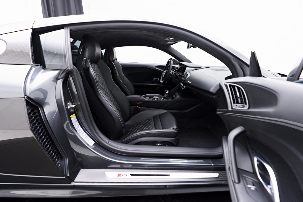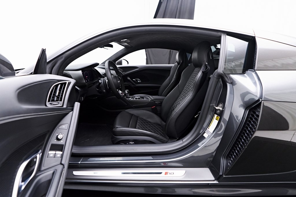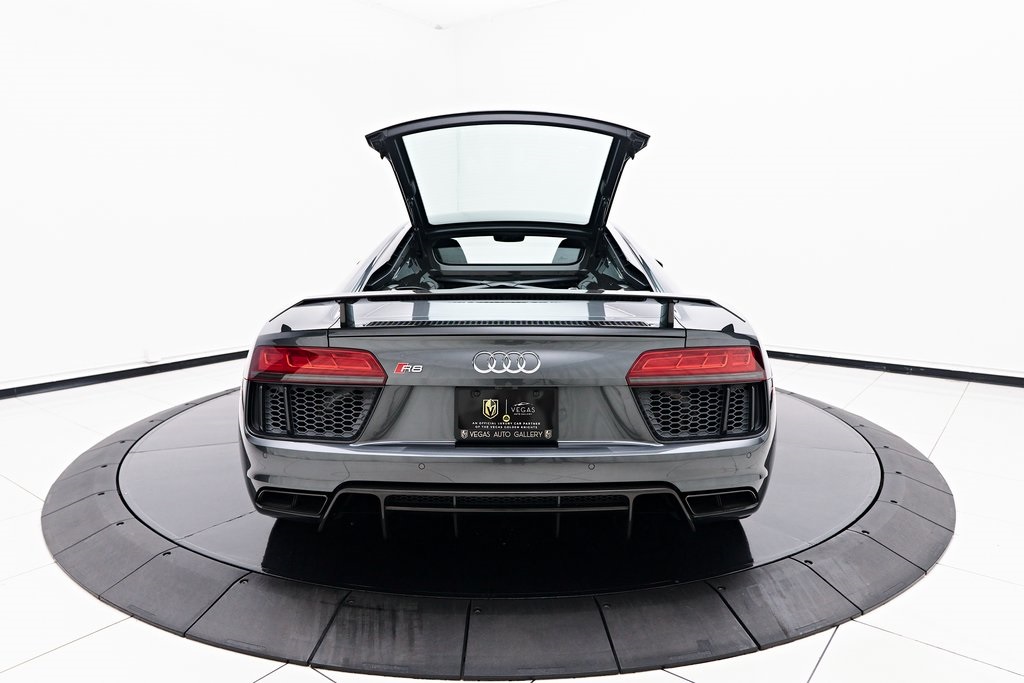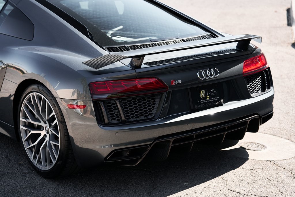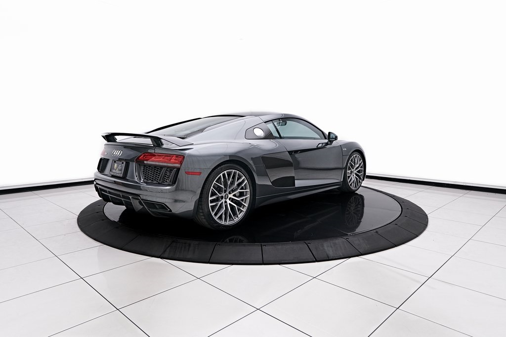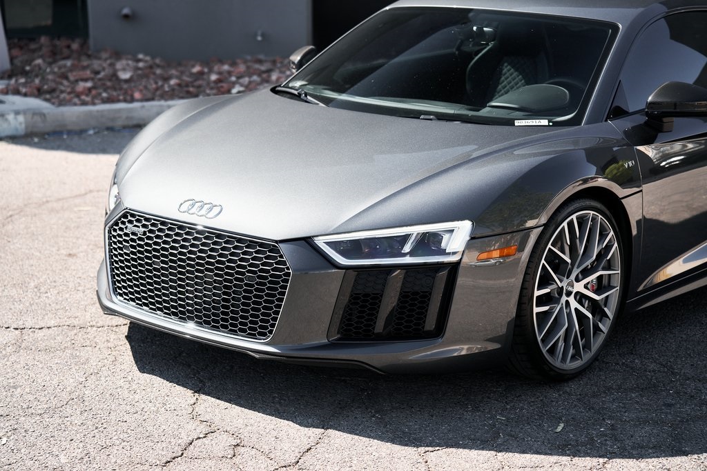 2017 AUDI R8 V10 PLUSBANG & OLUFSEN SOUND SYSTEM, BLACK W/EXPRESS RED STITCHED INTERIOR, DAYTONA GRAY PEARL, AND MORE!OVERVIEWThe 2017 Audi R8 represents the pinnacle of V10 motoring from Audi's performance division, blending the everyday usability of a grand tourer with the thrill of a naturally aspirated supercar. Power comes from a 5.2-liter naturally aspirated V10, producing 610 horsepower and 413 lb-ft of torque, paired with a 7-speed dual-clutch transmission and sent to all four wheels. The result is lightning-fast gear changes and a 0-60 mph sprint in just 3.2 seconds, accompanied by the distinct roar of the high-revving V10. The R8 features a design that is low, wide, and purposeful, with sharp creases, large air intakes, and Audi's signature Singleframe grille giving it an unmistakable presence. The chassis features a lightweight aluminum and carbon-fiber construction with Audi's dynamic steering system to deliver both sharp handling and long-distance comfort. Inside, the cabin strikes the ideal balance between luxury and focus. Fine Nappa leather sport seats, a 12.3-inch Audi Virtual Cockpit display, and Bang & Olufsen Audio emphasize performance while maintaining Audi's premium feel. The 2017 R8 V10 stands as one of the last naturally aspirated supercars available today, and its combination of distinctive design, Teutonic engineering, and everyday usability makes it a truly special car in its class.OPTIONAL EQUIPMENTDaytona Gray Pearl Effect $575Black Fine Nappa Leather w/Express Red StitchingFull Leather Package $3,000Bang & Olufsen Sound System $1,900Dynamic Steering $1,400All Weather Floor Mats $545Contrast Stitching $500First Aid Kit $45GENERALYear: 2017Mileage: 33,207VIN #: WUAKBAFX4H7903691Engine Size: 5.2L V10Class: CoupeHorsepower: 610Color: Daytona Gray Pearl Effect Interior: Black Fine Nappa Leather w/Express Red StitchingFuel: Unleaded Premium GasolineGear Box: 7-Speed AutomaticDoors: 2Seats: 2Cylinders: 10SAFETY EQUIPMENTOutboard Front Lap and Shoulder Safety BeltsAirbag Occupancy SensorCurtain 1st and 2nd Row AirbagsDual Stage Driver and Passenger Front AirbagsTire Specific Low Tire Pressure WarningTraction ControlAnti-Locking BrakesPerimeter AlarmFront & Rear Parking SensorsADDITIONAL INFORMATION1 Key IncludedBalance of Factory Warranty (if applicable)Extended Warranties Available