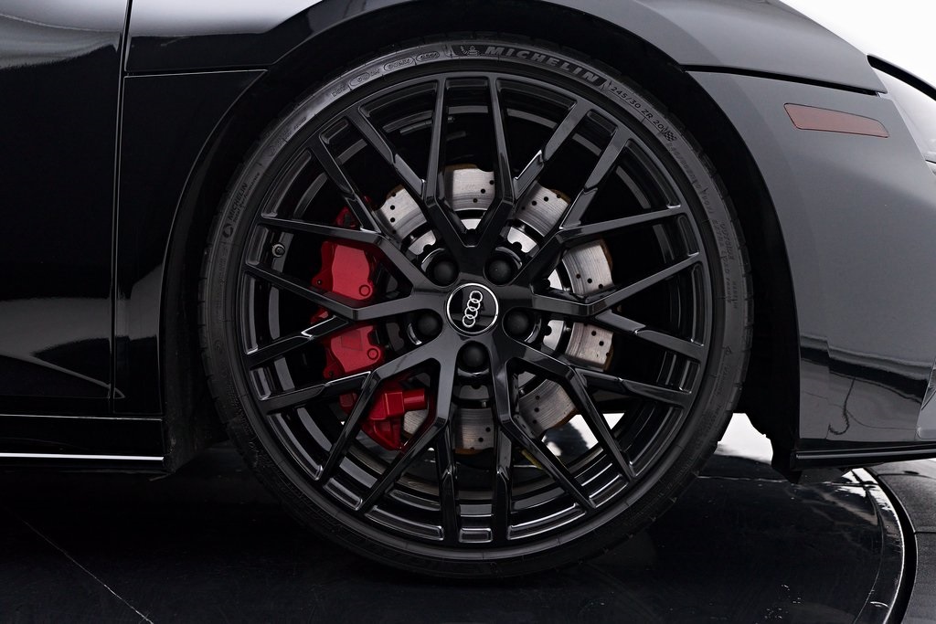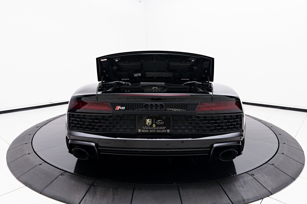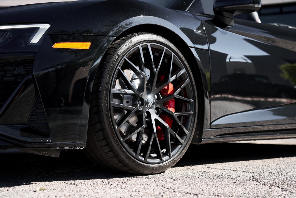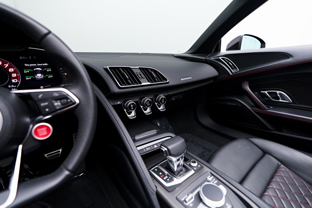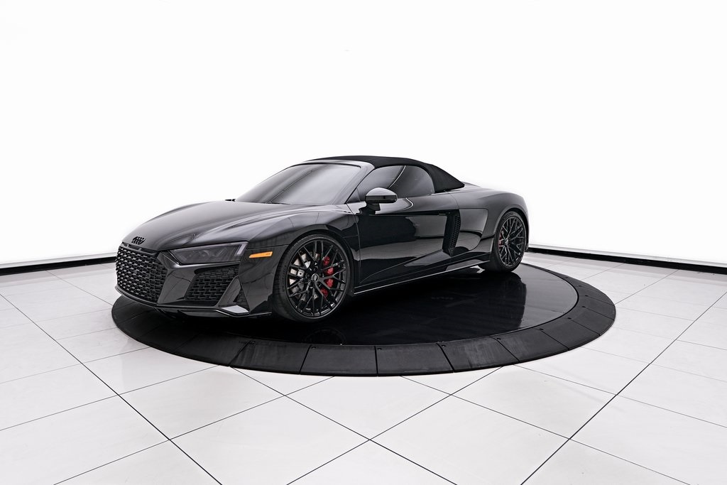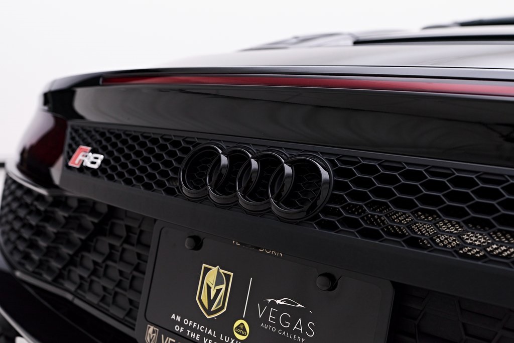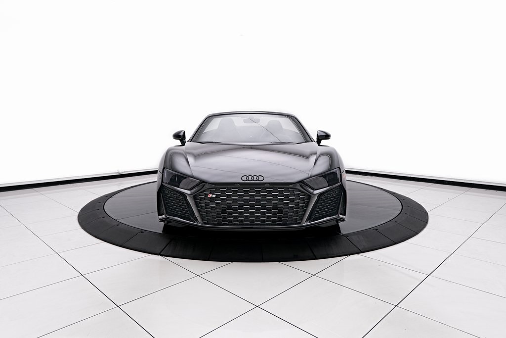 2020 AUDI R8 V10 SPYDER BANG & OLUFSEN SOUND SYSTEM, BLACK W/RED STITCHED INTERIOR, MYTHOS BLACK METALLIC, AND MORE!OVERVIEWThe 2020 Audi R8 V10 Spyder represents the pinnacle of open-air motoring from Audi's performance division, blending the everyday usability of a grand tourer with the thrill of a naturally aspirated supercar. Power comes from a 5.2-liter naturally aspirated V10, producing 562 horsepower and 406 lb-ft of torque, paired with a 7-speed dual-clutch transmission and Quattro all-wheel drive. The result is lightning-fast gear changes and a 0-60 mph sprint in just 3.5 seconds, accompanied by the distinct roar of the high-revving V10 as the roof folds away. The R8 features a design that is low, wide, and purposeful, with sharp creases, large air intakes, and Audi's signature Singleframe grille giving it an unmistakable presence. The chassis features a lightweight aluminum and carbon-fiber construction with Audi's dynamic steering system to deliver both sharp handling and long-distance comfort. Inside, the cabin strikes the ideal balance between luxury and focus. Fine Nappa leather sport seats, a 12.3-inch Audi Virtual Cockpit display, and Bang & Olufsen Audio emphasize performance while maintaining Audi's premium feel. The 2020 R8 V10 Spyder stands as one of the last naturally aspirated supercars available today, and its combination of open-top driving, Teutonic engineering, and everyday usability makes it a truly special car in its class.OPTIONAL EQUIPMENTMythos Black Metallic $595Black Fine Nappa Leather w/Red Stitching Diamond Stitch Leather Package $3,500Full Leather PackageDiamond Stitched Seats20"" 10-Spoke Y Design Wheels $1,500Red Brake Calipers $700Contrast Stitching $500GENERALYear: 2020Mileage: 25,142VIN #: WUAVECFX7L7900826Engine Size: 5.2L V10Class: SpyderHorsepower: 562Color: Mythos Black Metallic Interior: Black Fine Nappa Leather w/Red StitchingFuel: Unleaded Premium GasolineGear Box: 7-Speed AutomaticDoors: 2Seats: 2Cylinders: 10SAFETY EQUIPMENTOutboard Front Lap and Shoulder Safety BeltsAirbag Occupancy SensorCurtain 1st and 2nd Row AirbagsDual Stage Driver and Passenger Front AirbagsTire Specific Low Tire Pressure WarningTraction ControlAnti-Locking BrakesPerimeter AlarmFront & Rear Parking SensorsADDITIONAL INFORMATION1 Key IncludedBalance of Factory Warranty (if applicable)Extended Warranties Available
