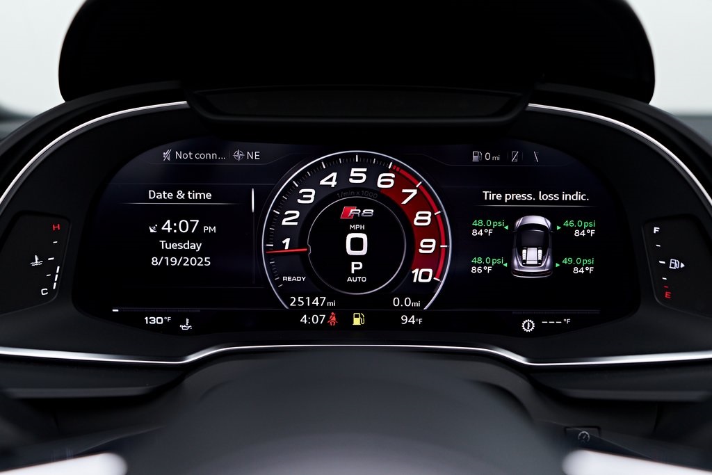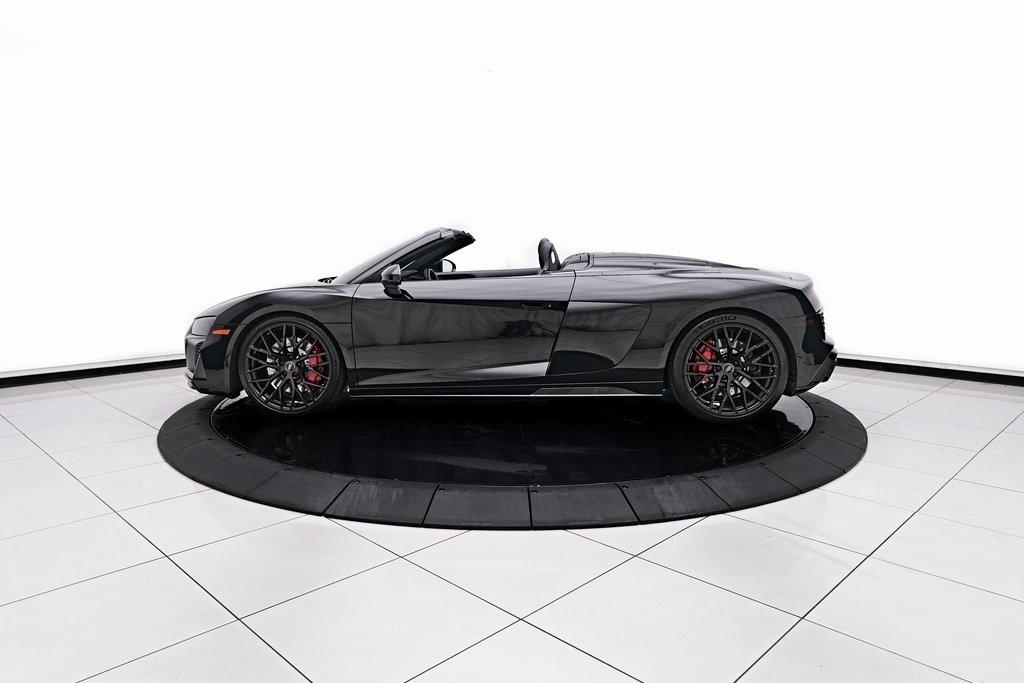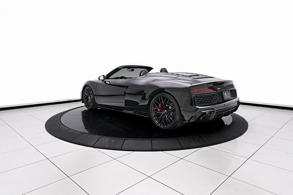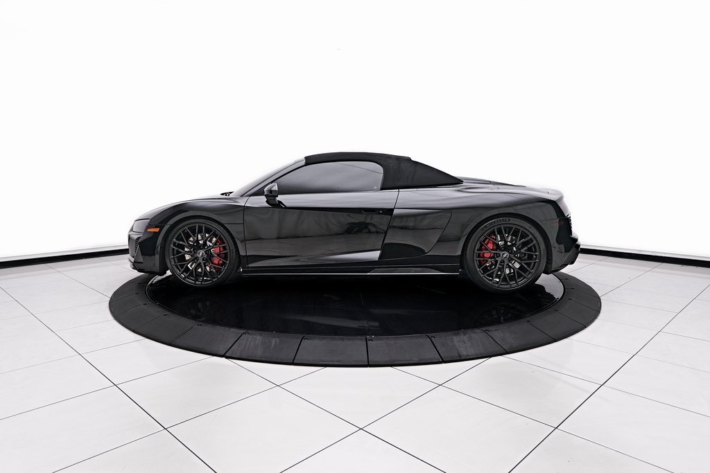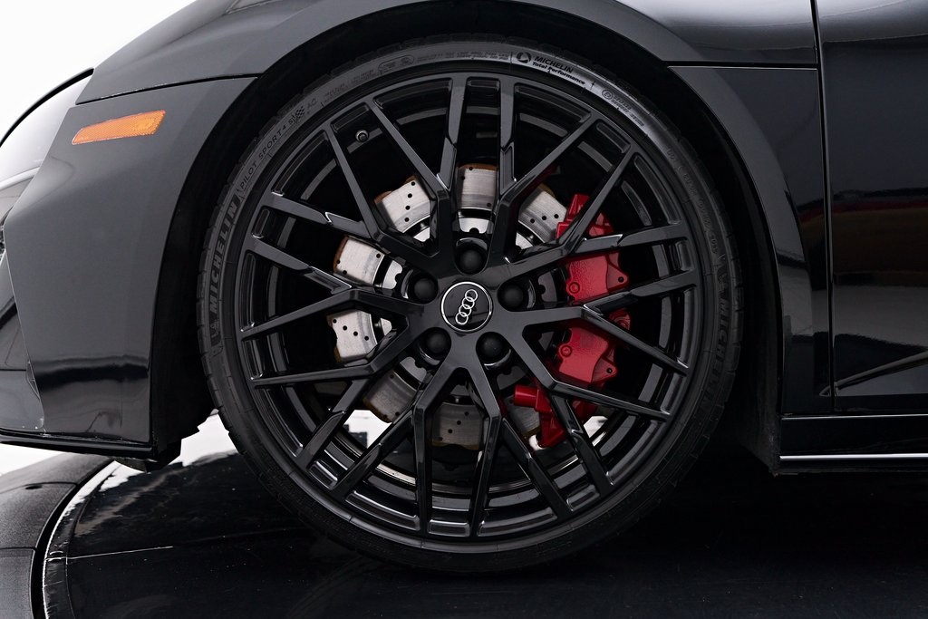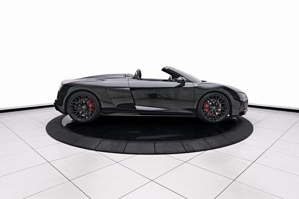 2020 AUDI R8 V10 SPYDER BANG & OLUFSEN SOUND SYSTEM, BLACK W/RED STITCHED INTERIOR, MYTHOS BLACK METALLIC, AND MORE!OVERVIEWThe 2020 Audi R8 V10 Spyder represents the pinnacle of open-air motoring from Audi's performance division, blending the everyday usability of a grand tourer with the thrill of a naturally aspirated supercar. Power comes from a 5.2-liter naturally aspirated V10, producing 562 horsepower and 406 lb-ft of torque, paired with a 7-speed dual-clutch transmission and Quattro all-wheel drive. The result is lightning-fast gear changes and a 0-60 mph sprint in just 3.5 seconds, accompanied by the distinct roar of the high-revving V10 as the roof folds away. The R8 features a design that is low, wide, and purposeful, with sharp creases, large air intakes, and Audi's signature Singleframe grille giving it an unmistakable presence. The chassis features a lightweight aluminum and carbon-fiber construction with Audi's dynamic steering system to deliver both sharp handling and long-distance comfort. Inside, the cabin strikes the ideal balance between luxury and focus. Fine Nappa leather sport seats, a 12.3-inch Audi Virtual Cockpit display, and Bang & Olufsen Audio emphasize performance while maintaining Audi's premium feel. The 2020 R8 V10 Spyder stands as one of the last naturally aspirated supercars available today, and its combination of open-top driving, Teutonic engineering, and everyday usability makes it a truly special car in its class.OPTIONAL EQUIPMENTMythos Black Metallic $595Black Fine Nappa Leather w/Red Stitching Diamond Stitch Leather Package $3,500Full Leather PackageDiamond Stitched Seats20"" 10-Spoke Y Design Wheels $1,500Red Brake Calipers $700Contrast Stitching $500GENERALYear: 2020Mileage: 25,142VIN #: WUAVECFX7L7900826Engine Size: 5.2L V10Class: SpyderHorsepower: 562Color: Mythos Black Metallic Interior: Black Fine Nappa Leather w/Red StitchingFuel: Unleaded Premium GasolineGear Box: 7-Speed AutomaticDoors: 2Seats: 2Cylinders: 10SAFETY EQUIPMENTOutboard Front Lap and Shoulder Safety BeltsAirbag Occupancy SensorCurtain 1st and 2nd Row AirbagsDual Stage Driver and Passenger Front AirbagsTire Specific Low Tire Pressure WarningTraction ControlAnti-Locking BrakesPerimeter AlarmFront & Rear Parking SensorsADDITIONAL INFORMATION1 Key IncludedBalance of Factory Warranty (if applicable)Extended Warranties Available
