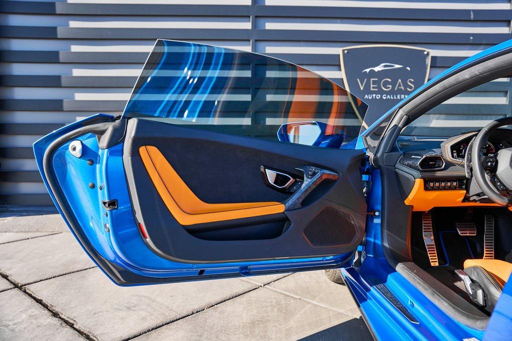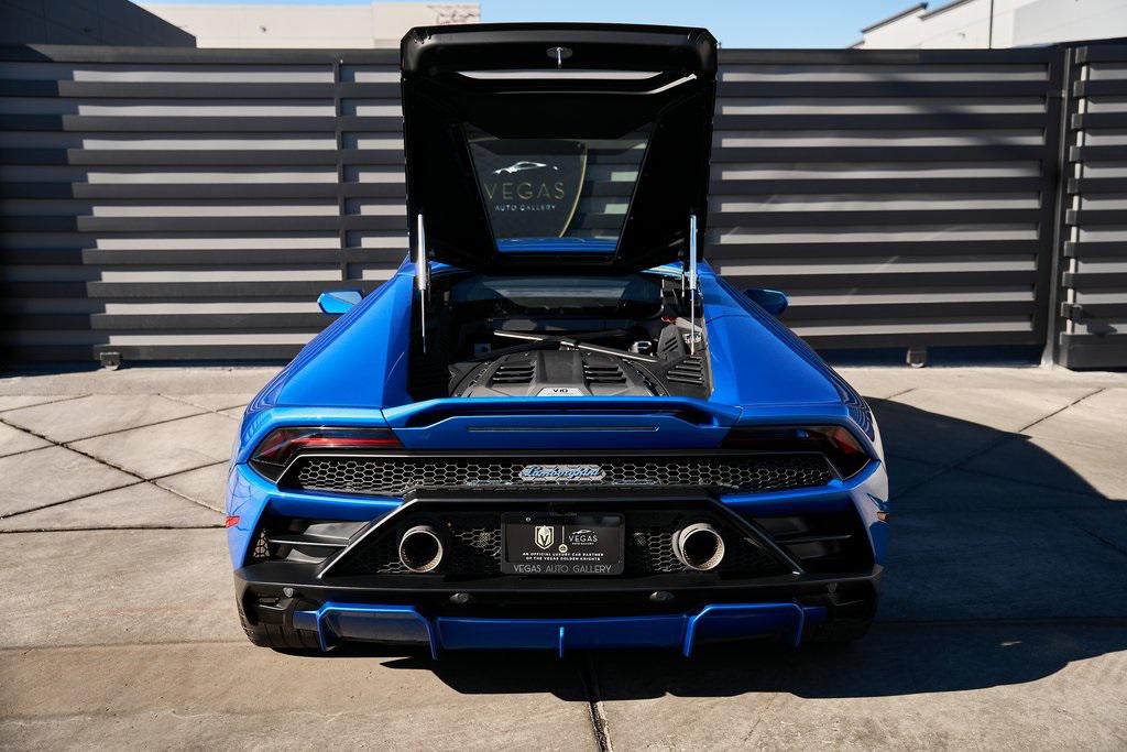 2020 LAMBORGHINI HURACAN EVO LEATHER HEADLINER, RACING SEATS, CARBON FIBER INTERIOR TRIM, AND MORE!OVERVIEWThe 2020 Lamborghini Huracan EVO is a supercar that bridges raw emotion with cutting-edge technology, blending the unmistakable sound of a naturally aspirated V10 with razor-sharp handling and aggressive Italian design. It's the evolution of Lamborghini's mid-engine icon––sharper, smarter, and more exhilarating than ever before. Mounted behind the driver is a 5.2-liter naturally aspirated V10, producing 602 horsepower and 443 lb-ft of torque, sending power to the rear wheels through a lightning-fast 7-speed dual-clutch transmission. With a 060 mph time of just 3.3 seconds and a top speed over 202 mph, the Huracan EVO delivers relentless acceleration and an intoxicating exhaust note that builds to a howling crescendo at 8,000+ rpm. The real magic comes from Lamborghini's advanced LDVI system (Lamborghini Dinamica Veicolo Integrata)––an integrated assistant that predicts driver inputs and road conditions in real time to optimize handling, traction, and stability. With this system, the Huracan EVO is as confident in tight switchbacks as it is on wide-open straights. Visually, the EVO refines the Huracan's dramatic styling with different front and rear bumpers, as well as a larger integrated rear diffuser. Inside, the cabin is trimmed in Nero Ade/Arancio Leonis leather, with carbon fiber trim and contrast stitching throughout. The center console houses an 8.4-inch touchscreen with smartphone connectivity, performance telemetry, and voice control. Driver-focused yet daily-drivable, the EVO offers selectable drive modes––Strada, Sport, and Corsa––allowing you to tailor the experience from relaxed cruising to track-focused precision. With its naturally aspirated soul, futuristic driving dynamics, and unmistakable Lamborghini character, the Huracan EVO is a true celebration of what a modern supercar should be.OPTIONAL EQUIPMENTBlu Eleos MetallicNero Ade/Arancio Leonis Leather $4,700Racing Seats19"" Shiny Black Vanir Wheels $2,000Transparent Engine Bonnet $6,000Front Axle Lift System $4,000Small Forged Composites Package $3,300Leather Headliner & A Pillars $1,400Floor Mats w/Leather Piping $600Stitching On Steering Wheel $200Steel Brakes w/Orange CalipersGENERALYear: 2020Mileage: 7,479VIN #: ZHWUF5ZF2LLA14435Engine Size: 5.2L V10Class: CoupeHorsepower: 602Color: Blu Eleos MetallicInterior: Nero Ade/Arancio Leonis LeatherFuel: Premium Unleaded GasolineGear Box: 7-Speed AutomaticDoors: 2Seats: 2Cylinders: 10SAFETY EQUIPMENTOutboard Front Lap and Shoulder Safety BeltsAirbag Occupancy SensorCurtain 1st and 2nd Row AirbagsDual Stage Driver and Passenger Front AirbagsTire Specific Low Tire Pressure WarningRear Backup Camera & Parking Sensors ABS & Driveline Traction Control LDVI Electronic Stability Control Anti-Locking BrakesADDITIONAL INFORMATION1 Key IncludedBalance of Factory Warranty (if applicable)Extended Warranties Available
