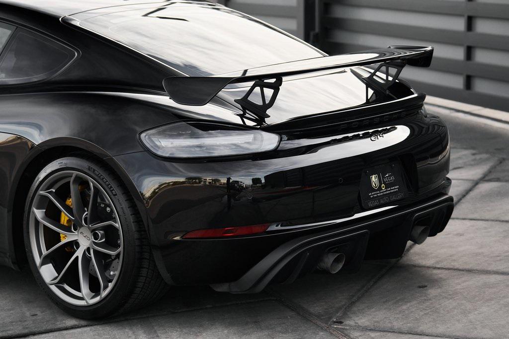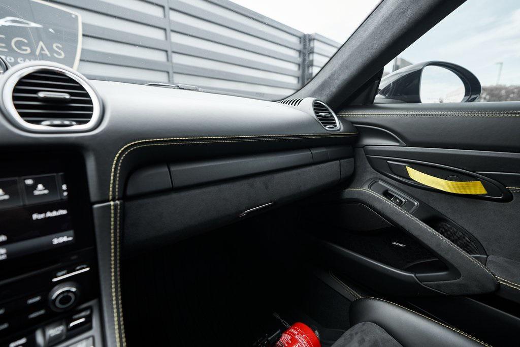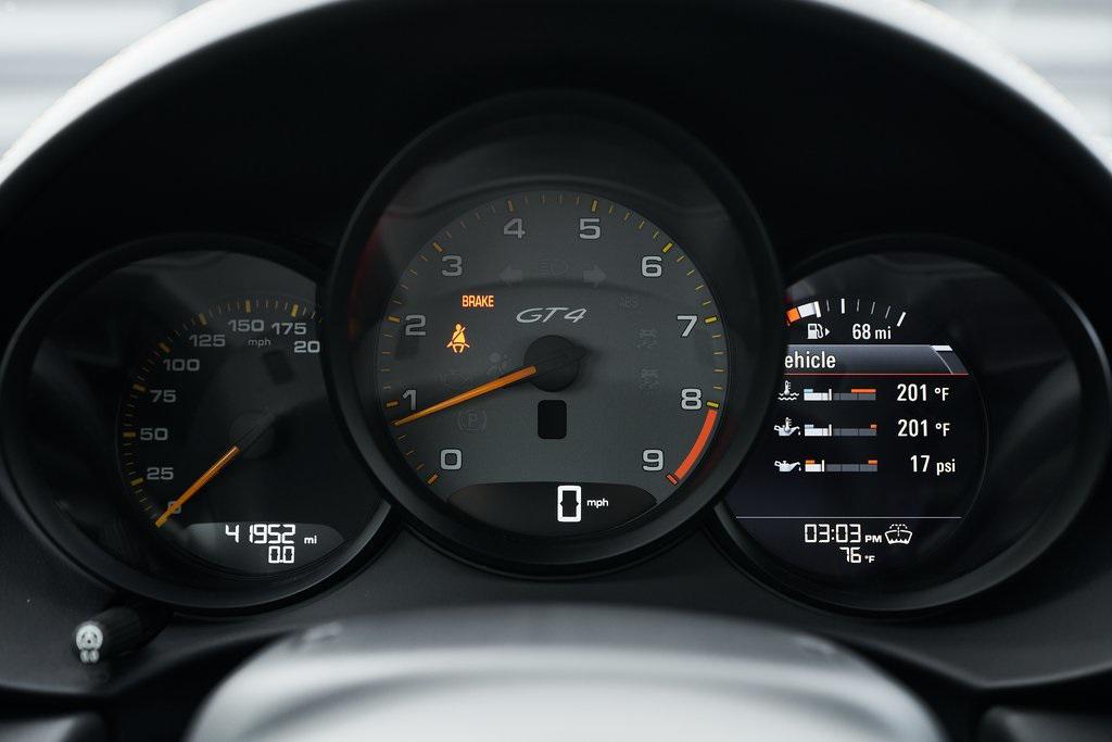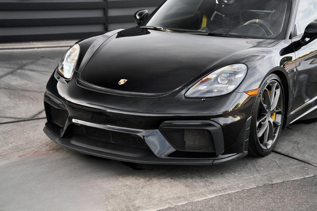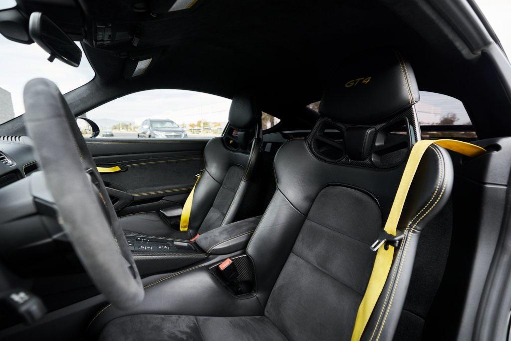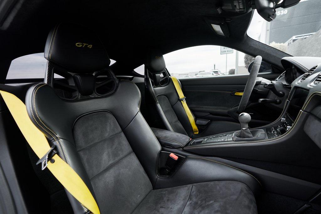 2020 PORSCHE 718 CAYMAN GT46-SPEED MANUAL, CERAMIC COMPOSITE BRAKES, CARBON BUCKET SEATS, BOSE SOUND SYSTEM, APPLE CAR PLAY, AND MORE!OVERVIEWThe 2020 Porsche 718 Cayman GT4 embodies the essence of Porsche's motorsport philosophy––raw, mechanical, and driver-centric. With its naturally aspirated engine, manual transmission, and track-focused engineering, the GT4 reconnects the driver to everything that made Porsche great. At its core lies a 4.0-liter naturally aspirated flat-six, derived from the 911 Carrera's engine architecture but re-engineered for precision and response. Producing 414 horsepower and 309 lb-ft of torque, it revs to a spine-tingling 8,000 rpm, delivering instant throttle response and a soundtrack that guarantees to make you grin. Paired with a 6-speed manual transmission, the GT4 sprints from 0-60 mph in 4.2 seconds and reaches a top speed of 188 mph. Underneath, the GT4's brilliance lies in its chassis. It borrows heavily from the 911 GT3, with adjustable suspension, Porsche Active Suspension Management, and mechanical limited-slip differential. The aerodynamic package––including the fixed rear wing, vented front fascia, and functional rear diffuser––generates up to 50% more downforce than its predecessor, ensuring grip and stability at high speeds. Visually, the GT4's lowered stance, wide air intakes, center-exit exhaust, and signature 20-inch forged wheels give it a purposeful, track-ready presence. Inside, the cockpit is designed for drivers who crave focus. Alcantara and leather upholstery, carbon fiber bucket seats, and an analog tachometer take center stage. Modern conveniences like Porsche Communication Management, Apple CarPlay, and a BOSE sound system add subtle refinement without diluting the experience. As a naturally aspirated manual Porsche in a world of turbos and automatics, the 718 Cayman GT4 it stands as a testament to purity, precision, and passion in equal measure.OPTIONAL EQUIPMENTBlackBlack Leather w/Yellow Stitch $2,160Carbon Fiber Bucket Seats $5,900Porsche Ceramic Composite Brakes $8,000Navigation w/Porsche Connect $2,320LED Headlights $2,140Dashboard In Leather $1,610Deviated Stitching $1,500Carbon Fiber Door Sill Guards $1,210BOSE Surround Sound System $9902-Zone Automatic Climate $770Inner Door Sill Guards In Leather $620Alcantara Sun Visors $590Chrono Package $550Floor Mats w/Leather Piping $460Apple CarPlay $360Seat Belts In Racing Yellow $360GT4 Logo In Gloss Black $350Light Design Package $350Steering Wheel w/12 O'clock Marker $330PORSCHE Logo In Satin Black $220Fire Extinguisher $140GENERALYear: 2020Mileage: 41,941VIN #: WP0AC2A89LK289366Engine Size: 4.0L H6Class: CoupeHorsepower: 414Color: BlackInterior: Black Leather w/Yellow StitchFuel: Unleaded Premium GasolineGear Box: 6-Speed Manual Doors: 2Seats: 2Cylinders: 6SAFETY EQUIPMENTRemote Keyless EntryAnti-Locking BrakesDual Stage Driver & Passenger Front AirbagsTire Specific Low Tire Pressure Warning Rear Parking SensorsOutboard Front Lap and Shoulder Safety BeltsElectronic Hand BrakeTraction ControlAdvanced Air Bag Safety SystemADDITIONAL INFORMATION1 Key IncludedBalance of Factory Warranty (if applicable)Extended Warranties Available