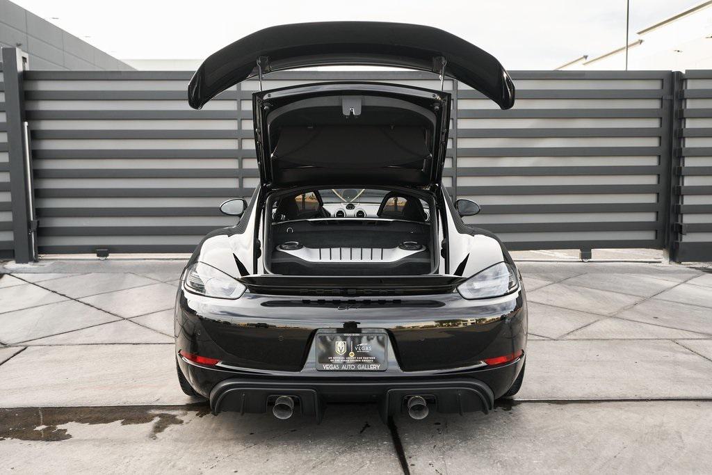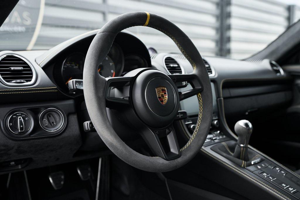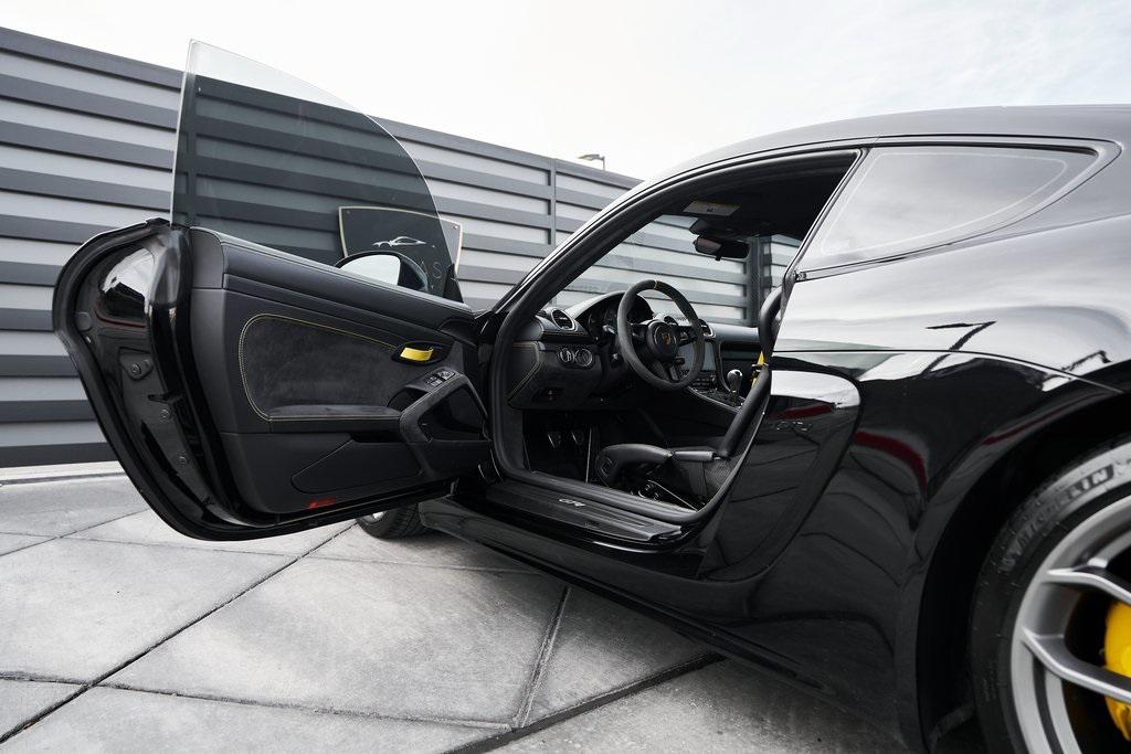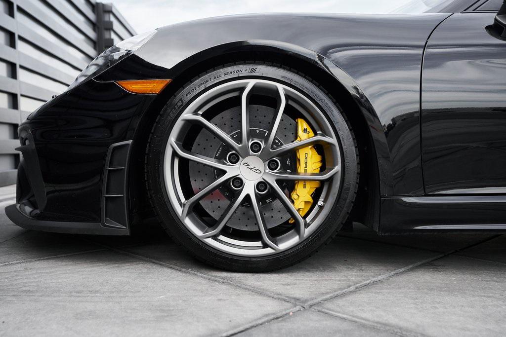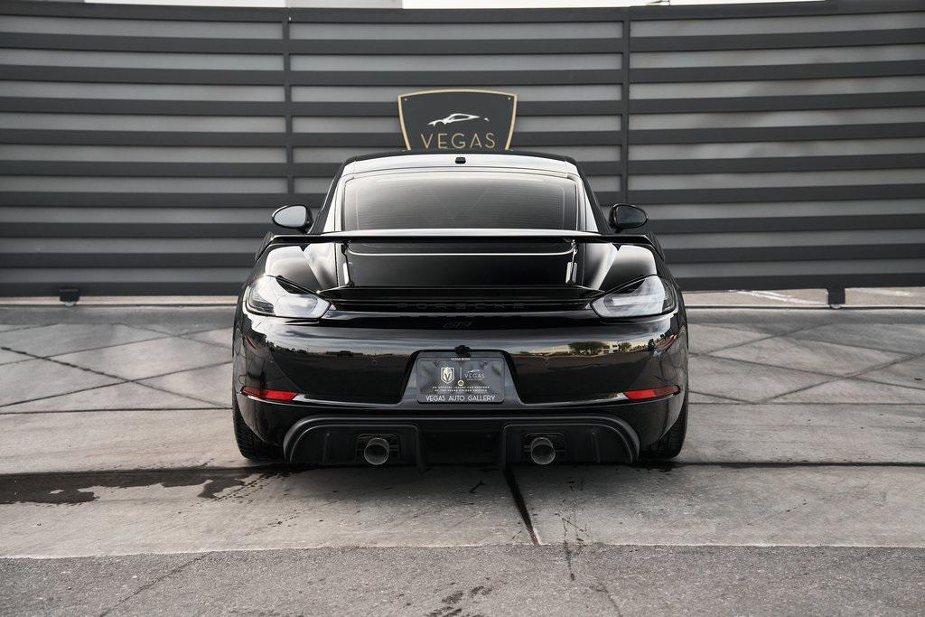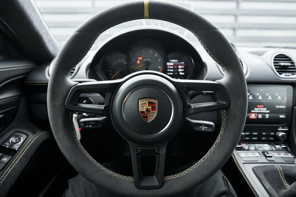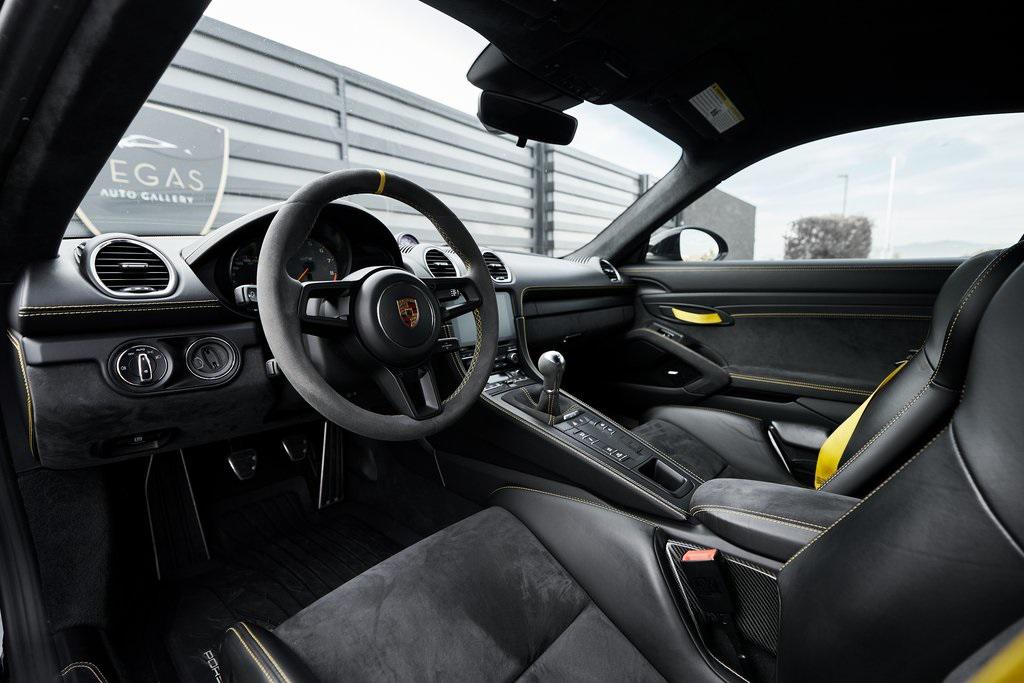 2020 PORSCHE 718 CAYMAN GT46-SPEED MANUAL, CERAMIC COMPOSITE BRAKES, CARBON BUCKET SEATS, BOSE SOUND SYSTEM, APPLE CAR PLAY, AND MORE!OVERVIEWThe 2020 Porsche 718 Cayman GT4 embodies the essence of Porsche's motorsport philosophy––raw, mechanical, and driver-centric. With its naturally aspirated engine, manual transmission, and track-focused engineering, the GT4 reconnects the driver to everything that made Porsche great. At its core lies a 4.0-liter naturally aspirated flat-six, derived from the 911 Carrera's engine architecture but re-engineered for precision and response. Producing 414 horsepower and 309 lb-ft of torque, it revs to a spine-tingling 8,000 rpm, delivering instant throttle response and a soundtrack that guarantees to make you grin. Paired with a 6-speed manual transmission, the GT4 sprints from 0-60 mph in 4.2 seconds and reaches a top speed of 188 mph. Underneath, the GT4's brilliance lies in its chassis. It borrows heavily from the 911 GT3, with adjustable suspension, Porsche Active Suspension Management, and mechanical limited-slip differential. The aerodynamic package––including the fixed rear wing, vented front fascia, and functional rear diffuser––generates up to 50% more downforce than its predecessor, ensuring grip and stability at high speeds. Visually, the GT4's lowered stance, wide air intakes, center-exit exhaust, and signature 20-inch forged wheels give it a purposeful, track-ready presence. Inside, the cockpit is designed for drivers who crave focus. Alcantara and leather upholstery, carbon fiber bucket seats, and an analog tachometer take center stage. Modern conveniences like Porsche Communication Management, Apple CarPlay, and a BOSE sound system add subtle refinement without diluting the experience. As a naturally aspirated manual Porsche in a world of turbos and automatics, the 718 Cayman GT4 it stands as a testament to purity, precision, and passion in equal measure.OPTIONAL EQUIPMENTBlackBlack Leather w/Yellow Stitch $2,160Carbon Fiber Bucket Seats $5,900Porsche Ceramic Composite Brakes $8,000Navigation w/Porsche Connect $2,320LED Headlights $2,140Dashboard In Leather $1,610Deviated Stitching $1,500Carbon Fiber Door Sill Guards $1,210BOSE Surround Sound System $9902-Zone Automatic Climate $770Inner Door Sill Guards In Leather $620Alcantara Sun Visors $590Chrono Package $550Floor Mats w/Leather Piping $460Apple CarPlay $360Seat Belts In Racing Yellow $360GT4 Logo In Gloss Black $350Light Design Package $350Steering Wheel w/12 O'clock Marker $330PORSCHE Logo In Satin Black $220Fire Extinguisher $140GENERALYear: 2020Mileage: 41,941VIN #: WP0AC2A89LK289366Engine Size: 4.0L H6Class: CoupeHorsepower: 414Color: BlackInterior: Black Leather w/Yellow StitchFuel: Unleaded Premium GasolineGear Box: 6-Speed Manual Doors: 2Seats: 2Cylinders: 6SAFETY EQUIPMENTRemote Keyless EntryAnti-Locking BrakesDual Stage Driver & Passenger Front AirbagsTire Specific Low Tire Pressure Warning Rear Parking SensorsOutboard Front Lap and Shoulder Safety BeltsElectronic Hand BrakeTraction ControlAdvanced Air Bag Safety SystemADDITIONAL INFORMATION1 Key IncludedBalance of Factory Warranty (if applicable)Extended Warranties Available