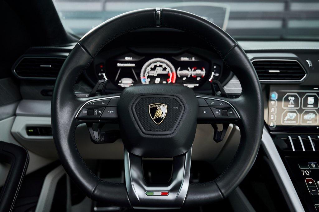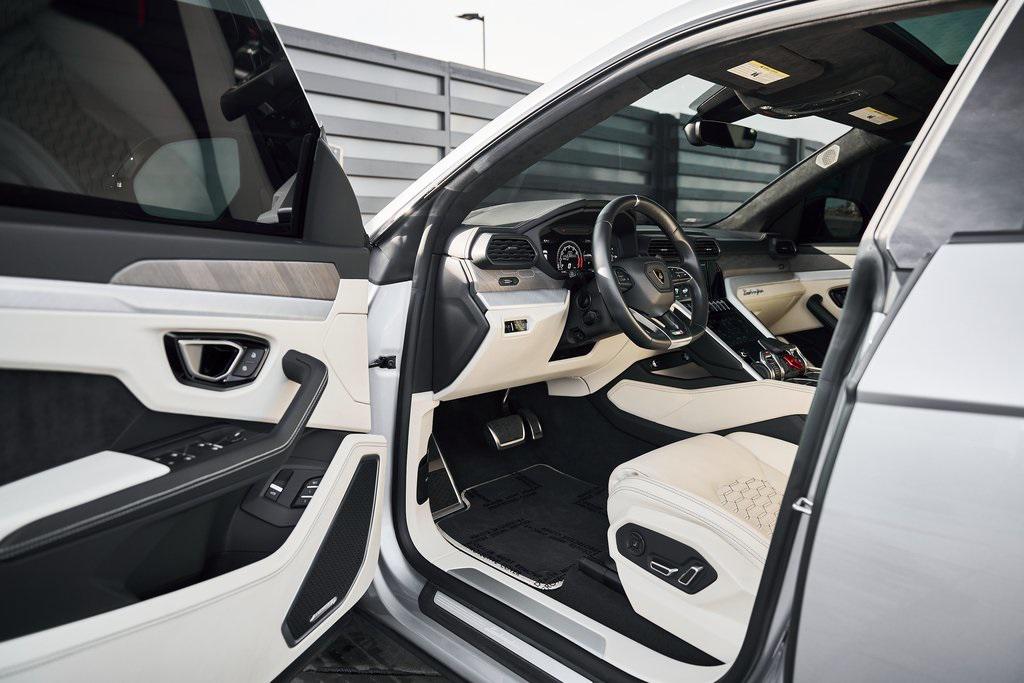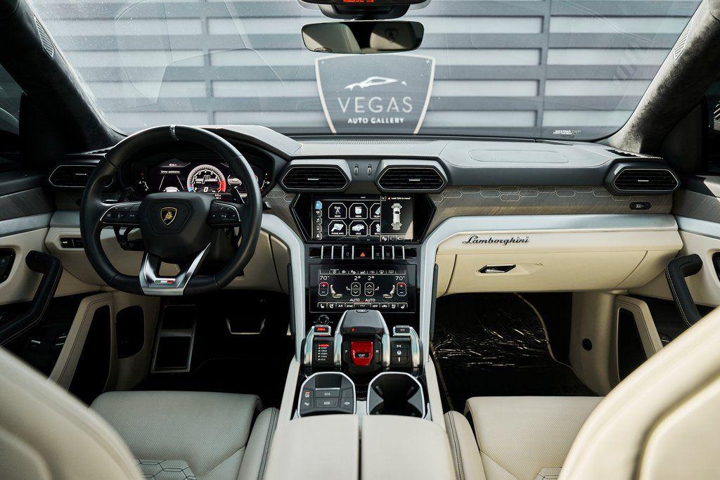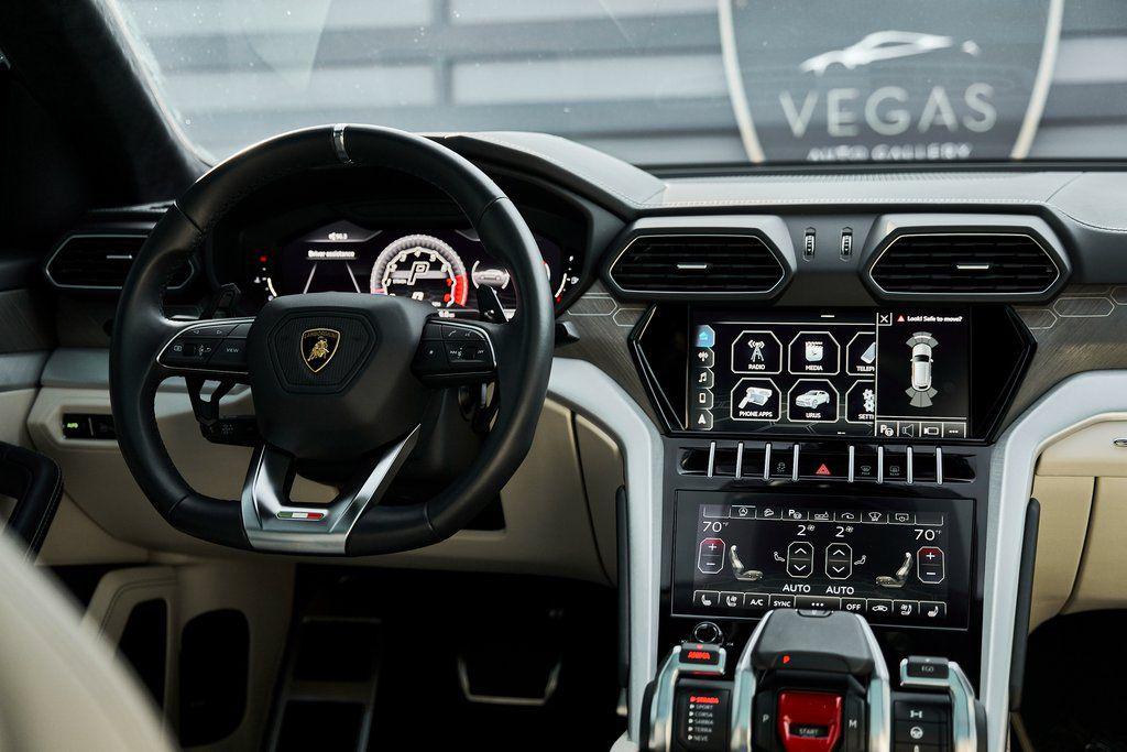 2021 LAMBORGHINI URUS PANORAMIC ROOF, LAMBORGHINI SENSONUM AUDIO, CLIMATE CONTROLLED COMFORT SEATS, AND MORE!OVERVIEWCommand attention in the ultimate blend of supercar DNA and daily drivability with the 2021 Urus––a bold evolution of Lamborghini philosophy and Italian craftsmanship. Powered by a ferocious 4.0L twin-turbocharged V8, the Urus produces a stout 641 horsepower and 626 lb-ft of torque, launching from 0-60 mph in just 3.6 seconds. Adaptive air suspension, active roll stabilization, and rear-wheel steering ensure agility and confidence whether carving mountain roads or cruising at high speed. The exterior is unmistakably Lamborghini, with sharp aerodynamic lines, aggressive proportions, and a coupe-like silhouette. Signature Y-shaped accents, gloss black exterior trim, and 22-inch wheels highlight its athletic presence. Step inside, and the cockpit reveals a uniquely Italian balance of luxury and aggression––featuring Bianco Polar/Nero Ade leather seats with Q-Citura contrast stitching and brushed aluminum trim throughout. The dashboard is anchored by dual touchscreens controlling infotainment, climate, and vehicle dynamics, while the fully digital instrument cluster keeps you dialed in to speed, gear, drive mode, and G-forces. With seating for five, a usable cargo area, and enough ground clearance to venture beyond paved roads, the Lamborghini Urus proves that performance and practicality don't have to live in separate garages.OPTIONAL EQUIPMENTGrigio Nimbus MetallicBianco Polar/Nero Ade Leather $2,526Q-Citura Contrast Stitching $3,32122"" Matt Titanium Nath Wheels $4,641Lamborghini Sensonum Sound System $3,979Park Assistance Package $3,332Ventilated/Heated/Massage Front Seats $3,157Panoramic Sunroof $2,848Gloss Black Style Package $2,016Pirelli Pzero Corsa Tires $1,894Open Pore Wood Trim w/Aluminum $1,699Black Brake Calipers $1,262Embroidered Lamborghini Shield On Headrest $956Black Matt Exhaust Pipes $884Floor Mats w/Leather Piping $690Off-Road Modes $637Heated Rear Seats $631 GENERALYear: 2021Mileage: 9,089VIN #: ZPBUA1ZL6MLA14015Engine Size: 4.0L V8 (Twin-Turbo) Class: SUVHorsepower: 641Color: Grigio Nimbus MetallicInterior: Bianco Polar/Nero Ade LeatherFuel: Premium Unleaded GasolineGear Box: 8-Speed AutomaticDoors: 4Seats: 5Cylinders: 8SAFETY EQUIPMENTOutboard Front Lap and Shoulder Safety BeltsAirbag Occupancy SensorCurtain 1st and 2nd Row AirbagsDual Stage Driver and Passenger Front AirbagsTire Specific Low Tire Pressure WarningChild Seat Sensor and Rear Child Safety LocksCollision Mitigation Front & Rear Lane Keep Assist Lane Departure Warning Traction ControlAnti-Locking BrakesPerimeter AlarmSurround View CameraAdaptive Cruise ControlADDITIONAL INFORMATION1 Key IncludedBalance of Factory Warranty (if applicable)Extended Warranties Available