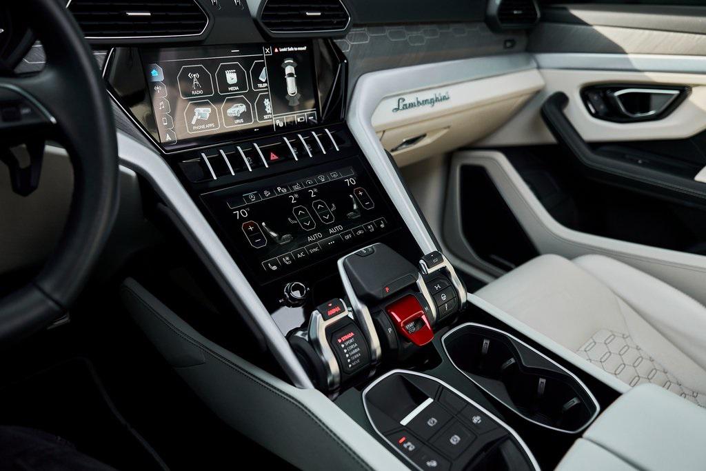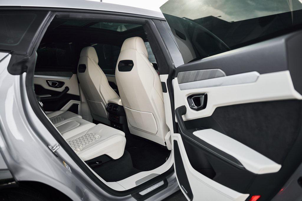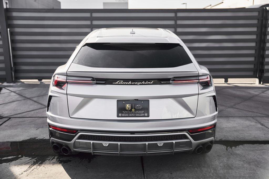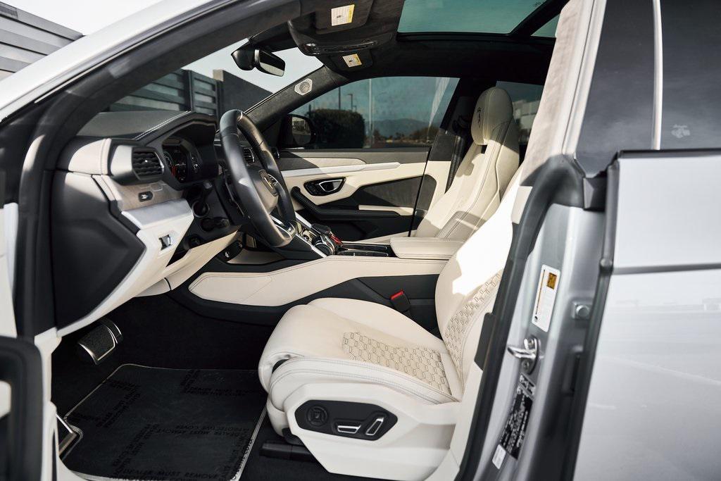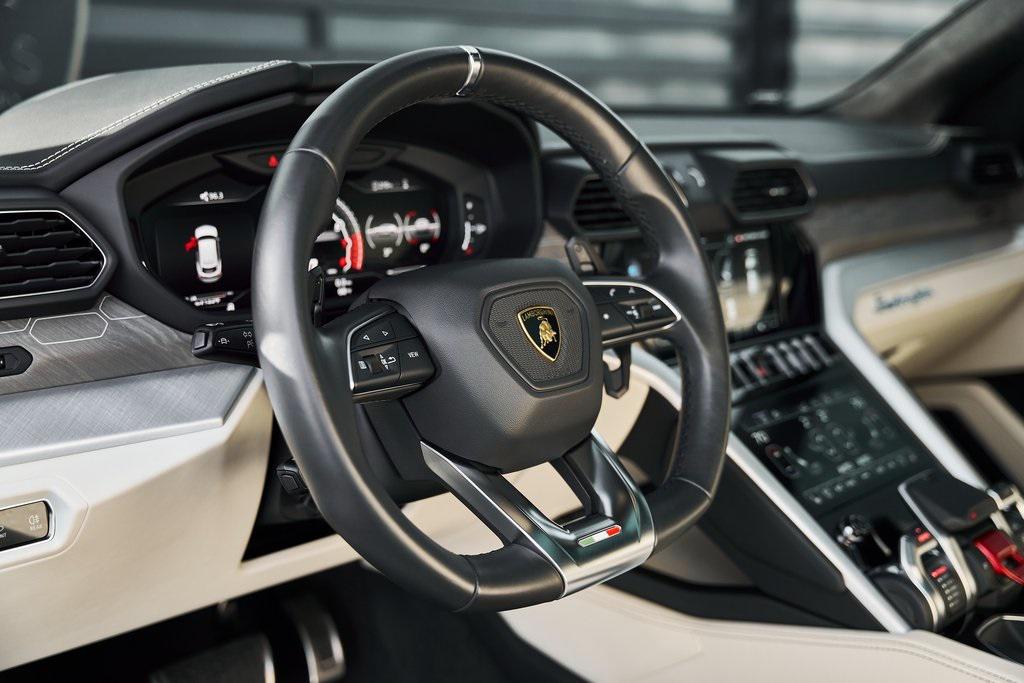 2021 LAMBORGHINI URUS PANORAMIC ROOF, LAMBORGHINI SENSONUM AUDIO, CLIMATE CONTROLLED COMFORT SEATS, AND MORE!OVERVIEWCommand attention in the ultimate blend of supercar DNA and daily drivability with the 2021 Urus––a bold evolution of Lamborghini philosophy and Italian craftsmanship. Powered by a ferocious 4.0L twin-turbocharged V8, the Urus produces a stout 641 horsepower and 626 lb-ft of torque, launching from 0-60 mph in just 3.6 seconds. Adaptive air suspension, active roll stabilization, and rear-wheel steering ensure agility and confidence whether carving mountain roads or cruising at high speed. The exterior is unmistakably Lamborghini, with sharp aerodynamic lines, aggressive proportions, and a coupe-like silhouette. Signature Y-shaped accents, gloss black exterior trim, and 22-inch wheels highlight its athletic presence. Step inside, and the cockpit reveals a uniquely Italian balance of luxury and aggression––featuring Bianco Polar/Nero Ade leather seats with Q-Citura contrast stitching and brushed aluminum trim throughout. The dashboard is anchored by dual touchscreens controlling infotainment, climate, and vehicle dynamics, while the fully digital instrument cluster keeps you dialed in to speed, gear, drive mode, and G-forces. With seating for five, a usable cargo area, and enough ground clearance to venture beyond paved roads, the Lamborghini Urus proves that performance and practicality don't have to live in separate garages.OPTIONAL EQUIPMENTGrigio Nimbus MetallicBianco Polar/Nero Ade Leather $2,526Q-Citura Contrast Stitching $3,32122"" Matt Titanium Nath Wheels $4,641Lamborghini Sensonum Sound System $3,979Park Assistance Package $3,332Ventilated/Heated/Massage Front Seats $3,157Panoramic Sunroof $2,848Gloss Black Style Package $2,016Pirelli Pzero Corsa Tires $1,894Open Pore Wood Trim w/Aluminum $1,699Black Brake Calipers $1,262Embroidered Lamborghini Shield On Headrest $956Black Matt Exhaust Pipes $884Floor Mats w/Leather Piping $690Off-Road Modes $637Heated Rear Seats $631 GENERALYear: 2021Mileage: 9,089VIN #: ZPBUA1ZL6MLA14015Engine Size: 4.0L V8 (Twin-Turbo) Class: SUVHorsepower: 641Color: Grigio Nimbus MetallicInterior: Bianco Polar/Nero Ade LeatherFuel: Premium Unleaded GasolineGear Box: 8-Speed AutomaticDoors: 4Seats: 5Cylinders: 8SAFETY EQUIPMENTOutboard Front Lap and Shoulder Safety BeltsAirbag Occupancy SensorCurtain 1st and 2nd Row AirbagsDual Stage Driver and Passenger Front AirbagsTire Specific Low Tire Pressure WarningChild Seat Sensor and Rear Child Safety LocksCollision Mitigation Front & Rear Lane Keep Assist Lane Departure Warning Traction ControlAnti-Locking BrakesPerimeter AlarmSurround View CameraAdaptive Cruise ControlADDITIONAL INFORMATION1 Key IncludedBalance of Factory Warranty (if applicable)Extended Warranties Available