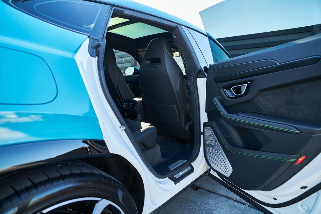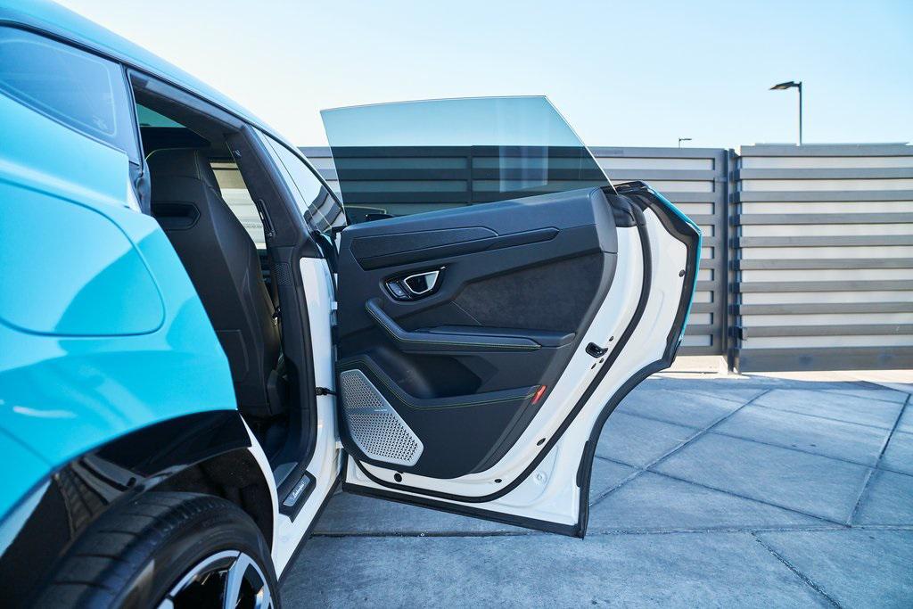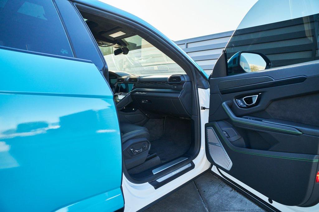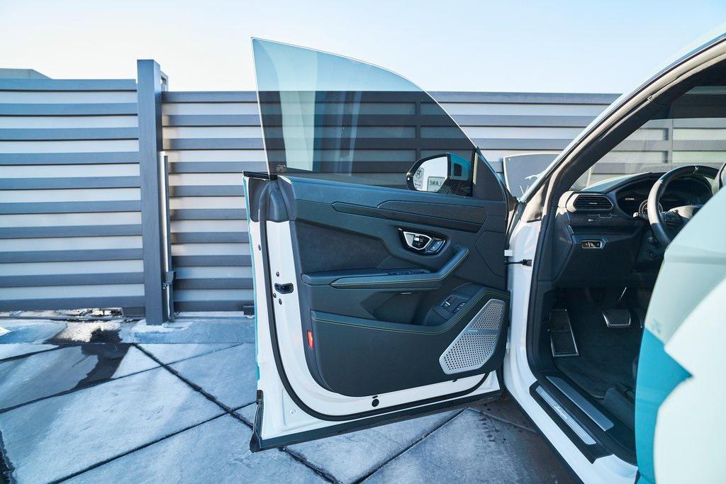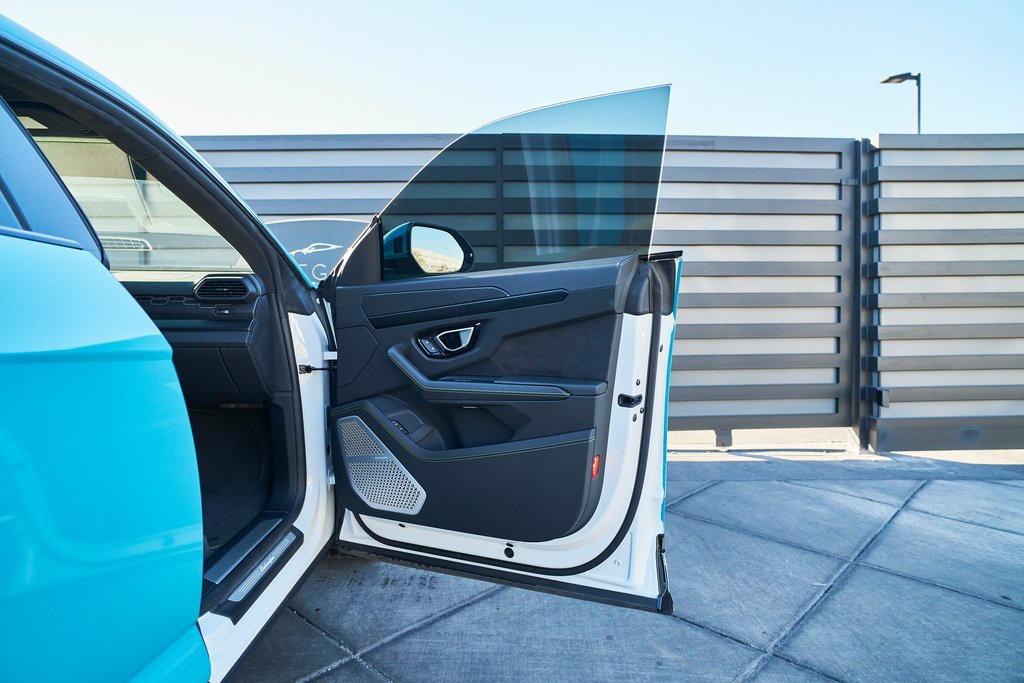 2021 LAMBORGHINI URUS PANORAMIC ROOF, 3D BANG & OLUFSEN AUDIO SYSTEM, LIGHT BLUE WRAP, AND MORE!OVERVIEWCommand attention in the ultimate blend of supercar DNA and daily drivability with the 2021 Urus––a bold evolution of Lamborghini philosophy and Italian craftsmanship. Powered by a ferocious 4.0L twin-turbocharged V8, the Urus produces a stout 641 horsepower and 626 lb-ft of torque, launching from 0-60 mph in just 3.6 seconds. Adaptive air suspension, active roll stabilization, and rear-wheel steering ensure agility and confidence whether carving mountain roads or cruising at high speed. The exterior is unmistakably Lamborghini, with sharp aerodynamic lines, aggressive proportions, and a coupe-like silhouette. Signature Y-shaped accents, gloss black exterior trim, and 23-inch wheels highlight its athletic presence. This example wears a metallic green wrap that changes hue based on lighting. Step inside, and the cockpit reveals a uniquely Italian balance of luxury and aggression––featuring Nero Ade leather seats with Verde contrast stitching and black anodized aluminum trim throughout. The dashboard is anchored by dual touchscreens controlling infotainment, climate, and vehicle dynamics, while the fully digital instrument cluster keeps you dialed in to speed, gear, drive mode, and G-forces. With seating for five, a usable cargo area, and enough ground clearance to venture beyond paved roads, the Lamborghini Urus proves that performance and practicality don't have to live in separate garages.OPTIONAL EQUIPMENTBianco Icarus (Light Blue Wrap)Nero Ade Leather $1,894Open Pore Wood Trim $1,69923"" Diamond Finish Taigete Wheels $5,996Advanced 3D Bang & Olufsen Sound System $6,313Q-Citura Contrast Stitching $3,321Fully Electric Ventilated/Heated Front Seats $3,157Ambient Light Package $3,132Lower Leather Package $3,077Panoramic Roof $2,848Gloss Black Style Package $2,016Green Brake Calipers $1,262Rear Diffuser in Gloss Black $1,201Embroidered Lamborghini Shield On Headrest $956Matt Black Exhaust Pipes $884Floor Mats w/Double Stitch $690Off-Road Drive Modes $637Heated Rear Seats $631Black Anodized Aluminum Interior Trim $584Steering Wheel Contrast Stitching $414 GENERALYear: 2021Mileage: 17,175VIN #: ZPBUA1ZL7MLA15318Engine Size: 4.0L V8 (Twin-Turbo) Class: SUVHorsepower: 641Color: Bianco Icarus (Light Blue Wrap)Interior: Nero Ade LeatherFuel: Premium Unleaded GasolineGear Box: 8-Speed AutomaticDoors: 4Seats: 5Cylinders: 8SAFETY EQUIPMENTOutboard Front Lap and Shoulder Safety BeltsAirbag Occupancy SensorCurtain 1st and 2nd Row AirbagsDual Stage Driver and Passenger Front AirbagsTire Specific Low Tire Pressure WarningChild Seat Sensor and Rear Child Safety LocksCollision Mitigation Front & Rear Lane Keep Assist Lane Departure Warning Traction ControlAnti-Locking BrakesPerimeter AlarmAdaptive Cruise ControlADDITIONAL INFORMATION1 Key IncludedBalance of Factory Warranty (if applicable)Extended Warranties Available