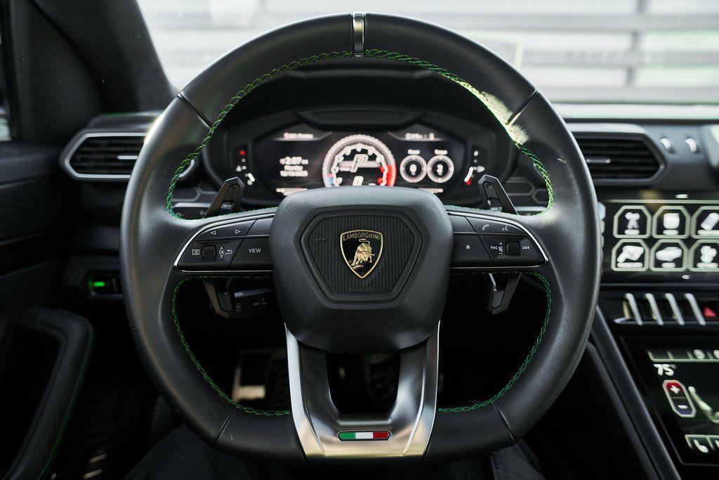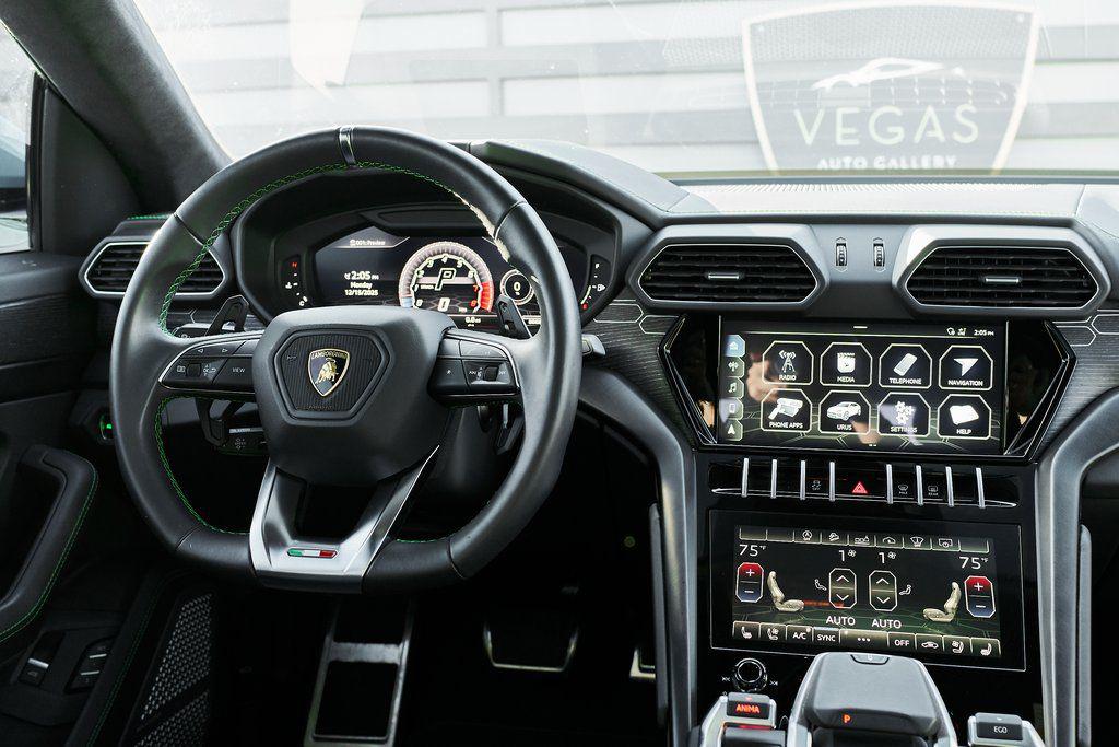 2021 LAMBORGHINI URUS PANORAMIC ROOF, 3D BANG & OLUFSEN AUDIO SYSTEM, CLIMATE CONTROLLED SEATS, AND MORE!OVERVIEWCommand attention in the ultimate blend of supercar DNA and daily drivability with the 2021 Urus––a bold evolution of Lamborghini philosophy and Italian craftsmanship. Powered by a ferocious 4.0L twin-turbocharged V8, the Urus produces a stout 641 horsepower and 626 lb-ft of torque, launching from 0-60 mph in just 3.6 seconds. Adaptive air suspension, active roll stabilization, and rear-wheel steering ensure agility and confidence whether carving mountain roads or cruising at high speed. The exterior is unmistakably Lamborghini, with sharp aerodynamic lines, aggressive proportions, and a coupe-like silhouette. Signature Y-shaped accents, gloss black exterior trim, and 23-inch wheels highlight its athletic presence. This example wears a metallic green wrap that changes hue based on lighting. Step inside, and the cockpit reveals a uniquely Italian balance of luxury and aggression––featuring Nero Ade leather seats with Verde contrast stitching and black anodized aluminum trim throughout. The dashboard is anchored by dual touchscreens controlling infotainment, climate, and vehicle dynamics, while the fully digital instrument cluster keeps you dialed in to speed, gear, drive mode, and G-forces. With seating for five, a usable cargo area, and enough ground clearance to venture beyond paved roads, the Lamborghini Urus proves that performance and practicality don't have to live in separate garages.OPTIONAL EQUIPMENTBianco IcarusNero Ade Leather $1,894Open Pore Wood Trim $1,69923"" Diamond Finish Taigete Wheels $5,996Advanced 3D Bang & Olufsen Sound System $6,313Q-Citura Contrast Stitching $3,321Fully Electric Ventilated/Heated Front Seats $3,157Ambient Light Package $3,132Lower Leather Package $3,077Panoramic Roof $2,848Gloss Black Style Package $2,016Green Brake Calipers $1,262Rear Diffuser in Gloss Black $1,201Embroidered Lamborghini Shield On Headrest $956Matt Black Exhaust Pipes $884Floor Mats w/Double Stitch $690Off-Road Drive Modes $637Heated Rear Seats $631Black Anodized Aluminum Interior Trim $584Steering Wheel Contrast Stitching $414 GENERALYear: 2021Mileage: 17,175VIN #: ZPBUA1ZL7MLA15318Engine Size: 4.0L V8 (Twin-Turbo) Class: SUVHorsepower: 641Color: Bianco IcarusInterior: Nero Ade LeatherFuel: Premium Unleaded GasolineGear Box: 8-Speed AutomaticDoors: 4Seats: 5Cylinders: 8SAFETY EQUIPMENTOutboard Front Lap and Shoulder Safety BeltsAirbag Occupancy SensorCurtain 1st and 2nd Row AirbagsDual Stage Driver and Passenger Front AirbagsTire Specific Low Tire Pressure WarningChild Seat Sensor and Rear Child Safety LocksCollision Mitigation Front & Rear Lane Keep Assist Lane Departure Warning Traction ControlAnti-Locking BrakesPerimeter AlarmAdaptive Cruise ControlADDITIONAL INFORMATION1 Key IncludedBalance of Factory Warranty (if applicable)Extended Warranties Available