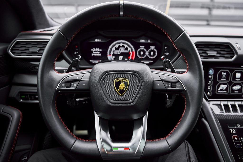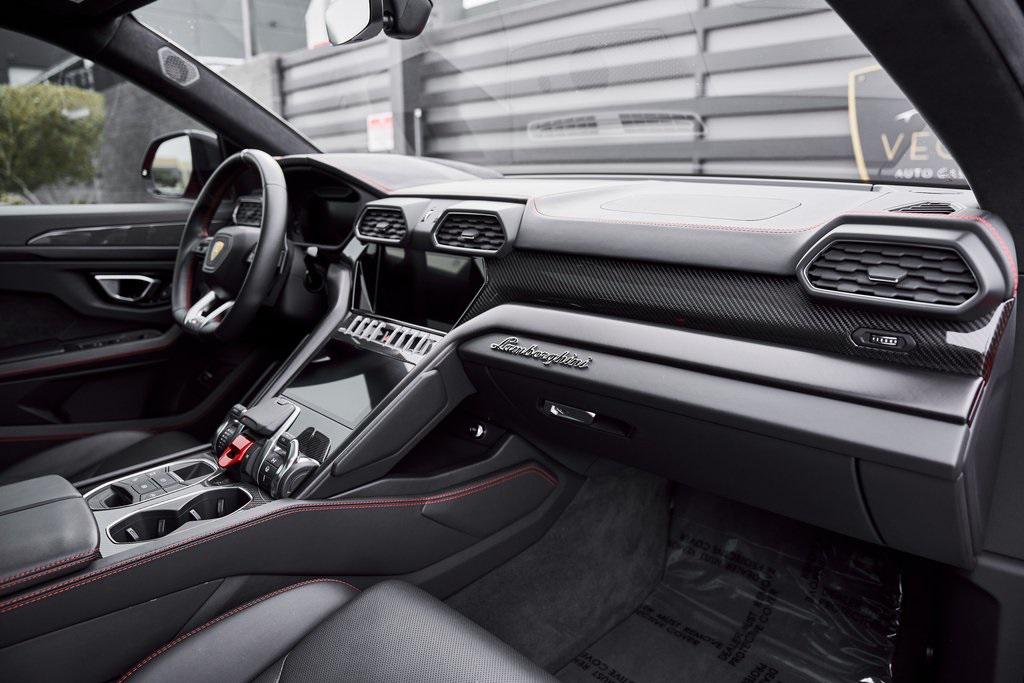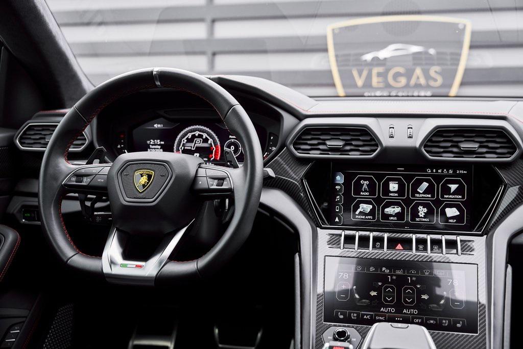 2021 LAMBORGHINI URUS PANORAMIC ROOF, 3D BANG & OLUFSEN AUDIO SYSTEM, CLIMATE CONTROLLED COMFORT SEATS, AND MORE!OVERVIEWCommand attention in the ultimate blend of supercar DNA and daily drivability with the 2021 Urus––a bold evolution of Lamborghini philosophy and Italian craftsmanship. Powered by a ferocious 4.0L twin-turbocharged V8, the Urus produces a stout 641 horsepower and 626 lb-ft of torque, launching from 0-60 mph in just 3.6 seconds. Adaptive air suspension, active roll stabilization, and rear-wheel steering ensure agility and confidence whether carving mountain roads or cruising at high speed. The exterior is unmistakably Lamborghini, with sharp aerodynamic lines, aggressive proportions, and a coupe-like silhouette. Signature Y-shaped accents, gloss black exterior trim, and 23-inch wheels highlight its athletic presence. Step inside, and the cockpit reveals a uniquely Italian balance of luxury and aggression––featuring Nero Ade leather seats with red Q-Citura contrast stitching and brushed aluminum trim throughout. The dashboard is anchored by dual touchscreens controlling infotainment, climate, and vehicle dynamics, while the fully digital instrument cluster keeps you dialed in to speed, gear, drive mode, and G-forces. With seating for five, a usable cargo area, and enough ground clearance to venture beyond paved roads, the Lamborghini Urus proves that performance and practicality don't have to live in separate garages.OPTIONAL EQUIPMENTRosso Mars (Front PPF)Nero Ade Leather $1,894Red Q-Citura Contrast Stitching $3,32123"" Shiny Black Taigete Wheels $5,358Advanced 3D Bang & Olufsen Sound System $6,313Park Assistance Package $3,332Ventilated/Heated/Massage Front Seats $3,157Panoramic Sunroof $2,848Small Interior Carbon Package $2,778Noise & Heat Insulated Privacy Glass $2,134Gloss Black Style Package $2,016 Red Brake Calipers $1,262Gloss Black Rear Diffuser $1,201Embroidered Lamborghini Shield On Headrest $956Black Matt Exhaust Pipes $884Off-Road Modes $637Heated Rear Seats $631Black Anodized Aluminum Trim $584Steering Wheel Contrast Stitching $414 GENERALYear: 2021Mileage: 23,857VIN #: ZPBUA1ZL9MLA15448Engine Size: 4.0L V8 (Twin-Turbo) Class: SUVHorsepower: 641Color: Rosso Mars (PPF)Interior: Nero Ade LeatherFuel: Premium Unleaded GasolineGear Box: 8-Speed AutomaticDoors: 4Seats: 5Cylinders: 8SAFETY EQUIPMENTOutboard Front Lap and Shoulder Safety BeltsAirbag Occupancy SensorCurtain 1st and 2nd Row AirbagsDual Stage Driver and Passenger Front AirbagsTire Specific Low Tire Pressure WarningChild Seat Sensor and Rear Child Safety LocksCollision Mitigation Front & Rear Lane Keep Assist Lane Departure Warning Traction ControlAnti-Locking BrakesPerimeter AlarmSurround View CameraAdaptive Cruise ControlADDITIONAL INFORMATION1 Key IncludedBalance of Factory Warranty (if applicable)Extended Warranties Available