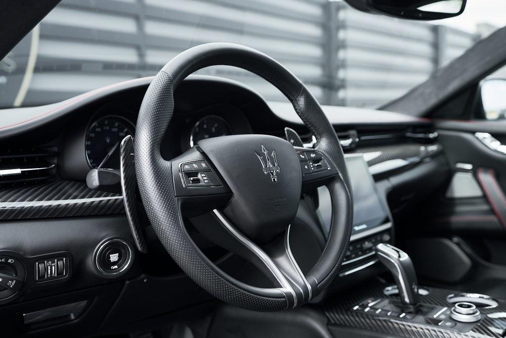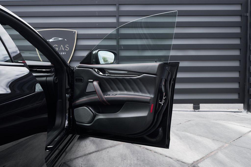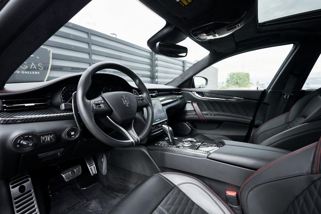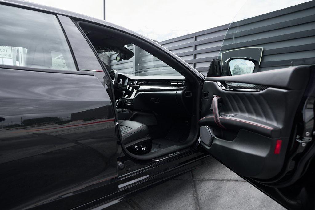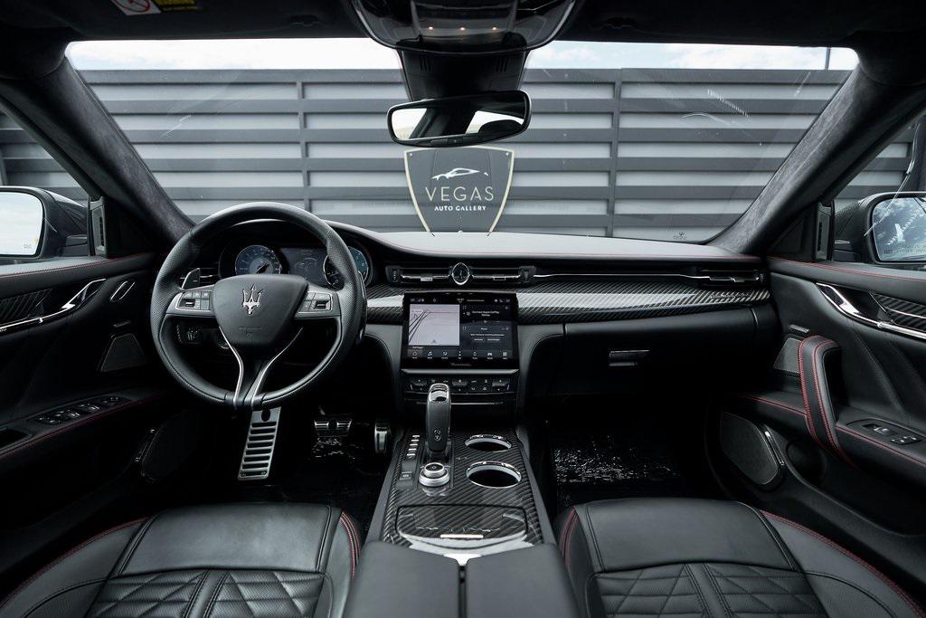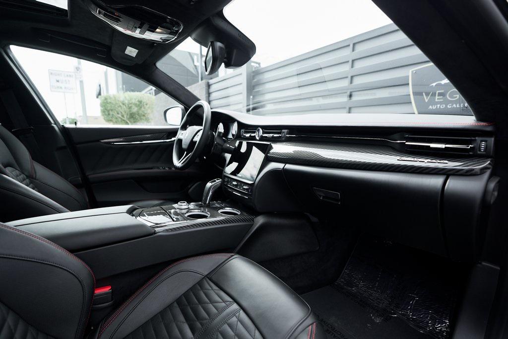 2021 MASERATI QUATTROPORTE TROFEOBOWERS & WILKINS AUDIO SYSTEM, EXTERIOR CARBON FIBER PACKAGE, PIENO FIORE NATURAL LEATHER, AND MORE!OVERVIEWAs the flagship of Maserati's lineup, the 2021 Quattroporte Trofeo blends a blend of performance, prestige, and a timeless Italian flair. At its heart beats a 3.8-liter twin-turbocharged V8 engine, hand-assembled by Ferrari in Maranello. Delivering 580 horsepower and 538 lb-ft of torque, it channels power through an 8-speed ZF automatic transmission to the rear wheels, launching the Trofeo from 0-60 mph in 4.2 seconds and on to a top speed of 203 mph––making it one of the fastest sedans in the world. The symphonic growl of the V8, especially in Corsa mode, is both mechanical and emotional. Performance is balanced by its Skyhook adaptive dampers, sport-tuned suspension, and a limited-slip differential that ensures precision through corners. Visually, the Trofeo announces its intent with aggressive carbon-fiber accents, red trim pieces, and signature Trofeo badging. The front fascia features enlarged air intakes and Maserati's signature Trident grille, while the rear is defined by quad exhaust outlets and sleek LED tail lamps. The 21-inch forged alloy wheels, finished in dark chrome, complete the Trofeo's commanding stance. Inside, the cabin is pure Italian craftsmanship and contemporary luxury. Pieno Fiore natural leather, carbon fiber trim, and red contrast stitching create an atmosphere of bespoke refinement. The 10.1-inch touchscreen integrates seamlessly with Apple CarPlay, Android Auto, and an upgraded Bowers & Wilkins surround sound system. Every detail, from the Trofeo-embroidered headrests to the carbon fiber shift paddles, reinforces its dual identity as both performance machine and luxury cruiser. The 2021 Maserati Quattroporte Trofeo is a car that combines Ferrari-engineered performance with timeless Italian artistry, proving that true luxury need not whisper.OPTIONAL EQUIPMENTNero Ribelle MetallicBlack Pieno Fiore Leather w/Red Stitching21"" Orione Forged Wheels $400Bowers & Wilkins Ultra Premium Audio System $2,100Exterior Carbon Fiber Package $2,000Red Anodized Brake Calipers $1,500Interior Carbon Fiber Package $1,100GENERALYear: 2021Mileage: 41,555VIN #: ZAM56ZPAXM1377406Engine Size: 3.8L Twin-Turbo V8Class: SedanHorsepower: 580Color: Nero Ribelle Metallic Interior: Black Pieno Fiore LeatherFuel: Unleaded Premium GasolineGear Box: 8-Speed Automatic Doors: 4Seats: 5Cylinders: 8SAFETY EQUIPMENTOutboard Front Lap and Shoulder Safety BeltsRear Child Safety LocksAirbag Occupancy SensorCurtain 1st and 2nd Row AirbagsDual Stage Driver and Passenger Front AirbagsTire Specific Low Tire Pressure WarningCollision Mitigation-FrontWarn and Brake AssistSide Impact BeamsTraction ControlAnti-Locking BrakesElectronic Hand BrakeImmobilizer Perimeter AlarmADDITIONAL INFORMATION2 Keys IncludedBalance of Factory Warranty (if applicable)Extended Warranties Available