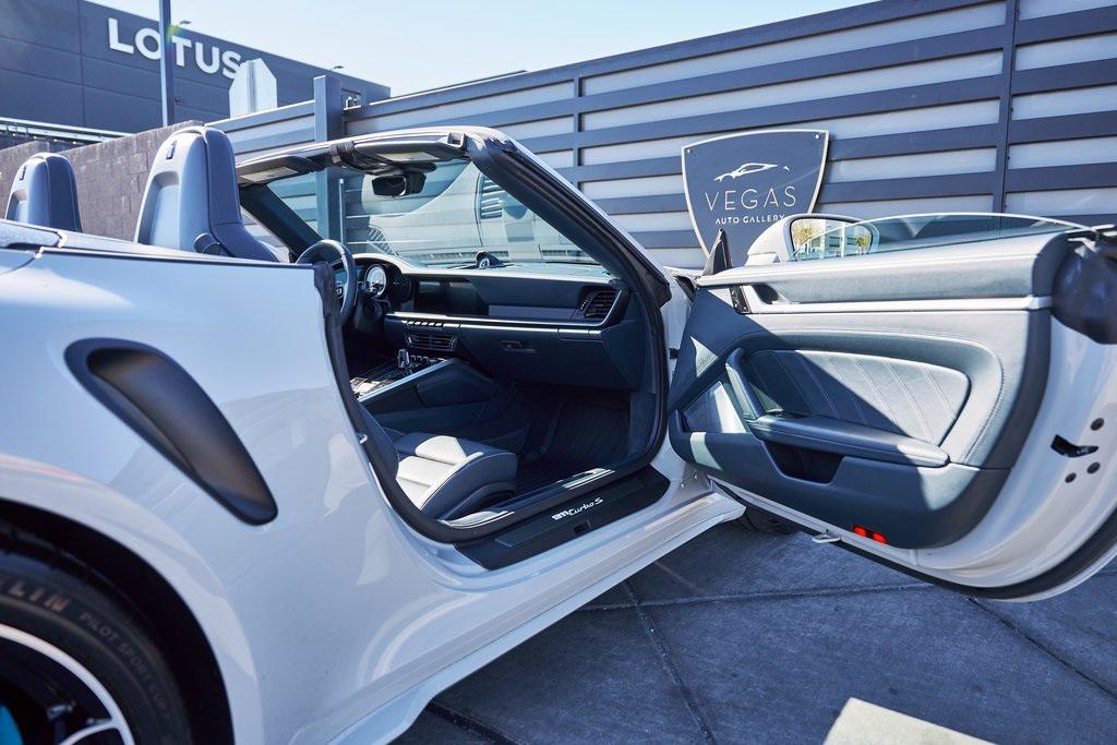 2021 PORSCHE 911 TURBO SSPORT EXHAUST SYSTEM, BURMESTER SOUND SYSTEM, CLIMATE CONTROLLED SEATS, AND MORE!OVERVIEWHere's a spec you don't want to miss. This range-topping 2021 Porsche 911 Turbo S represents the very best of Stuttgart engineering. At the rear is a 3.8L twin-turbo flat-six producing 640 horsepower and 590 lb-ft of torque, launching the Turbo S from 0-60 mph in a face-melting 2.6 seconds. Porsche's advanced all-wheel drive system and variable chassis control ensure that every ounce of power is translated into confident, razor-sharp control––allowing you to attack corners with confidence. Options are a-plenty, with active aero and a retractable rear wing working in tandem to manage airflow, and carbon ceramic brakes for fade-free stopping power. A Sport Exhaust System, Exclusive Design Wheels, and LED Matrix Headlights illuminate the fact that this is no base spec Carrera. Inside, Graphite Blue leather with Chalk stitching envelops the cabin and is complemented by carbon fiber trim throughout. Premium upgrades include a Burmester sound system, Adaptive Cruise Control, and heated/ventilated front seats. Whether you're carving through mountain passes, flying down the highway, or pulling up to a five-star hotel, the Porsche 911 Turbo S guarantees to leave you satisfied without compromise.OPTIONAL EQUIPMENTChalk $3,270Graphite Blue LeatherChalk Stitching18-Way Adaptive Sport Seats Plus $1,150Turbo S Exclusive Design Wheels $5,500Wheels Painted In Gloss Black $1,290Porsche Ceramic Composite Brakes $10,550Burmester High End Sound System $3,980Sport Exhaust System $3,490Porsche Dynamic Chassis Control $3,170LED Matrix Design Headlights $2,740Matte Carbon Fiber Trim $2,100Adaptive Cruise Control $2,000PASM Sport Suspension $1,510Surround View Camera $1,430Illuminated Carbon Fiber Sill Guards $1,280Lane Change Assist $1,060Exclusive Design Taillights $990Ventilated Front Seats $840Side Skirts In Exterior Color $760PDK Gear Selector In Aluminum $750Mirror Base In Exterior Color $660Ambient Lighting $580Painted Vehicle Key w/Leather Pouch $540Chrono Dial In White $420Central Tach In White $420Center Console Lid w/Crest $340Porsche Logo On Rear In Gloss Black $300Power Steering Plus $280911 Turbo Logo In Gloss Black $270Exclusive Design Fuel Cap $160Under Door Puddle Lights $160GENERALYear: 2021Mileage: 26,570VIN #: WP0CD2A97MS263686Engine Size: 3.8L H6 (Twin-Turbo)Class: CabrioletHorsepower: 640Color: ChalkInterior: Graphite Blue LeatherFuel: Premium Unleaded Gasoline Gear Box: 8-Speed PDK (Automatic) Doors: 2Seats: 2+2Cylinders: 6SAFETY EQUIPMENTPorsche Stability ManagementFull-Time All-Wheel Drive Forward Collision Warning with Automatic Emergency BrakingLane Keep Assist & Lane Departure WarningOutboard Front Lap and Shoulder Safety BeltsAirbag Occupancy SensorCurtain 1st and 2nd Row AirbagsDual Stage Driver and Passenger Front AirbagsTire Specific Low Tire Pressure WarningTraction ControlAnti-Locking BrakesPerimeter AlarmADDITIONAL INFORMATION1 Key IncludedBalance of Factory Warranty (if applicable)Extended Warranties Available
