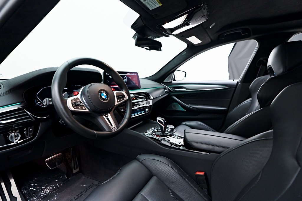 2022 BMW M5 BLACK SAPPHIRE METALLIC, COMPETITION PACKAGE, BOWERS & WILKINS SURROUND SOUND, AND MORE!OVERVIEWThe 2022 BMW M5 Competition takes the executive sports sedan formula to its extreme by blending luxury touches with motorsport-bred performance. Under its Black Sapphire hood lies a hand-built 4.4-liter twin-turbocharged V8, tuned to produce a whopping 617 horsepower and 553 lb-ft of torque. Power is routed through an 8-speed M Steptronic transmission to BMW's M xDrive all-wheel-drive system. The result? 060 mph in just 3.1 seconds, making it one of the quickest production M cars of the modern era. Visually, the M5 Competition makes its presence known with shadowline exterior trim, quad exhaust tips, and 20-inch forged wheels, while inside, the cabin exudes understated luxury. Merino leather sport seats, carbon-fiber accents, and an M-specific digital cockpit create a driver-focused environment, complemented by cutting-edge tech like Park Assistant Plus, Bowers & Wilkins Diamond Surround Sound, and a suite of advanced driver aids. As a true future-collectible, the 2022 BMW M5 Competition delivers the daily comfort and craftsmanship of a luxury flagship, paired with the ferocity and precision of a track-bred M car.OPTIONAL EQUIPMENTBlack Sapphire MetallicBlack Extended Merino Leather20"" Black M Wheels $1,300Competition Package $7,600Extended Shadowline TrimM Sport Exhaust SystemBlack Chrome TailpipesLowered Sport Suspension M Shadowline LightsBowers & Wilkins Diamond Surround Sound $3,400Executive Package $3,350Front Ventilated SeatsFront Massaging SeatsActive Park Distance ControlSoft-Close Automatic DoorsSurround View w/3D ViewRear SunshadesDriving Assistance Professional Package $1,700Active Cruise Control w/Stop and GoActive Lane Keeping Assistant Traffic Jam AssistantGENERALYear: 2022Mileage: 30,035VIN #: WBS83CH08NCJ87552Engine Size: 4.4L V8 (Twin-Turbo)Class: SedanHorsepower: 627Color: Black Sapphire Metallic Interior: Black Merino LeatherFuel: Premium Unleaded GasolineGear Box: 8-Speed AutomaticDoors: 4Seats: 5Cylinders: 8SAFETY EQUIPMENTDual Stage Driver and Passenger AirbagsElectronic Traction ControlDynamic Stability ControlRoll Stability ControlAnti-Lock Braking SystemDriver Condition ResponseChild Seat Sensor and Power Rear Child Safety LocksDriver Monitoring AlertTire Specific Low Tire Pressure WarningBlindspot AssistADDITIONAL INFORMATION2 Keys IncludedBalance of Factory Warranty (if applicable)Extended Warranties Available