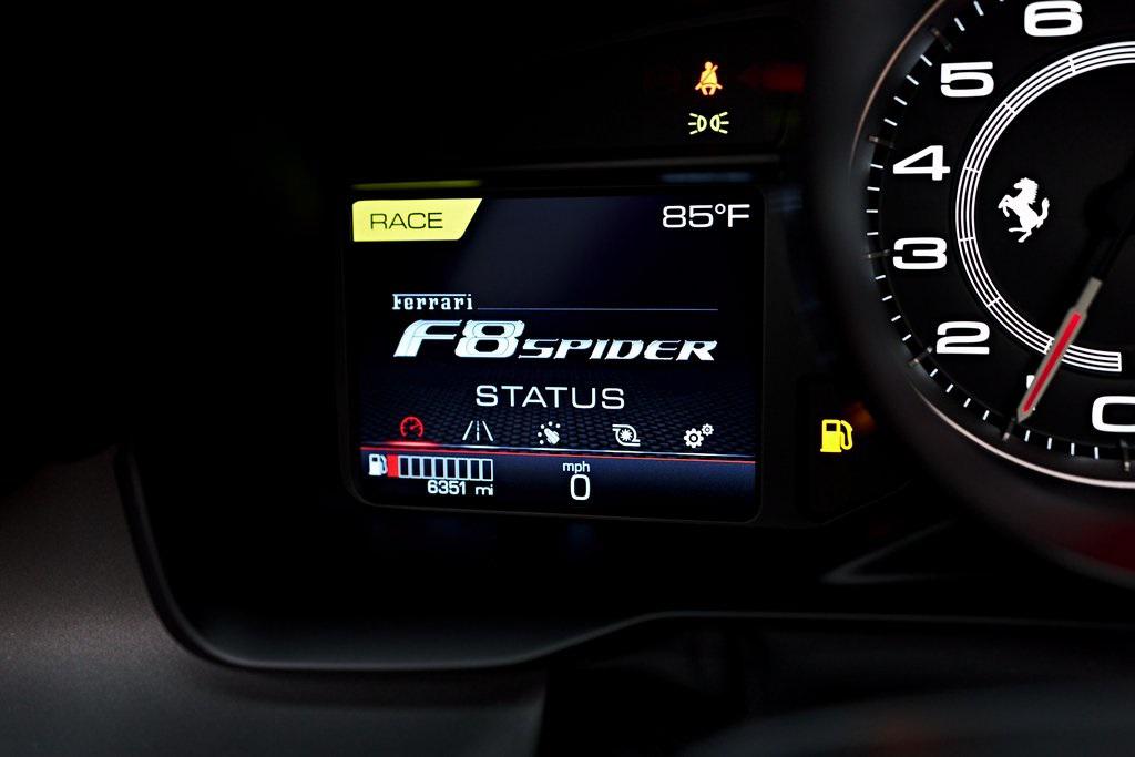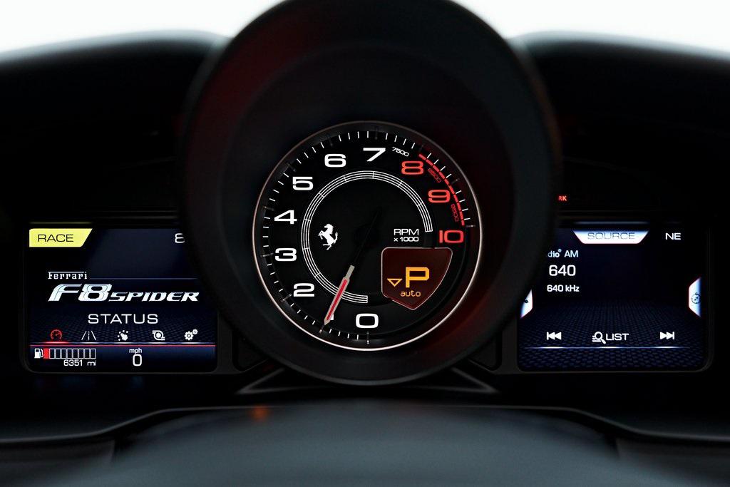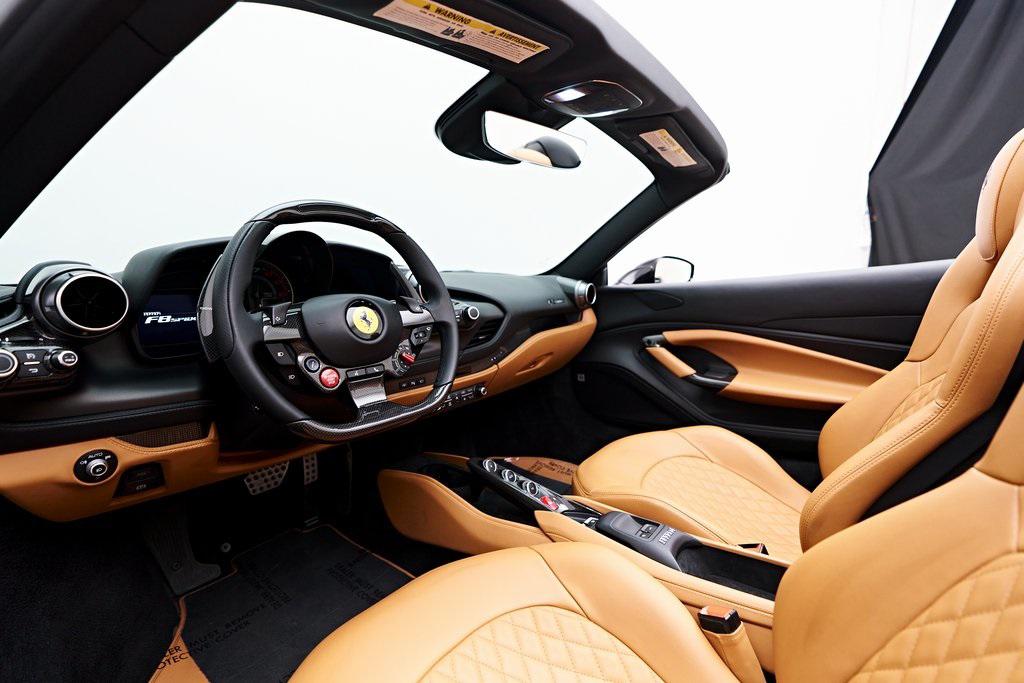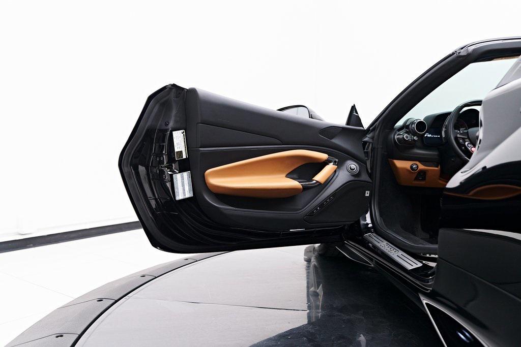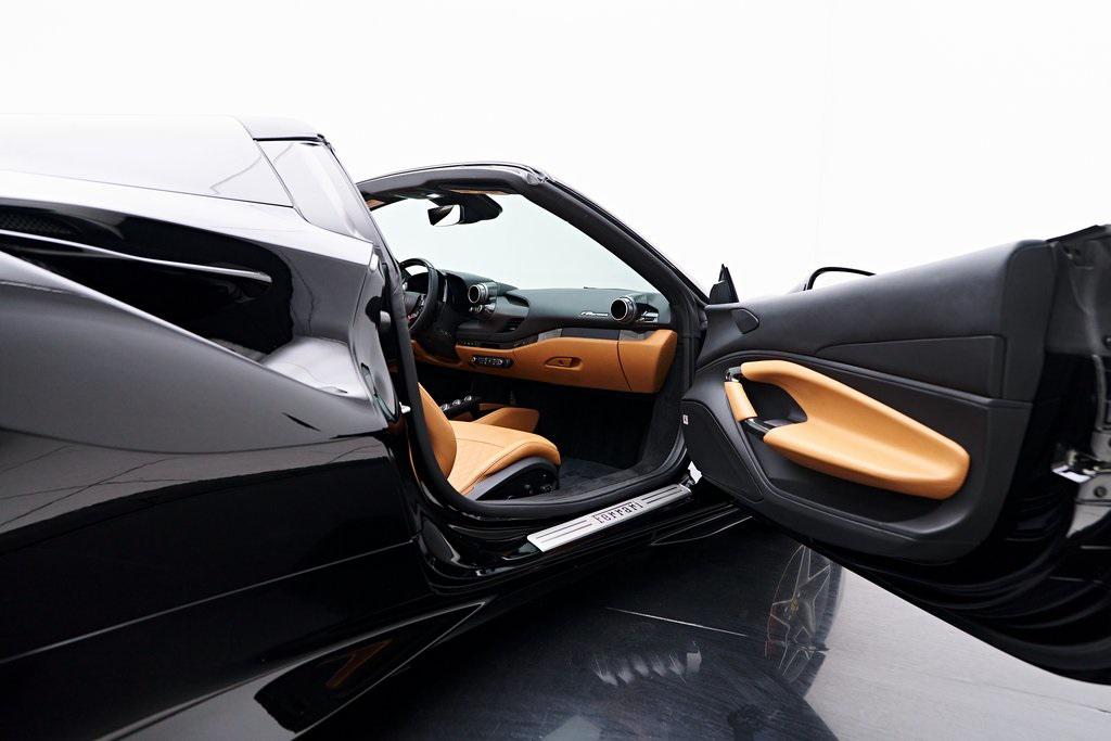 2022 FERRARI F8 SPIDERCARBON DRIVER ZONE, PASSENGER DISPLAY, DIAMOND PATTERN STYLE SEATS, AND MORE!OVERVIEWThe 2022 Ferrari F8 Spider is the embodiment of open-air performance in Maranello's lineup, blending Italian design with the raw power of a mid-engine supercar. As the convertible sibling to the F8 Tributo, the Spider delivers the same ferocious performance with the added thrill of top-down driving, letting the driver experience every note of its V8 symphony. At its heart lies Ferrari's award-winning 3.9-liter twin-turbocharged V8, producing 710 horsepower and 568 lb-ft of torque––figures that make it one of the most powerful production V8s ever built. Paired with a 7-speed dual-clutch transmission, the F8 Spider rockets from 0-60 mph in 2.9 seconds, and on to a top speed of 211 mph. Thanks to advanced aerodynamics, including the S-Duct front intake and integrated rear spoiler, exceptional downforce and stability are ensured at high speed. The folding hardtop operates in 14 seconds at speeds up to 28 mph, transforming the car from coupe-like silhouette to open-air exhilaration with the touch of a button. Inside, the cockpit reflects Ferrari's driver-first philosophy: sculpted sport seats, premium leather, carbon fiber accents, and a steering wheel equipped with the signature Manettino dial that places drive modes at your fingertips. Every switch, paddle, and display is positioned toward the driver for maximum engagement, while your plus one gets an optional Passenger Display to enjoy the thrill.OPTIONAL EQUIPMENTNeroCuoio Leather 20"" Forged Matt Grigio Corsa Diamond Cut WheelsDiamond Pattern Style Seats $3,712Yellow Brake Calipers $1,519Carbon Fiber Inner Door Handle $4,219Carbon Fiber Driver Zone + LEDS $7,593Carbon Fiber Central Bridge $2,869Carbon Fiber Dashboard Inserts $6,750Suspension Lifter $5,062AFS System $2,531Scuderia Ferrari Shields $1,856Horse Stitched On Headrests $1,266Heat Insulating Windscreen $1,181Sport Exhaust Pipes $759Adaptive Cruise Control Passenger DisplayPremium Hi-Fi SystemGENERALYear: 2022Mileage: 6,335VIN #: ZFF93LMA9N0274177Engine Size: 3.9L V8 (Twin-Turbo) Class: ConvertibleHorsepower: 710Color: NeroInterior: Cuoio Leather Fuel: Premium Unleaded GasolineGear Box: 7-Speed Dual-Clutch AutomaticDoors: 2Seats: 2Cylinders: 8SAFETY EQUIPMENTDual Stage Driver and Passenger AirbagsElectronic Traction ControlDynamic Stability ControlRoll Stability ControlAnti-Lock Braking SystemDriver Condition ResponseDriver Monitoring AlertTire Specific Low Tire Pressure WarningParking Camera & SensorsADDITIONAL INFORMATION1 Key IncludedBalance of Factory Warranty (if applicable)Extended Warranties Available