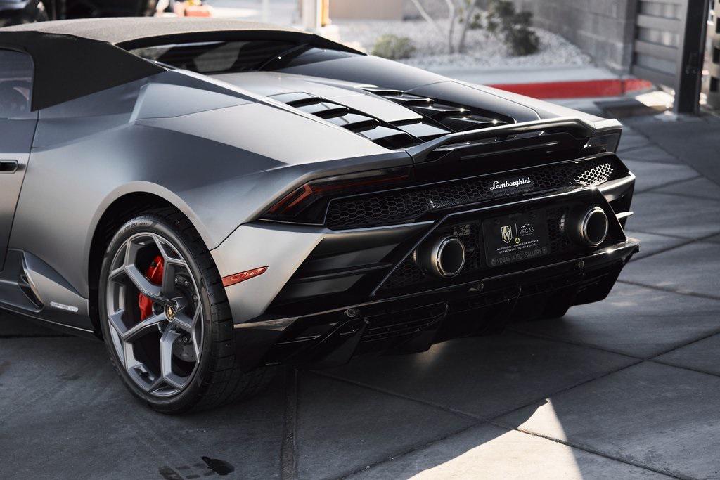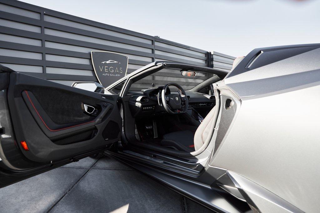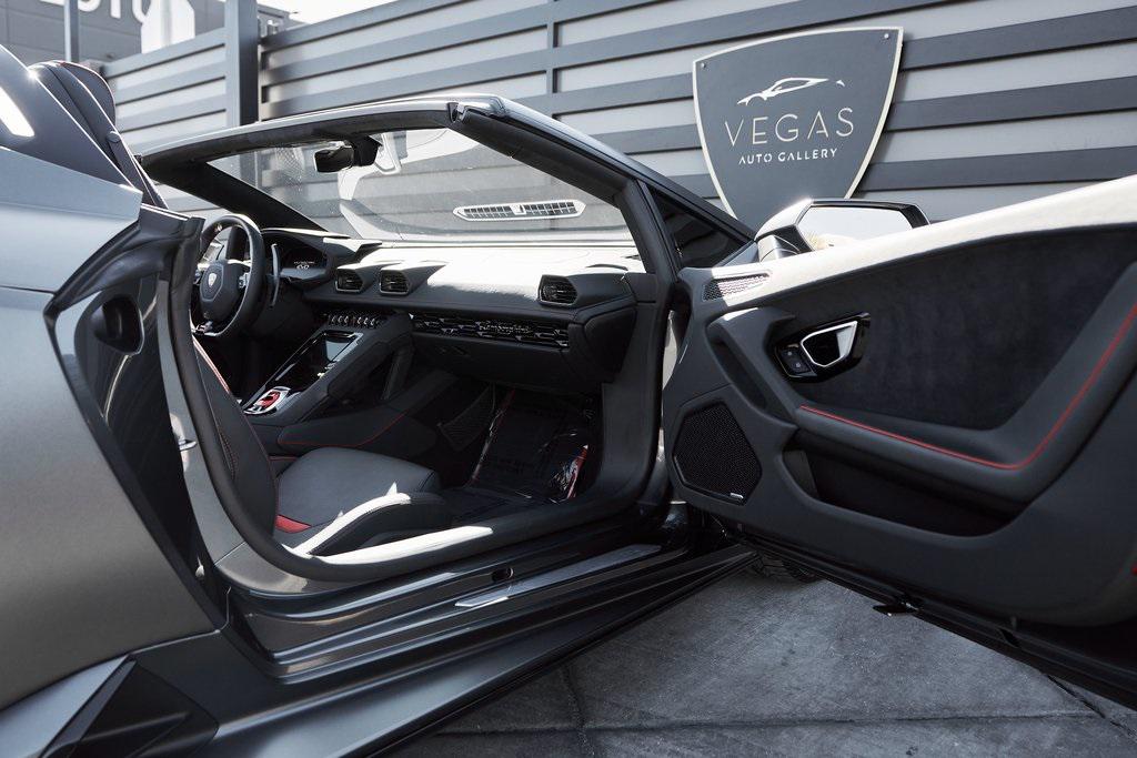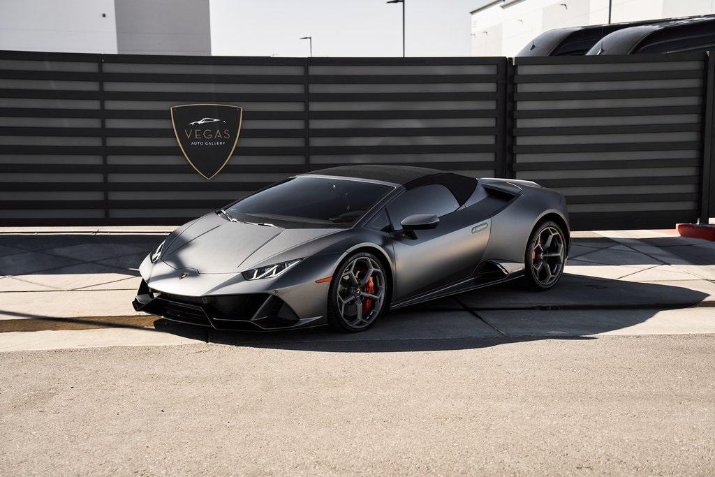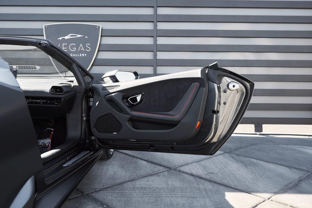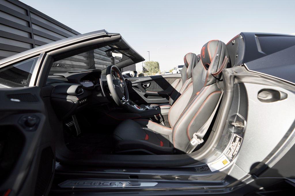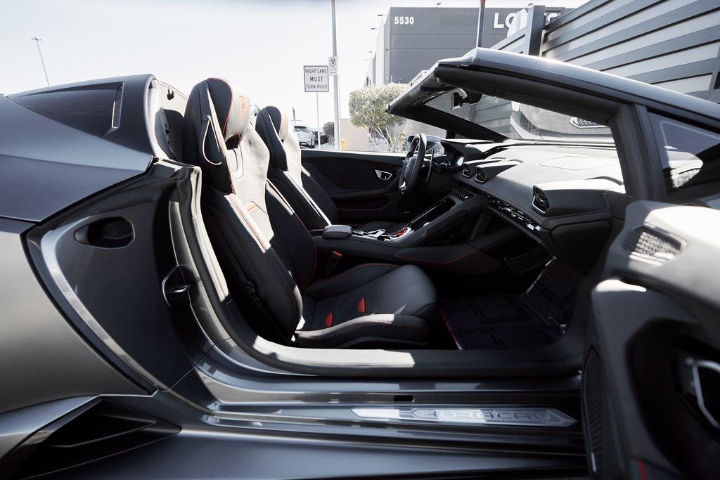 2022 LAMBORGHINI HURACAN EVO SPYDERGRIGIO LYNX METALLIC w/FULL PPF, LIFTING SYSTEM, SENSONUM SOUND SYSTEM, AND MORE!OVERVIEWThe 2022 Lamborghini Huracan EVO is a supercar that bridges raw emotion with cutting-edge technology, blending the unmistakable sound of a naturally aspirated V10 with razor-sharp handling and aggressive Italian design. It's the evolution of Lamborghini's mid-engine icon––sharper, smarter, and more exhilarating than ever before. Mounted behind the driver is a 5.2-liter naturally aspirated V10, producing 640 horsepower and 443 lb-ft of torque, sending power to all four wheels through a lightning-fast 7-speed dual-clutch transmission. With a 0-60 mph time of just 3 seconds and a top speed over 202 mph, the Huracan EVO delivers relentless acceleration and an intoxicating exhaust note that builds to a howling crescendo at 8,000+ rpm. The real magic comes from Lamborghini's advanced LDVI system (Lamborghini Dinamica Veicolo Integrata)––an integrated assistant that predicts driver inputs and road conditions in real time to optimize handling, traction, and stability. With this system, the Huracan EVO is as confident in tight switchbacks as it is on wide-open straights. Visually, the EVO refines the Huracan's dramatic styling with different front and rear bumpers, as well as a larger integrated rear diffuser. Inside, the cabin is trimmed in black/red leather, with complementing stitching and black accent trim. The center console houses an 8.4-inch touchscreen with smartphone connectivity, performance telemetry, and voice control. Driver-focused yet daily-drivable, the Huracan EVO offers selectable drive modes––Strada, Sport, and Corsa––allowing you to tailor the experience from relaxed cruising to track-focused precision. With its naturally aspirated soul, futuristic driving dynamics, and unmistakable Lamborghini character, the Huracan EVO is a true celebration of what a modern supercar should be.OPTIONAL EQUIPMENTGrigio Lynx Metallic (Full PPF)Nero Ade/Rosso Alala Leather $4,700 20"" Titanium Matt Aesir Wheels $2,000Carbon Ceramic Brakes w/Red Calipers $1,400Lifting System $4,000Sensonum Lamborghini Sound System $3,800High Gloss Black Rr Bumper & Diffuser $3,600Smartphone Interface & Connected Services $3,600Fully Electric & Heated Seats $3,200High Gloss Black Style Package $2,000Roof Lining & A Pillars In Alcantara $1,400Ambient Light Package $1,100Embroidered Lamborghini Shield On Headrest $1,000Colored Stitching $900Cup Holder & Smoker Package $700Floor Mats w/Leather Piping $600Steering Wheel Stitching $250Huracan Titanium ExhaustGENERALYear: 2022Mileage: 5,305VIN #: ZHWUT4ZF6NLA20955Engine Size: 5.2L V10Class: SpyderHorsepower: 640Color: Grigio Lynx MetallicInterior: Nero Ade/Rosso Alala LeatherFuel: Premium Unleaded GasolineGear Box: 7-Speed AutomaticDoors: 2Seats: 2Cylinders: 10SAFETY EQUIPMENTOutboard Front Lap and Shoulder Safety BeltsAirbag Occupancy SensorCurtain 1st and 2nd Row AirbagsDual Stage Driver and Passenger Front AirbagsTire Specific Low Tire Pressure WarningMercedes MeConnect Emergency SOSRear Backup Camera & Parking Sensors ABS & Driveline Traction Control LDVI Electronic Stability Control Anti-Locking BrakesADDITIONAL INFORMATION2 Keys IncludedBalance of Factory Warranty (if applicable)Extended Warranties Available