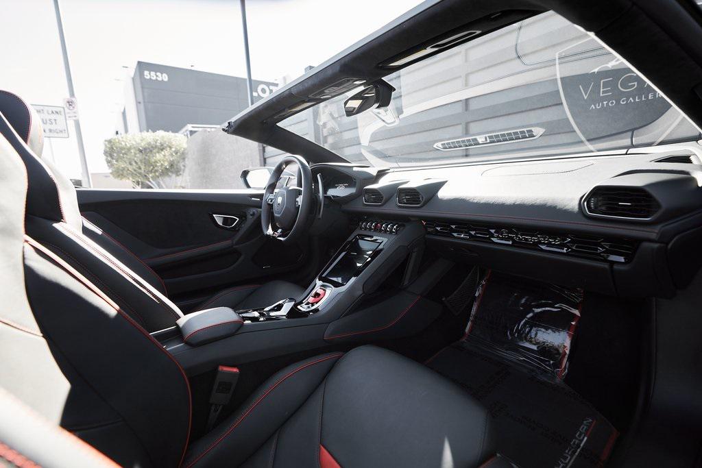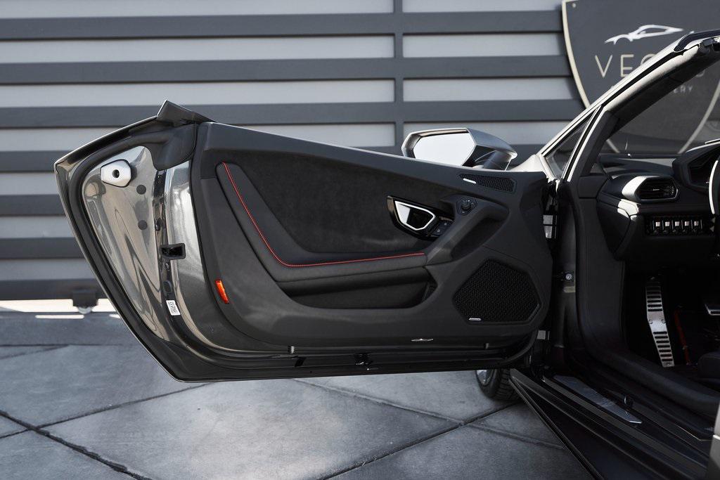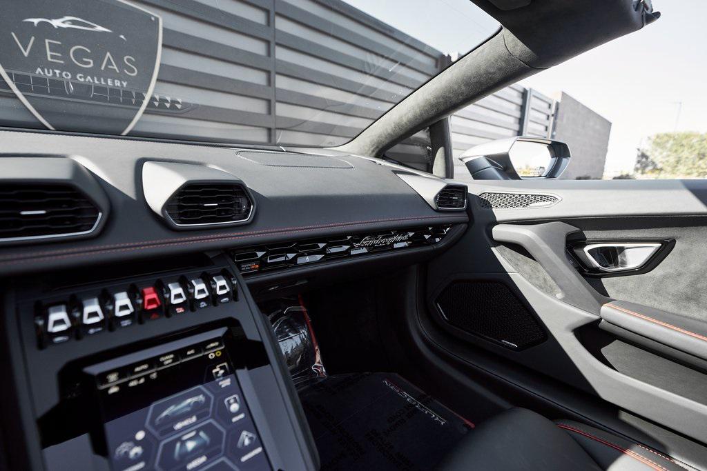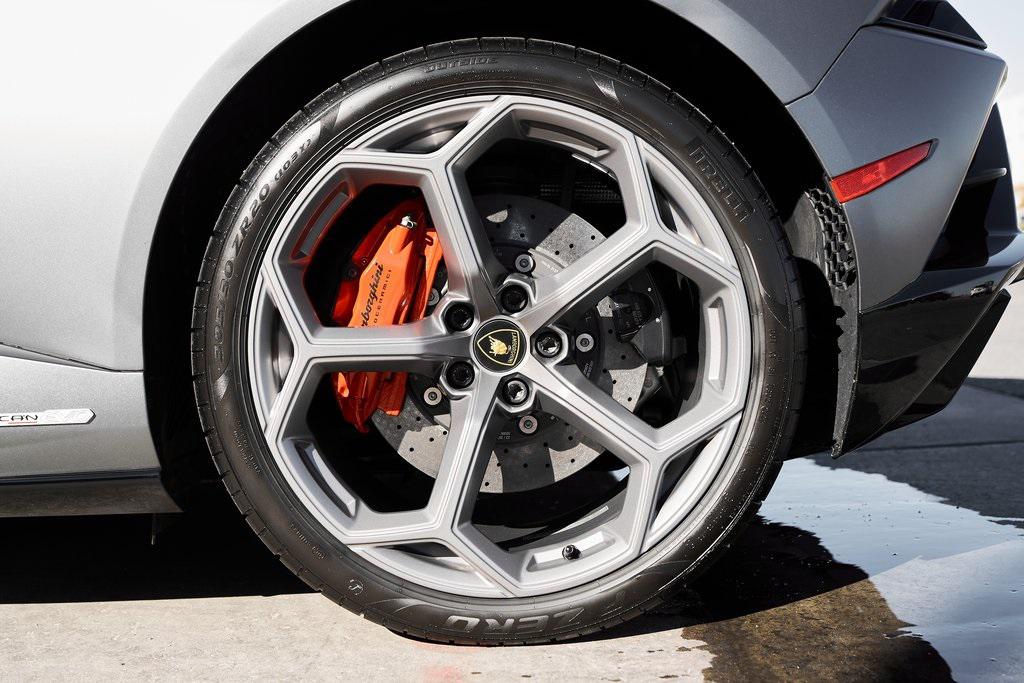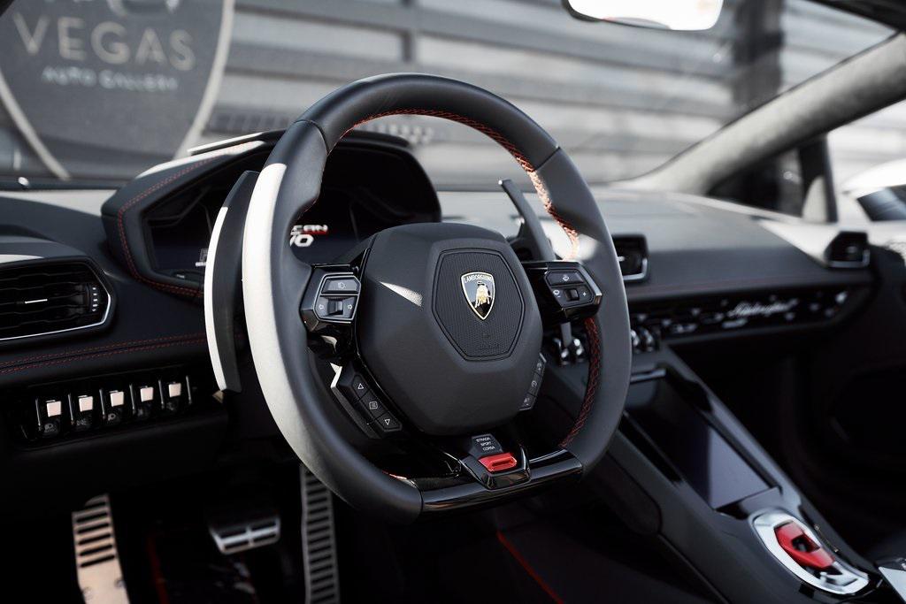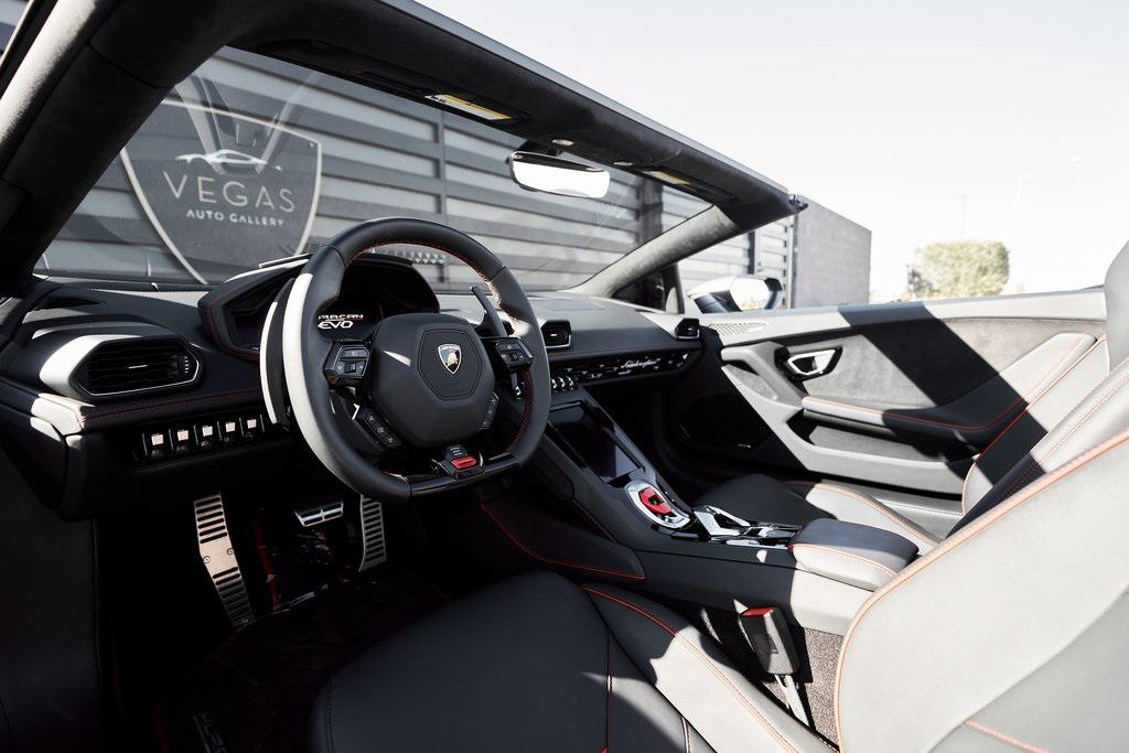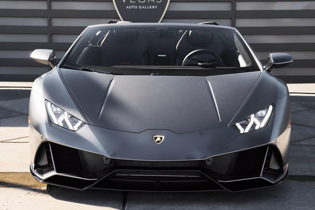 2022 LAMBORGHINI HURACAN EVO SPYDERGRIGIO LYNX METALLIC w/FULL PPF, LIFTING SYSTEM, SENSONUM SOUND SYSTEM, AND MORE!OVERVIEWThe 2022 Lamborghini Huracan EVO is a supercar that bridges raw emotion with cutting-edge technology, blending the unmistakable sound of a naturally aspirated V10 with razor-sharp handling and aggressive Italian design. It's the evolution of Lamborghini's mid-engine icon––sharper, smarter, and more exhilarating than ever before. Mounted behind the driver is a 5.2-liter naturally aspirated V10, producing 640 horsepower and 443 lb-ft of torque, sending power to all four wheels through a lightning-fast 7-speed dual-clutch transmission. With a 0-60 mph time of just 3 seconds and a top speed over 202 mph, the Huracan EVO delivers relentless acceleration and an intoxicating exhaust note that builds to a howling crescendo at 8,000+ rpm. The real magic comes from Lamborghini's advanced LDVI system (Lamborghini Dinamica Veicolo Integrata)––an integrated assistant that predicts driver inputs and road conditions in real time to optimize handling, traction, and stability. With this system, the Huracan EVO is as confident in tight switchbacks as it is on wide-open straights. Visually, the EVO refines the Huracan's dramatic styling with different front and rear bumpers, as well as a larger integrated rear diffuser. Inside, the cabin is trimmed in black/red leather, with complementing stitching and black accent trim. The center console houses an 8.4-inch touchscreen with smartphone connectivity, performance telemetry, and voice control. Driver-focused yet daily-drivable, the Huracan EVO offers selectable drive modes––Strada, Sport, and Corsa––allowing you to tailor the experience from relaxed cruising to track-focused precision. With its naturally aspirated soul, futuristic driving dynamics, and unmistakable Lamborghini character, the Huracan EVO is a true celebration of what a modern supercar should be.OPTIONAL EQUIPMENTGrigio Lynx Metallic (Full PPF)Nero Ade/Rosso Alala Leather $4,700 20"" Titanium Matt Aesir Wheels $2,000Carbon Ceramic Brakes w/Red Calipers $1,400Lifting System $4,000Sensonum Lamborghini Sound System $3,800High Gloss Black Rr Bumper & Diffuser $3,600Smartphone Interface & Connected Services $3,600Fully Electric & Heated Seats $3,200High Gloss Black Style Package $2,000Roof Lining & A Pillars In Alcantara $1,400Ambient Light Package $1,100Embroidered Lamborghini Shield On Headrest $1,000Colored Stitching $900Cup Holder & Smoker Package $700Floor Mats w/Leather Piping $600Steering Wheel Stitching $250Huracan Titanium ExhaustGENERALYear: 2022Mileage: 5,305VIN #: ZHWUT4ZF6NLA20955Engine Size: 5.2L V10Class: SpyderHorsepower: 640Color: Grigio Lynx MetallicInterior: Nero Ade/Rosso Alala LeatherFuel: Premium Unleaded GasolineGear Box: 7-Speed AutomaticDoors: 2Seats: 2Cylinders: 10SAFETY EQUIPMENTOutboard Front Lap and Shoulder Safety BeltsAirbag Occupancy SensorCurtain 1st and 2nd Row AirbagsDual Stage Driver and Passenger Front AirbagsTire Specific Low Tire Pressure WarningMercedes MeConnect Emergency SOSRear Backup Camera & Parking Sensors ABS & Driveline Traction Control LDVI Electronic Stability Control Anti-Locking BrakesADDITIONAL INFORMATION2 Keys IncludedBalance of Factory Warranty (if applicable)Extended Warranties Available