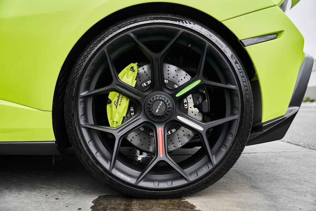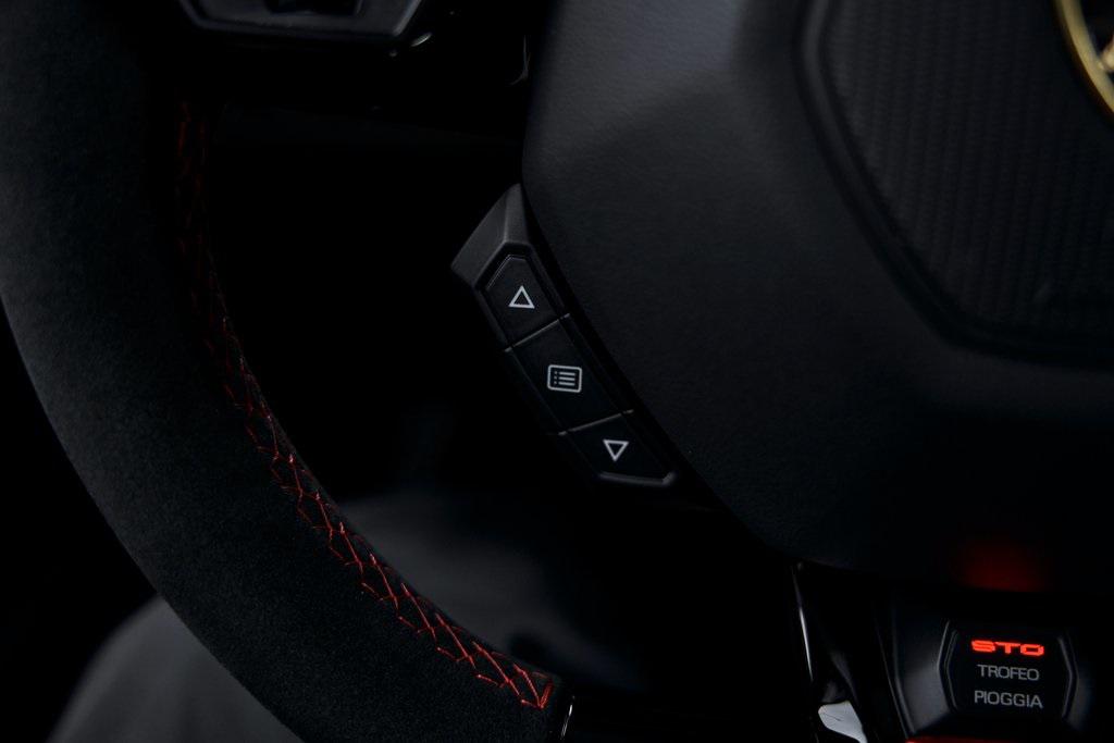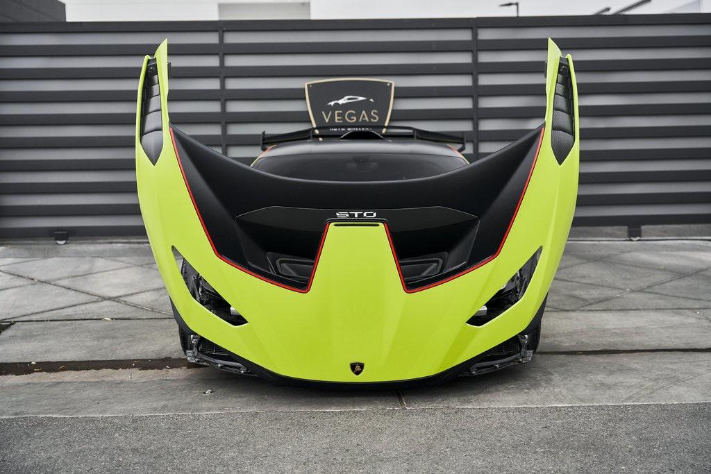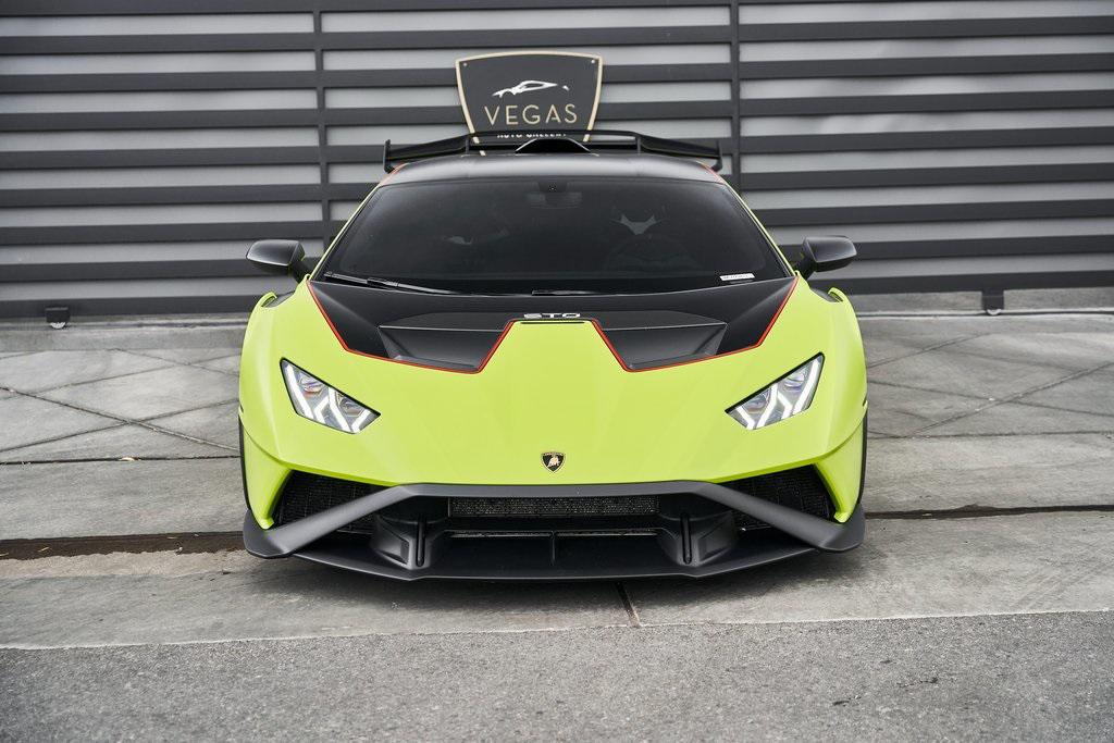 2022 LAMBORGHINI HURACAN STOVERDE SHOCK w/PPF, CUSTOM WHEELS, FRONT AXLE LIFT, AND MORE!OVERVIEWThe 2022 Lamborghini Huracan STO embodies the intersection of high performance and a naturally aspirated Italian soundtrack––engineered with lessons learned from the Huracan Super Trofeo EVO and GT3 race cars, yet fully homologated for the road. The STO retains its naturally aspirated 5.2-liter V10 that powers only the rear wheels and focuses much more on balance, agility and lap times than raw power figures. This Huracan delivers 630 hp and 417 lb-ft of torque. Lamborghini states a 0-60 mph time of 3 seconds flat. Every detail serves performance: a Cofango front clamshell combining hood, fenders, and bumper for weight reduction and aerodynamics; an adjustable rear wing delivering immense downforce; and carbon-fiber bodywork that helps achieve a curb weight over 90 lbs lighter than the Huracan Performante. The rear-wheel steering system and Magneto Rheological suspension keep the STO razor-sharp through every corner, while Brembo carbon-ceramic brakes––derived from Formula 1––ensure fade-free stopping power. Inside, the cockpit is stripped for speed yet steeped in Lamborghini drama: Alcantara surfaces, exposed carbon, and lightweight sport seats immerse the driver in a track-focused environment. Whatever surfaces aren't covered in Alcantara suede are molded from forged composite, a lightweight form of carbon fiber used extensively in the STO's structure. With limited production and breathtaking performance, the Lamborghini Huracan STO hits the sweet spot: perfectly visceral and analog without the assistants and surprises of an electric hybrid supercar.OPTIONAL EQUIPMENTVerde Shock Matt (PPF)Red AccentsNero Cosmus/Rosso Alala Alcantara Seats20"" Black Brixton WheelsCarbon Fiber Vorsteiner Front LipVerde Scandal Brake CalipersLifting SystemFender Louves In Carbon FiberPlate On Cofango In Carbon FiberUpper Fin In Carbon FiberCruise Control SystemSteering Wheel StitchingDoor Lights w/ STO LogoGENERALYear: 2022Mileage: 14,060VIN #: ZHWUA6ZX1NLA20565Engine Size: 5.2L V10 Class: CoupeHorsepower: 630Color: Verde Shock Matt (PPF)Interior: Nero Cosmus/Rosso Alala Alcantara Fuel: Premium Unleaded GasolineGear Box: 7-Speed Dual-Clutch AutomaticDoors: 2Seats: 2Cylinders: 10SAFETY EQUIPMENTDual Stage Driver and Passenger AirbagsElectronic Traction ControlDynamic Stability ControlRoll Stability ControlAnti-Lock Braking SystemDriver Condition ResponseDriver Monitoring AlertTire Specific Low Tire Pressure WarningBack-Up CameraADDITIONAL INFORMATION1 Key IncludedBalance of Factory Warranty (if applicable)Extended Warranties Available
