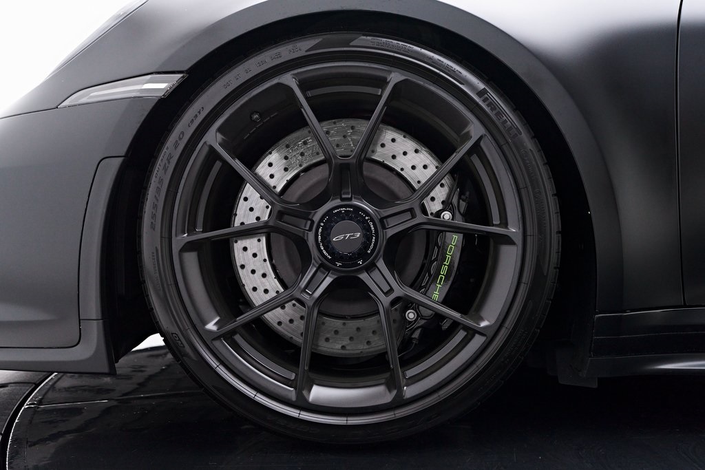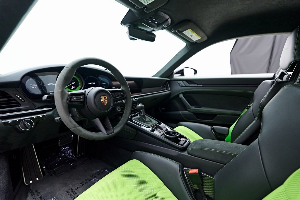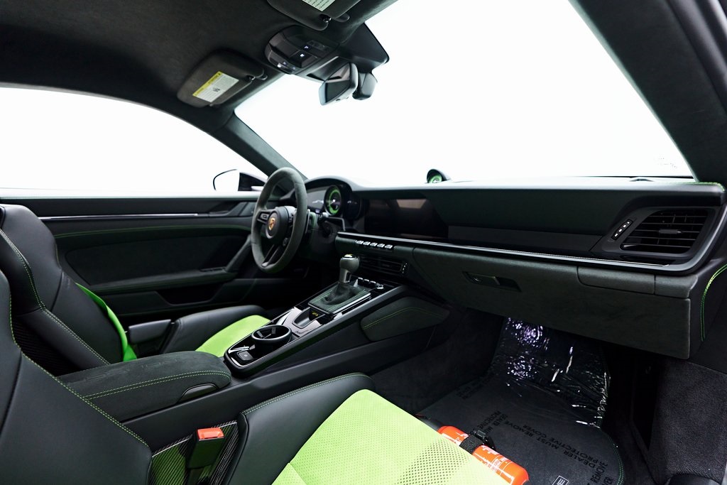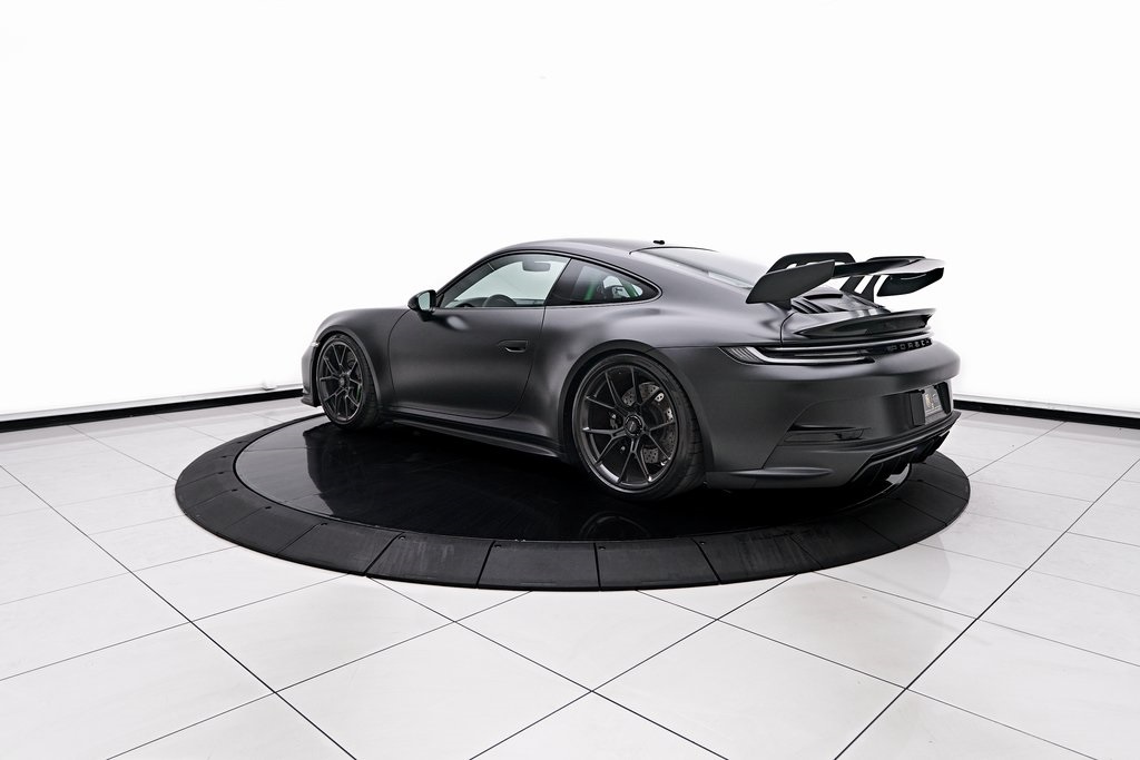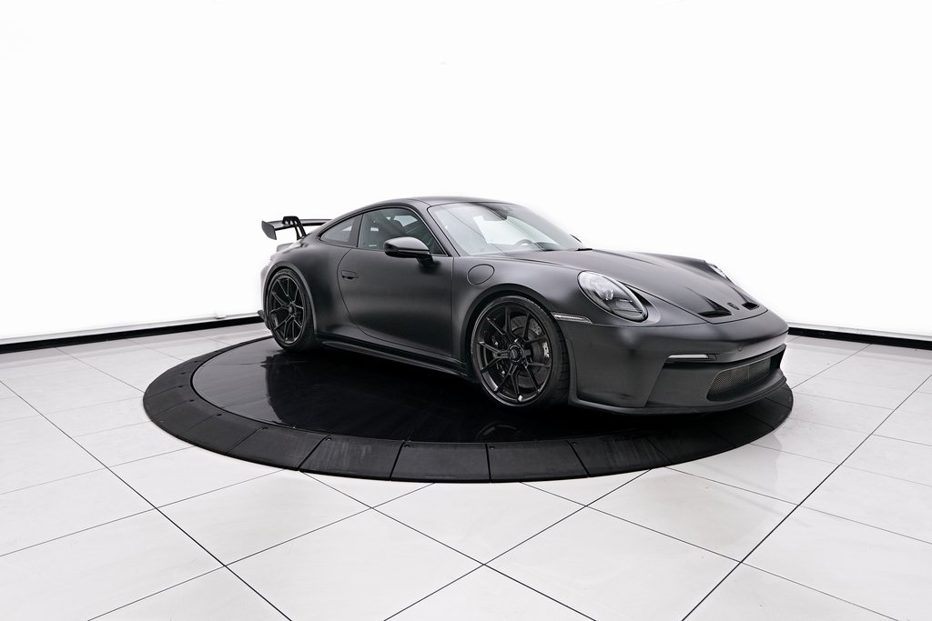 2022 PORSCHE 911 GT3 – Naturally Aspirated. Track Proven. Road Legal.BLACK/LIZARD GREEN RACE TEX INTERIOR, CARBON FIBER BUCKET SEATS, BOSE SURROUND SOUND SYSTEM, AND MORE!OVERVIEWThe 2022 Porsche 911 GT3 represents the purest expression of Porsche's motorsport DNA for the road. It's one of the last high-revving, naturally aspirated engines of its kind––and it sings. At its heart lies a 4.0-liter naturally aspirated flat-six engine, revving to a spine-tingling 9,000 rpm and producing 502 horsepower and 346 lb-ft of torque. Power in this GT3 is routed through a lightning-quick 7-speed PDK Dual-Clutch transmission. The result? 0-60 mph in just 3.2 seconds and a top speed of 198 mph. Aerodynamics play a starring role, with an aggressive rear diffuser and manually adjustable swan-neck rear wing that generate up to 150% more downforce than its predecessor. Agility is further enhanced by rear-axle steering and Porsche Active Suspension Management (PASM). From appearance alone, the GT3's wide body, center-lock wheels, and aggressive aero signal its intent without saying a word. Inside, this track-focused 911 remains modern and functional. Lightweight carbon bucket seats, Race-Tex trim throughout, and GT-specific driving modes provide a true motorsport environment. Yet, despite its track focus, you still get modern conveniences like Apple CarPlay, dual-zone climate control, and a Bose surround sound system. As with many Porsches, customization is key. This example features a full Satin PPF on the exterior, and Lizard Green accents on interior equipment including, the chronograph, seats, and central tachometer. The 2022 911 GT3 is more than a car. It's a precision tool for the track that's comfortable and refined enough to enjoy driving daily on the road. It's pure Porsche performance unfiltered.OPTIONAL EQUIPMENTBlack Exterior (Satin PPF)Black Leather/Lizard Green Race Tex Seats $6,230Full Bucket Seats $5,900Deviated Stitching Interior Package $3,650Extended Dashboard & Door Panel In Leather $3,440Front Axle Lift System $3,670Bose Surround Sound System $1,600Wheels Painted In Satin Neodyme $1,290Exclusive Design Taillights $990Brake Calipers In High Gloss Black $900LED Headlights In Black $850Auto Dimming Mirrors w/Rain Sensor $700Personalized Floor Mats w/Leather Edging $690Exterior Mirror Trim In Exterior Color $660Sun Visors In Race Tex $590Ambient Lighting $580Chrono Package $550Seat Belt Outlet Trims In Race Tex $550Steering Column Casing In Leather $520Sport Chrono Dial In Lizard Green $420Central Tachometer In Lizard Green $420Seat Belts In Lizard Green $360Center Console Lid In Race Tex w/Porsche Logo $34023.7 Gal. Extended Range Fuel Tank $230Fire Extinguisher $180Under Door Puddle Light Projectors $160GENERALYear: 2022Mileage: 9,318VIN #: WP0AC2A98NS270920Engine Size: 4.0L H 6Class: CoupeHorsepower: 502Color: Black (Satin PPF)Interior: Black Leather/Lizard Green Race Tex Fuel: Premium Unleaded GasolineGear Box: 7-Speed PDK (Automatic)Doors: 2Seats: 2Cylinders: 6SAFETY EQUIPMENTDual Stage Driver and Passenger AirbagsElectronic Traction ControlDynamic Stability ControlRoll Stability ControlAnti-Lock Braking SystemDriver Condition ResponseDriver Monitoring AlertTire Specific Low Tire Pressure WarningBack-Up CameraRear Parking Sensors ADDITIONAL INFORMATION2 Keys IncludedBalance of Factory Warranty (if applicable)Extended Warranties Available