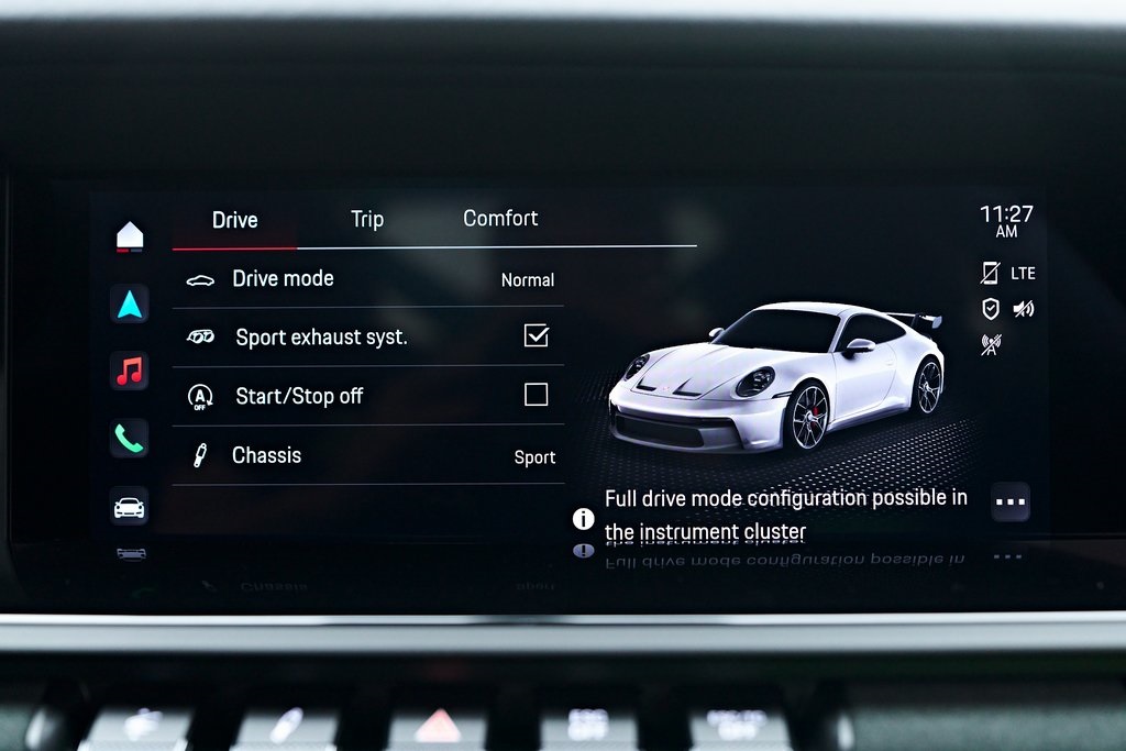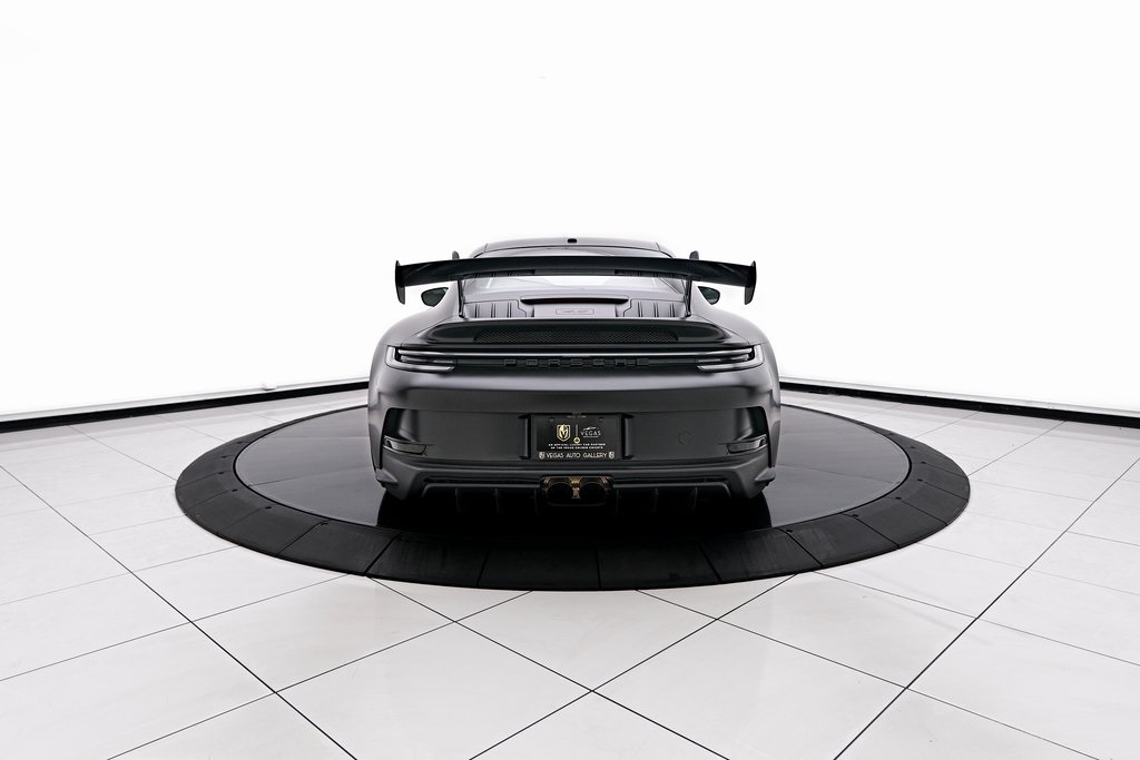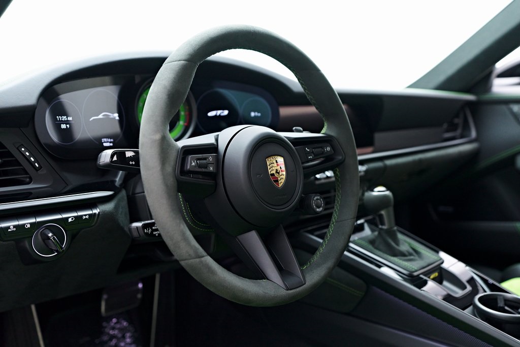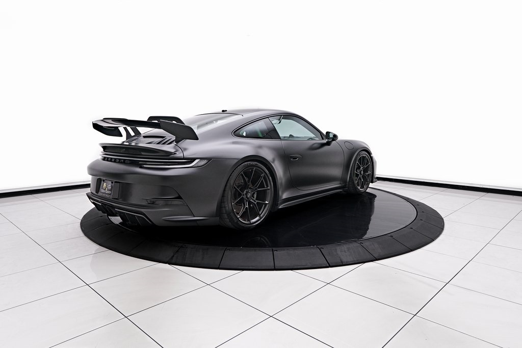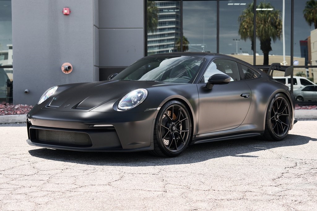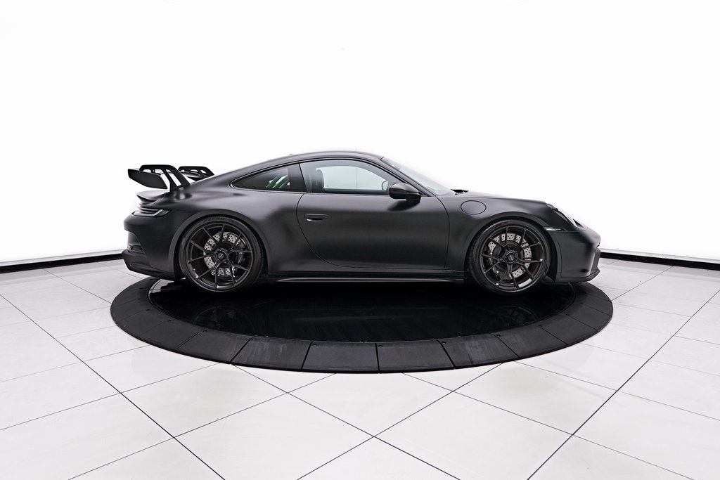 2022 PORSCHE 911 GT3 – Naturally Aspirated. Track Proven. Road Legal.BLACK/LIZARD GREEN RACE TEX INTERIOR, CARBON FIBER BUCKET SEATS, BOSE SURROUND SOUND SYSTEM, AND MORE!OVERVIEWThe 2022 Porsche 911 GT3 represents the purest expression of Porsche's motorsport DNA for the road. It's one of the last high-revving, naturally aspirated engines of its kind––and it sings. At its heart lies a 4.0-liter naturally aspirated flat-six engine, revving to a spine-tingling 9,000 rpm and producing 502 horsepower and 346 lb-ft of torque. Power in this GT3 is routed through a lightning-quick 7-speed PDK Dual-Clutch transmission. The result? 0-60 mph in just 3.2 seconds and a top speed of 198 mph. Aerodynamics play a starring role, with an aggressive rear diffuser and manually adjustable swan-neck rear wing that generate up to 150% more downforce than its predecessor. Agility is further enhanced by rear-axle steering and Porsche Active Suspension Management (PASM). From appearance alone, the GT3's wide body, center-lock wheels, and aggressive aero signal its intent without saying a word. Inside, this track-focused 911 remains modern and functional. Lightweight carbon bucket seats, Race-Tex trim throughout, and GT-specific driving modes provide a true motorsport environment. Yet, despite its track focus, you still get modern conveniences like Apple CarPlay, dual-zone climate control, and a Bose surround sound system. As with many Porsches, customization is key. This example features a full Satin PPF on the exterior, and Lizard Green accents on interior equipment including, the chronograph, seats, and central tachometer. The 2022 911 GT3 is more than a car. It's a precision tool for the track that's comfortable and refined enough to enjoy driving daily on the road. It's pure Porsche performance unfiltered.OPTIONAL EQUIPMENTBlack Exterior (Satin PPF)Black Leather/Lizard Green Race Tex Seats $6,230Full Bucket Seats $5,900Deviated Stitching Interior Package $3,650Extended Dashboard & Door Panel In Leather $3,440Front Axle Lift System $3,670Bose Surround Sound System $1,600Wheels Painted In Satin Neodyme $1,290Exclusive Design Taillights $990Brake Calipers In High Gloss Black $900LED Headlights In Black $850Auto Dimming Mirrors w/Rain Sensor $700Personalized Floor Mats w/Leather Edging $690Exterior Mirror Trim In Exterior Color $660Sun Visors In Race Tex $590Ambient Lighting $580Chrono Package $550Seat Belt Outlet Trims In Race Tex $550Steering Column Casing In Leather $520Sport Chrono Dial In Lizard Green $420Central Tachometer In Lizard Green $420Seat Belts In Lizard Green $360Center Console Lid In Race Tex w/Porsche Logo $34023.7 Gal. Extended Range Fuel Tank $230Fire Extinguisher $180Under Door Puddle Light Projectors $160GENERALYear: 2022Mileage: 9,318VIN #: WP0AC2A98NS270920Engine Size: 4.0L H 6Class: CoupeHorsepower: 502Color: Black (Satin PPF)Interior: Black Leather/Lizard Green Race Tex Fuel: Premium Unleaded GasolineGear Box: 7-Speed PDK (Automatic)Doors: 2Seats: 2Cylinders: 6SAFETY EQUIPMENTDual Stage Driver and Passenger AirbagsElectronic Traction ControlDynamic Stability ControlRoll Stability ControlAnti-Lock Braking SystemDriver Condition ResponseDriver Monitoring AlertTire Specific Low Tire Pressure WarningBack-Up CameraRear Parking Sensors ADDITIONAL INFORMATION2 Keys IncludedBalance of Factory Warranty (if applicable)Extended Warranties Available