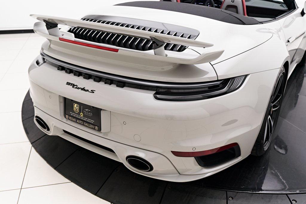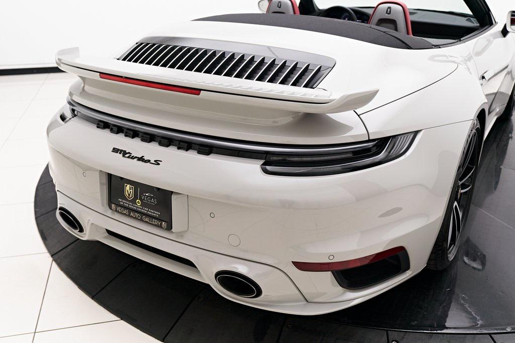 2022 PORSCHE 911 TURBO S CABRIOLET CHALK EXTERIOR, LEATHER INTERIOR IN BLACK/BORDEAUX RED, FRONT AXLE LIFT, SPORTDESIGN PACKAGE, PDLS+ & MORE! OVERVIEW The 2022 Porsche 911 Turbo S Cabriolet epitomizes the pinnacle of open-top driving exhilaration and performance. Its iconic silhouette, with sleek lines and aggressive styling cues, sets it apart as a true automotive icon. Under the hood, a potent twin-turbocharged flat-six engine delivers breathtaking power, propelling the Turbo S Cabriolet from 0 to 60 mph in blistering times. Paired with Porsche's lightning-fast PDK dual-clutch transmission, gear changes are seamless and instantaneous, enhancing both acceleration and driving pleasure. The interior is a blend of luxury and technology, with premium materials and advanced features ensuring both comfort and connectivity on every journey. With its combination of top-down driving excitement, unmatched performance, and legendary Porsche engineering, the 2022 911 Turbo S Cabriolet offers an exhilarating driving experience like no other.OPTIONAL EQUIPMENT Chalk Exterior,,,,,,,,,$3,270Bordeaux Red/Black, Leather Seat Trim W/Two Tone Leather Interior,$430Front Axle Lift System,,,,,,,,$2,770Power Steering Plus ,,,,,,,,$280Pasm Sport Suspension (Lowered 10mm),,,,,$1,510Sport Exhaust System w/Tailpipes In Black,,,,,$3,490Led Matrix Design Headlights in Black W/ PDLS+,,,,$2,740Model Designation on Rear in High Gloss Black ,,,,$270911 Turbo Sport Design Package ,,,,,,$6,150Porsche Logo on Rear in High Gloss Black ,,,,,$300Exclusive Design Tail Lights ,,,,,,,$990Rear Side Air Intakes in High Gloss Black ,,,,,$600Burmester High End Surround Sound System,,,,,$3,980Ventilated Front Seats ,,,,,,,$840Heated GT Sport Steering Wheel w/Carbon Fiber,,,,$680Extended Dashboard & Door Panel Package in Leather ,,,$3,440Under Door Puddle Light Projectors,,,,,,$160Ambient Lighting ,,,,,,,,$580Illuminated Door Sill Guards in Matte Carbon Fiber ,,,,$1,280Porsche Innodrive w/Acc & Alk,,,,,,$3,020Remote Parkassist ,,,,,,,,$4,090Sport Chrono PKG w/Porsche Design Subsecond Clock ,,,$1,120GENERAL Year: ,,2022Mileage: 10,959VIN #: ,,WP0CD2A94NS260116,Engine Size: ,3.8L H6 (Twin-Turbo)Class: ,,Sports CarHorsepower: ,640Color: ,,ChalkInterior: ,Leather Interior In Black/Bordeaux RedFuel: ,,Unleaded Premium Gasoline Gear Box: ,8-Speed Automatic Doors: ,,2Seats: ,,4Cylinders: ,6SAFETY EQUIPMENT All Wheel DriveSide Impact Beams Dual Stage Driver And Passenger Seat-Mounted Side Airbags ParkAssist Front And Rear Parking Sensors Warn and Brake Assist Collision Mitigation-Front Tire Specific Low Tire Pressure Warning Dual Stage Driver And Passenger Front Airbags Curtain 1st Row Airbags Airbag Occupancy Sensor Outboard Front Lap And Shoulder Safety Belts -inc: PretnesionersADDITIONAL INFORMATION ● 1 Key Included ● Balance of Factory Warranty (if applicable) ● Extended Warranties Available