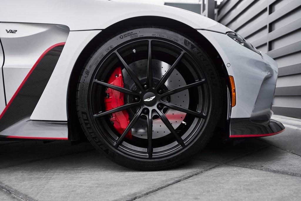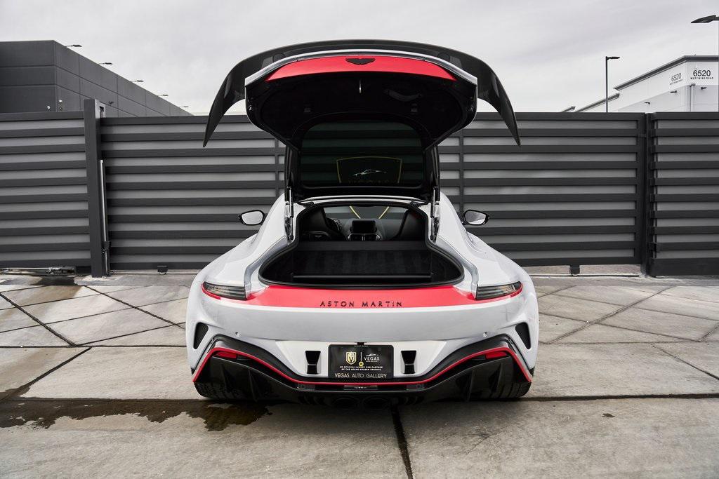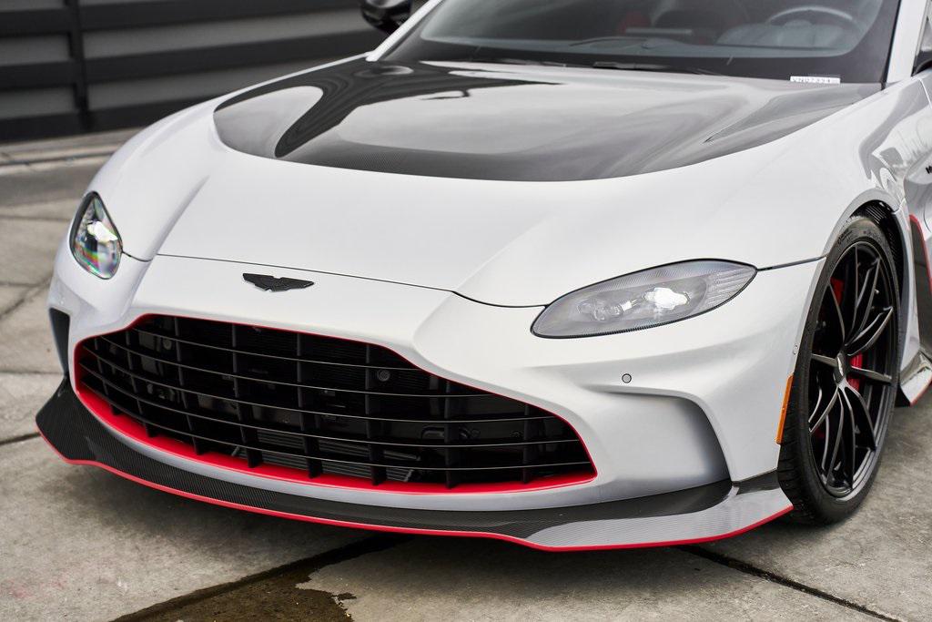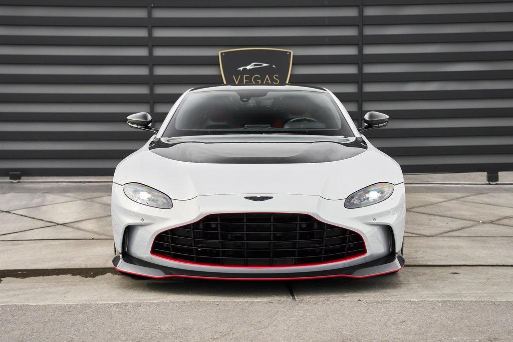 2023 ASTON MARTIN V12 VANTAGE RED LIVERY, LIGHTWEIGHT PACKAGE, GLOSS CARBON BONNET, 369K MSRP, AND MORE!OVERVIEWThe 2023 Aston Martin V12 Vantage marks the ultimate evolution of the brand's most celebrated nameplate. As the final Vantage to be fitted with Aston's biggest engine, it represents the end of an era and subsequently sold out within days of being announced back in 2022. Limited to just 333 units worldwide, the V12 Vantage is as rare as it is remarkable. Under the carbon fiber hood lies Aston Martin's legendary 5.2-liter twin-turbocharged V12, delivering a whopping 690 horsepower and 555 lb-ft of torque. Mated to an 8-speed automatic transmission and rear-wheel drive, it rockets from 0-60 mph in just 3.4 seconds, on its way to a top speed of 200 mph. The Vantage's chassis is pure Aston Martin. With adaptive damping, carbon-ceramic brakes, and a track width widened by 40mm over the standard model, it delivers superior composure and driving confidence. Extensive use of carbon fiber––in the hood, bumpers, and aero components––reduces weight and improves balance, while the aggressive aerodynamic package, including a full-width rear wing and front splitter, generates up to 450 pounds of downforce for high-speed stability. The result is a Vantage that is brutally fast yet sophisticated enough for use off the track. Visually, the V12 Vantage sits with a muscular stance. The enlarged front grille feeds the mighty V12, while sculpted lines and flared arches turn heads on every corner. This example features bespoke Q by Aston Martin finishes in red for a truly tailor-made look. The driver-centric cockpit features carbon fiber bucket seats upholstered in Semi Aniline leather, an Alcantara headliner and carbon fiber throughout. A duotone color palette and contrast stitching create a cabin that feels both intimate and bespoke. The 2023 Aston Martin V12 Vantage is a celebration of engineering legacy and power. As a send-off to the V12 era and a testament to Aston Martin's pursuit of beauty through performance, it stands as one of the most desirable and collectible grand tourers of the modern era.OPTIONAL EQUIPMENTLightning Silver Metallic $2,800Onyx Black/Spicy Red Leather $2,80021"" Satin Black Lightweight WheelsLightweight Package $26,000Livery Scheme - Door/Pinstripe/Lip & Rear $15,900Gloss Carbon Bonnet Insert $8,100Aston Martin Premium Audio $2,200Contrast Stitching $1,700Red Brake Calipers $1,500Matte Black Tailpipes $1,200Smoked Rear Taillights $1,200Duotone Interior Color Palette $1,000Black Wings Badges $800Black Vertical Grille Vanes $700Umbrella $400First Aid Kit $200GENERALYear: 2023Mileage: 10,272VIN #: SCFSMGAV0PGN07354Engine Size: 5.2L V12 (Twin-Tubocharged)Class: CoupeHorsepower: 690Color: Lightning SilverInterior: Onyx Black/Spicy Red LeatherFuel: Premium Unleaded GasolineGear Box: 8-Speed AutomaticDoors: 2Seats: 2Cylinders: 12SAFETY EQUIPMENTDual Stage Driver and Passenger AirbagsElectronic Traction ControlDynamic Stability ControlRoll Stability ControlAnti-Lock Braking SystemDriver Condition ResponseDriver Monitoring AlertTire Specific Low Tire Pressure WarningSurround View CameraADDITIONAL INFORMATION2 Keys IncludedBalance of Factory Warranty (if applicable)Extended Warranties Available