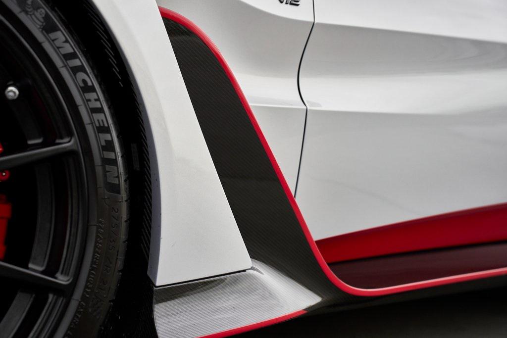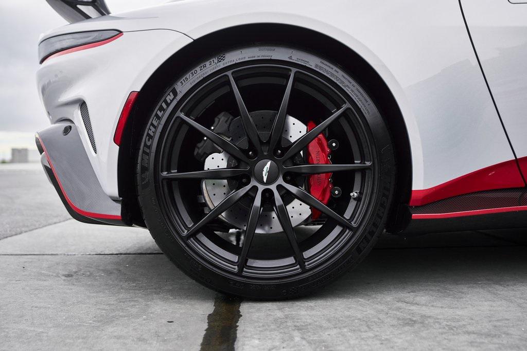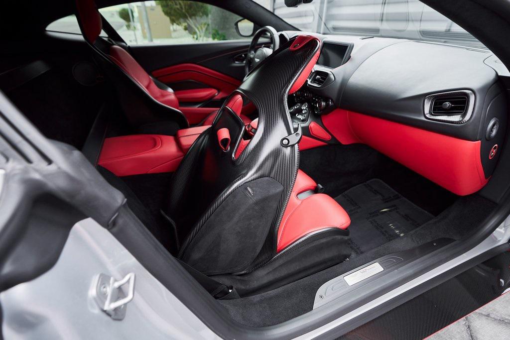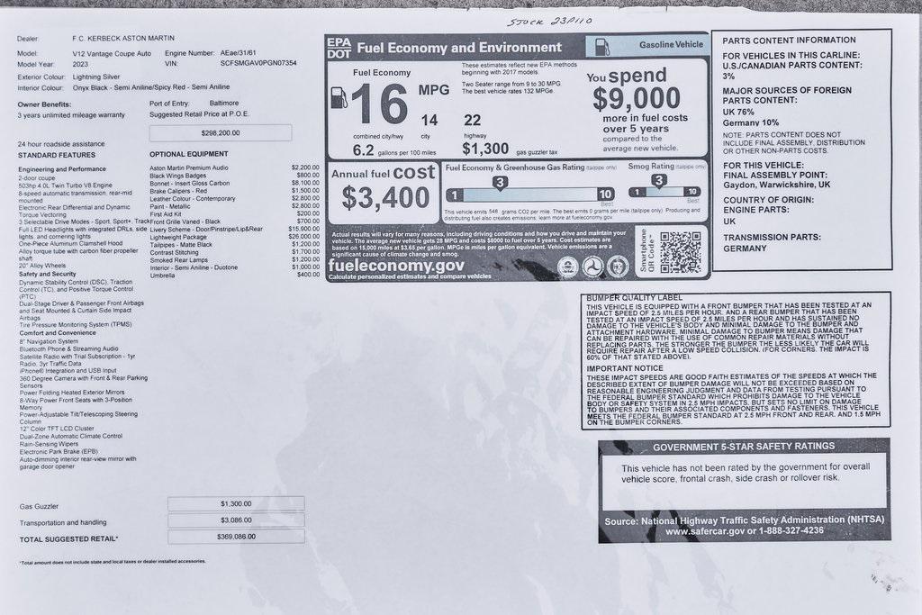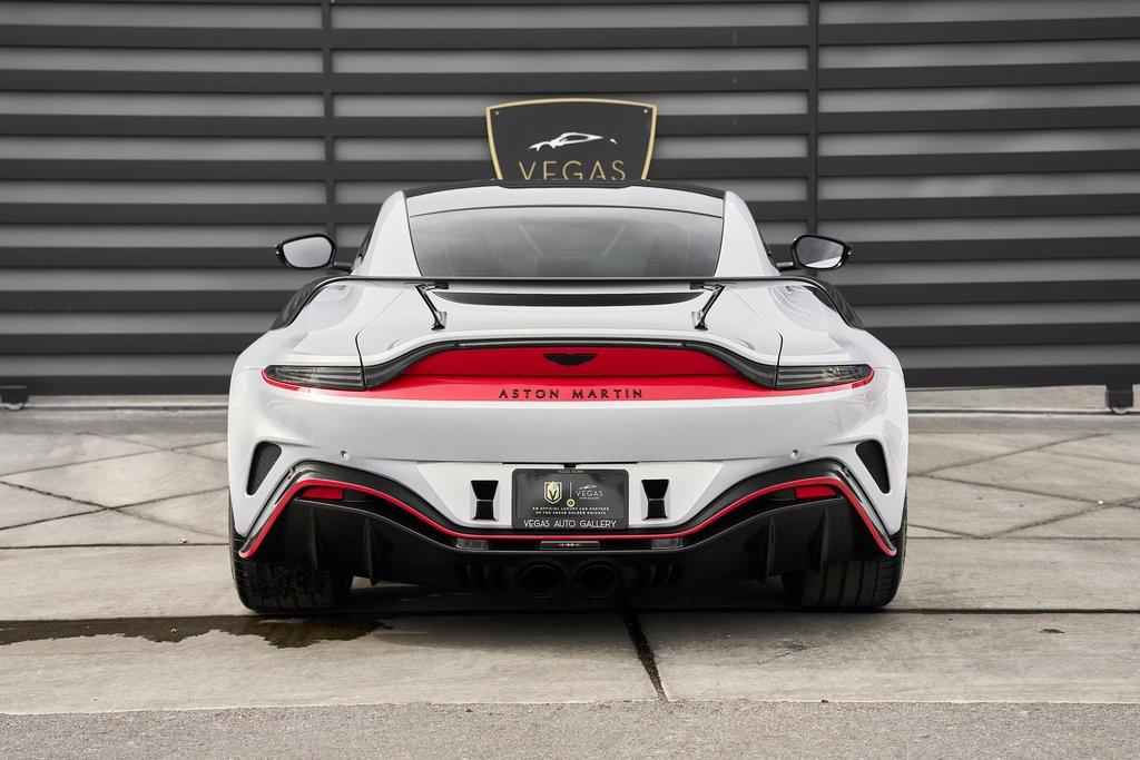 2023 ASTON MARTIN V12 VANTAGE RED LIVERY, LIGHTWEIGHT PACKAGE, GLOSS CARBON BONNET, 369K MSRP, AND MORE!OVERVIEWThe 2023 Aston Martin V12 Vantage marks the ultimate evolution of the brand's most celebrated nameplate. As the final Vantage to be fitted with Aston's biggest engine, it represents the end of an era and subsequently sold out within days of being announced back in 2022. Limited to just 333 units worldwide, the V12 Vantage is as rare as it is remarkable. Under the carbon fiber hood lies Aston Martin's legendary 5.2-liter twin-turbocharged V12, delivering a whopping 690 horsepower and 555 lb-ft of torque. Mated to an 8-speed automatic transmission and rear-wheel drive, it rockets from 0-60 mph in just 3.4 seconds, on its way to a top speed of 200 mph. The Vantage's chassis is pure Aston Martin. With adaptive damping, carbon-ceramic brakes, and a track width widened by 40mm over the standard model, it delivers superior composure and driving confidence. Extensive use of carbon fiber––in the hood, bumpers, and aero components––reduces weight and improves balance, while the aggressive aerodynamic package, including a full-width rear wing and front splitter, generates up to 450 pounds of downforce for high-speed stability. The result is a Vantage that is brutally fast yet sophisticated enough for use off the track. Visually, the V12 Vantage sits with a muscular stance. The enlarged front grille feeds the mighty V12, while sculpted lines and flared arches turn heads on every corner. This example features bespoke Q by Aston Martin finishes in red for a truly tailor-made look. The driver-centric cockpit features carbon fiber bucket seats upholstered in Semi Aniline leather, an Alcantara headliner and carbon fiber throughout. A duotone color palette and contrast stitching create a cabin that feels both intimate and bespoke. The 2023 Aston Martin V12 Vantage is a celebration of engineering legacy and power. As a send-off to the V12 era and a testament to Aston Martin's pursuit of beauty through performance, it stands as one of the most desirable and collectible grand tourers of the modern era.OPTIONAL EQUIPMENTLightning Silver Metallic $2,800Onyx Black/Spicy Red Leather $2,80021"" Satin Black Lightweight WheelsLightweight Package $26,000Livery Scheme - Door/Pinstripe/Lip & Rear $15,900Gloss Carbon Bonnet Insert $8,100Aston Martin Premium Audio $2,200Contrast Stitching $1,700Red Brake Calipers $1,500Matte Black Tailpipes $1,200Smoked Rear Taillights $1,200Duotone Interior Color Palette $1,000Black Wings Badges $800Black Vertical Grille Vanes $700Umbrella $400First Aid Kit $200GENERALYear: 2023Mileage: 10,272VIN #: SCFSMGAV0PGN07354Engine Size: 5.2L V12 (Twin-Tubocharged)Class: CoupeHorsepower: 690Color: Lightning SilverInterior: Onyx Black/Spicy Red LeatherFuel: Premium Unleaded GasolineGear Box: 8-Speed AutomaticDoors: 2Seats: 2Cylinders: 12SAFETY EQUIPMENTDual Stage Driver and Passenger AirbagsElectronic Traction ControlDynamic Stability ControlRoll Stability ControlAnti-Lock Braking SystemDriver Condition ResponseDriver Monitoring AlertTire Specific Low Tire Pressure WarningSurround View CameraADDITIONAL INFORMATION2 Keys IncludedBalance of Factory Warranty (if applicable)Extended Warranties Available
