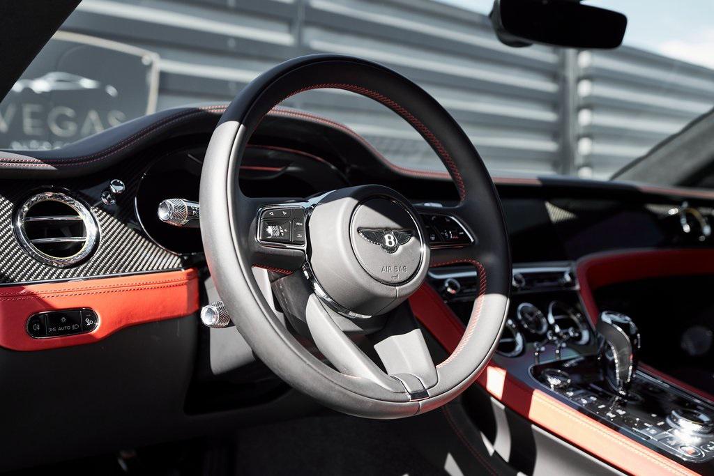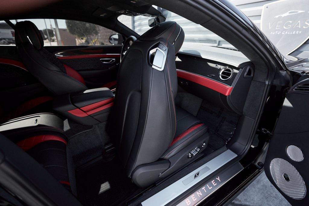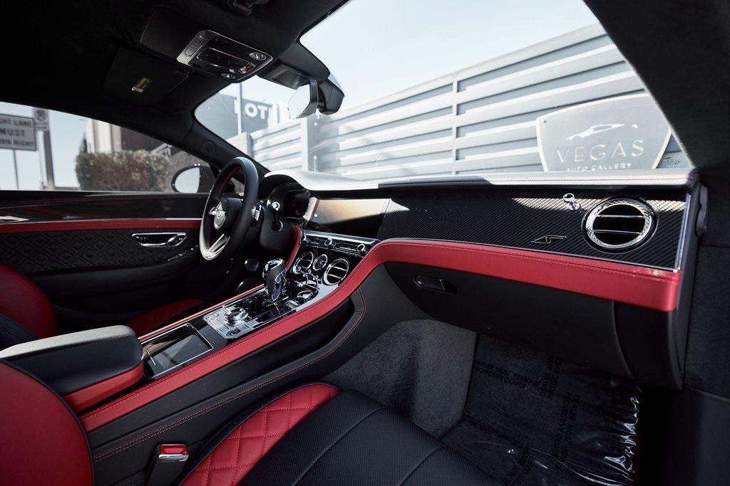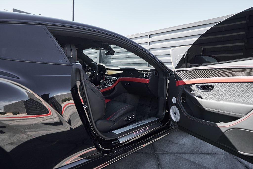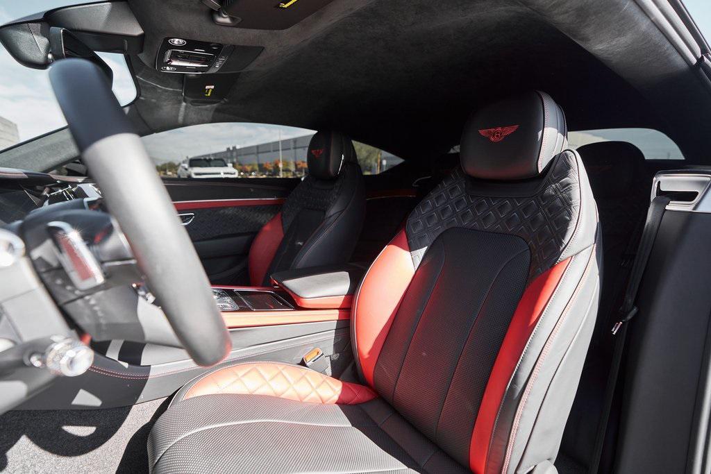 2023 BENTLEY CONTINENTAL GT V8 S DIAMOND QUILTING, NAIM SOUND SYSTEM, FRONT SEAT COMFORT SPEC, CARBON FIBER VENEER, AND MORE!OVERVIEWThe 2023 Bentley Continental GT S represents the ideal fusion of grand touring elegance, cutting-edge technology, and athletic performance. As the lighter, more agile counterpart to the W12 model, the V8 variant emphasizes sharp handling and driving engagement while maintaining the luxurious feel that defines Bentley's flagship coupe. Under the hood lies a 4.0-liter twin-turbocharged V8, producing 542 horsepower and 568 lb-ft of torque. Paired with an 8-speed dual-clutch automatic transmission and an advanced all-wheel-drive system, the Continental GT accelerates from 0-60 mph in around 3.8 seconds, with a top speed of 198 mph. On the inside, this GT S has a mix of Beluga/Hotspur leather upholstery and diamond quilted stitching. The center console features Bentley's 12.3-inch infotainment display, with Gloss Carbon Fiber Veneer and chrome accents throughout the rest of the cabin. Premium upgrades include a Naim sound system, diamond knurled air vents, and heated/ventilated/massage front seats. The exterior design, shaped by Bentley's signature muscular proportions, showcases clean lines, LED matrix headlights, and blacked out trim for a sporty look. The coupe's athletic stance is complemented by 22-inch wheels and massive steel brakes. As a true flagship for those who demand the very best, the Bentley Continental GT S blends British opulence, motorsport credibility, and grand touring comfort with a timeless design.OPTIONAL EQUIPMENTOnyxBeluga/Hotspur Leather22"" 10-Spoke Black Wheels $3,695Naim For Bentley $9,150Leather Specification w/Diamond Quilting $8,390Quilting To Seats/Doors/Quarter PanelsHide Steering Wheel & GearshiftContinental Blackline Specification $4,510Front Seat Comfort Specification $4,370Adjustable Bolsters & HeadrestAdjustable Cushion LengthHeated/Ventilated/Massage SeatsHigh Gloss Carbon Fiber Veneer $4,125Diamond Knurling $2,545Mood Lighting Specification $2,100Red Brake Calipers $1,740Embroidered Bentley Emblems $895Front Deep Pile Overmats $495GENERALYear: 2023Mileage: 5,096VIN #: SCBCG2ZG9PC010557Engine Size: 4.0L V8 (Twin-Turbo) Class: CoupeHorsepower: 542Color: OnyxInterior: Beluga/Hotspur Leather Fuel: Premium Unleaded GasolineGear Box: 8-Speed Dual-Clutch AutomaticDoors: 2Seats: 4Cylinders: 8SAFETY EQUIPMENTAll-Wheel DriveDual Stage Driver and Passenger AirbagsElectronic Traction ControlDynamic Stability ControlRoll Stability ControlAnti-Lock Braking SystemDriver Condition ResponseDriver Monitoring AlertTire Specific Low Tire Pressure WarningADDITIONAL INFORMATION1 Key IncludedBalance of Factory Warranty (if applicable)Extended Warranties Available