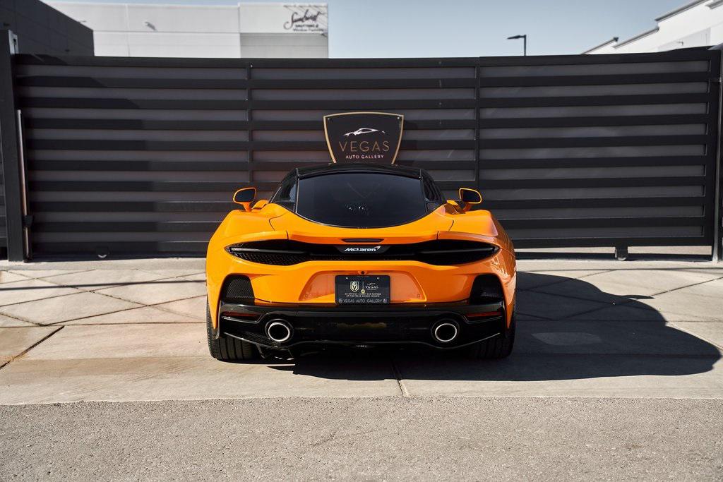 2023 MCLAREN GT VENTURA ORANGE, PREMIUM PACK, TITANIUM FINISH EXHAUST, TECHLUXE INTERIOR, AND MORE!OVERVIEWA grand tourer born from a supercar bloodline, the 2023 McLaren GT blends enthusiast-friendly performance with a level of comfort rivaling that of Aston Martin. Unlike its competitors, the McLaren GT has a carbon-fiber MonoCell II-T chassis, allowing for a lightweight structure and class-leading agility while still offering 14.8 cubic feet of cargo space––enough for a weekend getaway or a set of golf clubs. Powered by a 4.0L twin-turbocharged V8 producing 612 hp and 465 lb-ft of torque, the GT launches from 0-60 mph in just 3.1 seconds, with a top speed of 203 mph. But unlike track-focused McLarens, the GT is tuned for smooth, long-distance driving––linear, responsive, and composed even at triple-digit speeds. The exterior design blends flowing lines with aerodynamic purpose. Long rear haunches, dihedral doors, and slender LED lighting give the GT a sculpted, athletic silhouette. Inside, the cabin is a fusion of minimalist design and luxurious materials, featuring soft-grain leather, machined aluminum accents, and contrast stitching throughout. A 7-inch touchscreen infotainment system, 12.3-inch digital cluster, and a Bowers & Wilkins audio system deliver both connectivity and acoustic clarity. As McLaren's interpretation of a grand tourer, the 2023 GT offers a unique blend of performance and luxury, while being one of the most usable mid-engine sports cars of the modern era.OPTIONAL EQUIPMENTVentura Orange $5,300Jet Black Softgrain Aniline Leather 10 Twin-Spoke WheelsGloss Black Wheel Finish $1,320Premium PackFull LED HeadlightsCabin Air Purification w/Pollen FiltrationChrome Tipped Headlight BezelsBowers & Wilkins 12-Speaker Audio SystemPower Opening & Closing Glazed Rear TailgateVehicle LiftHomeLinkMcLaren Orange CCB Calipers $2,000Panoramic Glass Roof $1,200Natural Titanium Finish Exhaust $460Electrically Folding Heated Door MirrorsRear View CameraFront & Rear Parking Sensors GENERALYear: 2023Mileage: 7,696VIN #: SBM22GCA2PW002895Engine Size: 4.0L V8 (Twin-Tubo)Class: CoupeHorsepower: 612Color: Ventura OrangeInterior: Jet Black Softgrain Aniline Leather Fuel: Premium Unleaded GasolineGear Box: 7-Speed Dual-Clutch AutomaticDoors: 2Seats: 2Cylinders: 8SAFETY EQUIPMENTDual Stage Driver and Passenger AirbagsElectronic Traction ControlDynamic Stability ControlRoll Stability ControlAnti-Lock Braking SystemDriver Condition ResponseDriver Monitoring AlertTire Specific Low Tire Pressure WarningBrake Actuated Limited Slip DifferentialBack-Up CameraFront & Rear Parking SensorsADDITIONAL INFORMATION1 Key IncludedBalance of Factory Warranty (if applicable)Extended Warranties Available