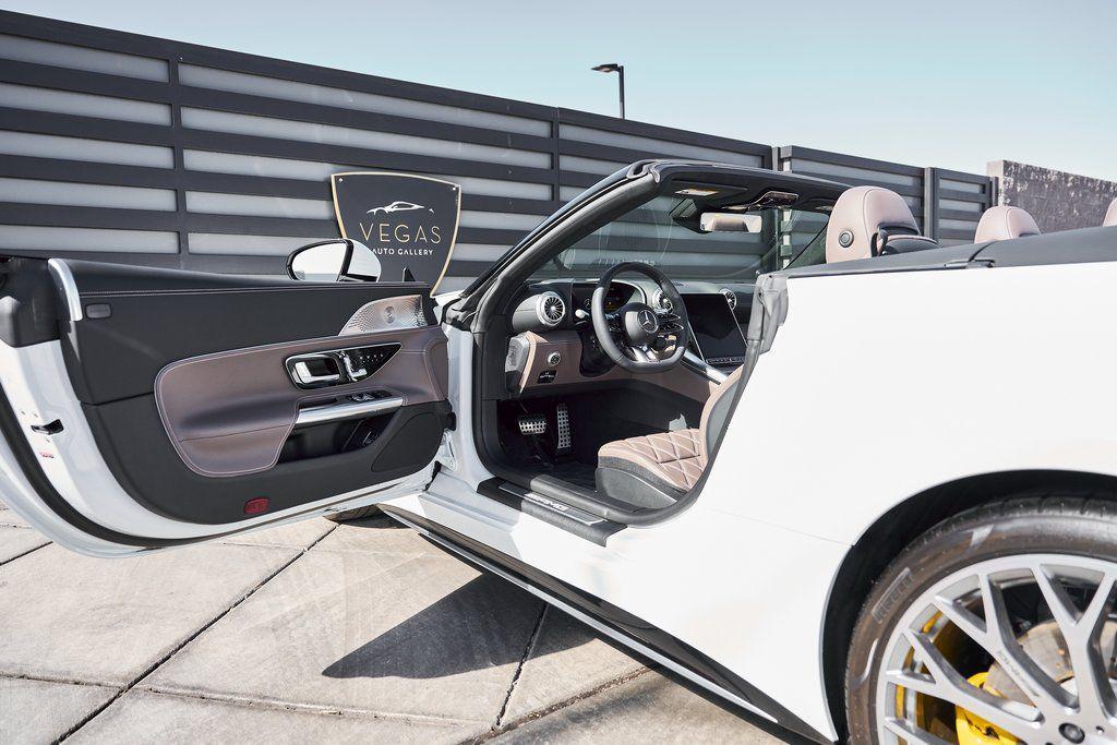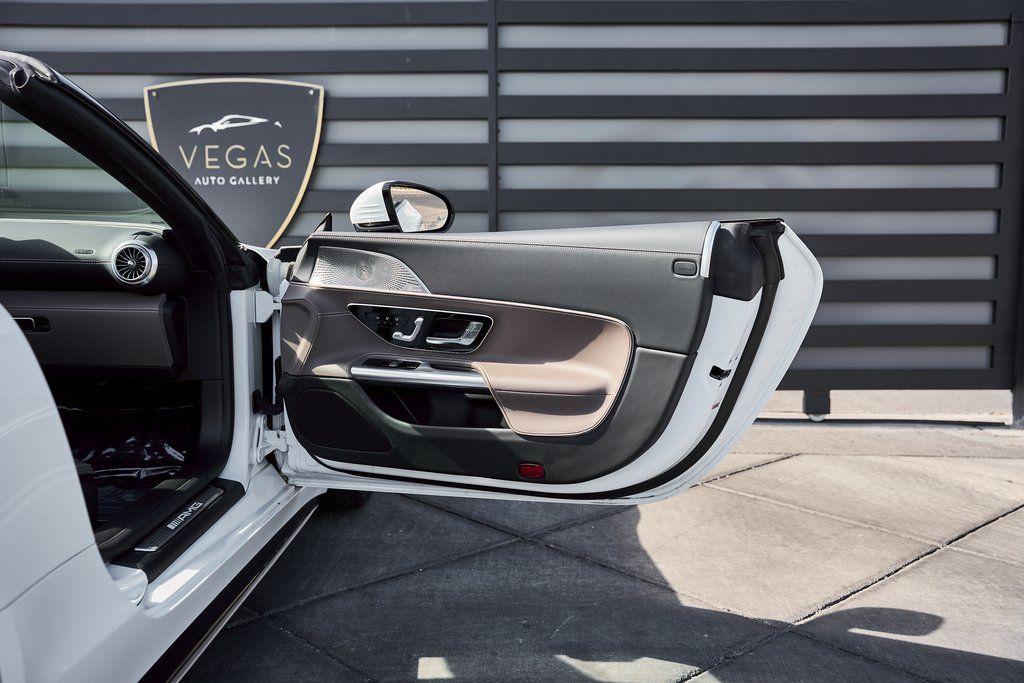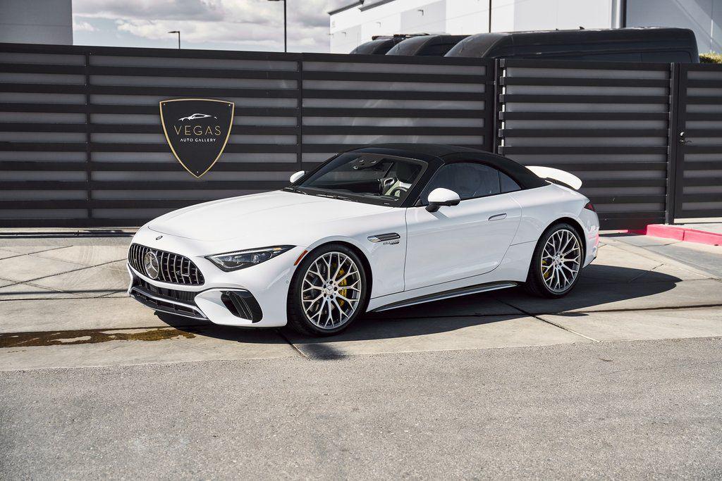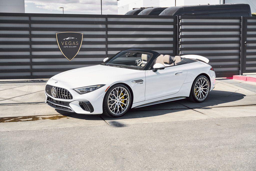2023 MERCEDES-BENZ SL 63 AMG DRIVER ASSISTANCE PACKAGE, TWO-TONE INTERIOR, MOONLIGHT WHITE METALLIC, AND MORE!OVERVIEWThe 2023 Mercedes-AMG SL63 reinvents an icon by blending roadster glamour with cutting-edge AMG performance and modern luxury touches. Designed from the ground up by AMG, the latest SL embodies its dual personality: a grand touring convertible with everyday usability, and a sharp sports car engineered to thrill. Beneath its sculpted hood lies the hand-built 4.0-liter twin-turbocharged AMG V8, delivering 577 horsepower and 590 lb-ft of torque. Paired with a quick-shifting 9-speed transmission and 4MATIC all-wheel drive, the SL63 rockets from 0-60 mph in just 3.5 seconds. The exhaust note––a mix of thunderous growl and sharp crackle––cements its status as a true AMG creation. A newly developed electric soft-top roof replaces the previous generation's folding hardtop, reducing weight and lowering the center of gravity. Inside, the cabin is trimmed in Tartufo Brown/Black Nappa Leather with an embossed AMG emblem in the head restraints. Technology is top-tier: dual digital displays, a Burmester sound system, AMG Track Pace telemetry, and the Driver Assistance Package reinforce the car's dual role as both performance machine and luxury GT. Representing the ultimate evolution of one of Mercedes' most storied nameplates, the SL63 delivers an intoxicating blend of top-down cruising, technological sophistication, and thrilling V8 performance.OPTIONAL EQUIPMENTManufaktur Moonlight White Metallic $1,750Tartufo Brown/Black Nappa Leather $1,900AMG Aluminum Trim21"" AMG Multi Spoke Silver Wheels $1,100Driver Assistance Package $1,950Active Emergency Stop AssistActive Blind Spot AssistAdaptive Cruise ControlLane Keep AssistLane Change AssistActive Steering AssistBlack Microfiber Headliner $1,600Load Compartment Package $485GENERALYear: 2023Mileage: 1,489VIN #: W1KVK8BB8PF017025Engine Size: 4.0L V8 (Biturbo) Class: Roadster Horsepower: 577Color: Manufaktur Moonlight White MetallicInterior: Tartufo Brown/Black Nappa LeatherFuel: Premium Unleaded GasolineGear Box: 9-Speed AutomaticDoors: 2Seats: 2+2Cylinders: 8SAFETY EQUIPMENTOutboard Front Lap and Shoulder Safety BeltsAirbag Occupancy SensorDual Stage Driver and Passenger Front AirbagsTire Specific Low Tire Pressure WarningMercedes MeConnect Emergency SOS360 Surround View Back-Up CameraTraction ControlAnti-Locking BrakesPerimeter AlarmActive Emergency Stop AssistActive Blind Spot AssistRoute-Based Speed AdaptationActive Distance Assist DISTRONICActive Steering AssistActive Lane Keeping AssistActive Brake Assist w/Cross-Traffic FunctionActive Lane Change AssistActive Speed Limit Assist and Evasive Steering AssistADDITIONAL INFORMATION1 Key IncludedBalance of Factory Warranty (if applicable)Extended Warranties Available