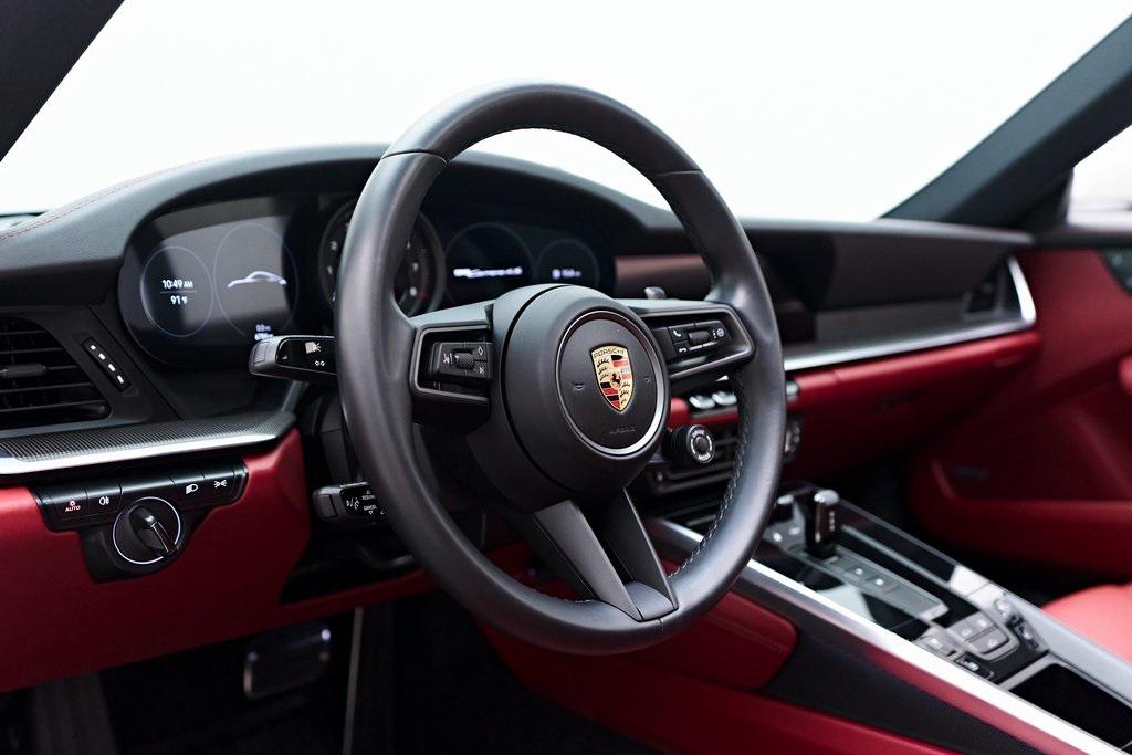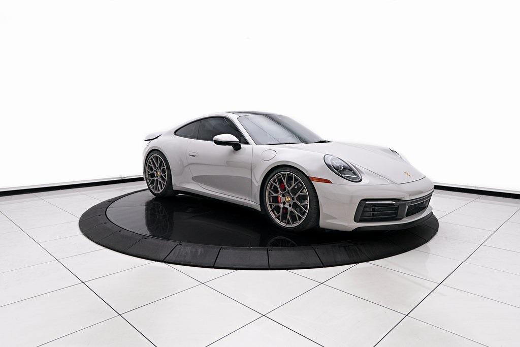 2023 PORSCHE 911 CARRERA 4S HEATED/VENTILATED SPORT SEATS, PREMIUM PACKAGE, FRONT AXLE LIFT, SPORT CHRONO PACKAGE, AND MORE!OVERVIEWStriking a balance between the base Carrera and the more extreme GTS models, the 2023 Porsche 911 Carrera 4S delivers thrilling performance wrapped in an unmistakable silhouette. Finished in Chalk over Bordeaux Red/Black leather, this well-specced 4S boasts a long list of desirable options: Front Axle Lift, heated/ventilated seats, Sport Chrono Package, and 14-way Sport Seats. Under the rear decklid lies a 3.0-liter twin-turbocharged flat-six, producing 443 horsepower and 390 lb-ft of torque. With Porsche's 8-speed PDK dual-clutch transmission, the Carrera 4S sprints from 0-60 mph in just 3.4 seconds and reaches a top speed of 190 mph. The advanced Porsche Traction Management all-wheel-drive system ensures composure in all conditions, while Porsche Active Suspension Management brings agility and precision to every curve. The design of the 4S pays homage to the traditional 911 silhouette while embracing modern engineering. Wider rear haunches hint at its all-wheel-drive capability, while the integrated LED light bar stretches across the rear and emphasizes its athletic stance. Inside, the cockpit features carbon fiber trim, an electric glass sunroof, and a 10.9-inch infotainment system that sits alongside Porsche's classic central tachometer. Technology and comfort are seamlessly integrated. Features like lane keep assist, a BOSE surround sound system, and Apple CarPlay/Android Auto make the 4S equally suited to spirited drives or long-distance journeys. With its ideal balance of performance, daily drivability, and undeniable Porsche character, the 2023 911 Carrera 4S stands out as a sweet spot in the 911 lineup.OPTIONAL EQUIPMENTChalk $3,270Bordeaux Red/Black Leather $4,96014-Way Sport Seats $2,110 20"" Fr & 21"" Rr RS Spyder Design Wheels $2,540Matte Carbon Fiber Interior Trim $2,100Premium Package $5,350Surround ViewPorsche Dynamic Light System PlusAmbient LightingVentilated Front SeatsPower Folding Exterior MirrorsLane Change AssistBOSE Surround Sound SystemSport Chrono Package $2,790Front Axle Lift System $2,770Electric Slide/Tilt Glass Sunroof $2,000Lane Keep Assist $1,220PASM Sport Suspension $1,020Chalk Seat Belts $540Ionizer $350Porsche Crest On Headrests $290Heated Steering Wheel $280Exclusive Design Fuel Cap $160GENERALYear: 2023Mileage: 6,784VIN #: WP0AB2A92PS222030Engine Size: 3.0L H6 (Twin-Turbo)Class: CoupeHorsepower: 443Color: ChalkInterior: Bordeaux Red/Black Leather Fuel: Premium Unleaded Gasoline Gear Box: 8-Speed PDK (Automatic) Doors: 2Seats: 4Cylinders: 6SAFETY EQUIPMENTPorsche Stability ManagementFull-Time All-Wheel Drive Forward Collision Warning with Automatic Emergency BrakingLane Keep Assist & Lane Departure WarningOutboard Front Lap and Shoulder Safety BeltsAirbag Occupancy SensorCurtain 1st and 2nd Row AirbagsDual Stage Driver and Passenger Front AirbagsTire Specific Low Tire Pressure WarningTraction ControlAnti-Locking BrakesPerimeter AlarmADDITIONAL INFORMATION1 Key IncludedBalance of Factory Warranty (if applicable)Extended Warranties Available
