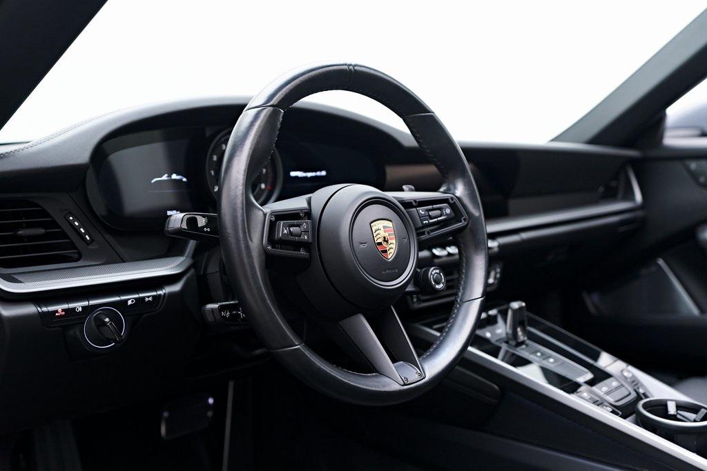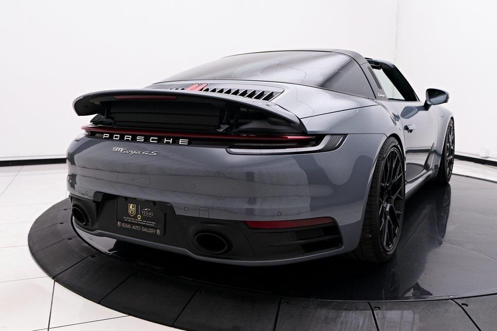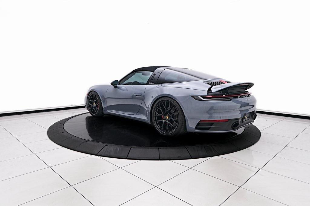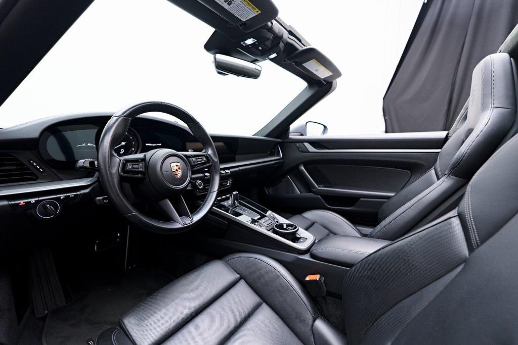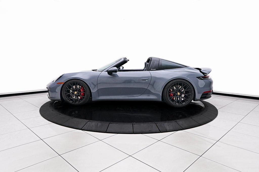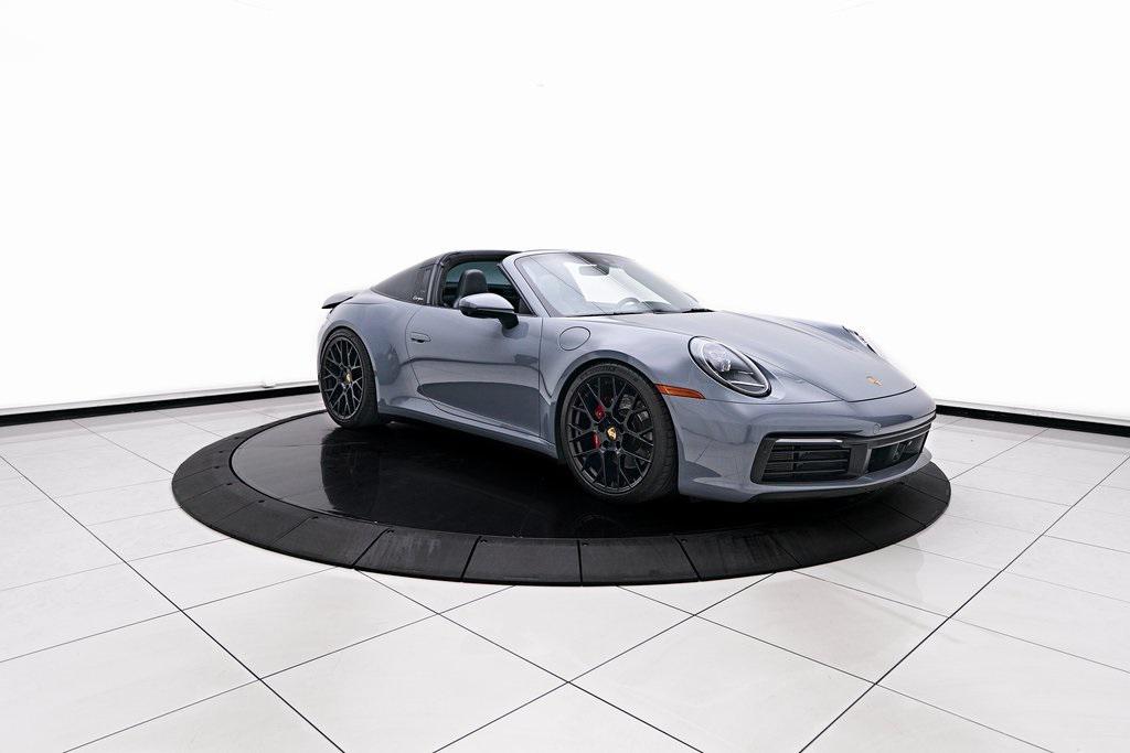 2023 PORSCHE 911 TARGA 4S HEATED/VENTILATED SPORT SEATS, PREMIUM & SPORT PACKAGES, BURMESTER SOUND SYSTEM, AND MORE!OVERVIEWStriking a balance between the base Carrera and the more extreme GTS models, the 2023 Porsche 911 Targa 4S delivers thrilling performance wrapped in an unmistakable silhouette. Finished in Arctic Grey over black leather, this well-specced Targa 4S boasts some desirable options: Front Axle Lift, heated/ventilated seats, Sport Package, and 18-way Sport Seats Plus. Under the rear decklid lies a 3.0-liter twin-turbocharged flat-six, producing 443 horsepower and 390 lb-ft of torque. With Porsche's 8-speed PDK dual-clutch transmission, the Targa 4S sprints from 0-60 mph in just 3.4 seconds and reaches a top speed of 190 mph. The advanced Porsche Traction Management all-wheel-drive system ensures composure in all conditions, while Porsche Active Suspension Management brings agility and precision to every curve. The design of the 4S pays homage to the traditional 911 Targa silhouette while embracing modern engineering. Wider rear haunches hint at its all-wheel-drive capability, while the integrated LED light bar stretches across the rear and emphasizes its athletic stance. Inside, the cockpit features carbon fiber trim, an electric glass sunroof, and a 10.9-inch infotainment system that sits alongside Porsche's classic central tachometer. Technology and comfort are seamlessly integrated. Features like adaptive cruise control, a Burmester surround sound system, and Apple CarPlay/Android Auto make the 4S equally suited to spirited drives or long-distance journeys. With its ideal balance of performance, daily drivability, and undeniable Porsche character, the 2023 911 Targa 4S stands out as a sweet spot in the 911 lineup.OPTIONAL EQUIPMENTArctic Grey $3,730Black Leather $4,53018-Way Adaptive Sport SeatsPlus $3,26020"" Fr & 21"" Rr RS Spyder Design Wheels $2,540Burmester High End Surround Sound System $5,560Premium Package $5,350Surround ViewPorsche Dynamic Light System PlusAmbient LightingVentilated Front SeatsPower Folding Exterior MirrorsLane Change AssistSport Package $4,630Sport Chrono PackageSport Tailpipes In SilverFront Axle Lift System $2,770Adaptive Cruise Control $2,000Wheels Painted In Satin Black $1,290PDK Gear Selector In Aluminum $750Targa Bar In Black $700Heated GT Sport Steering Wheel $590Ionizer $350Porsche Crest On Headrests $290Power Steering Plus $280Under Door Puddle Lights $160Exclusive Design Fuel Cap $160GENERALYear: 2023Mileage: 23,625VIN #: WP0BB2A96PS233777Engine Size: 3.0L H6 (Twin-Turbo)Class: TargaHorsepower: 443Color: Arctic GreyInterior: Black Leather Fuel: Premium Unleaded Gasoline Gear Box: 8-Speed PDK (Automatic) Doors: 2Seats: 4Cylinders: 6SAFETY EQUIPMENTPorsche Stability ManagementFull-Time All-Wheel Drive Forward Collision Warning with Automatic Emergency BrakingLane Keep Assist & Lane Departure WarningOutboard Front Lap and Shoulder Safety BeltsAirbag Occupancy SensorCurtain 1st and 2nd Row AirbagsDual Stage Driver and Passenger Front AirbagsTire Specific Low Tire Pressure WarningTraction ControlAnti-Locking BrakesPerimeter AlarmADDITIONAL INFORMATION1 Key IncludedBalance of Factory Warranty (if applicable)Extended Warranties Available