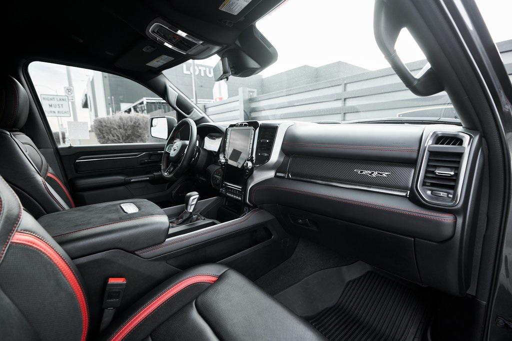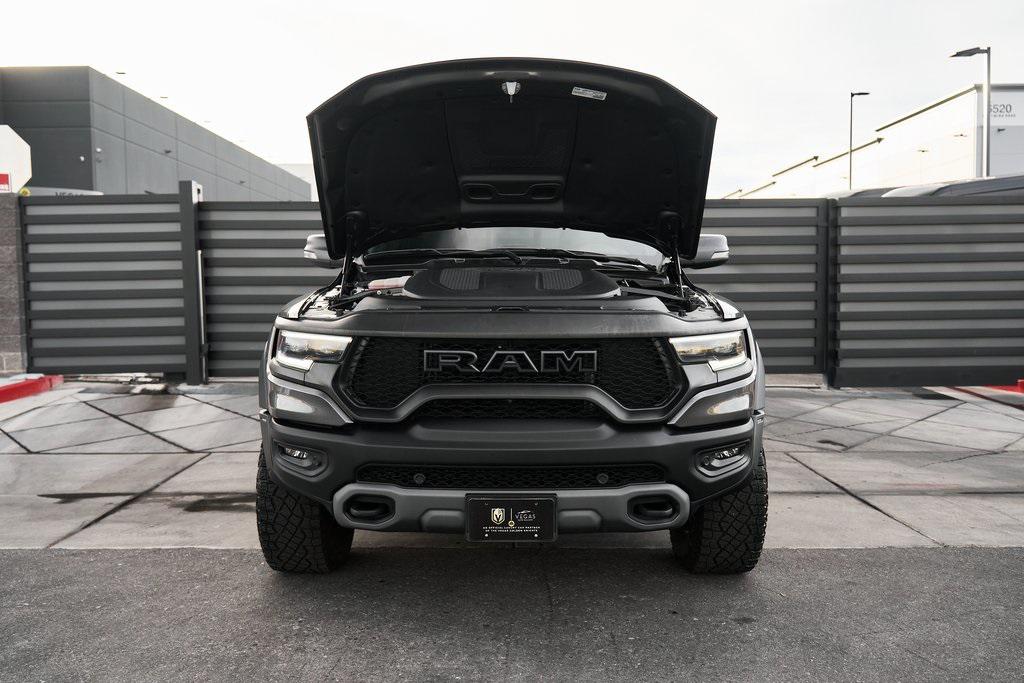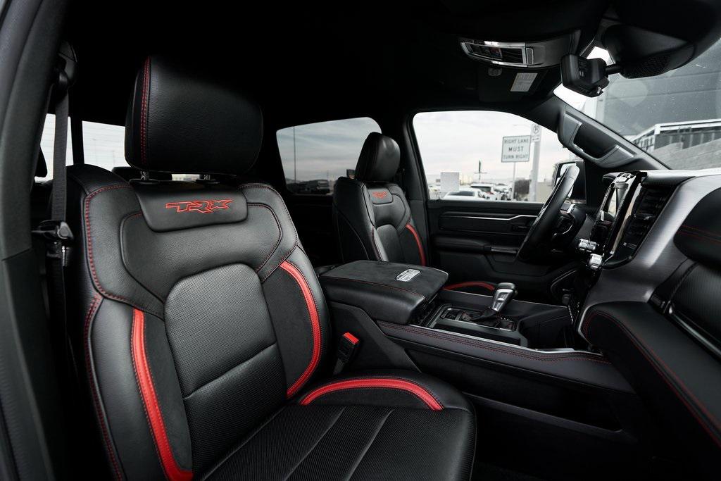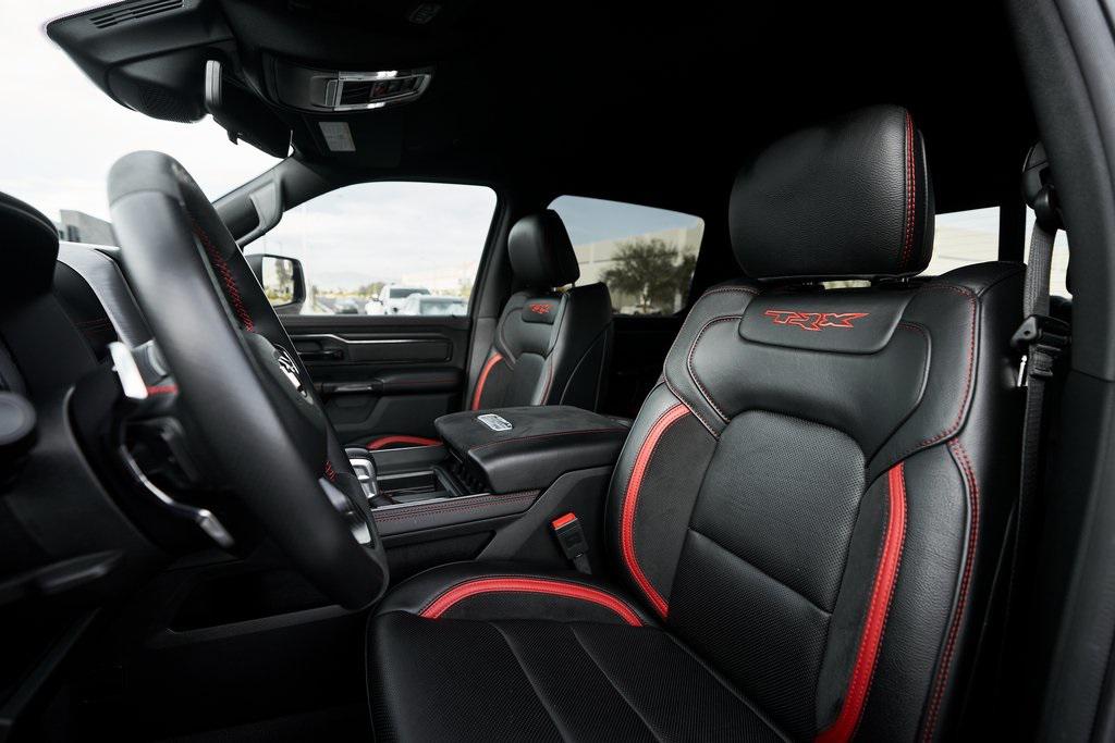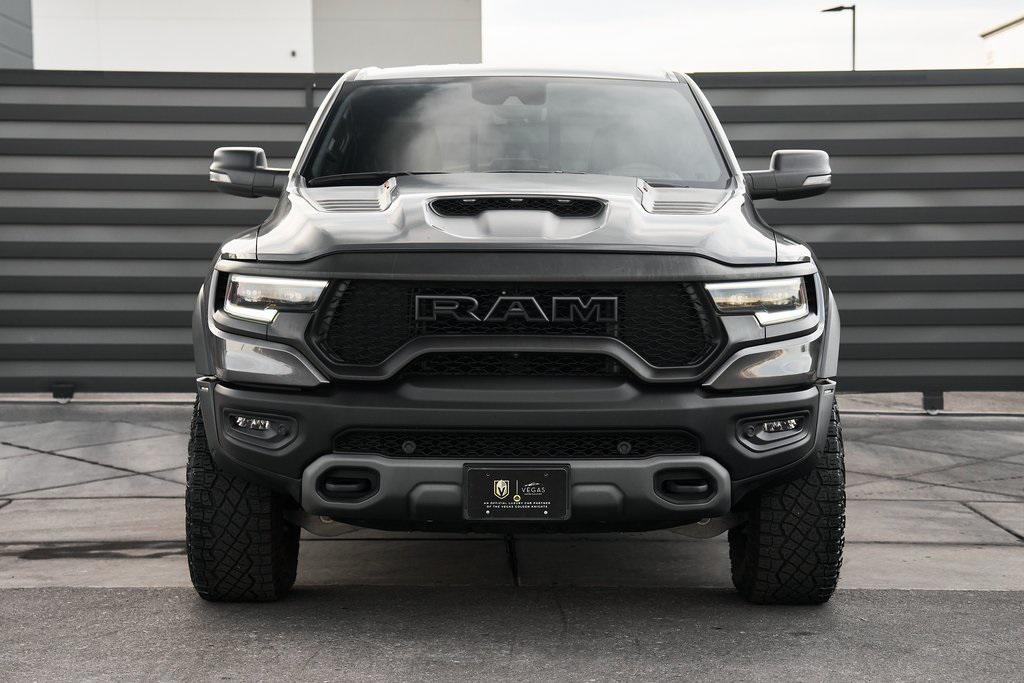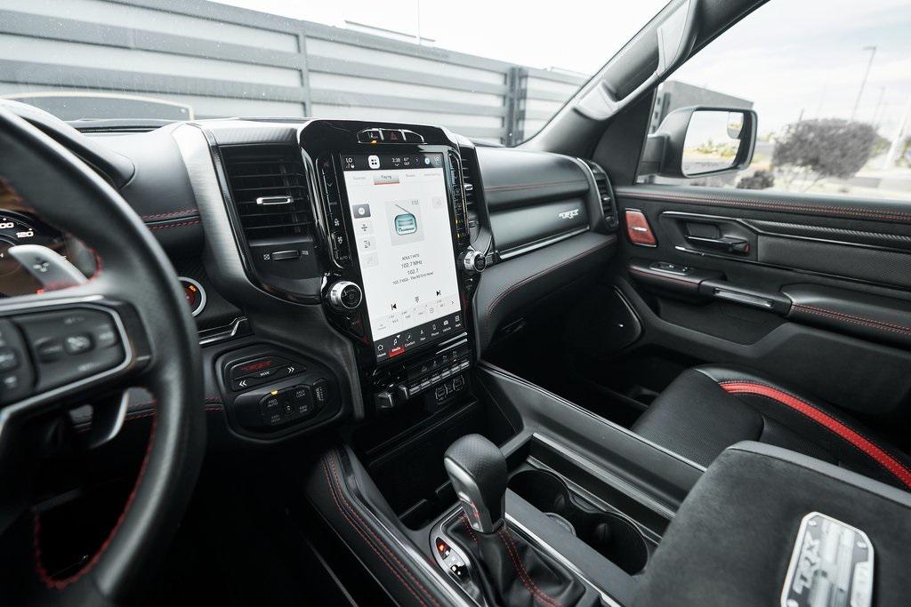 2023 RAM 1500 TRXTRX LEVEL 2 EQUIPMENT GROUP, ADVANCED SAFETY GROUP, CLIMATE CONTROLLED SEATS, CARBON FIBER TRIM, AND MORE!OVERVIEWThe 2023 RAM 1500 TRX is one of the last supertrucks of its era. Capable of dominating both pavement and dirt, it fuses American V8 power with cutting-edge engineering and all the modern creature comforts. Under the hood roars a 6.2-liter supercharged HEMI V8, unleashing a whopping 702 horsepower and 650 lb-ft of torque. Paired with an 8-speed automatic transmission and a performance-tuned full-time 4x4 system, the TRX rockets from 0-60 mph in just 4.5 seconds––numbers that rival sports cars rather than pickups. Beneath its athletic stance lies serious off-road engineering. The TRX features Bilstein Black Hawk e2 adaptive dampers, active terrain management, and 13 inches of suspension travel, allowing it to absorb jumps, dunes, and trails with ease. With 11.8 inches of ground clearance, 35-inch Goodyear Wrangler Territory all-terrain tires, and an 8,100-pound towing capacity, the TRX is built to perform whenever adventure calls. A functional hood scoop feeds the supercharger, flared fenders accommodate the wider track, and LED lighting accents emphasize its muscular form. Inside, the cabin balances modern luxury with performance. This TRX's Level 2 interior features leather upholstery, carbon-fiber accents, and a 12-inch infotainment touchscreen with Apple CarPlay, Android Auto, and performance telemetry. Heated and ventilated sport seats, a Harman Kardon premium sound system, and a heads-up display transform the cockpit from blue to white collar. The 2023 RAM 1500 TRX is a statement of dominance in the full-size truck segment. Equal parts refined and ferocious, it proves that performance and practicality don't have to live in separate garages. OPTIONAL EQUIPMENTGranite Crystal Metallic Clearcoat $545Black Leather w/Red Accent18"" Black Aluminum WheelsTRX Level 2 Equipment Group $10,995Full Length Floor ConsoleRear Window DefrosterSurround View Camera SystemBlind Spot & Cross Path DetectionRain Sensitive Windshield WipersFront/Rear Park Assist w/StopPower Adjustable Pedals w/MemoryPick-Up Box LightingMOPAR Bright Pedal KitRear Underseat Compartment StorageTrailer Brake ControlAccent Color Door HandlesHead Up DisplayVentilated Front & Rear SeatsHeated Second Row SeatsHeated Steering WheelLeather/Suede Steering WheelWireless Charging PadDriver/Passenger Wrapped Assist HandlesRear 60/40 Folding Split Recline SeatRemote Tailgate ReleaseHarman/Kardon Premium Sound System2-Door Passive EntryUniversal Garage Door OpenerExterior Mirrors w/MemoryLuxury Front Door Trim PanelFront Door Accent LightingPower 8-Way Driver & Passenger SeatsDriver Seat MemoryTRX Red Interior Accents $1,495TRX Carbon Fiber Trim Package $1,295MOPAR Off Road Style Running Boards $1,195Advanced Safety Group $995Tailgate Ajar Warning LampAdaptive Cruise Control w/Stop & GoPedestrian Emergency BrakingLane Keep AssistBed Utility Group $945MOPAR Spray In BedlinerMOPAR 4 Adjustable Cargo Tie-Down HooksMOPAR Deployable Bed StepMOPAR Exterior Graphics $495GENERALYear: 2023Mileage: 27,355VIN #: 1C6SRFU95PN504106Engine Size: 6.2L V8 (Supercharged) Class: TruckHorsepower: 702Color: Granite Crystal Metallic ClearcoatInterior: Black LeatherFuel: Premium Unleaded GasolineGear Box: 8-Speed AutomaticDoors: 4Seats: 5Cylinders: 8SAFETY EQUIPMENTOutboard Front Lap and Shoulder Safety BeltsAirbag Occupancy SensorCurtain 1st and 2nd Row AirbagsDual Stage Driver and Passenger Front AirbagsTire Specific Low Tire Pressure WarningTraction ControlAnti-Locking BrakesPerimeter AlarmFront & Rear Parking SensorsActive Brake Assist360 View Camera SystemAdaptive Cruise Control