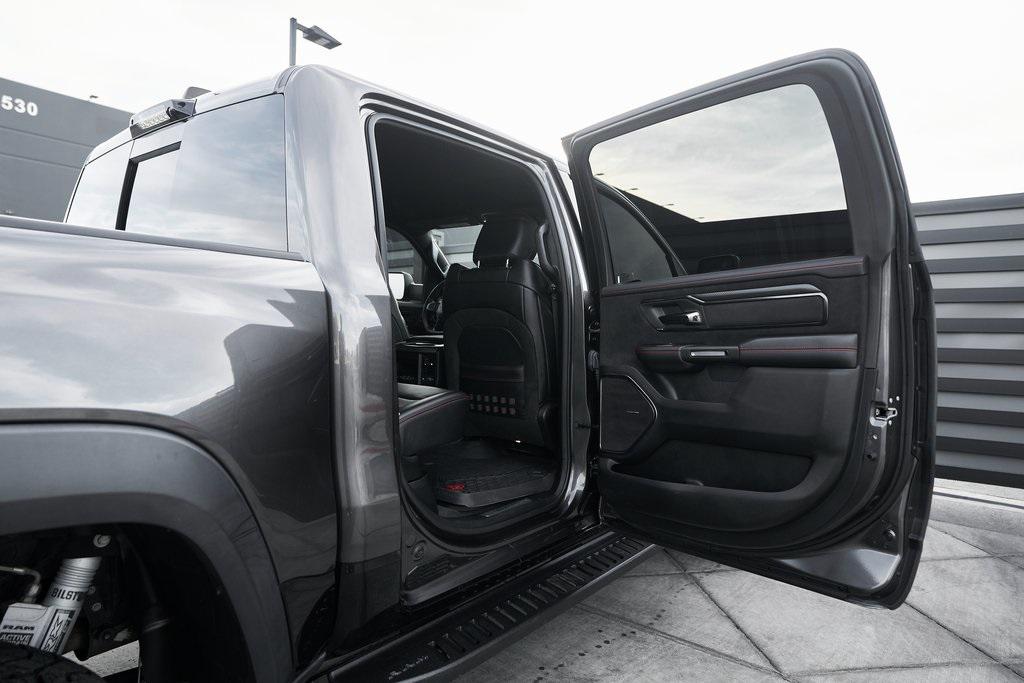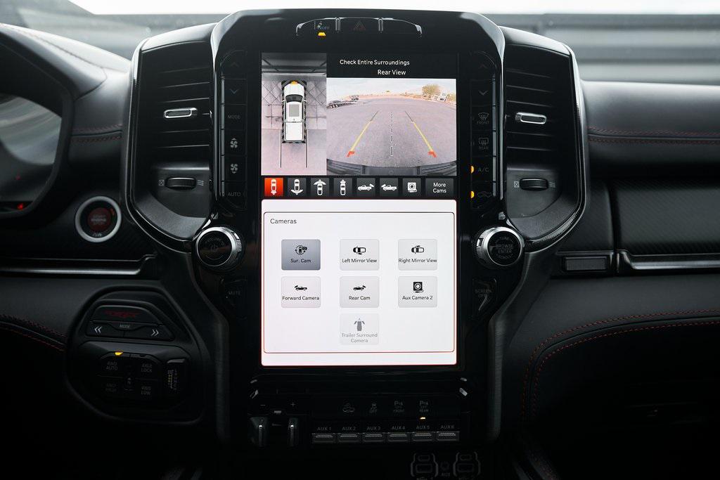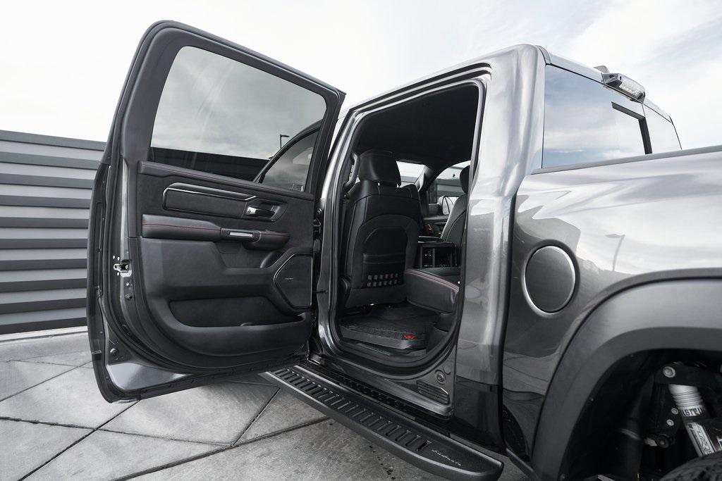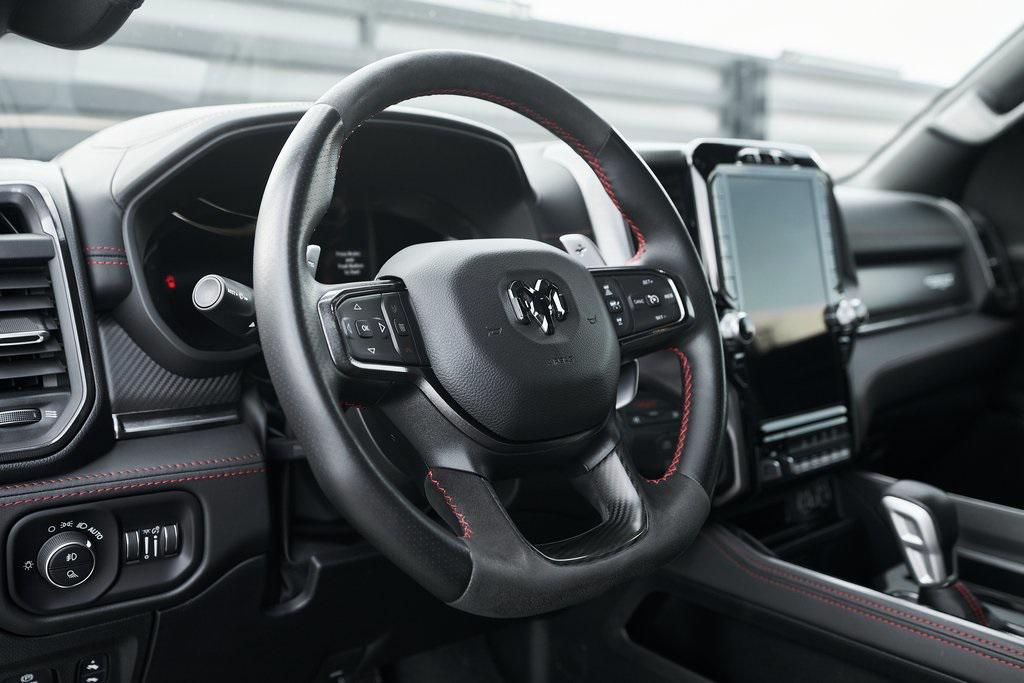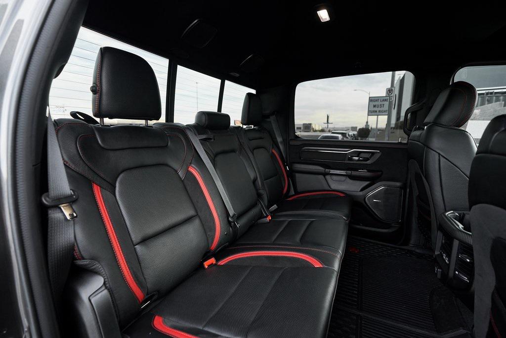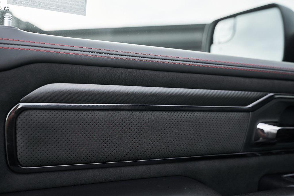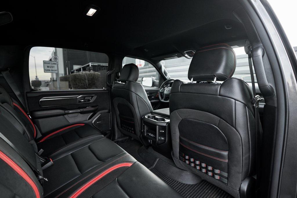 2023 RAM 1500 TRXTRX LEVEL 2 EQUIPMENT GROUP, ADVANCED SAFETY GROUP, CLIMATE CONTROLLED SEATS, CARBON FIBER TRIM, AND MORE!OVERVIEWThe 2023 RAM 1500 TRX is one of the last supertrucks of its era. Capable of dominating both pavement and dirt, it fuses American V8 power with cutting-edge engineering and all the modern creature comforts. Under the hood roars a 6.2-liter supercharged HEMI V8, unleashing a whopping 702 horsepower and 650 lb-ft of torque. Paired with an 8-speed automatic transmission and a performance-tuned full-time 4x4 system, the TRX rockets from 0-60 mph in just 4.5 seconds––numbers that rival sports cars rather than pickups. Beneath its athletic stance lies serious off-road engineering. The TRX features Bilstein Black Hawk e2 adaptive dampers, active terrain management, and 13 inches of suspension travel, allowing it to absorb jumps, dunes, and trails with ease. With 11.8 inches of ground clearance, 35-inch Goodyear Wrangler Territory all-terrain tires, and an 8,100-pound towing capacity, the TRX is built to perform whenever adventure calls. A functional hood scoop feeds the supercharger, flared fenders accommodate the wider track, and LED lighting accents emphasize its muscular form. Inside, the cabin balances modern luxury with performance. This TRX's Level 2 interior features leather upholstery, carbon-fiber accents, and a 12-inch infotainment touchscreen with Apple CarPlay, Android Auto, and performance telemetry. Heated and ventilated sport seats, a Harman Kardon premium sound system, and a heads-up display transform the cockpit from blue to white collar. The 2023 RAM 1500 TRX is a statement of dominance in the full-size truck segment. Equal parts refined and ferocious, it proves that performance and practicality don't have to live in separate garages. OPTIONAL EQUIPMENTGranite Crystal Metallic Clearcoat $545Black Leather w/Red Accent18"" Black Aluminum WheelsTRX Level 2 Equipment Group $10,995Full Length Floor ConsoleRear Window DefrosterSurround View Camera SystemBlind Spot & Cross Path DetectionRain Sensitive Windshield WipersFront/Rear Park Assist w/StopPower Adjustable Pedals w/MemoryPick-Up Box LightingMOPAR Bright Pedal KitRear Underseat Compartment StorageTrailer Brake ControlAccent Color Door HandlesHead Up DisplayVentilated Front & Rear SeatsHeated Second Row SeatsHeated Steering WheelLeather/Suede Steering WheelWireless Charging PadDriver/Passenger Wrapped Assist HandlesRear 60/40 Folding Split Recline SeatRemote Tailgate ReleaseHarman/Kardon Premium Sound System2-Door Passive EntryUniversal Garage Door OpenerExterior Mirrors w/MemoryLuxury Front Door Trim PanelFront Door Accent LightingPower 8-Way Driver & Passenger SeatsDriver Seat MemoryTRX Red Interior Accents $1,495TRX Carbon Fiber Trim Package $1,295MOPAR Off Road Style Running Boards $1,195Advanced Safety Group $995Tailgate Ajar Warning LampAdaptive Cruise Control w/Stop & GoPedestrian Emergency BrakingLane Keep AssistBed Utility Group $945MOPAR Spray In BedlinerMOPAR 4 Adjustable Cargo Tie-Down HooksMOPAR Deployable Bed StepMOPAR Exterior Graphics $495GENERALYear: 2023Mileage: 27,355VIN #: 1C6SRFU95PN504106Engine Size: 6.2L V8 (Supercharged) Class: TruckHorsepower: 702Color: Granite Crystal Metallic ClearcoatInterior: Black LeatherFuel: Premium Unleaded GasolineGear Box: 8-Speed AutomaticDoors: 4Seats: 5Cylinders: 8SAFETY EQUIPMENTOutboard Front Lap and Shoulder Safety BeltsAirbag Occupancy SensorCurtain 1st and 2nd Row AirbagsDual Stage Driver and Passenger Front AirbagsTire Specific Low Tire Pressure WarningTraction ControlAnti-Locking BrakesPerimeter AlarmFront & Rear Parking SensorsActive Brake Assist360 View Camera SystemAdaptive Cruise Control