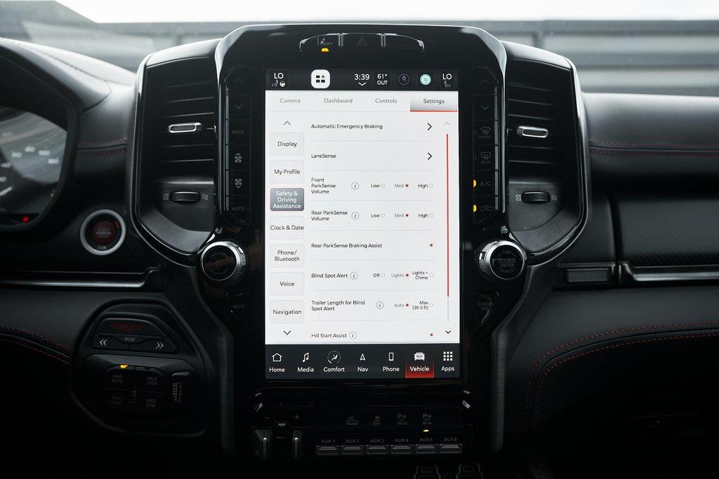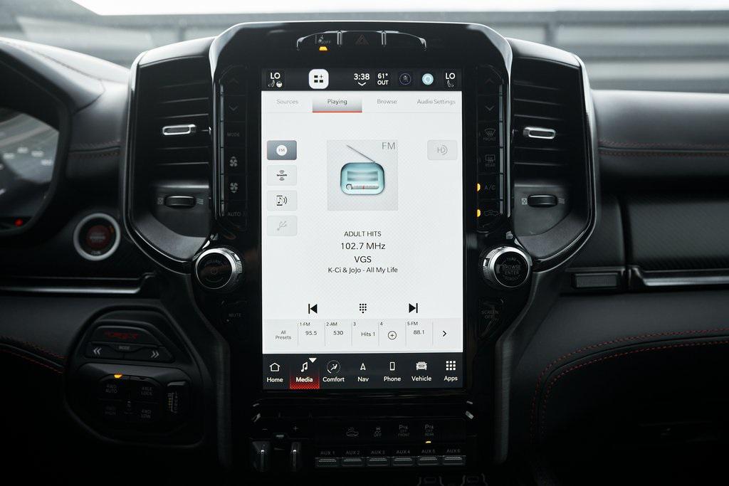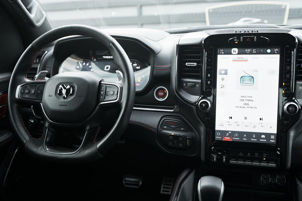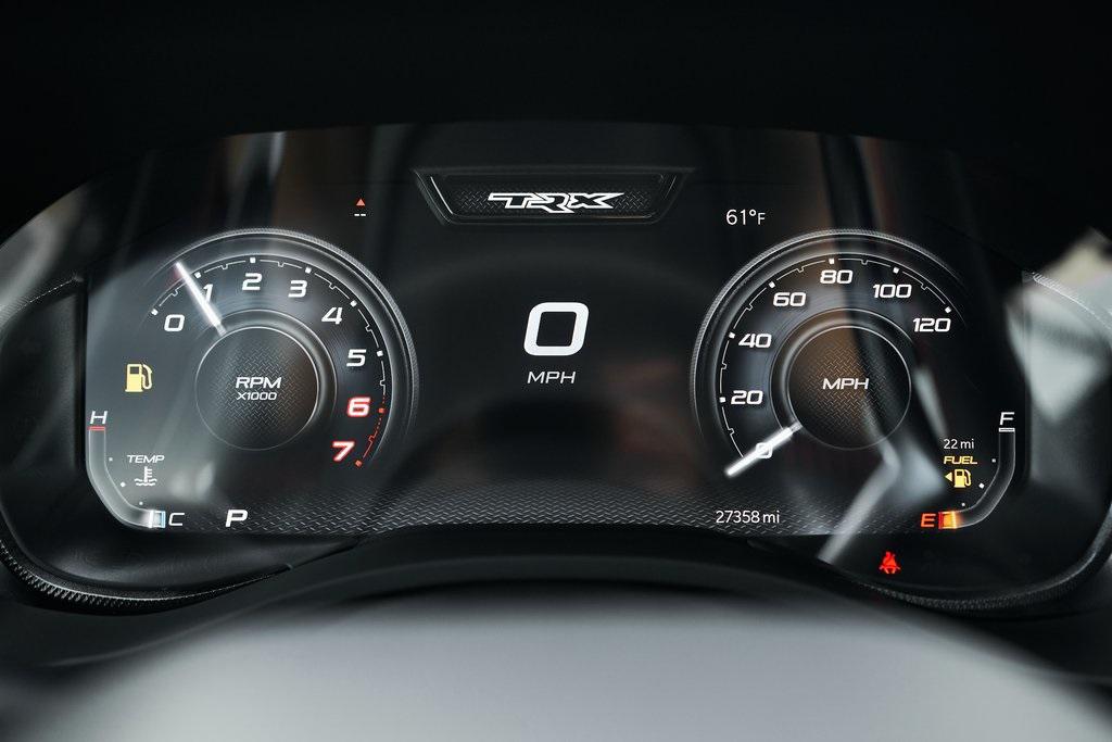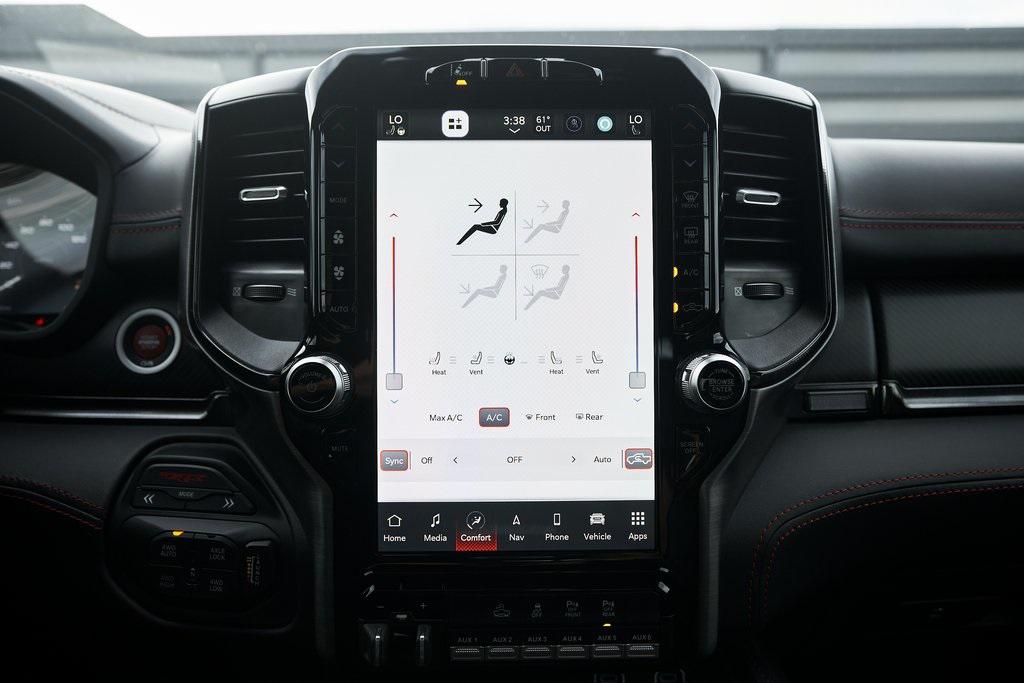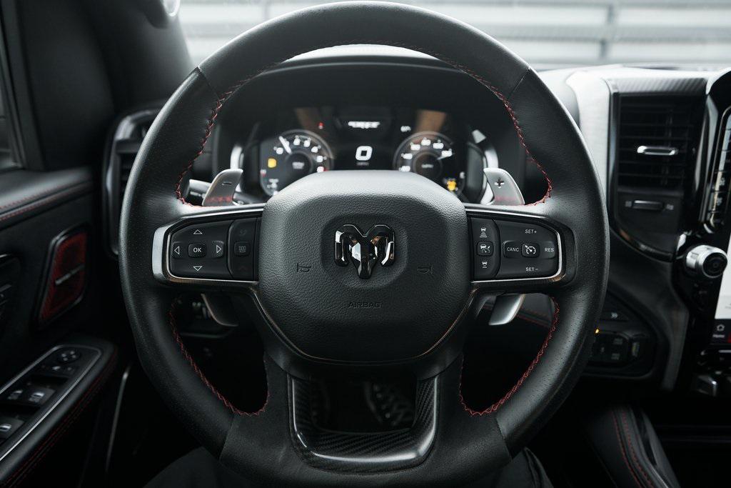 2023 RAM 1500 TRXTRX LEVEL 2 EQUIPMENT GROUP, ADVANCED SAFETY GROUP, CLIMATE CONTROLLED SEATS, CARBON FIBER TRIM, AND MORE!OVERVIEWThe 2023 RAM 1500 TRX is one of the last supertrucks of its era. Capable of dominating both pavement and dirt, it fuses American V8 power with cutting-edge engineering and all the modern creature comforts. Under the hood roars a 6.2-liter supercharged HEMI V8, unleashing a whopping 702 horsepower and 650 lb-ft of torque. Paired with an 8-speed automatic transmission and a performance-tuned full-time 4x4 system, the TRX rockets from 0-60 mph in just 4.5 seconds––numbers that rival sports cars rather than pickups. Beneath its athletic stance lies serious off-road engineering. The TRX features Bilstein Black Hawk e2 adaptive dampers, active terrain management, and 13 inches of suspension travel, allowing it to absorb jumps, dunes, and trails with ease. With 11.8 inches of ground clearance, 35-inch Goodyear Wrangler Territory all-terrain tires, and an 8,100-pound towing capacity, the TRX is built to perform whenever adventure calls. A functional hood scoop feeds the supercharger, flared fenders accommodate the wider track, and LED lighting accents emphasize its muscular form. Inside, the cabin balances modern luxury with performance. This TRX's Level 2 interior features leather upholstery, carbon-fiber accents, and a 12-inch infotainment touchscreen with Apple CarPlay, Android Auto, and performance telemetry. Heated and ventilated sport seats, a Harman Kardon premium sound system, and a heads-up display transform the cockpit from blue to white collar. The 2023 RAM 1500 TRX is a statement of dominance in the full-size truck segment. Equal parts refined and ferocious, it proves that performance and practicality don't have to live in separate garages. OPTIONAL EQUIPMENTGranite Crystal Metallic Clearcoat $545Black Leather w/Red Accent18"" Black Aluminum WheelsTRX Level 2 Equipment Group $10,995Full Length Floor ConsoleRear Window DefrosterSurround View Camera SystemBlind Spot & Cross Path DetectionRain Sensitive Windshield WipersFront/Rear Park Assist w/StopPower Adjustable Pedals w/MemoryPick-Up Box LightingMOPAR Bright Pedal KitRear Underseat Compartment StorageTrailer Brake ControlAccent Color Door HandlesHead Up DisplayVentilated Front & Rear SeatsHeated Second Row SeatsHeated Steering WheelLeather/Suede Steering WheelWireless Charging PadDriver/Passenger Wrapped Assist HandlesRear 60/40 Folding Split Recline SeatRemote Tailgate ReleaseHarman/Kardon Premium Sound System2-Door Passive EntryUniversal Garage Door OpenerExterior Mirrors w/MemoryLuxury Front Door Trim PanelFront Door Accent LightingPower 8-Way Driver & Passenger SeatsDriver Seat MemoryTRX Red Interior Accents $1,495TRX Carbon Fiber Trim Package $1,295MOPAR Off Road Style Running Boards $1,195Advanced Safety Group $995Tailgate Ajar Warning LampAdaptive Cruise Control w/Stop & GoPedestrian Emergency BrakingLane Keep AssistBed Utility Group $945MOPAR Spray In BedlinerMOPAR 4 Adjustable Cargo Tie-Down HooksMOPAR Deployable Bed StepMOPAR Exterior Graphics $495GENERALYear: 2023Mileage: 27,355VIN #: 1C6SRFU95PN504106Engine Size: 6.2L V8 (Supercharged) Class: TruckHorsepower: 702Color: Granite Crystal Metallic ClearcoatInterior: Black LeatherFuel: Premium Unleaded GasolineGear Box: 8-Speed AutomaticDoors: 4Seats: 5Cylinders: 8SAFETY EQUIPMENTOutboard Front Lap and Shoulder Safety BeltsAirbag Occupancy SensorCurtain 1st and 2nd Row AirbagsDual Stage Driver and Passenger Front AirbagsTire Specific Low Tire Pressure WarningTraction ControlAnti-Locking BrakesPerimeter AlarmFront & Rear Parking SensorsActive Brake Assist360 View Camera SystemAdaptive Cruise Control