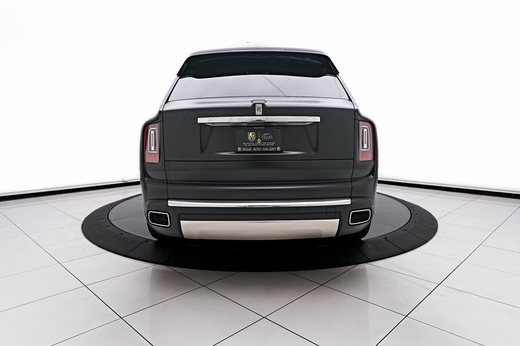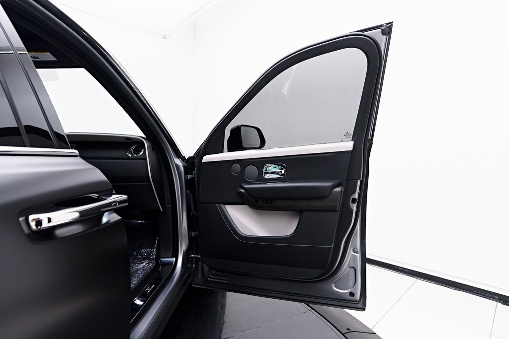 2023 ROLLS ROYCE CULLINAN – Stately Yet SilentINTERIOR DETAILING PACKAGE, SHOOTING STAR HEADLINER, MATTE BLACK WRAP, AND MORE!OVERVIEWThe 2023 Rolls-Royce Cullinan takes the concept of ultra-luxury SUV travel and elevates it to a new plane––and this Matte Back example is a testament to the brand's near-limitless capacity for bespoke craftsmanship. A hand-assembled 6.75L twin turbo V12 motivates the Cullinan to 60 mph in about 4.5 seconds––quite respectable when you realize this first-class suite on wheels weighs just over 6,000 lbs. Despite its size, the Cullinan glides with grace, aided by Rolls-Royce's renowned Magic Carpet Ride suspension and active air leveling. Whether cruising down the Strip or soaking up miles on a cross-country tour, this Cullinan offers peerless ride quality and confident power. As is true with most Rolls-Royce vehicles, it's what's inside that counts. Step into the Cullinan's interior and you'll be greeted by climate-controlled massaging seats with Cashmere Gray leather accents. The Starlight Headliner, customizable seating configurations, and whisper-quiet ambiance transform every journey into a private retreat. Technology is seamlessly integrated as well, with blind spot monitoring, a head-up display, and a surround view camera. In a world filled with luxury, the Rolls-Royce Cullinan still stands alone––and this example makes it clear why: it's a rolling expression of taste and distinction, meticulously crafted for the discerning driver who demands exclusivity and artistry in every detail. OPTIONAL EQUIPMENTJubilee Silver (Matte Black Wrap) 22"" 7-Spoke Part Polished Wheels Interior Detailing Package $23,250Signature Interior SchemeSignature KeyEnhanced Clock FaceContrast StitchingCullinan Illuminated TreadplateSeat PipingLambswool FootmatsRR Monogram to all HeadrestsThicker Two-Tone Steering Wheel In Black/Cashmere Gray $3,650Shooting Star Headliner $8,400Veneered Steering Wheel Spokes $3,650Heated Passenger Surround $2,850Open Pore Blackwood TrimFront Ventilated Seats GENERALYear: 2023Mileage: 24,933VIN #: SLATV4C00PU219214Engine Size: 6.75L V12 (Twin-Turbo)Class: Luxury Sport UtilityHorsepower: 563Color: Jubilee Silver (Matte Black Wrap) Interior: Black/Cashmere Gray LeatherFuel: Premium Unleaded GasolineGear Box: 8-Speed AutomaticDoors: 4Seats: 5Cylinders: 12SAFETY EQUIPMENTAll Wheel DriveDual Stage Driver and Passenger AirbagsElectronic Traction ControlDynamic Stability ControlRoll Stability ControlAnti-Lock Braking SystemDriver Condition ResponseChild Seat Sensor and Power Rear Child Safety LocksDriver Monitoring AlertTire Specific Low Tire Pressure WarningBlindspot AssistADDITIONAL INFORMATION1 Key IncludedBalance of Factory Warranty (if applicable)Extended Warranties Available