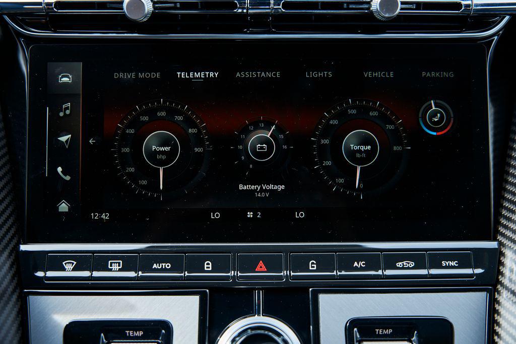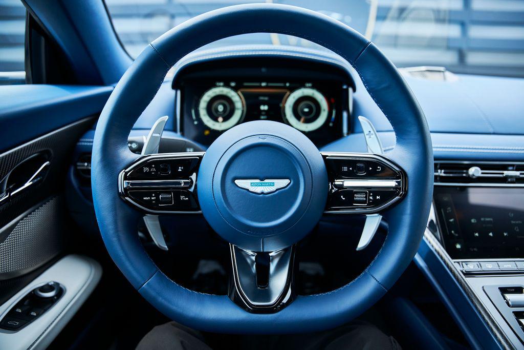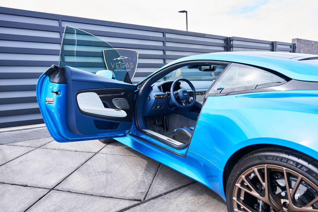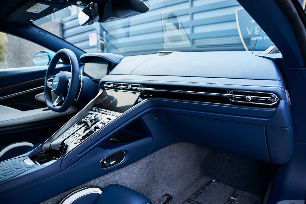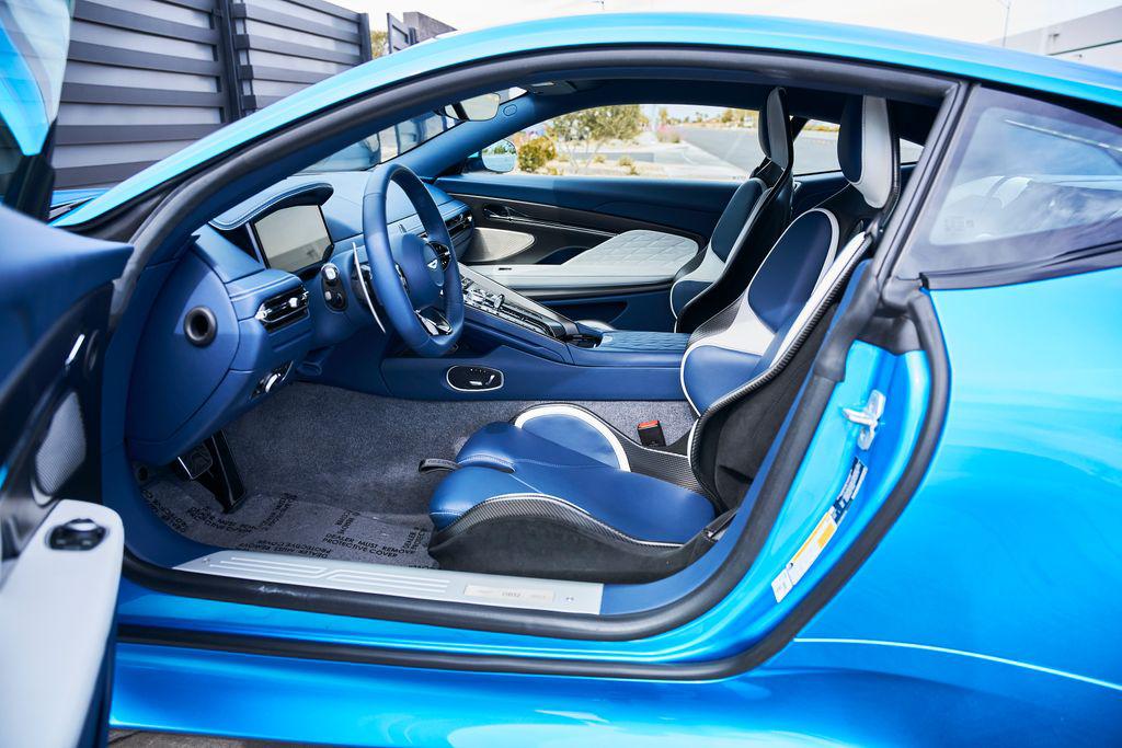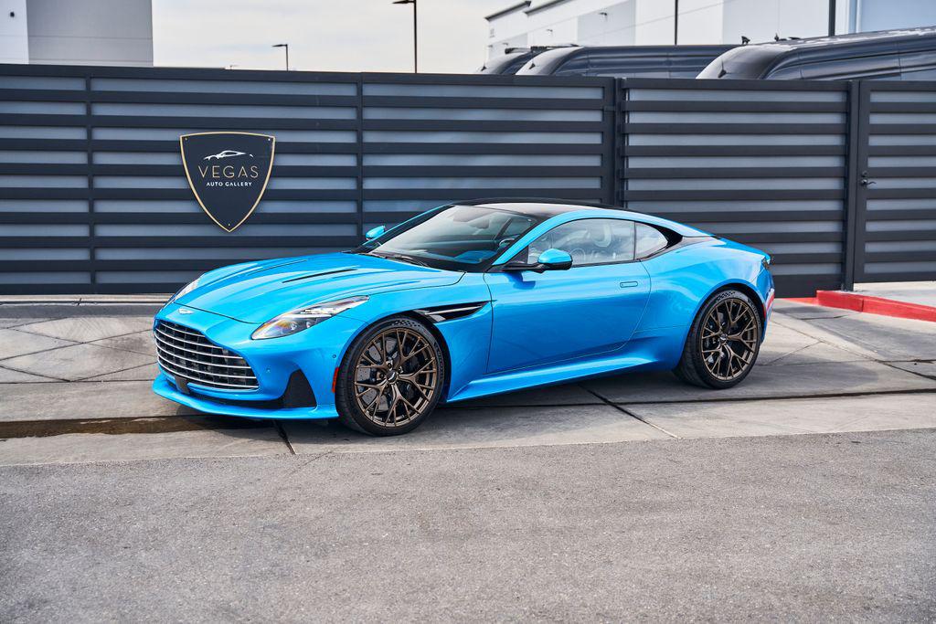 2024 ASTON MARTIN DB12BOWERS & WILKINS AUDIO, CARBON CERAMIC BRAKES, CARBON FIBER TRIM, AND MORE!OVERVIEWThe 2024 Aston Martin DB12 is a car that takes the classic grand tourer formula and blends it with uncompromising performance. Dubbed the world's first ""Super Tourer,"" the DB12 elevates Aston Martin's legacy with sharper dynamics, big power, and cutting-edge technology, all while staying true to its sophisticated British roots. At its heart is a hand-built 4.0-liter twin-turbo V8, delivering 671 horsepower and 590 lb-ft of torque. Paired with an 8-speed automatic transmission and electronic rear differential, it rockets from 0-60 mph in just 3.5 seconds and on to a top speed of 202 mph. The chassis has been re-engineered for sharper handling, featuring an adaptive suspension system and next-generation stability control giving the DB12 the reflexes of a sports car while preserving the composure of a GT. Design remains classic Aston: a wide stance, an enlarged grille, muscular haunches, and an LED lighting signature that gives the DB12 an aggressive yet timeless presence. This Quasar Blue example features blacked out roof, carbon ceramic brakes, and smoked taillights for a sporty look. Inside, Aston has merged modern technology with artisan craftsmanship. Every surface is dressed in hand-stitched leather, carbon fiber, and crafted metal details. Carbon fiber sport seats with brogue detailing create a classy yet performance-oriented driving environment. More than just a successor to the DB11, the 2024 Aston Martin DB12 represents a new era for grand touring class cars––equal parts performance machine and first-class cabin.OPTIONAL EQUIPMENTQuasar Blue $5,500Dark Knight/Glacier White Leather21"" Satin Bronze Y-Spoke WheelsInspire Sport Duotone Environment $14,800Crafted Perforation PatternsBroguingHeated SeatsLeather HeadliningCarbon Ceramic Brakes $14,500Bowers & Wilkins Audio System$10,000Carbon Fiber Performance Seats $7,200Satin Carbon Fiber IP Trim Inlay $4,300Contrast Stitching $2,900Gloss Black Roof $2,200Black Brake Calipers$1,800Brushed Aluminum Center Finisher $1,800Smoked Tail Lights$1,400Heavy Pile Floor Mats $1,100Heated Sports Steering Wheel $800GENERALYear: 2024Mileage: 3,014VIN #: SCFRMFFW1RGL14496Engine Size: 4.0L V8 (Twin-Turbo)Class: CoupeHorsepower: 671Color: Quasar BlueInterior: Dark Knight/Glacier White LeatherFuel: Premium Unleaded GasolineGear Box: 8-Speed AutomaticDoors: 2Seats: 2+2Cylinders: 8SAFETY EQUIPMENTDual Stage Driver and Passenger AirbagsElectronic Traction ControlDynamic Stability ControlRoll Stability ControlAnti-Lock Braking SystemDriver Condition ResponseDriver Monitoring AlertTire Specific Low Tire Pressure WarningSurround View CameraADDITIONAL INFORMATION1 Key IncludedBalance of Factory Warranty (if applicable)Extended Warranties Available