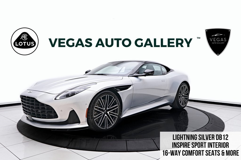 2024 ASTON MARTIN DB12GLOSS BLACK PACK, CLIMATE CONTROLLED SEATS, INSPIRE SPORT SEATS, AND MORE!OVERVIEWThe 2024 Aston Martin DB12 is a car that takes the classic grand tourer formula and blends it with uncompromising performance. Dubbed the world's first ""Super Tourer"", the DB12 elevates Aston Martin's legacy with sharper dynamics, big power, and cutting-edge technology, all while staying true to its sophisticated British roots. At its heart is a hand-built 4.0-liter twin-turbo V8, delivering 671 horsepower and 590 lb-ft of torque. Paired with an 8-speed automatic transmission and electronic rear differential, it rockets from 0-60 mph in just 3.5 seconds and on to a top speed of 202 mph. The chassis has been re-engineered for sharper handling, featuring an adaptive suspension system and next-generation stability control giving the DB12 the reflexes of a sports car while preserving the composure of a GT. Design remains classic Aston: a wide stance, an enlarged grille, muscular haunches, and an LED lighting signature that gives the DB12 an aggressive yet timeless presence. This Lightning Silver example features contrasting gloss black exterior trim and a black painted roof. Inside, Aston has merged modern technology with artisan craftsmanship. Every surface is dressed in hand-stitched leather, Alcantara, and crafted metal details. Ivory colored seatbelts and white contrast stitching create a classy and comfortable driving environment. More than just a successor to the DB11, the 2024 Aston Martin DB12 represents a new era for grand touring class cars––equal parts performance machine and first-class cabin. OPTIONAL EQUIPMENTLightning Silver $5,500Onyx Black Leather21"" Multi Spoke Satin Black DT Wheels $3,800Inspire Sport Environment $13,60016-Way Electric Front SeatsHeated & Ventilated SeatsContrast Stitching $2,900Gloss Black Upper Exterior Pack $5,700Gloss Black Lower Exterior Pack $3,100Gloss Black Painted Roof $2,200Black Painted Brake Calipers $1,800Smoked Tail Lights $1,400Ivory Seatbelts $1,000Gloss Black Grille $800GENERALYear: 2024Mileage: 13,360VIN #: SCFRMFFW7RGL13157Engine Size: 4.0L V8 (Twin-Tubocharged)Class: CoupeHorsepower: 671Color: Lightning SilverInterior: Onyx Black LeatherFuel: Premium Unleaded GasolineGear Box: 8-Speed AutomaticDoors: 2Seats: 4Cylinders: 8SAFETY EQUIPMENTDual Stage Driver and Passenger AirbagsElectronic Traction ControlDynamic Stability ControlRoll Stability ControlAnti-Lock Braking SystemDriver Condition ResponseDriver Monitoring AlertTire Specific Low Tire Pressure WarningSurround View CameraADDITIONAL INFORMATION2 Keys IncludedBalance of Factory Warranty (if applicable)Extended Warranties Available