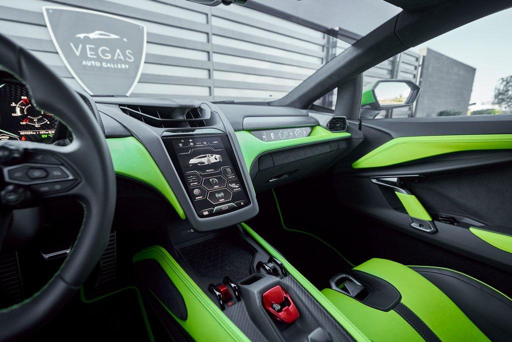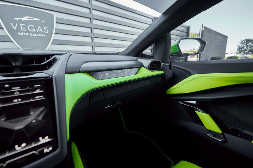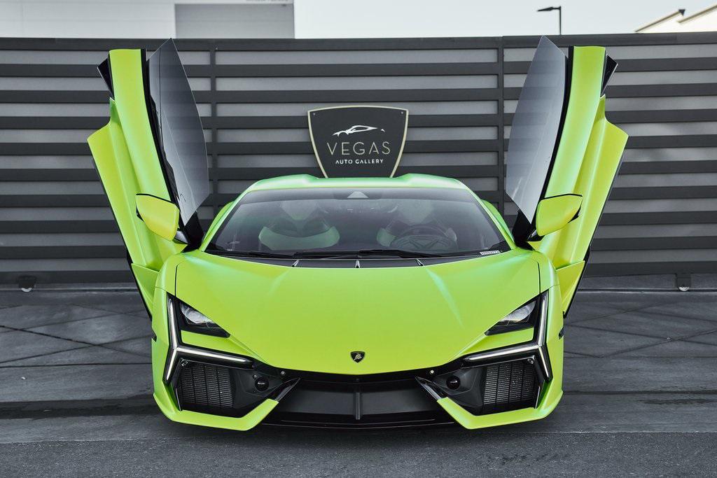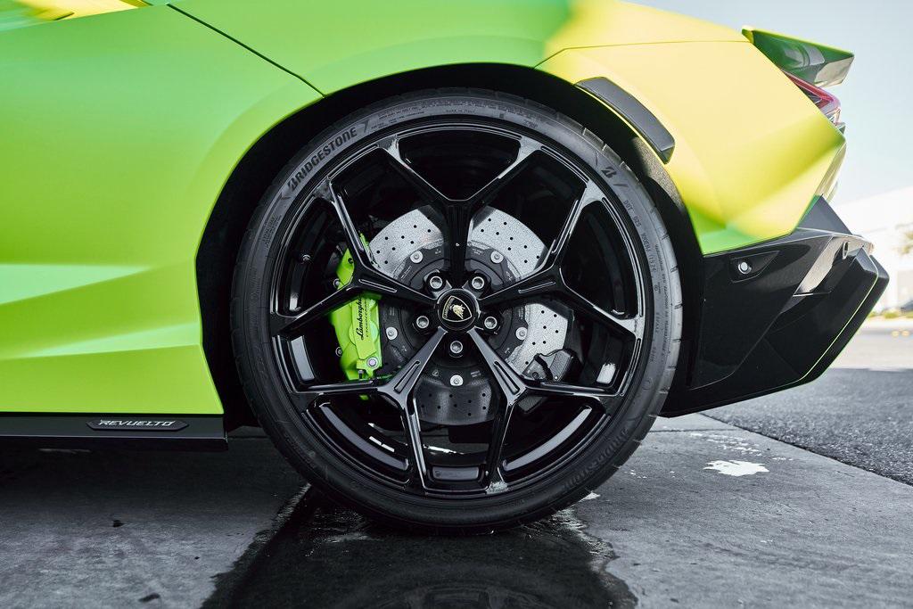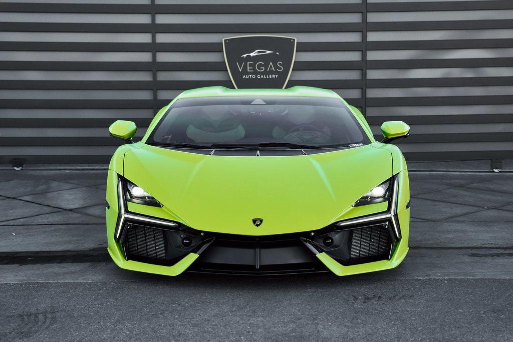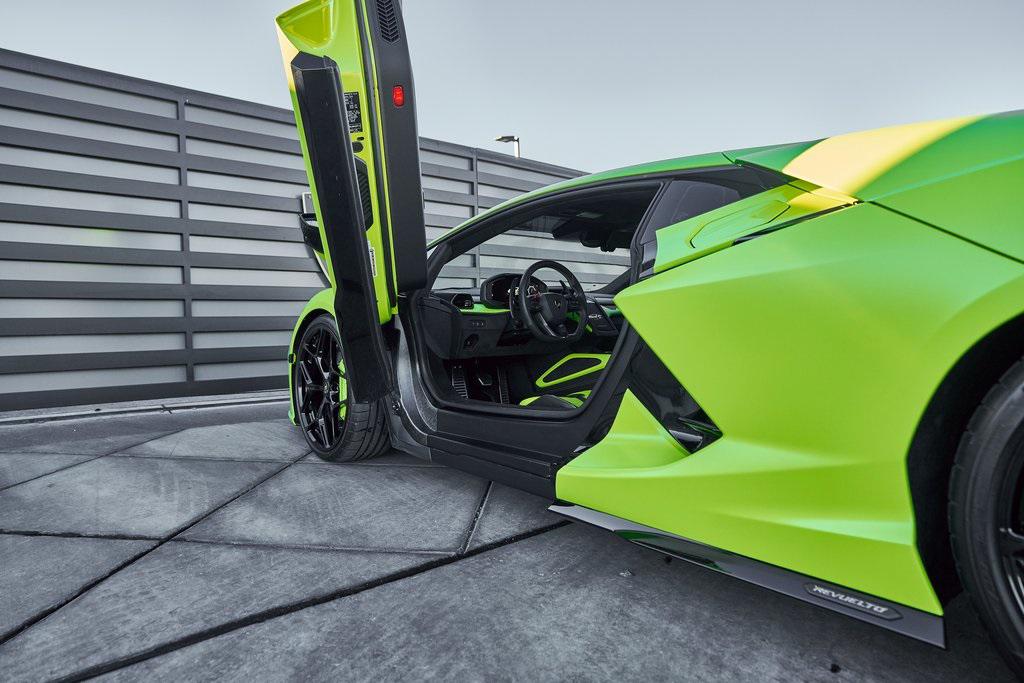 2024 LAMBORGHINI REVUELTOHIGH GLOSS BLACK STYLE PACK, PARKING PACK, VERDE SCANDAL, SATIN PPF, AND MORE!OVERVIEWThe 2024 Lamborghini Revuelto marks a historic chapter for Sant'Agata, ushering in the next era of the raging bull with its first-ever V12 plug-in hybrid high-performance supercar. It's not just a replacement for the Aventador––it's a reimagining of Lamborghini's flagship V12, merging cutting-edge electrification with the rawness that defines the brand's DNA. At its rear sits a brand-new 6.5-liter naturally aspirated V12 paired with three electric motors. The combined system delivers a staggering 1,001 horsepower, making the Revuelto one of the most powerful Lamborghini road cars ever built. The powertrain sends force through an 8-speed dual-clutch transmission, with the rear axle joined by an e-motor while twin motors on the front axle enable torque vectoring all-wheel drive. The result: a launch from 0-62 mph in just 2.5 seconds and a top speed exceeding 217 mph, all while offering the ability to cruise silently in electric-only mode when desired. Visually, the Revuelto's design is an evolution of the fighter jet-inspired aesthetic, with razor-sharp angles, Y-shaped LED signatures, and aggressive aerodynamic sculpting that generates over double the downforce of its predecessor. Lightweight carbon fiber monocoque architecture––including a new carbon front structure––ensures rigidity while reducing mass, advancing both safety and performance. Y-themed design cues continue throughout the interior, with customizable ambient lighting, fine leather, and carbon fiber accents providing a sporty vibe. With 13 distinct drive modes––ranging from full EV to Corsa––every journey can be tuned to electric serenity or unbridled ferocity. A symbol of where ultra-high-performance motoring is headed, the 2024 Revuelto is destined to become a future collectible in Lamborghini history: a supercar that preserves the soul-stirring sound of a naturally aspirated V12 while embracing the performance-enhancing possibilities of electrification.OPTIONAL EQUIPMENTVerde Scandal (Satin PPF)Nero Ade/Verde Scandal Leather $4,300Carbon Fiber Sport SeatsShiny Black Altanero Wheels $4,100Carbon Ceramic Brakes w/Verde Chiaro Calipers $1,800High Gloss Black Style Package $8,600Livery w/Stripe On Rr Diffuser $3,700Passenger Display $3,700Smartphone Interface $3,400Parking Pack $3,300Windscreen Frame Of Bonnet In Shiny Black $2,200Body Color Bocca Nera $1,200Engine Frame Inserts In Shiny Black $1,200Matte Black Exhaust Pipes $1,200Embroidered Lamborghini Shield $1,000Floor Mats w/Leather Piping $600GENERALYear: 2024Mileage: 1,629VIN #: ZHWUC1ZM3RLA01377Engine Size: 6.2L V12Class: CoupeHorsepower: 1001Color: Verde Scandal (Satin PPF)Interior: Nero Ade/Verde Scandal LeatherFuel: Premium Unleaded GasolineGear Box: 8-Speed AutomaticDoors: 2Seats: 2Cylinders: 12SAFETY EQUIPMENTOutboard Front Lap and Shoulder Safety BeltsAirbag Occupancy SensorCurtain 1st and 2nd Row AirbagsDual Stage Driver and Passenger Front AirbagsTire Specific Low Tire Pressure WarningRear Backup Camera & Parking Sensors ABS & Driveline Traction Control LDVI Electronic Stability Control Anti-Locking BrakesSurround ViewADDITIONAL INFORMATION2 Keys IncludedBalance of Factory Warranty (if applicable)Extended Warranties Available