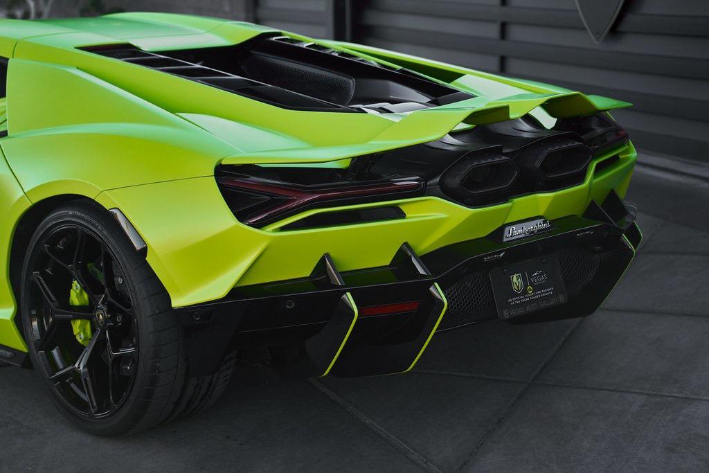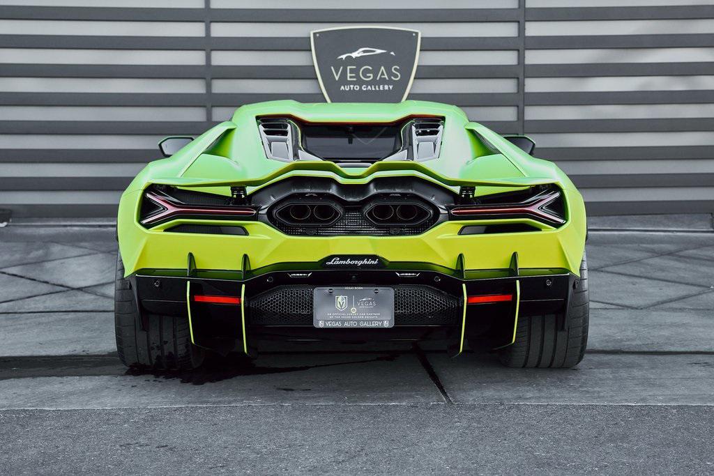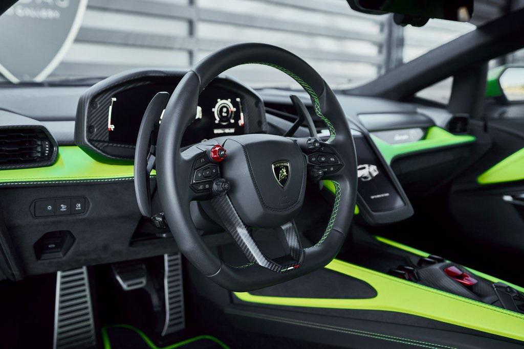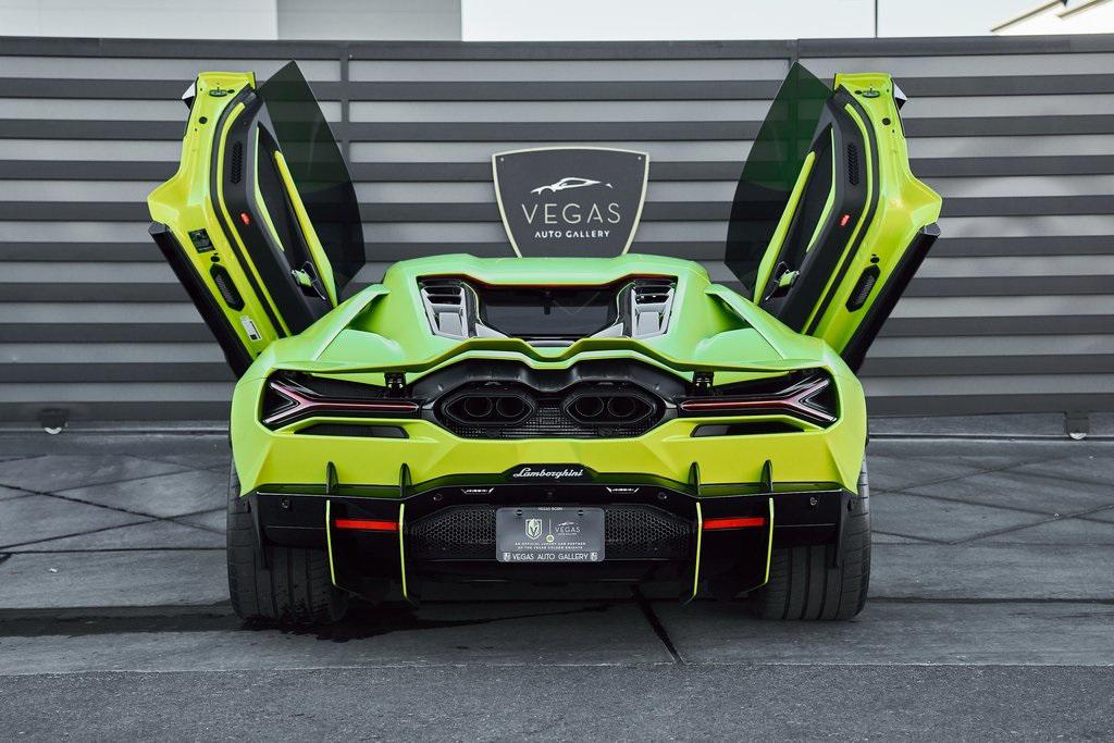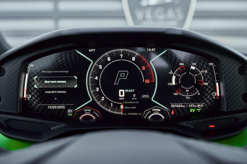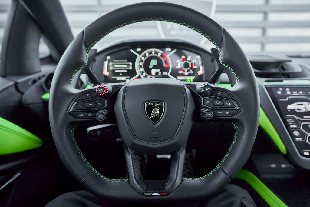 2024 LAMBORGHINI REVUELTOHIGH GLOSS BLACK STYLE PACK, PARKING PACK, VERDE SCANDAL, SATIN PPF, AND MORE!OVERVIEWThe 2024 Lamborghini Revuelto marks a historic chapter for Sant'Agata, ushering in the next era of the raging bull with its first-ever V12 plug-in hybrid high-performance supercar. It's not just a replacement for the Aventador––it's a reimagining of Lamborghini's flagship V12, merging cutting-edge electrification with the rawness that defines the brand's DNA. At its rear sits a brand-new 6.5-liter naturally aspirated V12 paired with three electric motors. The combined system delivers a staggering 1,001 horsepower, making the Revuelto one of the most powerful Lamborghini road cars ever built. The powertrain sends force through an 8-speed dual-clutch transmission, with the rear axle joined by an e-motor while twin motors on the front axle enable torque vectoring all-wheel drive. The result: a launch from 0-62 mph in just 2.5 seconds and a top speed exceeding 217 mph, all while offering the ability to cruise silently in electric-only mode when desired. Visually, the Revuelto's design is an evolution of the fighter jet-inspired aesthetic, with razor-sharp angles, Y-shaped LED signatures, and aggressive aerodynamic sculpting that generates over double the downforce of its predecessor. Lightweight carbon fiber monocoque architecture––including a new carbon front structure––ensures rigidity while reducing mass, advancing both safety and performance. Y-themed design cues continue throughout the interior, with customizable ambient lighting, fine leather, and carbon fiber accents providing a sporty vibe. With 13 distinct drive modes––ranging from full EV to Corsa––every journey can be tuned to electric serenity or unbridled ferocity. A symbol of where ultra-high-performance motoring is headed, the 2024 Revuelto is destined to become a future collectible in Lamborghini history: a supercar that preserves the soul-stirring sound of a naturally aspirated V12 while embracing the performance-enhancing possibilities of electrification.OPTIONAL EQUIPMENTVerde Scandal (Satin PPF)Nero Ade/Verde Scandal Leather $4,300Carbon Fiber Sport SeatsShiny Black Altanero Wheels $4,100Carbon Ceramic Brakes w/Verde Chiaro Calipers $1,800High Gloss Black Style Package $8,600Livery w/Stripe On Rr Diffuser $3,700Passenger Display $3,700Smartphone Interface $3,400Parking Pack $3,300Windscreen Frame Of Bonnet In Shiny Black $2,200Body Color Bocca Nera $1,200Engine Frame Inserts In Shiny Black $1,200Matte Black Exhaust Pipes $1,200Embroidered Lamborghini Shield $1,000Floor Mats w/Leather Piping $600GENERALYear: 2024Mileage: 1,629VIN #: ZHWUC1ZM3RLA01377Engine Size: 6.2L V12Class: CoupeHorsepower: 1001Color: Verde Scandal (Satin PPF)Interior: Nero Ade/Verde Scandal LeatherFuel: Premium Unleaded GasolineGear Box: 8-Speed AutomaticDoors: 2Seats: 2Cylinders: 12SAFETY EQUIPMENTOutboard Front Lap and Shoulder Safety BeltsAirbag Occupancy SensorCurtain 1st and 2nd Row AirbagsDual Stage Driver and Passenger Front AirbagsTire Specific Low Tire Pressure WarningRear Backup Camera & Parking Sensors ABS & Driveline Traction Control LDVI Electronic Stability Control Anti-Locking BrakesSurround ViewADDITIONAL INFORMATION2 Keys IncludedBalance of Factory Warranty (if applicable)Extended Warranties Available