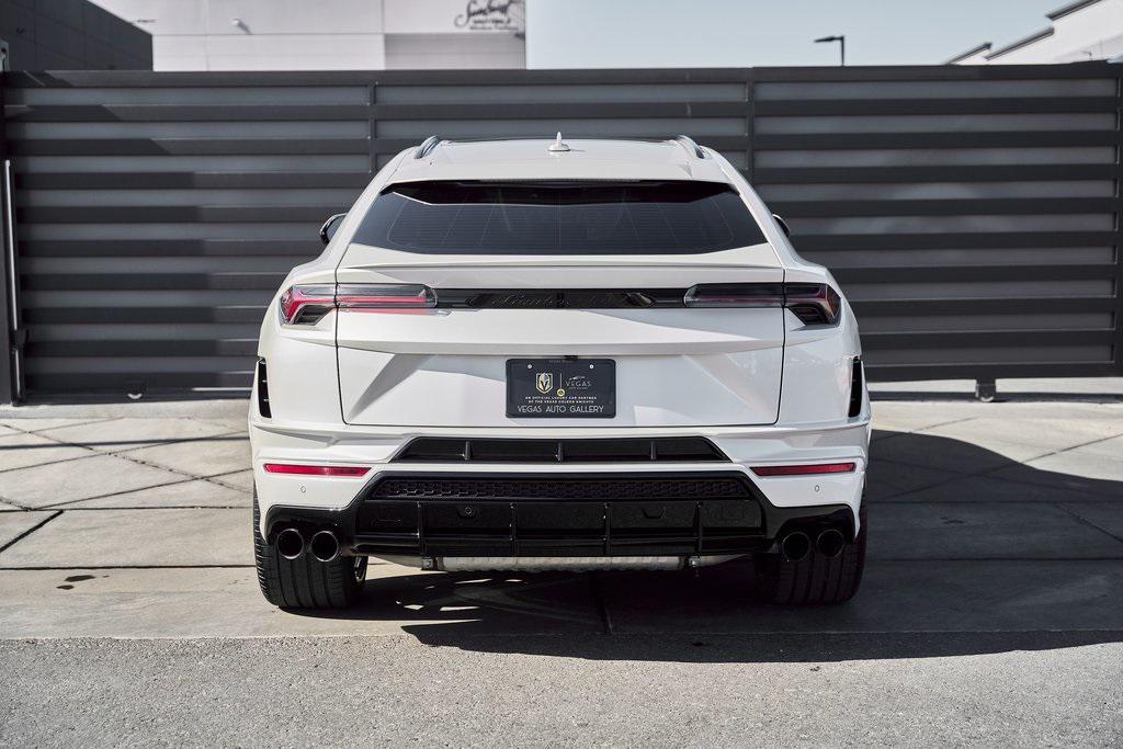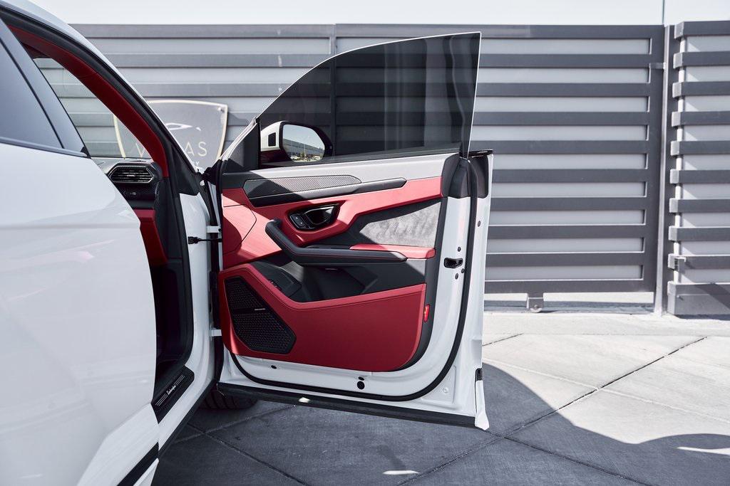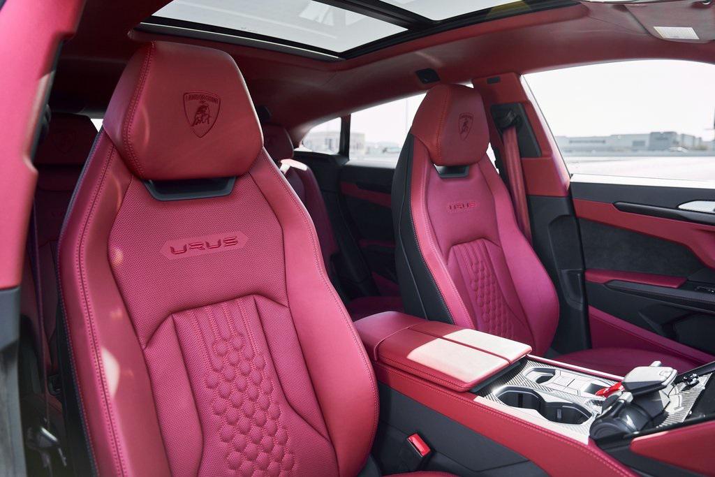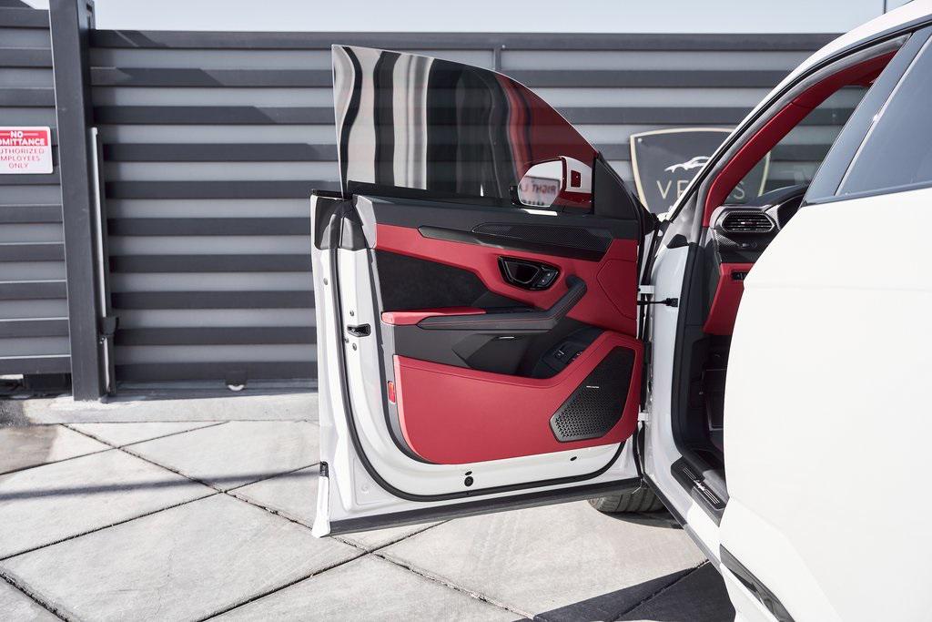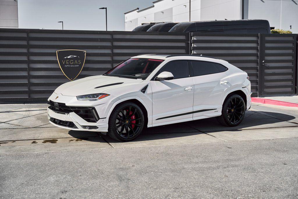 2024 LAMBORGHINI URUS SCARBON INTERIOR PACKAGE, BANG & OLUFSEN SOUND SYSTEM, CLIMATE CONTROLLED SEATS, AND MORE!OVERVIEWThe 2024 Lamborghini Urus S takes the concept of Super SUV and sharpens it with distinct Italian style, performance, and luxury. It's unmistakably Lamborghini––bold, dramatic, and uncompromising. Powering the Urus S is a 4.0-liter twin-turbocharged V8, producing 657 horsepower and 627 lb-ft of torque. Paired with an 8-speed automatic transmission and advanced all-wheel drive system with active torque vectoring, the Urus S launches from 0-60 mph in 3.3 seconds, with a top speed of 190 mph. Adaptive air suspension, active roll stabilization, and rear-wheel steering deliver incredible agility for an SUV, while multiple drive modes give Urus S confidence to tackle any terrain. Inside, the cabin combines supercar character with SUV practicality. Lamborghini's signature fighter-jet-inspired center console compliments a cockpit wrapped in premium leather, Q-Citura stitching, and black aluminum finishes. A dual touchscreen infotainment system, 3D Bang & Olufsen sound system, and advanced driver-assist technologies ensure modern convenience, while heated/ventilated/massage seats and ambient lighting create a comfort-focused environment. With seating for five, a usable cargo area, and enough ground clearance to venture beyond paved roads, the 2024 Lamborghini Urus S proves that performance and practicality don't have to live in separate garages. OPTIONAL EQUIPMENTBalloon White Metallic $13,384Nero Ade/Rosso Rea Leather $5,96423"" Shiny Black Taigete Wheels $5,467Big Interior Carbon Package $7,956Advanced 3D Bang & Olufsen Sound System $7,321Body Color Style Package $3,679Park Assistant Package $3,616Upper Leather Package $3,572Q-Citura Stitching $3,387Heated/Ventilated Front Comfort Seats $3,314Ambient Light Package $3,194Panoramic Roof $3,289Dark Interior Trim Package $2,832Privacy Glass Heat & Acoustic Insulated $2,177Red Brake Calipers $1,288Heated Leather Sport Steering Wheel $1,347Black Chrome Exhaust Tips $1,127Embroidered Shield On Headrests $973Floormats w/Leather Piping $703Black Anodized Aluminum Trim $644Gloss Black Hood Air Vents $433Steering Wheel Contrast Stitching $422Gloss Black Rear Logo $379 GENERALYear: 2024Mileage: 4,461VIN #: ZPBUB3ZL4RLA27913Engine Size: 4.0L V8 (Twin-Turbo) Class: SUVHorsepower: 657Color: Balloon White MetallicInterior: Nero Ade/Rosso Rea LeatherFuel: Premium Unleaded GasolineGear Box: 8-Speed AutomaticDoors: 4Seats: 5Cylinders: 8SAFETY EQUIPMENTOutboard Front Lap and Shoulder Safety BeltsAirbag Occupancy SensorCurtain 1st and 2nd Row AirbagsDual Stage Driver and Passenger Front AirbagsTire Specific Low Tire Pressure WarningChild Seat Sensor and Rear Child Safety LocksCollision Mitigation Front & Rear Lane Keep Assist Lane Departure Warning Traction ControlAnti-Locking BrakesPerimeter AlarmADDITIONAL INFORMATION1 Key IncludedBalance of Factory Warranty (if applicable)Extended Warranties Available