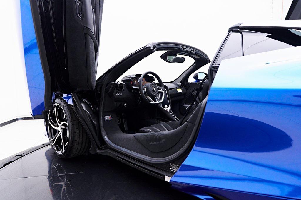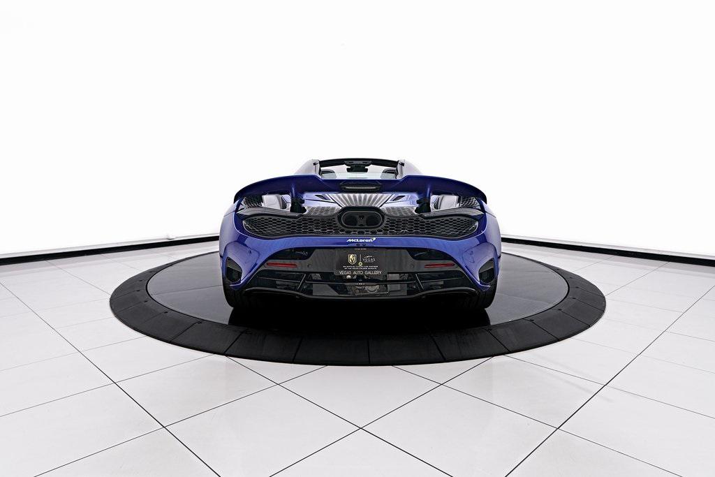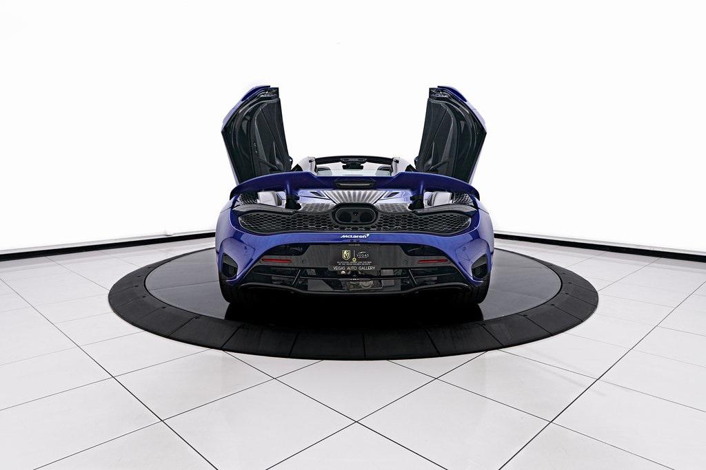 2024 MCLAREN 750S SPIDERBOWERS & WILKINS SOUND SYSTEM, 360 VIEW PARK ASSIST, VOLCANO BLUE, AND MORE!OVERVIEWIf there's one car that can blur the line between track and street, it's this one. Replacing the 720S, the 750S refines everything that came before it: lighter, sharper, and more emotionally engaging. Powering this McLaren is a 4.0-liter twin-turbocharged V8 engine producing 740 horsepower and 590 lb-ft of torque. Paired with a 7-speed dual-clutch transmission, it propels the car from 0-60 mph in just 2.7 seconds and on to a top speed of 206 mph. The revised engine mapping, freer-flowing exhaust, and reduced weight––66 pounds lighter than the 720S––make the 750S not only faster, but more responsive at every throttle input. The chassis is built around McLaren's signature carbon-fiber Monocage II, providing extraordinary rigidity and ultra-light weight. Advanced Proactive Chassis Control III suspension, recalibrated for greater feedback, delivers balance and agility that border on telepathic. Aerodynamic enhancements––an extended front splitter, redesigned rear wing, and sculpted underbody––generate significant downforce without compromising elegance. The result is a car that feels utterly composed at speed and connected through every corner. Inside, the 750S combines minimalist design with sophisticated technology. A new centrally mounted digital cluster moves with the steering column for perfect visibility, while the driver-focused cockpit and heated/power seats wrap around you like a tailored suit. High-grade Alcantara, leather, and machined aluminum define the cabin's tactile quality. The infotainment system features improved responsiveness and Apple CarPlay integration. Lighter, quicker, and more communicative than ever, the McLaren 750S is built for enthusiasts who demand a supercar that delivers unfiltered connection, breathtaking performance, and bespoke British craftsmanship.OPTIONAL EQUIPMENTVolcano Blue $9,900Carbon Black Alcantara $9,400Gloss Black Diamond Cut Vortex Wheels $8,300Bowers & Wilkins Audio System $5,400360 View Park Assist $4,000Exterior Black Pack $3,950Power/Heated Comfort Seats $3,900Painted Headlight Surround $1,850Stealth Exhaust Finisher $1,750Sound Comfort Windscreen $1,750Homelink $400Vehicle LiftGENERALYear: 2024Mileage: 2,450VIN #: SBM14BCA2RW007963Engine Size: 4.0L V8 (Twin-Turbo)Class: SpiderHorsepower: 740Color: Volcano BlueInterior: Carbon Black AlcantaraFuel: Unleaded Premium GasolineGear Box: 7-Speed Dual-Clutch Automatic Doors: 2Seats: 2Cylinders: 8SAFETY EQUIPMENTABSTraction ControlStability ControlESC and Launch ControlImmobilizerDriver and Passenger AirbagsEmergency Fuel Shut Off DeviceBrake Pad Wear SensorTilt SensorHill Hold360 Degree Park AssistADDITIONAL INFORMATION2 Keys Included Balance of Factory Warranty (if applicable)Extended Warranties Available