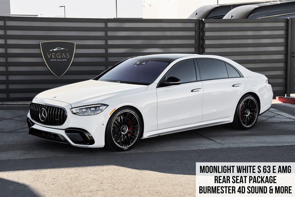 2024 MERCEDES-BENZ AMG S63 E 4MATICREAR SEAT PACKAGE, BURMESTER 4D AUDIO SYSTEM, CARBON FIBER TRIM, AND MORE!OVERVIEWMeet the most powerful S-Class ever built. This 2024 Mercedes-Benz S63 E takes the brand's iconic flagship to new heights with handcrafted AMG power and cutting-edge hybrid technology. Under the hood lies a 4.0-liter twin-turbocharged V8 paired with a rear-mounted electric motor and high-performance battery. The result? An astonishing 791 horsepower and 1,055 lb-ft of torque, enabling this executive sedan to surge from 0-60 mph in about 3.2 seconds. With AMG's 4MATIC+ all-wheel drive, adaptive suspension, and active roll stabilization, the S63 E delivers sports-car acceleration while maintaining the silky ride and composure expected from an S-Class. The exterior radiates subtle aggression with its AMG-specific Panamericana grille, quad exhaust outlets, and Moonlight White Metallic paint. The interior, on the other hand, embodies next-generation luxury with an OLED MBUX infotainment screen, extensive ambient lighting, and Carmine Red/Black Nappa Leather seats. The seats aren't just heated––they massage you, cool you, and remember your every preference. The 2024 Mercedes-Benz S63 E is a rolling example that efficiency and electrification can enhance the AMG experience. If you're a driving enthusiast who respects lineage and engineering integrity, the S63's pedigree is undeniable. OPTIONAL EQUIPMENTManufaktur Moonlight White Metallic $1,750Carmine Red/Black Nappa Leather $3,110Carbon Fiber Trim $3,70021"" AMG Cross Spoke Black Wheels $3,300Burmester High End 4D Surround Sound System $6,800Rear Seat Package $4,150Electrically Adjustable Front Passenger SeatRear MBUX Interior AssistantAdaptive Rear LightingWireless Charging RearMBUX Rear TabletRear Seat Belt Airbags4-Zone Climate ControlAMG Performance Microfiber Steering Wheel $900AMG Night Package $750Red Brake Calipers $700Wheel Locking Bolts $160GENERALYear: 2024Mileage: 3,380VIN #: W1K6G8CB0RA300653Engine Size: 4.0L V8 (Twin-Turbo) Class: SedanHorsepower: 791Color: Manufaktur Moonlight White Metallic Interior: Carmine Red/Black Nappa LeatherFuel: Unleaded Premium GasolineGear Box: 9-Speed AutomaticDoors: 4Seats: 4Cylinders: 8SAFETY EQUIPMENT4MATIC AWDOutboard Front Lap and Shoulder Safety BeltsAirbag Occupancy SensorCurtain 1st and 2nd Row AirbagsDual Stage Driver and Passenger Front AirbagsTire Specific Low Tire Pressure WarningTraction ControlAnti-Locking BrakesPerimeter AlarmSurround View CameraActive Blindspot MonitorActive Parking AssistCollision MitigationADDITIONAL INFORMATION2 Keys IncludedBalance of Factory Warranty (if applicable)Extended Warranties Available