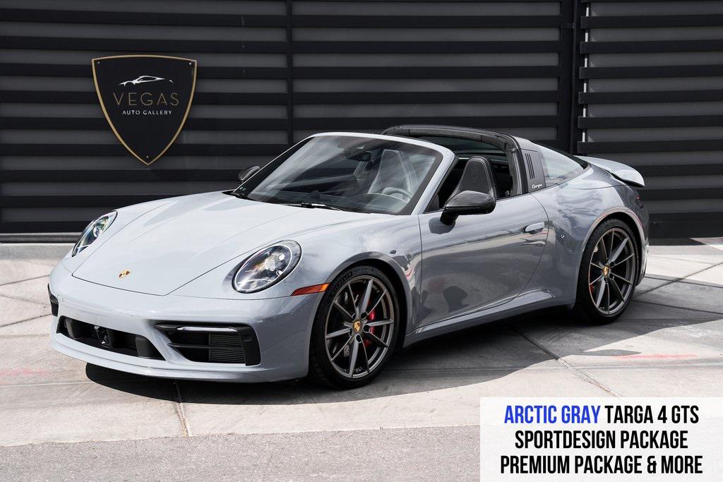 2024 PORSCHE 911 TARGA 4 GTS HEATED/VENTILATED SPORT SEATS, PREMIUM PACKAGE, FRONT AXLE LIFT, SPORTDESIGN PACKAGE, AND MORE!OVERVIEWPositioned between the Carrera S and Turbo, the 2024 Porsche 911 Targa 4 GTS offers a sharper drive, enhanced performance equipment, and all-wheel drive capability. Finished in Arctic Gray over black leather, this well-specced GTS boasts a long list of desirable options: Rear Axle Steering, heated/cooling seats, Porsche Dynamic Chassis Control, and deviated stitching throughout the interior. Under the rear decklid lives a 3.0-liter twin-turbocharged flat-six, delivering 473 horsepower and 420 lb-ft of torque. Paired with a quick-shifting 8-speed PDK dual-clutch transmission, the Targa 4 GTS rockets from 0-60 mph in just 3.1 seconds while the Porsche Traction Management all-wheel-drive system ensures unshakable grip in nearly any condition. The GTS specification brings a host of performance upgrades, including the Sport Chrono Package, PASM Sport Suspension, and Porsche Torque Vectoring Plus. Larger brakes borrowed from the Turbo model and a sport exhaust system deliver both stopping power and a thrilling soundtrack. Visually, this 911 turns heads with a Sportdesign bodykit and blacked out badging. Inside, the cabin blends sport and luxury with 14-way Sport Seats, ambient lighting, and a BOSE Surround Sound System. With its ideal balance of performance, daily driveability, and undeniable Porsche character, the 2024 911 Targa 4 GTS stands out as the sweet spot in the 911 lineup.OPTIONAL EQUIPMENTArctic Grey $3,270Black Leather $4,53014-Way Sport Seats $2,11020"" Fr & 21"" Rr Carrera S WheelsSportdesign Package $4,890Premium Package $5,350Surround ViewPorsche Dynamic Light System PlusAmbient LightingVentilated Front SeatsPower Folding Exterior MirrorsLane Change AssistBOSE Surround Sound SystemSport Package $4,630Sport Chrono PackageSport Exhaust SystemDeviated Stitching Interior Package $3,650Porsche Dynamic Chassis Control $3,170Front Axle Lift System $2,770Rear Axle Steering $2,090Adaptive Cruise Control $2,000Mirrors In Carbon Fiber & Gloss Black $1,630Wheels Painted In Satin Platinum $1,290Illuminated Door Sills In Carbon Fiber $1,280Lane Keep Assist $1,220Targa Bar In Black $700Heated GT Sport Steering Wheel $590Cupholder Trim In Leather $310Porsche Logo On Rear In Gloss Black $300Porsche Crest On Headrests $290Power Steering Plus $280GENERALYear: 2024Mileage: 2,568VIN #: WP0BB2A99RS233677Engine Size: 3.0L H6 (Twin-Turbo)Class: TargaHorsepower: 473Color: Arctic GrayInterior: Black Leather Fuel: Premium Unleaded Gasoline Gear Box: 8-Speed PDK (Automatic) Doors: 2Seats: 2+2Cylinders: 6SAFETY EQUIPMENTPorsche Stability ManagementFull-Time All-Wheel Drive Forward Collision Warning with Automatic Emergency BrakingLane Keep Assist & Lane Departure WarningOutboard Front Lap and Shoulder Safety BeltsAirbag Occupancy SensorCurtain 1st and 2nd Row AirbagsDual Stage Driver and Passenger Front AirbagsTire Specific Low Tire Pressure WarningTraction ControlAnti-Locking BrakesPerimeter AlarmADDITIONAL INFORMATION1 Key IncludedBalance of Factory Warranty (if applicable)Extended Warranties Available