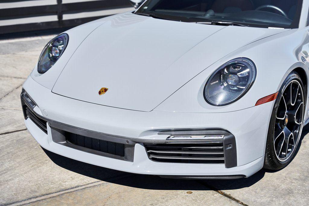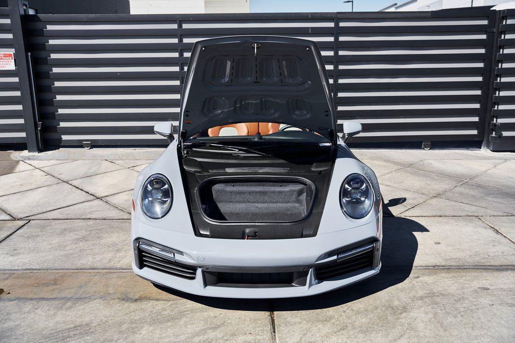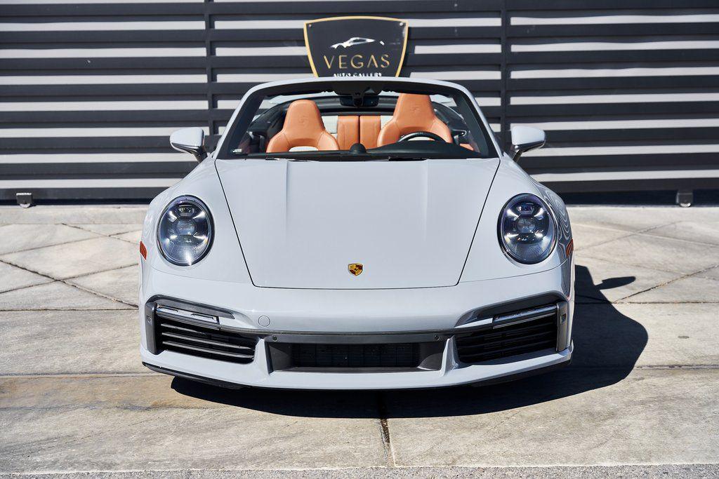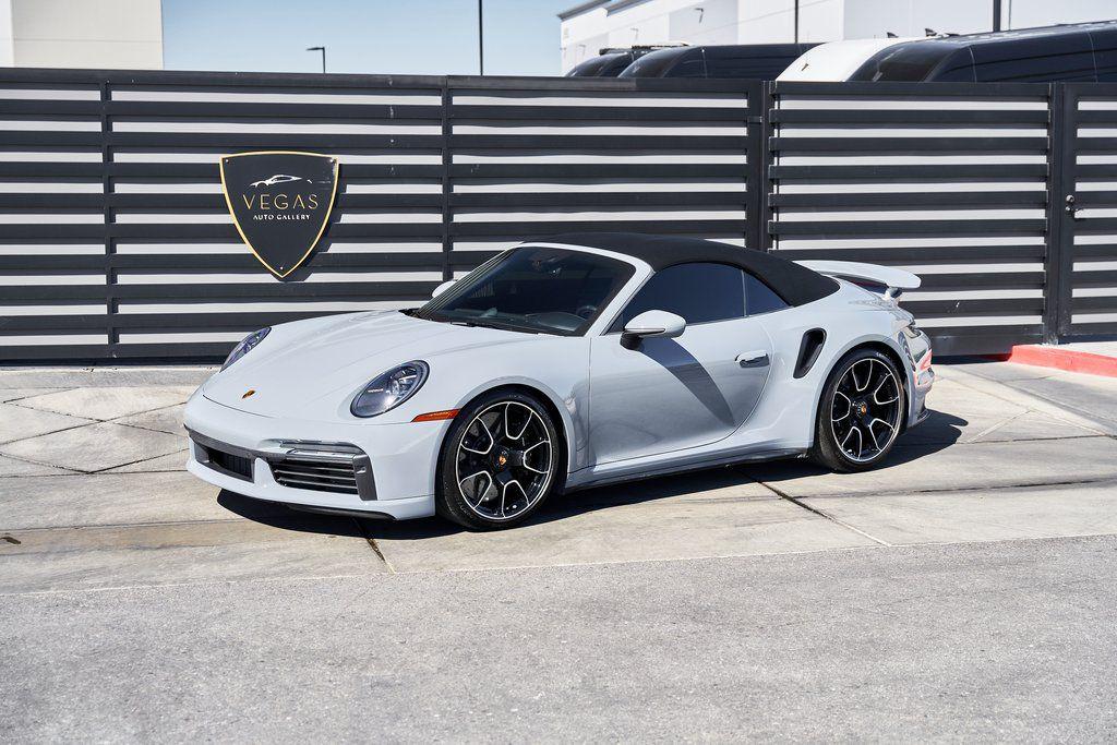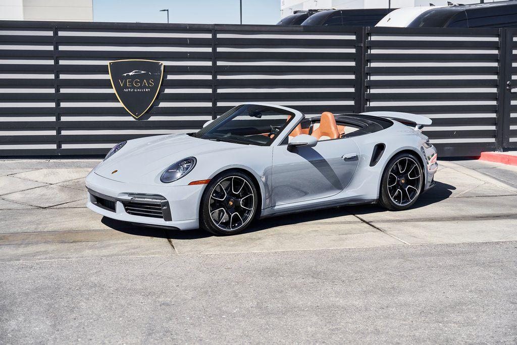 2024 PORSCHE 911 TURBO SSPORT EXHAUST SYSTEM, BURMESTER SOUND SYSTEM, HERITAGE DESIGN CLASSIC INTERIOR, AND MORE!OVERVIEWHere's a spec you don't want to miss. This range-topping 2024 Porsche 911 Turbo S represents the very best of Stuttgart engineering. At the rear is a 3.8L twin-turbo flat-six producing 640 horsepower and 590 lb-ft of torque, launching the Turbo S from 0-60 mph in a face-melting 2.6 seconds. Porsche's advanced all-wheel drive system and dynamic chassis control ensure that every ounce of power is translated into confident, razor-sharp control––allowing you to attack corners with confidence. Options are a-plenty, with active aero and a retractable rear wing working in tandem to manage airflow, and carbon ceramic brakes for fade-free stopping power. Exclusive Design taillights, a sport exhaust system, and LED Matrix Headlights illuminate the fact that this is no base spec Carrera. Inside, you'll find sports seats wrapped in Classic Cognac/Black Heritage Design Leather with houndstooth fabric throughout. Premium upgrades include a Burmester sound system, Turbo S Exclusive Design wheels, and extended leather application to the dashboard/doors. Whether you're carving through mountain passes, flying down the highway, or pulling up to a five-star hotel, the Porsche 911 Turbo S guarantees to leave you satisfied without compromise.OPTIONAL EQUIPMENTArctic Gray $3,270Heritage Design Package Classic $11,560Classic Cognac/Black LeatherTurbo S Exclusive Design Wheels $5,500Wheels Painted In Gloss Black $1,290Porsche Ceramic Composite Brakes $10,550Burmester High End Sound System $3,980Sport Exhaust System $3,490Extended Leather On Dash & Doors $3,440Porsche Dynamic Chassis Control $3,170Front Axle Lift System $2,770LED Matrix Design Headlights $2,740Pasm Sport Suspension $1,510Lane Change Assist $1,060Exclusive Design Taillights $990Aluminum Pedals & Footrest $630Ambient Lighting $580Ionizer $350Rear Porsche Logo In Black $300Power Steering Plus $280Rear Model Designation In Black $270Exclusive Design Fuel Cap $160Under Door Puddle Lights $160GENERALYear: 2024Mileage: 10,162VIN #: WP0CD2A99RS257072Engine Size: 3.8L H6 (Twin-Turbo)Class: CabrioletHorsepower: 640Color: Arctic GrayInterior: Classic Cognac/Black Leather Fuel: Premium Unleaded Gasoline Gear Box: 8-Speed PDK (Automatic) Doors: 2Seats: 2+2Cylinders: 6SAFETY EQUIPMENTPorsche Stability ManagementFull-Time All-Wheel Drive Forward Collision Warning with Automatic Emergency BrakingLane Keep Assist & Lane Departure WarningOutboard Front Lap and Shoulder Safety BeltsAirbag Occupancy SensorCurtain 1st and 2nd Row AirbagsDual Stage Driver and Passenger Front AirbagsTire Specific Low Tire Pressure WarningTraction ControlAnti-Locking BrakesPerimeter AlarmADDITIONAL INFORMATION1 Key IncludedBalance of Factory Warranty (if applicable)Extended Warranties Available