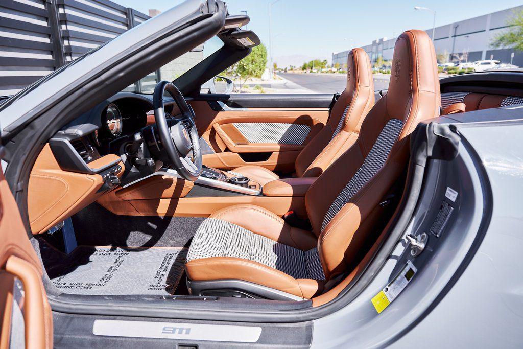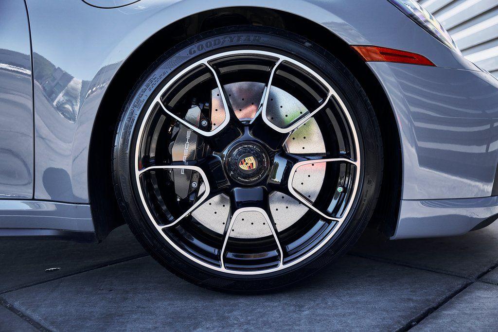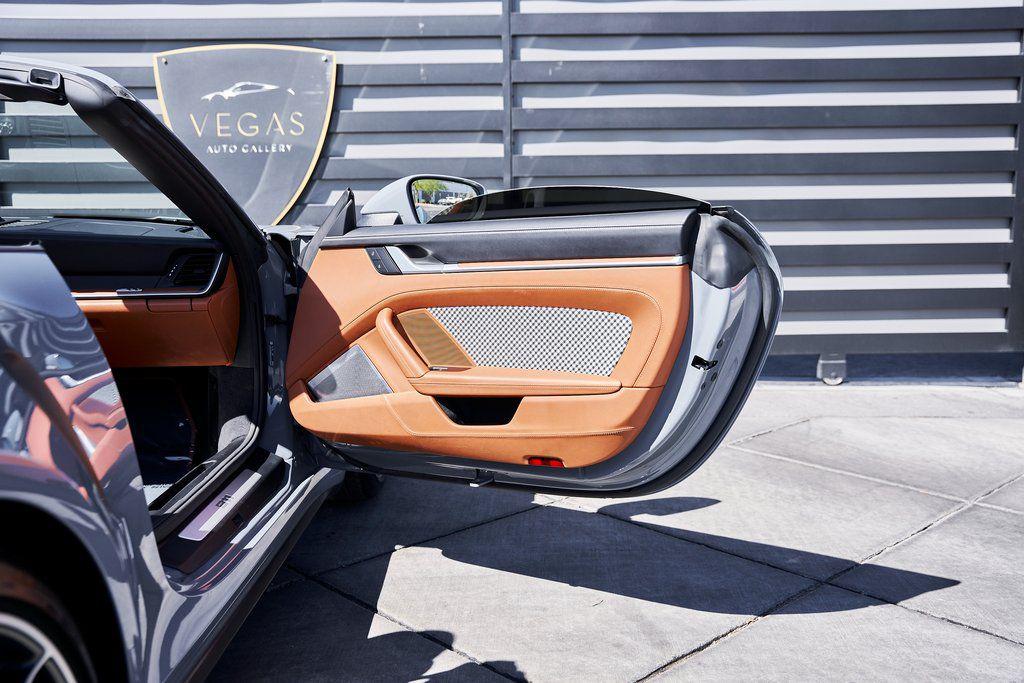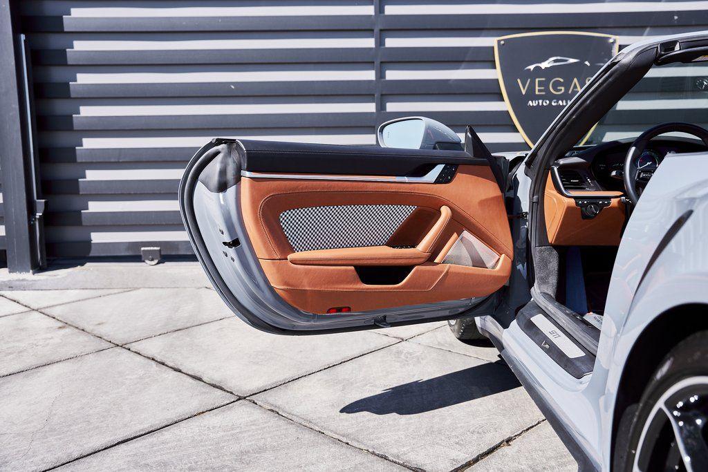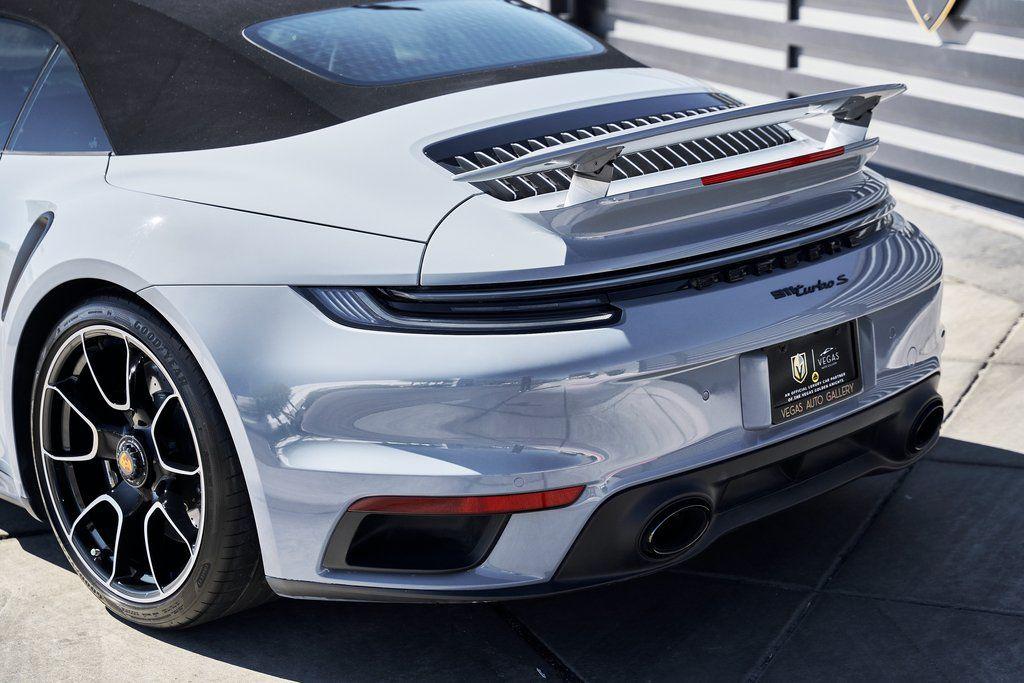 2024 PORSCHE 911 TURBO SSPORT EXHAUST SYSTEM, BURMESTER SOUND SYSTEM, HERITAGE DESIGN CLASSIC INTERIOR, AND MORE!OVERVIEWHere's a spec you don't want to miss. This range-topping 2024 Porsche 911 Turbo S represents the very best of Stuttgart engineering. At the rear is a 3.8L twin-turbo flat-six producing 640 horsepower and 590 lb-ft of torque, launching the Turbo S from 0-60 mph in a face-melting 2.6 seconds. Porsche's advanced all-wheel drive system and dynamic chassis control ensure that every ounce of power is translated into confident, razor-sharp control––allowing you to attack corners with confidence. Options are a-plenty, with active aero and a retractable rear wing working in tandem to manage airflow, and carbon ceramic brakes for fade-free stopping power. Exclusive Design taillights, a sport exhaust system, and LED Matrix Headlights illuminate the fact that this is no base spec Carrera. Inside, you'll find sports seats wrapped in Classic Cognac/Black Heritage Design Leather with houndstooth fabric throughout. Premium upgrades include a Burmester sound system, Turbo S Exclusive Design wheels, and extended leather application to the dashboard/doors. Whether you're carving through mountain passes, flying down the highway, or pulling up to a five-star hotel, the Porsche 911 Turbo S guarantees to leave you satisfied without compromise.OPTIONAL EQUIPMENTArctic Gray $3,270Heritage Design Package Classic $11,560Classic Cognac/Black LeatherTurbo S Exclusive Design Wheels $5,500Wheels Painted In Gloss Black $1,290Porsche Ceramic Composite Brakes $10,550Burmester High End Sound System $3,980Sport Exhaust System $3,490Extended Leather On Dash & Doors $3,440Porsche Dynamic Chassis Control $3,170Front Axle Lift System $2,770LED Matrix Design Headlights $2,740Pasm Sport Suspension $1,510Lane Change Assist $1,060Exclusive Design Taillights $990Aluminum Pedals & Footrest $630Ambient Lighting $580Ionizer $350Rear Porsche Logo In Black $300Power Steering Plus $280Rear Model Designation In Black $270Exclusive Design Fuel Cap $160Under Door Puddle Lights $160GENERALYear: 2024Mileage: 10,162VIN #: WP0CD2A99RS257072Engine Size: 3.8L H6 (Twin-Turbo)Class: CabrioletHorsepower: 640Color: Arctic GrayInterior: Classic Cognac/Black Leather Fuel: Premium Unleaded Gasoline Gear Box: 8-Speed PDK (Automatic) Doors: 2Seats: 2+2Cylinders: 6SAFETY EQUIPMENTPorsche Stability ManagementFull-Time All-Wheel Drive Forward Collision Warning with Automatic Emergency BrakingLane Keep Assist & Lane Departure WarningOutboard Front Lap and Shoulder Safety BeltsAirbag Occupancy SensorCurtain 1st and 2nd Row AirbagsDual Stage Driver and Passenger Front AirbagsTire Specific Low Tire Pressure WarningTraction ControlAnti-Locking BrakesPerimeter AlarmADDITIONAL INFORMATION1 Key IncludedBalance of Factory Warranty (if applicable)Extended Warranties Available