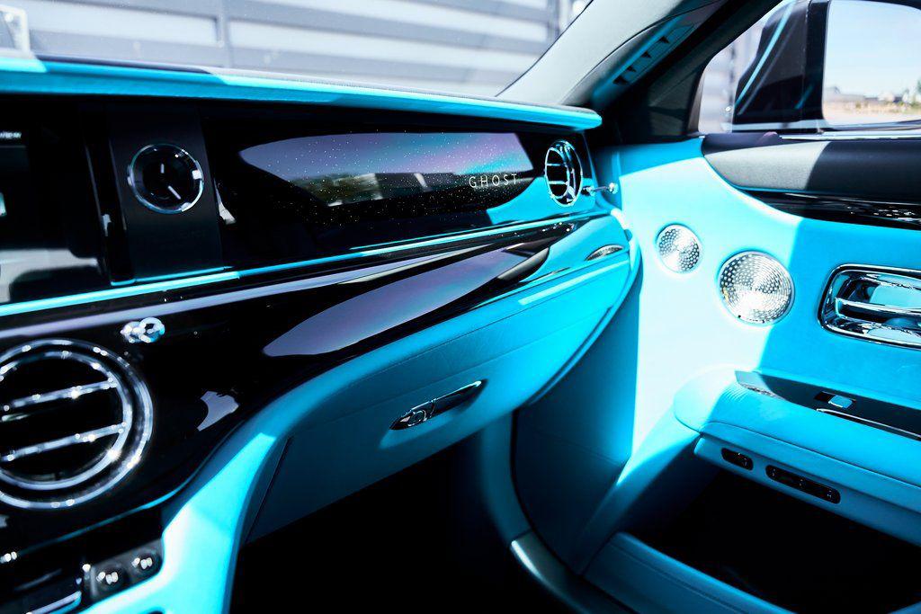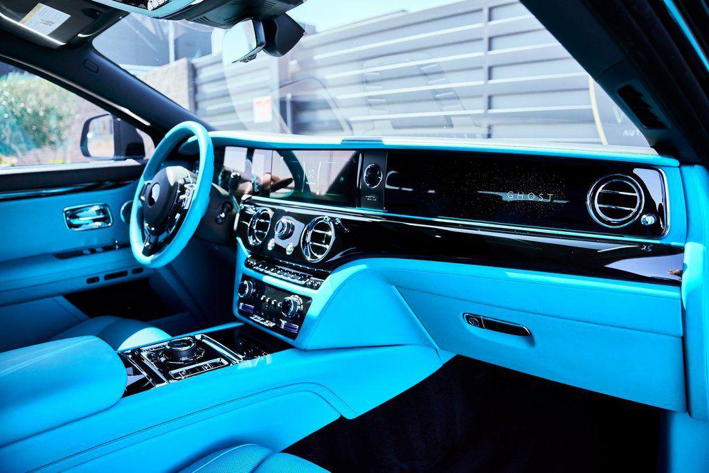 2024 ROLLS-ROYCE GHOSTSATIN PPF, BESPOKE AUDIO SYSTEM, IMMERSIVE SEATING, ILLUMINATED FASCIA, AND MORE!OVERVIEWThe 2024 Rolls-Royce Ghost is an embodiment of discreet luxury, combining timeless design, advanced technology, and peerless craftsmanship synonymous with the marque. This Black Diamond example rides on custom 24-inch wheels and sports a classy Turchese/Black leather interior. Beneath its iconic Pantheon grille rests a 6.75-liter twin-turbocharged V12, delivering 563 hp and 627 lb-ft of torque which motivates the Ghost to 60 mph in about 4.5 seconds––quite respectable when you realize this first-class suite on wheels weighs nearly 5,500 lbs. The Flagbearer suspension system, combined with adaptive air springs, creates a ride so smooth it's often described as ""magic carpet"" motoring. As is true with most Rolls-Royce vehicles, it's what's inside that counts. Every surface is cloaked in natural-grain leather, polished metal inlays, and Piano Black Veneer. Rear-seat passengers enjoy power-closing coach doors, power seats with individual adjustment, and a premium audio system discreetly integrated to preserve the cabin's elevated aesthetics. Every surface is touch-soft, every control weighted to perfection, and every sound carefully tuned––or intentionally absent. With unmatched build quality and a heritage spanning more than a century, the Rolls-Royce Ghost stands as the definitive statement of success and sophistication.OPTIONAL EQUIPMENTBlack Diamond (Satin PPF)Turchese/Black LeatherPiano Black Veneer $3,50024"" Custom WheelsRolls-Royce Bespoke Audio $11,425Immersive Seating $11,275Illuminated Spirit Of Ecstasy $10,000Bespoke Interior Editing $9,800Illuminated Fascia $5,425Painted Brake Calipers $4,550Dynamic Bespoke Clock $4,725Ghost Illuminated Treadplates $3,700Colored Stitching $2,500Colored Steering Wheel $2,325Single Coachline $2,050RR Monogram To Headrests $1,700Shooting Star HeadlinerFront Ventilated/Massage SeatsActive Cruise ControlPark AssistComfort Entry SystemGENERALYear: 2024Mileage: 2,221VIN #: SCATV0C06RU221173Engine Size: 6.75L V12 (Twin-Turbo)Class: Luxury SedanHorsepower: 563Color: Black Diamond (Satin PPF)Interior: Turchese/Black LeatherFuel: Premium Unleaded GasolineGear Box: 8-Speed AutomaticDoors: 4Seats: 5Cylinders: 12SAFETY EQUIPMENTDual Stage Driver and Passenger AirbagsElectronic Traction ControlDynamic Stability ControlRoll Stability ControlAnti-Lock Braking SystemDriver Condition ResponseChild Seat Sensor and Power Rear Child Safety LocksDriver Monitoring AlertTire Specific Low Tire Pressure WarningBlindspot AssistAdaptive Cruise ControlADDITIONAL INFORMATION1 Key IncludedBalance of Factory Warranty (if applicable)Extended Warranties Available