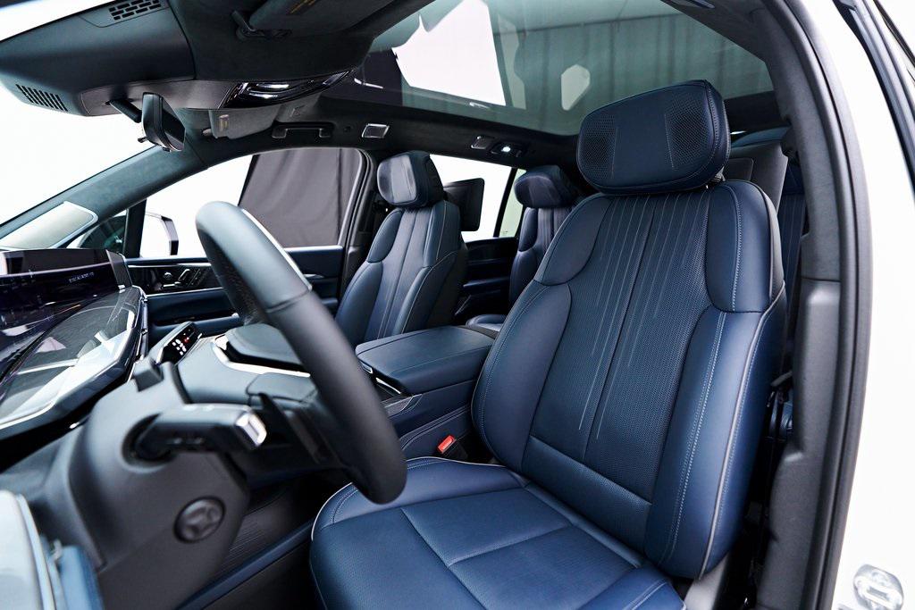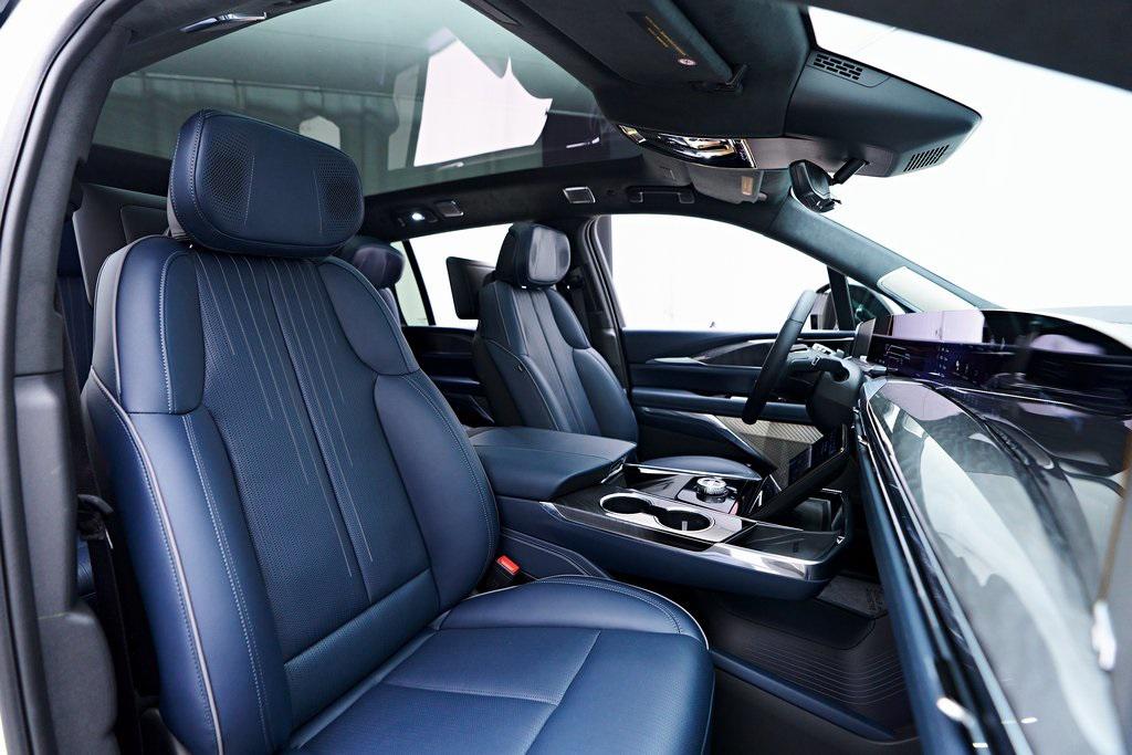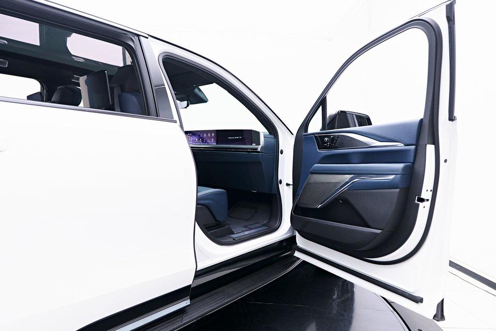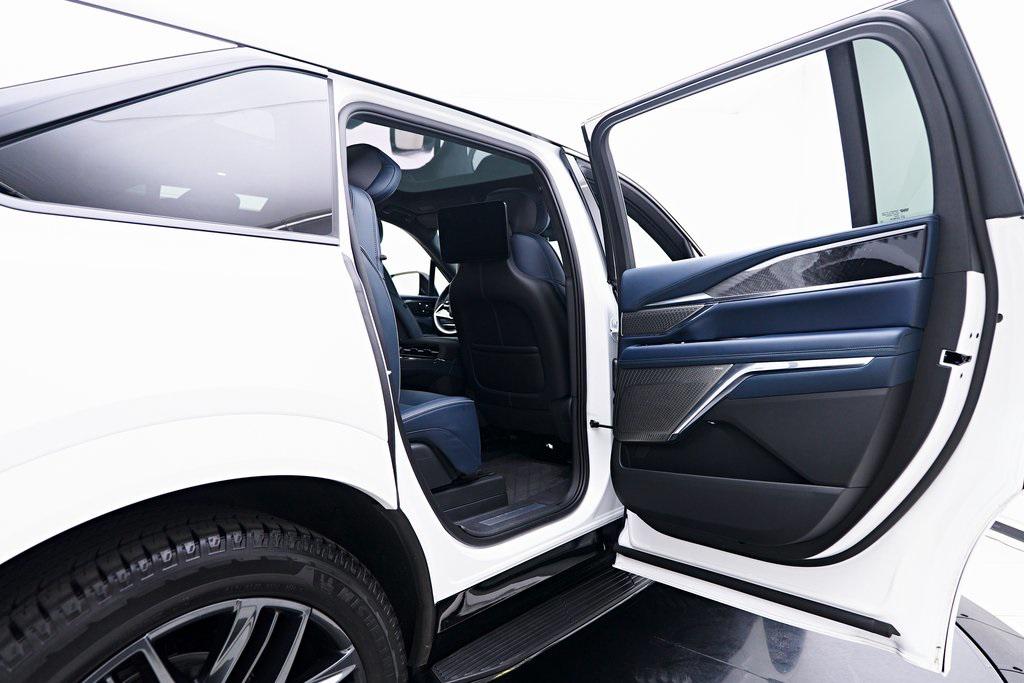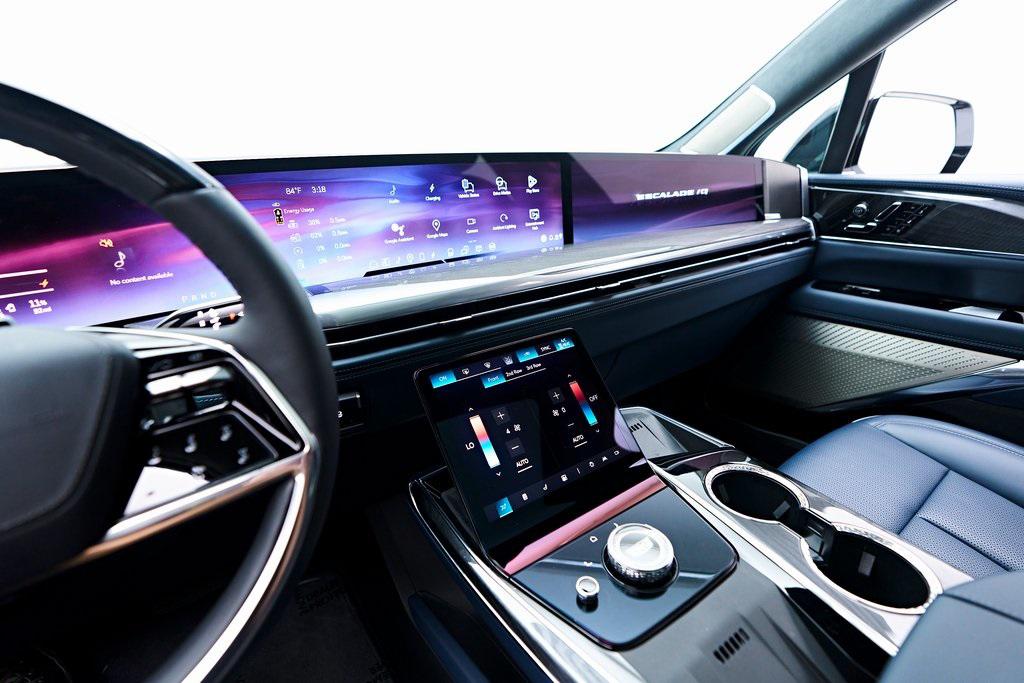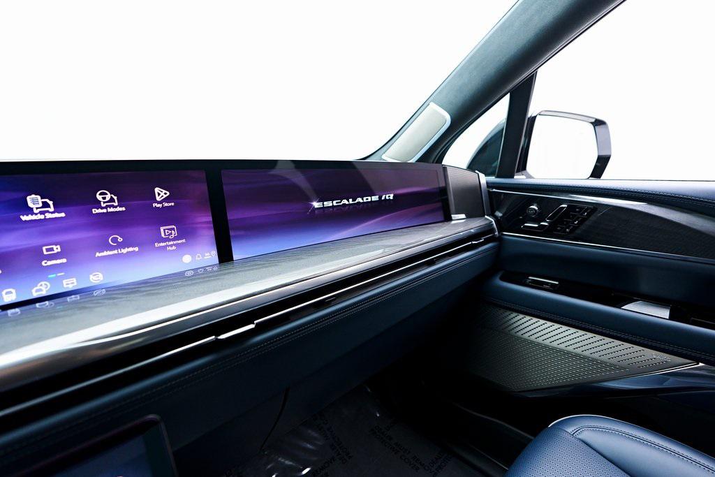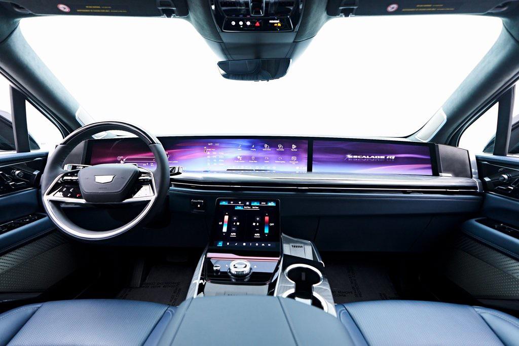 2025 CADILLAC ESCALADE IQ SPORT 2 SUMMIT WHITE EXTERIOR, HARBOR BLUE / BACKEN BLACK ACCENTS LEATHER INTERIOR, EXECUTIVE SECOND ROW SEATING PACKAGE & MORE! OVERVIEW The 2025 Cadillac Escalade IQ Sport EV 2 is a bold step into the future of luxury SUVs, combining cutting-edge electric performance with Cadillacs signature refinement. Powered by an advanced Ultium battery platform, it delivers exceptional range and instant torque for a smooth yet powerful driving experience. The exterior showcases a futuristic design with an illuminated front grille, sleek aerodynamic lines, and 24-inch alloy wheels that enhance its commanding presence. Inside, the cabin is a masterpiece of modern luxury, featuring a 55-inch curved LED display, premium materials, and a state-of-the-art AKG Studio Reference sound system. Advanced driver assistance features, including Super Cruise hands-free driving, ensure effortless long-distance travel. With a spacious three-row layout and a high-tech, all-electric powertrain, the Escalade IQ Sport EV 2 sets a new benchmark for luxury SUVs in the electric era.OPTIONAL EQUIPMENT Exterior - Summit WhiteInterior - Harbor Blue / Backen Black Accent LeatherExecutive Second Row Seating PackageSeat Adjuster, Second Row Power Bolster Seat Adjuster, Second Row 6 Power AdjustersSeat Adjuster, Second Row 4 Way Power Lumbar Seats, Second Row Executive Seating Wireless CharingVentilated SeatsSeat Adjuster, Second Row Power Massage Rear Seat Entertainment SystemBlack RoofTrailer Tire Pressure MonitorGENERAL Year: 2025Mileage: 4,999VIN #: 1GYTEFKL6SU102417Class: Luxury SUVHorsepower: Up to 750 Color: Summit WhiteInterior: Harbor Blue / Backen Black Accent LeatherFuel: Unleaded Premium Gasoline Gear Box: 1-Speed Automatic Doors: 4Seats: 6Cylinders: 8SAFETY EQUIPMENT All Wheel DriveFront outboard Passenger Sensing System for frontal outboard passenger airbagAirbags, Frontal for driver and front passenger; Sea-mounted side-impact for driver and front passenger; Driver inboard seat-mounted side-impact; Roof-rail mounted head-curtain for outboard seating positionsStabiliTrak, vehicle stability enhancement system with Rollover Mitigation, includes disable switch Front Pedestrian BrakingReverse Automatic Braking Enhanced Automatic Braking Enhanced Automatic Emergency Braking Brake Assist designed to assist the drive in stopping or decreasing vehicle speed Tire Pressure Monitoring System auto learn, includes Tire Fill Alert Tire Fill Alert provides visual and audible alerts outside the vehicle when inflating an under inflated tire to the recommended tire pressure Teen Driver is a configurable feature that lets you activate customizable vehicle settings associated with a key fob, to help encourage safe driving behavior. It can limit certain available vehicle features, and it prevents certain safety system from being turned off An in-Vehicle report card gives you information on driving habits and helps you to continue to coach your new driver Rear Seat Reminder Door locks, rear child security Buckle to Drive Prevents Vehicle from being shifted out of Park until driver seat belt is fastened; times out after 20 seconds and encourages seat belt use, can be turned on and off in Settings or Teen Driver menuSeat belts, 3-point, all positions, includes front seat belt pretensioners Seat belt indicator, 3rd row Seat belt indicator, 2nd row Safety Alert Seat Automatic Seat Belt Tightening Forward Collision Alert Lane Keep Assist with Lane Departure Warning Rear Pedestrian Alert Rear Cross Traffic Alert Trailer Side Blind Zone Alert Surround Vision Recorder HD Surround Vision ADDITIONAL INFORMATION 1 Key Included Balance of Factory Warranty (if applicable) Extended Warranties Available