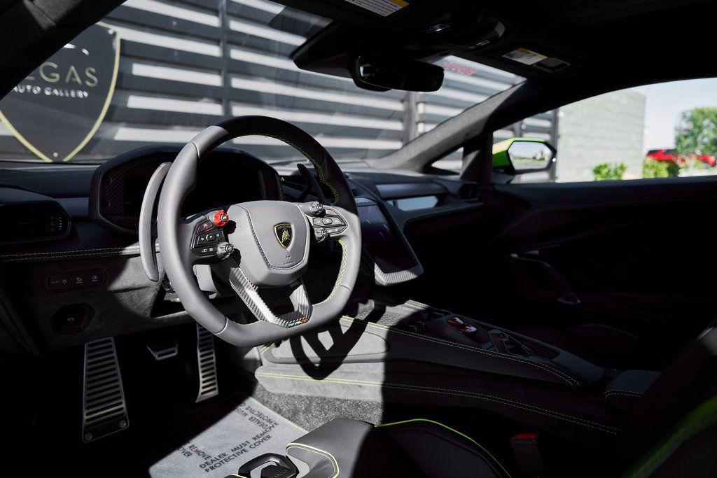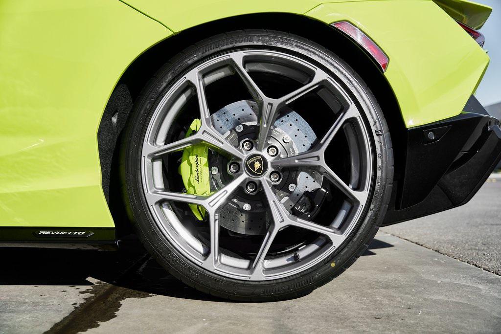 2025 LAMBORGHINI REVUELTOHIGH GLOSS BLACK STYLE PACK, PARKING PACK, SONUS FABER SOUND SYSTEM, LOW MILES, AND MORE!OVERVIEWThe 2025 Lamborghini Revuelto marks a historic chapter for Sant'Agata, ushering in the next era of the raging bull with its first-ever V12 plug-in hybrid high-performance supercar. It's not just a replacement for the Aventador––it's a reimagining of Lamborghini's flagship V12, merging cutting-edge electrification with the rawness that defines the brand's DNA. At its rear sits a brand-new 6.5-liter naturally aspirated V12 paired with three electric motors. The combined system delivers a staggering 1,001 horsepower, making the Revuelto one of the most powerful Lamborghini road cars ever built. The powertrain sends force through an 8-speed dual-clutch transmission, with the rear axle joined by an e-motor while twin motors on the front axle enable torque vectoring all-wheel drive. The result: a launch from 0-62 mph in just 2.5 seconds and a top speed exceeding 217 mph, all while offering the ability to cruise silently in electric-only mode when desired. Visually, the Revuelto's design is an evolution of the fighter jet-inspired aesthetic, with razor-sharp angles, Y-shaped LED signatures, and aggressive aerodynamic sculpting that generates over double the downforce of its predecessor. Lightweight carbon fiber monocoque architecture––including a new carbon front structure––ensures rigidity while reducing mass, advancing both safety and performance. Y-themed design cues continue throughout the interior, with customizable ambient lighting, fine leather, and carbon fiber accents providing a sporty vibe. With 13 distinct drive modes––ranging from full EV to Corsa––every journey can be tuned to electric serenity or unbridled ferocity. A symbol of where ultra-high-performance motoring is headed, the 2025 Revuelto is destined to become a future collectible in Lamborghini history: a supercar that preserves the soul-stirring sound of a naturally aspirated V12 while embracing the performance-enhancing possibilities of electrification.OPTIONAL EQUIPMENTVerde Scandal Nero Ade Leather $5,500Verde Scandal StitchingCarbon Fiber Sport SeatsTitanium Painted Altanero Wheels $4,100Verde Chiaro CCB Calipers $2,700High Gloss Black Style Package $8,600Sonus Faber Sound System $6,000Passenger Display $3,700Smartphone Interface $3,400Parking Pack $3,300Windscreen Frame Of Bonnet In Shiny Black $2,200Engine Frame Inserts In Shiny Black $1,200Matte Black Exhaust Pipes $1,200Embroidered Lamborghini Shield $1,000GENERALYear: 2025Mileage: 121VIN #: ZHWUC1ZM5SLA03623Engine Size: 6.2L V12Class: CoupeHorsepower: 1001Color: Verde Scandal Interior: Nero Ade LeatherFuel: Premium Unleaded GasolineGear Box: 8-Speed AutomaticDoors: 2Seats: 2Cylinders: 12SAFETY EQUIPMENTOutboard Front Lap and Shoulder Safety BeltsAirbag Occupancy SensorCurtain 1st and 2nd Row AirbagsDual Stage Driver and Passenger Front AirbagsTire Specific Low Tire Pressure WarningRear Backup Camera & Parking Sensors ABS & Driveline Traction Control LDVI Electronic Stability Control Anti-Locking BrakesSurround ViewADDITIONAL INFORMATION1 Key IncludedBalance of Factory Warranty (if applicable)Extended Warranties Available