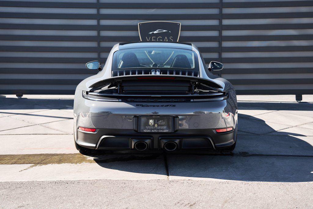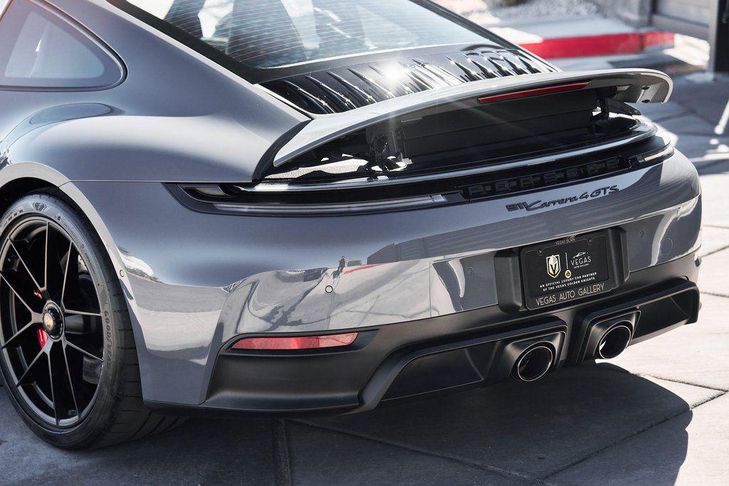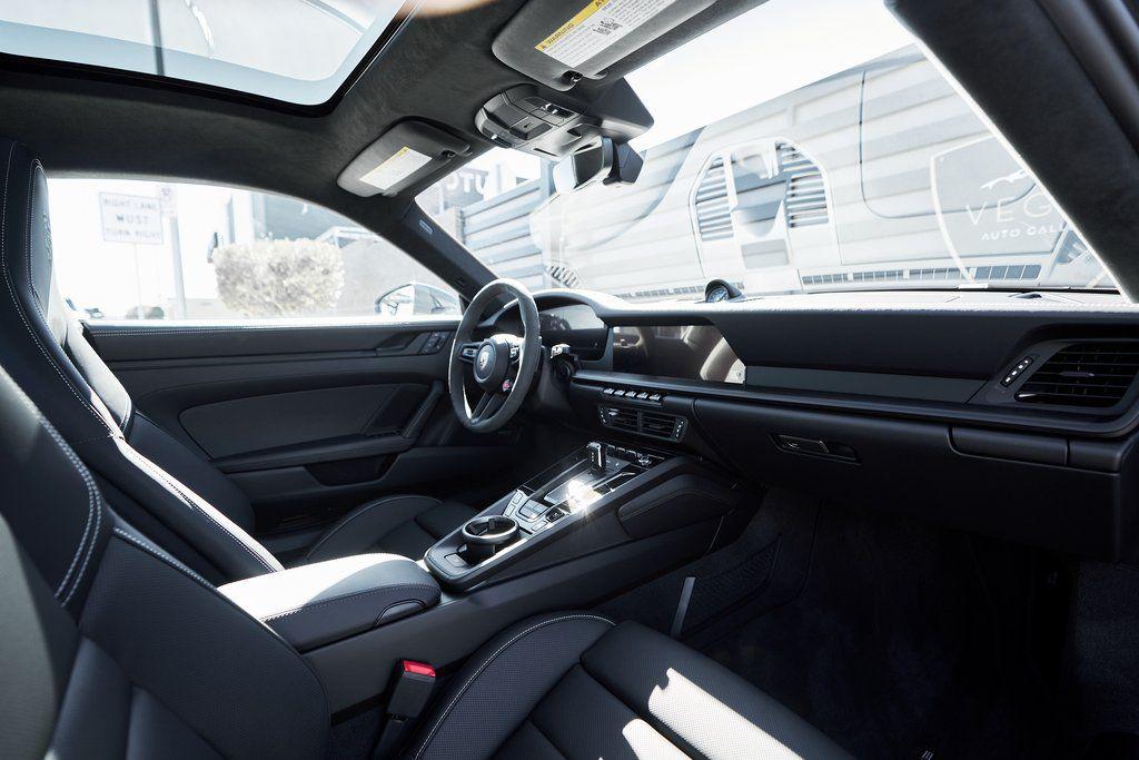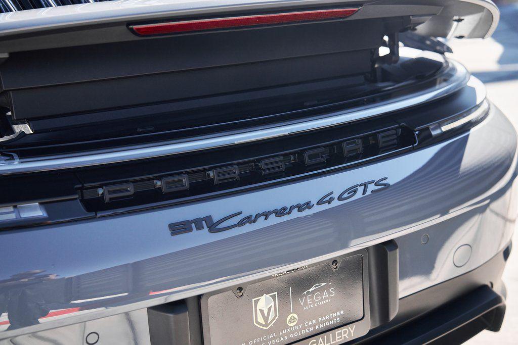 2025 PORSCHE 911 CARRERA 4 GTS HEATED/VENTILATED SPORT SEATS, PREMIUM PACKAGE, <1000 MILES, AND MORE!OVERVIEWPositioned between the Carrera S and Turbo, the 2025 Porsche 911 Carrera 4 GTS offers a sharper drive, enhanced performance equipment, and all-wheel drive capability. Finished in Slate Gray Neo over black leather, this well-specced GTS boasts a list of desirable options: Premium Package, heated/cooling seats, and Sportdesign Side Skirts. The T-Hybrid powertrain in the current GTS is based on the 3.6-liter six-cylinder boxer engine, incorporating a single electric turbocharger, and is supplemented by a powerful electric motor/generator that supplies an additional 54 hp and 110 pound-feet of torque for a combined 532 horsepower. Paired with an 8-speed PDK transmission and Porsche's all-wheel-drive, the Carrera 4 GTS rockets from 0-60 mph in just 2.8 seconds. The GTS specification brings a host of performance upgrades, including the Sport Chrono Package, PASM Sport Suspension, and Rear Axle Steering. Larger brakes borrowed from the Turbo model and a sport exhaust system deliver both stopping power and a thrilling soundtrack. Visually, this 911 cruises under the radar with blacked out exterior trim, satin black center-lock alloy wheels, and GTS badging. Inside, the cabin blends sport and luxury with 14-Way Sport Seats, a BOSE Surround Sound System, and a power glass sunroof. With its ideal balance of performance, daily drivability, and undeniable Porsche character, the Carrera GTS stands out as the sweet spot in the 911 lineup.OPTIONAL EQUIPMENTSlate Gray Neo $2,980Black Leather Interior w/Chalk StitchPremium Package $4,600IonizerSurround View w/Active Parking SupportLane Change AssistAdaptive Cruise ControlStorage Net in Passenger FootwellBOSE Surround Sound SystemElectric Glass Sunroof $2,00014-Way Sport Seats $1,520Sportdesign Side Skirts $1,300Front Ventilated Seats $840Porsche Crest On Headrests $300Under Door Puddle Lights$ 160Prep For Dashcam $140Wheels Painted In Satin BlackGENERALYear: 2025Mileage: 389VIN #: WP0AB2A93SS226080Engine Size: 3.6L H6 (Turbocharged)Class: CoupeHorsepower: 532Color: Slate Gray NeoInterior: Black Leather Fuel: Premium Unleaded Gasoline Gear Box: 8-Speed PDK (Automatic) Doors: 2Seats: 2+2Cylinders: 6SAFETY EQUIPMENTPorsche Stability ManagementFull-Time All-Wheel Drive Forward Collision Warning with Automatic Emergency BrakingLane Keep Assist & Lane Departure WarningOutboard Front Lap and Shoulder Safety BeltsAirbag Occupancy SensorCurtain 1st and 2nd Row AirbagsDual Stage Driver and Passenger Front AirbagsTire Specific Low Tire Pressure WarningTraction ControlAnti-Locking BrakesPerimeter AlarmADDITIONAL INFORMATION1 Key IncludedBalance of Factory Warranty (if applicable)Extended Warranties Available