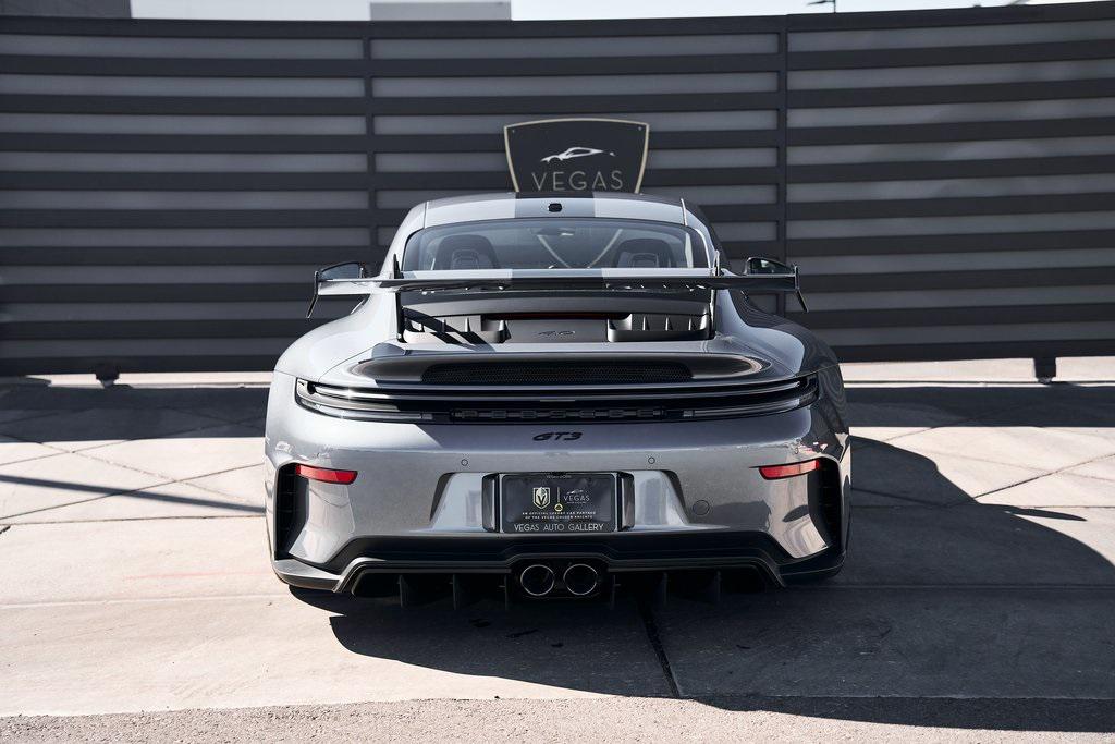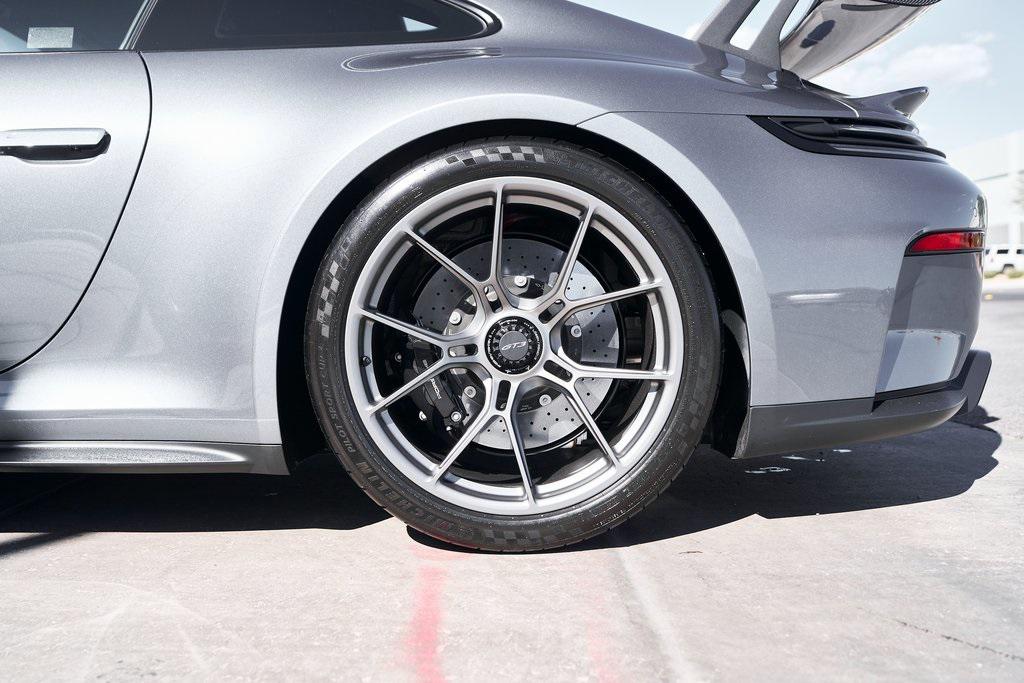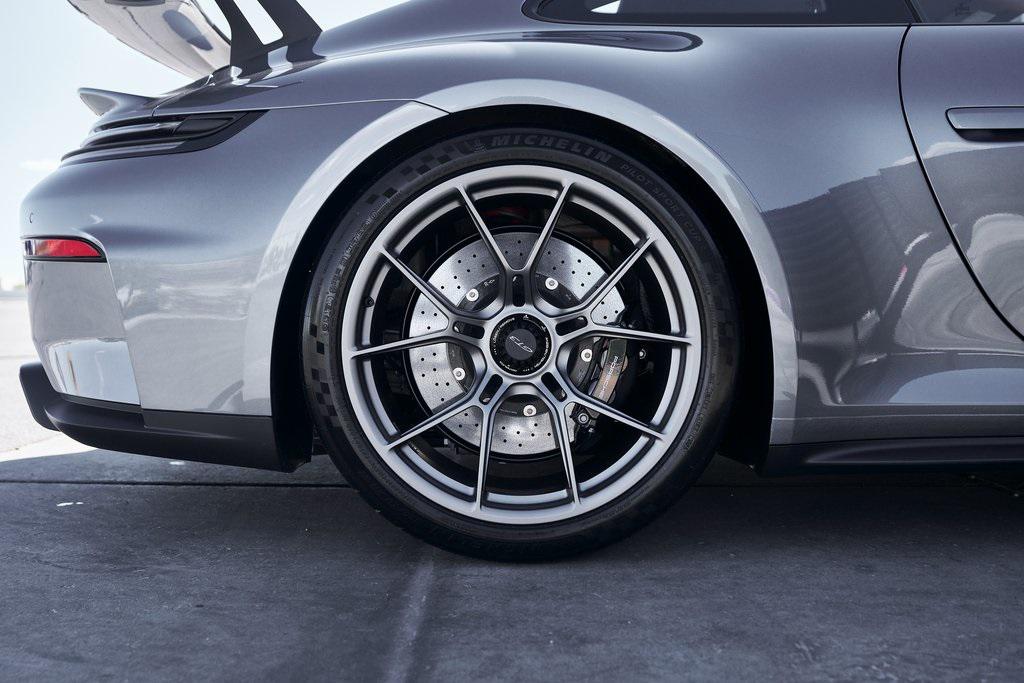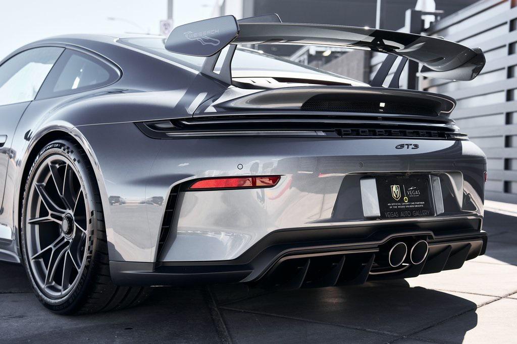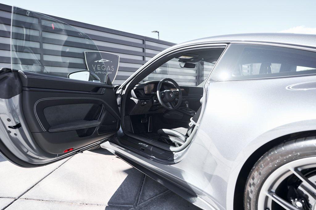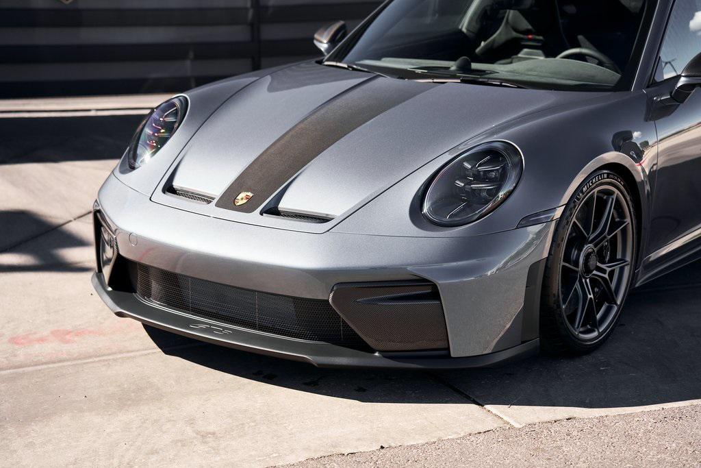 2025 PORSCHE 911 GT3 WEISSACH PACKAGE, CERAMIC COMPOSITE BRAKES, DELIVERY MILES, AND MORE!OVERVIEWThe 2025 Porsche 911 GT3 represents the purest expression of Porsche's motorsport DNA for the road. It's one of the last high-revving, naturally aspirated engines of its kind––and it sings. At its heart lies a 4.0-liter naturally aspirated flat-six engine, revving to a spine-tingling 9,000 rpm and producing 502 horsepower and 331 lb-ft of torque. Power in this GT3 is routed through a 7-speed PDK transmission. The result? 0-60 mph in just 3.2 seconds and a top speed of 198 mph. The optioned Weissach Package adds extensive use of carbon fiber and magnesium components––roof, rear wing endplates, mirror caps, coupling rods, anti-roll bars––shedding weight where it matters most. Aerodynamics play a starring role, with an aggressive rear diffuser and manually adjustable swan-neck rear wing that generate up to 150% more downforce than its predecessor. From appearance alone, the GT3's wide body, center-lock wheels, and extensive carbon fiber signal its intent without saying a word. Inside, this track-focused 911 remains modern and functional. Folding lightweight bucket seats, Race-Tex trim throughout, and GT-specific driving modes provide a true motorsport environment. Yet, despite its track focus, you still get modern conveniences like Apple CarPlay, dual-zone climate control, and a Bose surround sound system. As with many Porsches, customization is key. This example features carbon ceramic brakes, folding lightweight bucket seats, and under door puddle lights that read ""BORN IN FLACHT"". With the Weissach package, the 2025 911 GT3 is more than just a car. It's a precision tool for the track that's comfortable and refined enough to enjoy driving daily on the road. It's pure Porsche performance unfiltered.OPTIONAL EQUIPMENTVanadium Gray Metallic $860Black Leather/Race-Tex w/Silver Stitch $4,910Weissach Package $20,020Porsche Ceramic Composite Brakes $11,070Folding Lightweight Bucket Seats $7,100Front Axle Lift System $3,800HD Matrix LED Headlights $2,620BOSE Surround Sound System $1,650Wheels Painted In Satin Dark Silver $1,340Illum. Matte Carbon Fiber Door Sill Guards $940Exclusive Design Taillights $670Ambient Lighting $600Steering Column Casing In Leather $540Weissach Logo On Rear Wing Endplates $470BORN IN FLACHT Under Door Puddle Lights $340Chrono Package $320Extended Range Fuel Tank (22.1 gal) $230Exclusive Design Fuel Cap $170Fire Extinguisher $150GENERALYear: 2025Mileage: 25VIN #: WP0AC2A94SS274393Engine Size: 4.0L H6Class: CoupeHorsepower: 502Color: Vanadium Gray MetallicInterior: Black Leather/Race-Tex w/Silver StitchFuel: Premium Unleaded GasolineGear Box: 7-Speed PDK (Automatic)Doors: 2Seats: 2Cylinders: 6SAFETY EQUIPMENTDual Stage Driver and Passenger AirbagsElectronic Traction ControlDynamic Stability ControlRoll Stability ControlAnti-Lock Braking SystemDriver Condition ResponseDriver Monitoring AlertTire Specific Low Tire Pressure WarningBack-Up CameraRear Parking Sensors ADDITIONAL INFORMATION2 Keys IncludedBalance of Factory Warranty (if applicable)Extended Warranties Available
